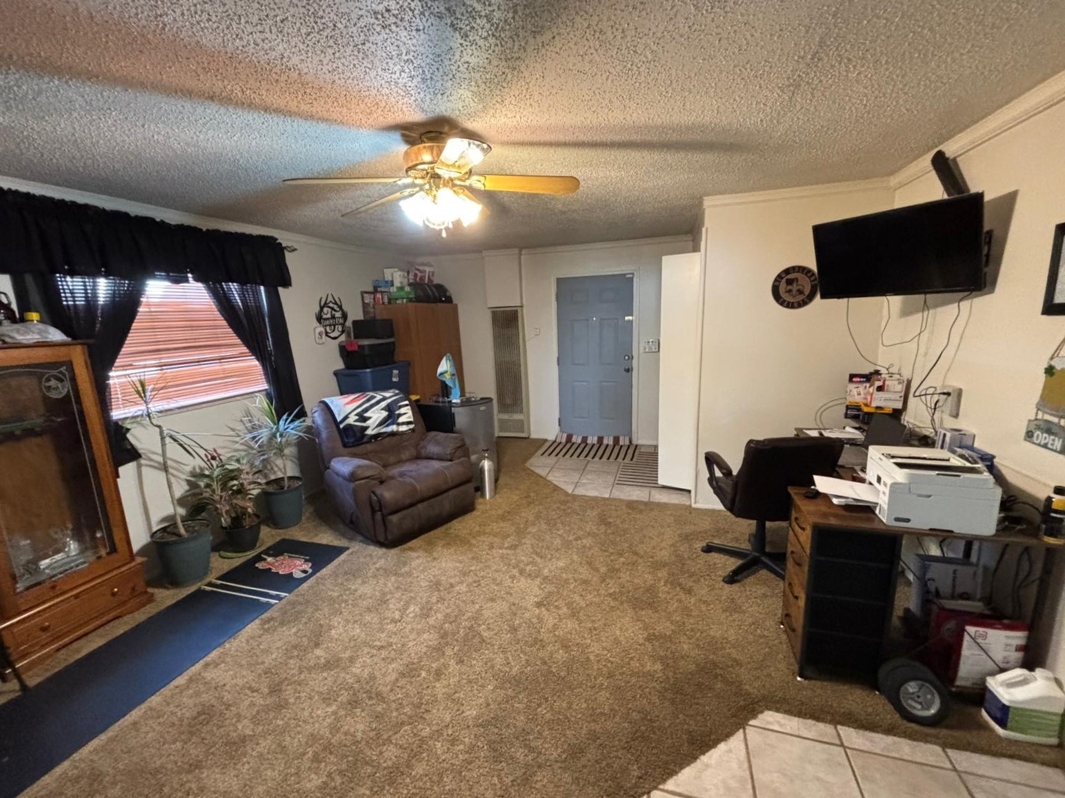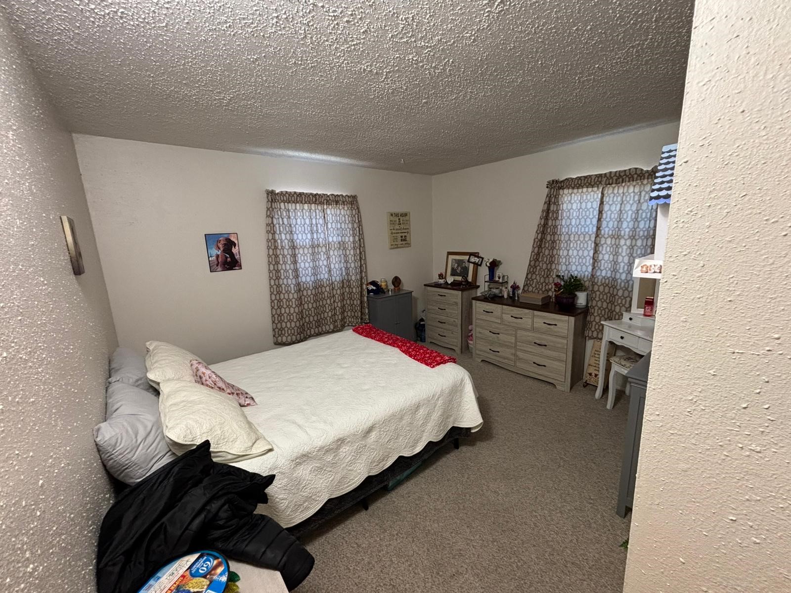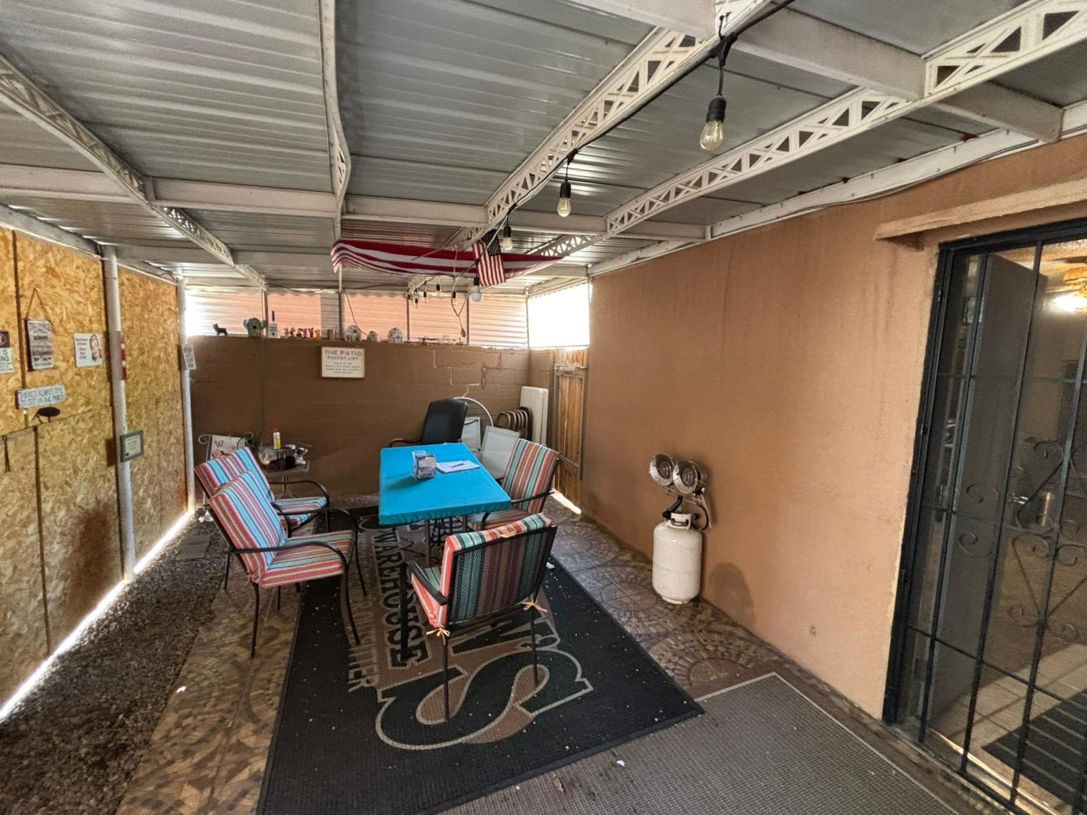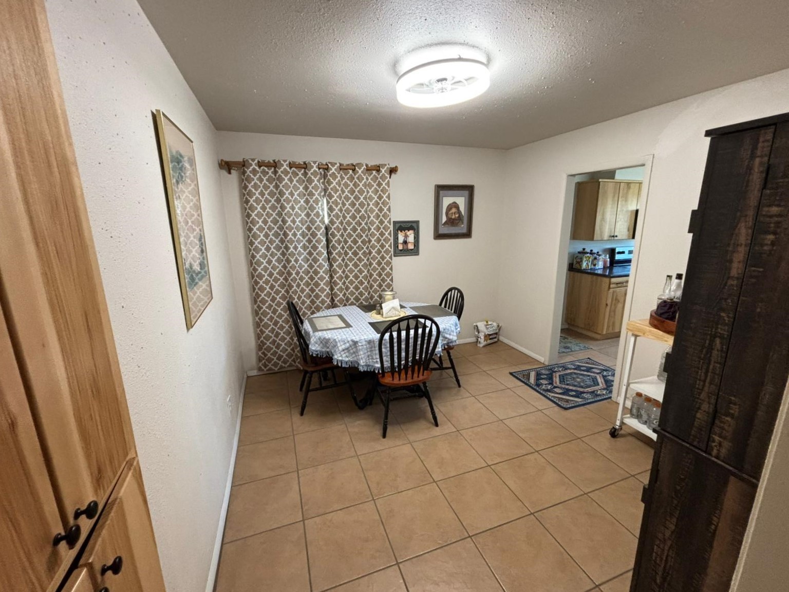 Charming home with recent updates! Tile in entry, kitchen & dining. Carpet throughout (older). Kitchen cabinets approx. 10 yrs old. 2023 roof, 2022 windows. Enjoy a 20x10 covered back porch with tile. Gravel yard, shed, and carport in back. Main bath updated '23. Second bath offers potential. Some stucco needs attention.