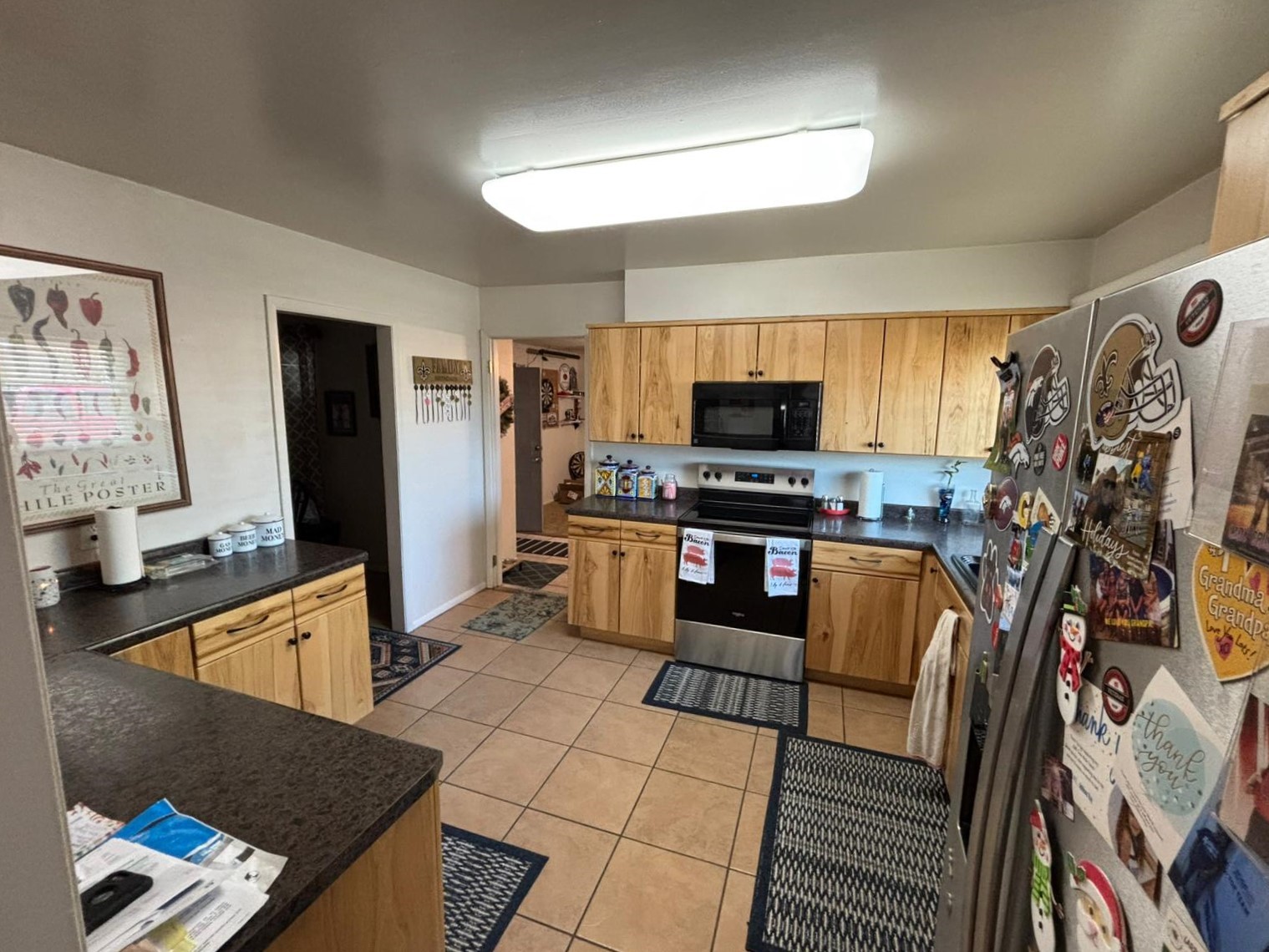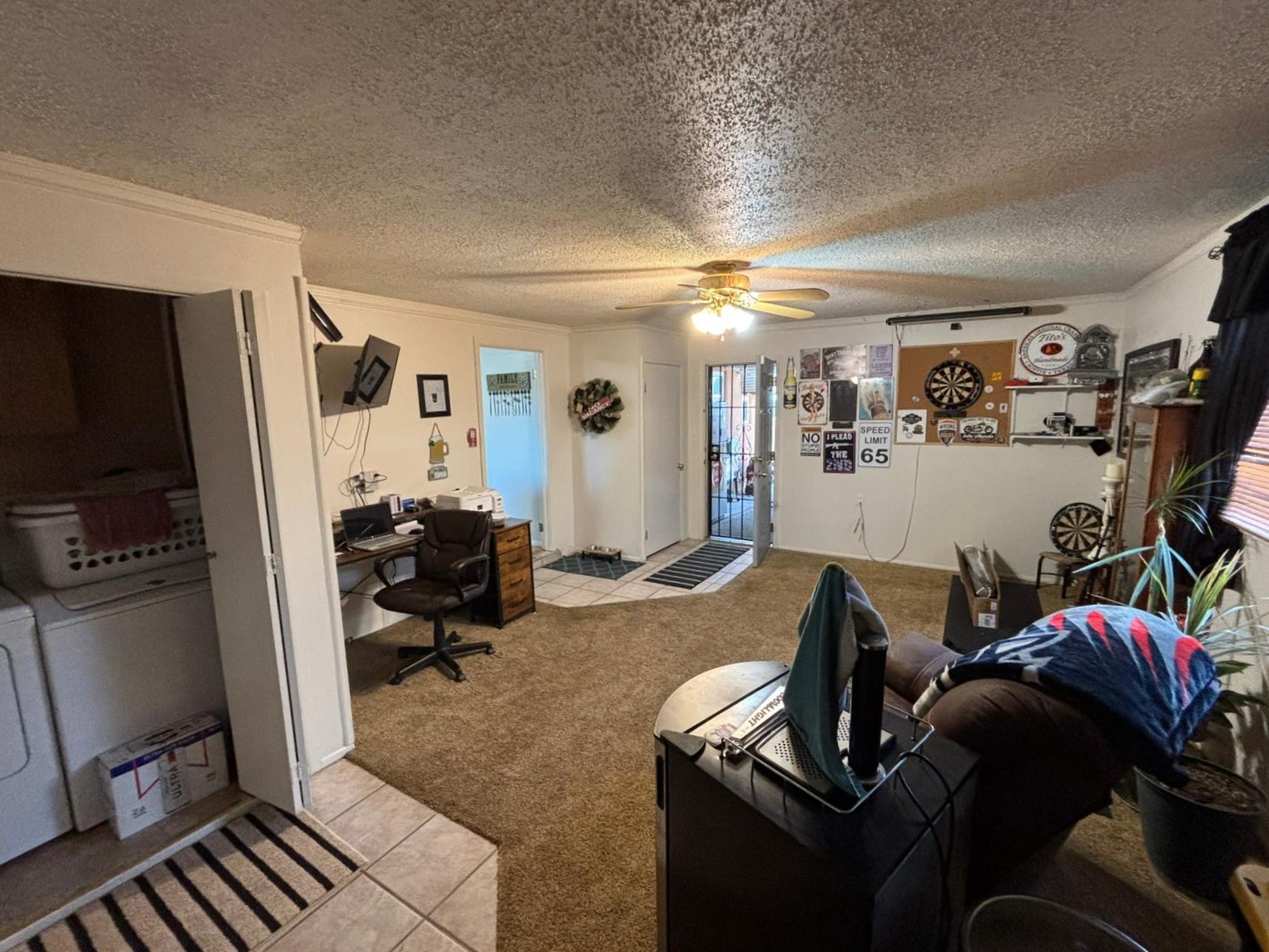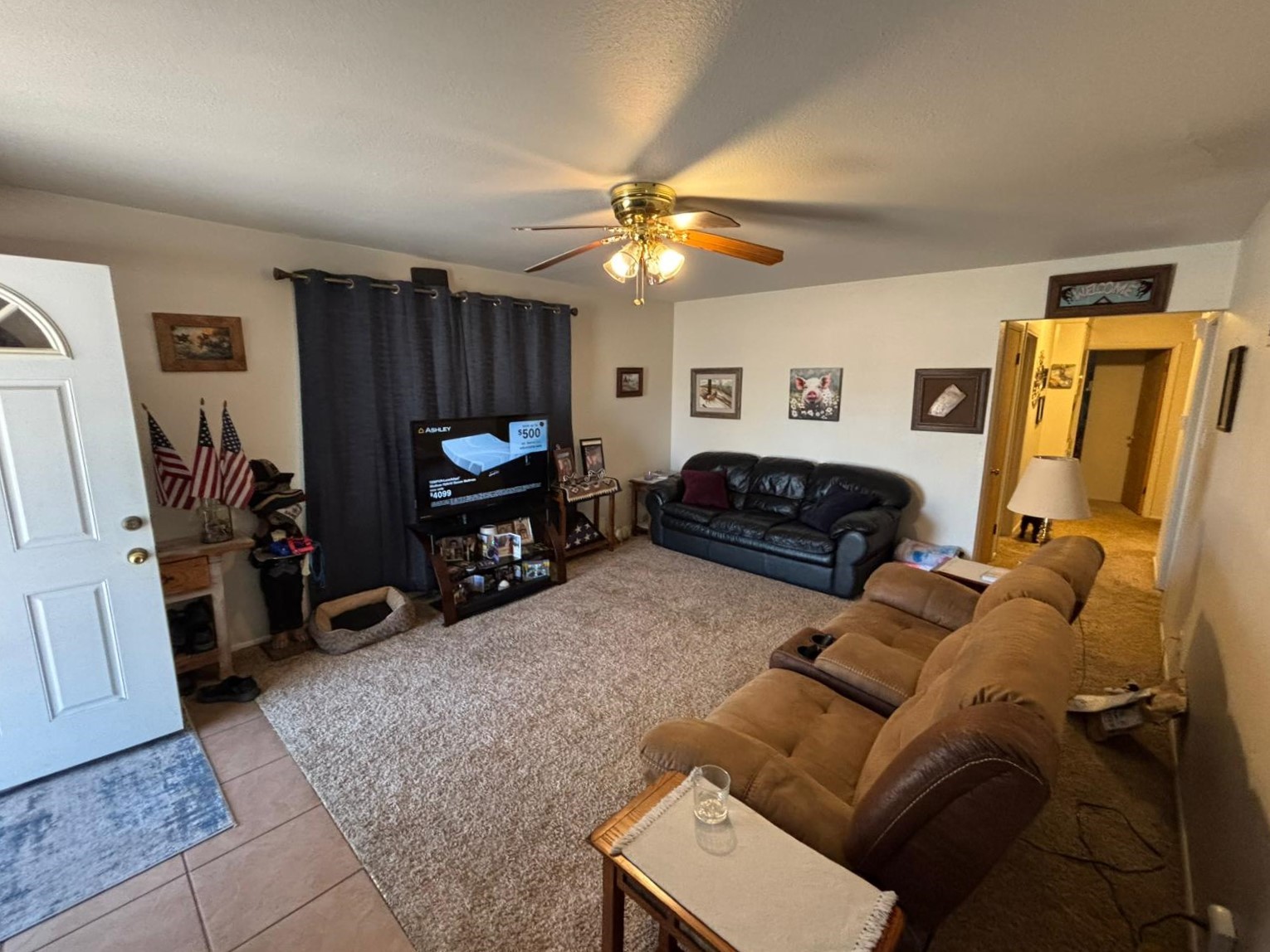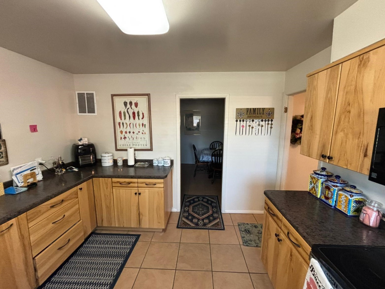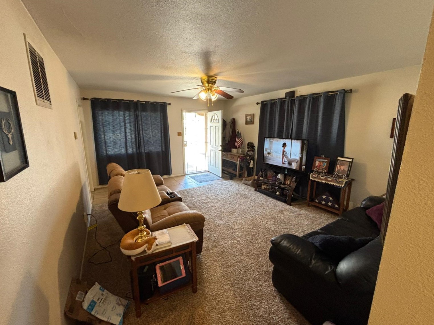 Charming home with recent updates! Tile in entry, kitchen & dining. Carpet throughout (older). Kitchen cabinets approx. 10 yrs old. 2023 roof, 2022 windows. Enjoy a 20x10 covered back porch with tile. Gravel yard, shed, and carport in back. Main bath updated '23. Second bath offers potential. Some stucco needs attention.