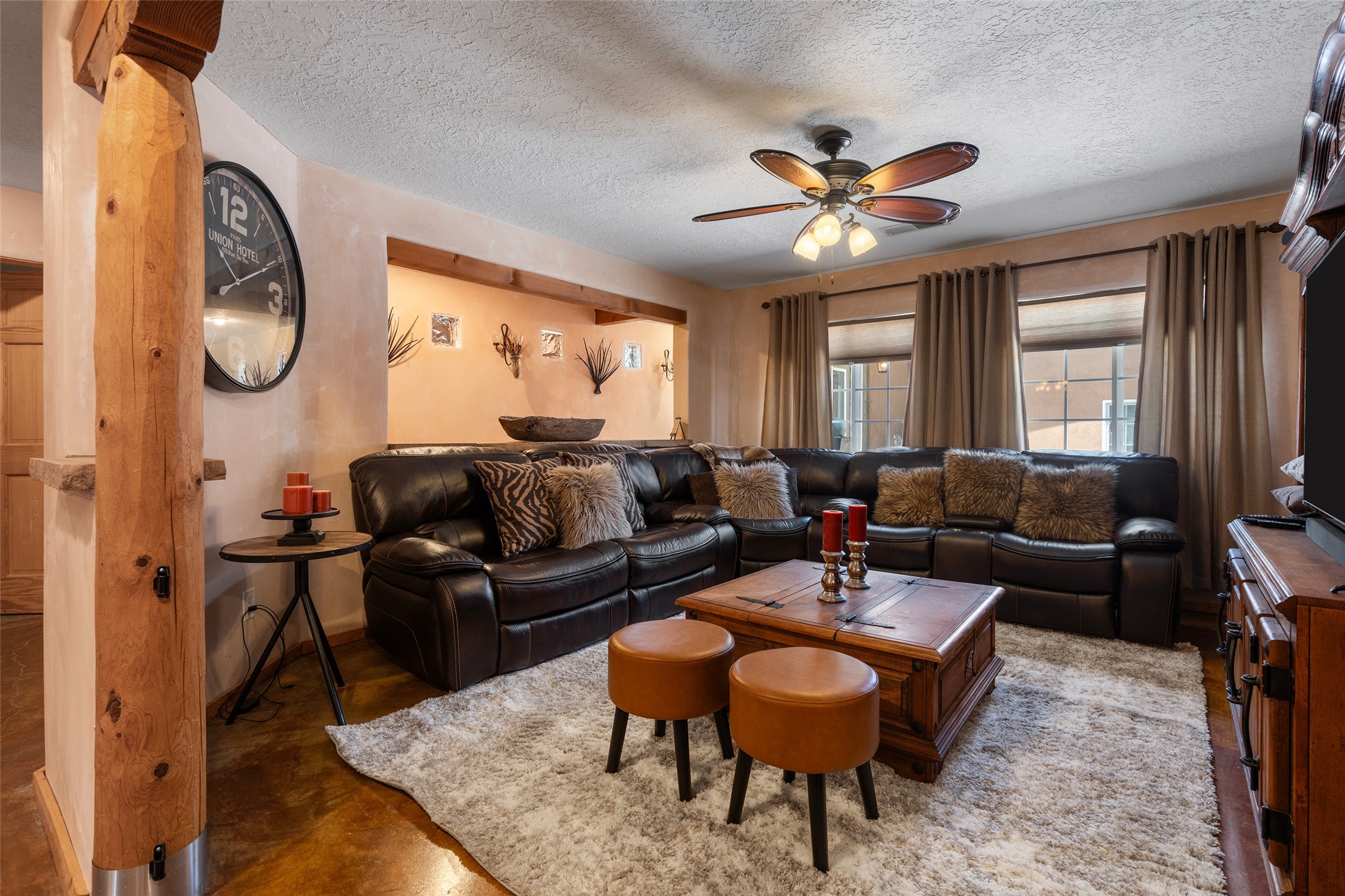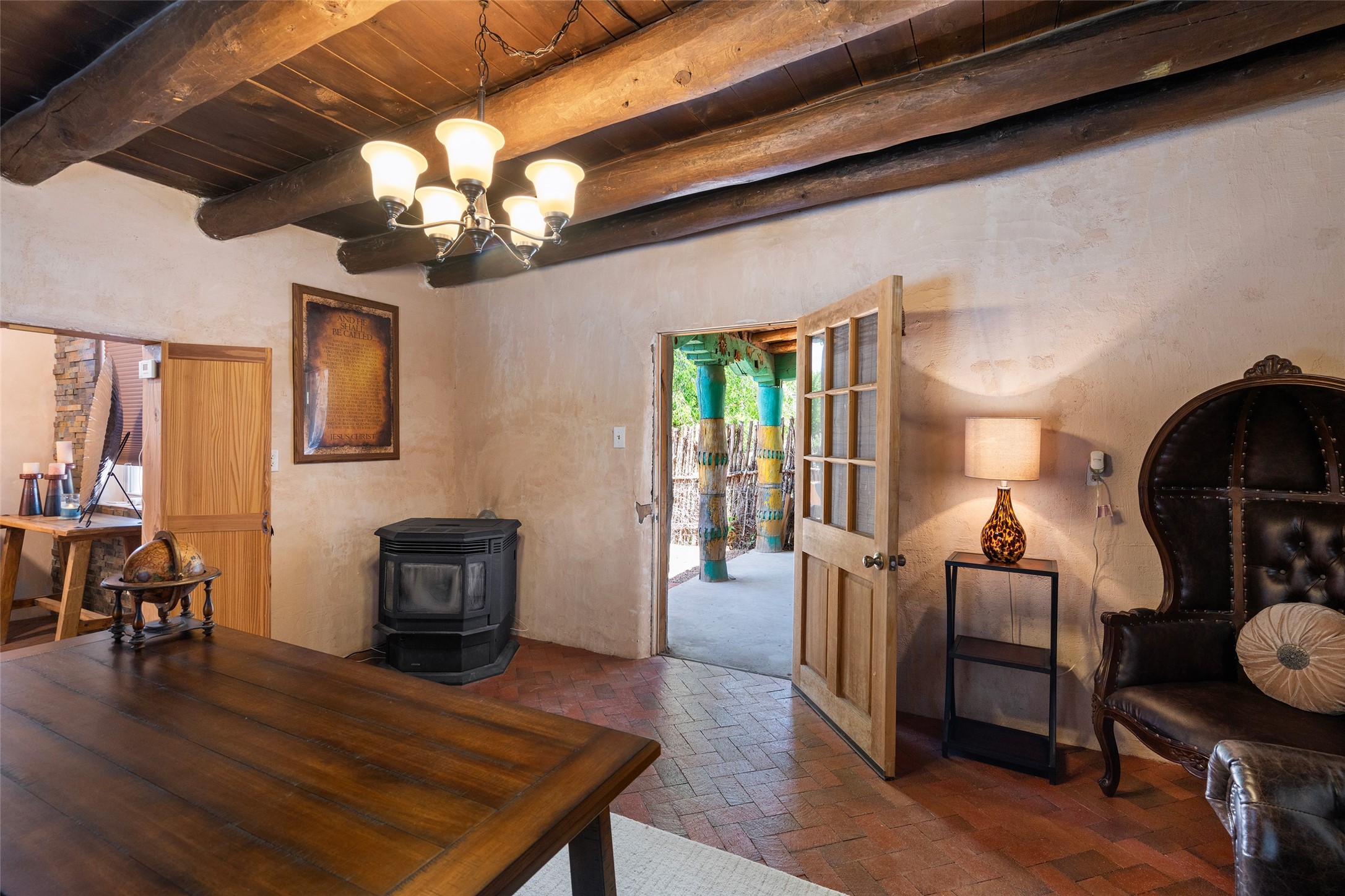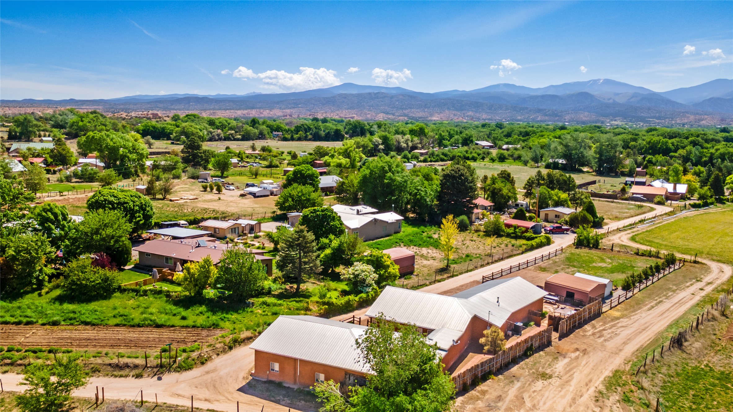 Step into a living conversation between past and present at 2 Short Road, an exceptional historic adobe in the heart of Nambe. Originally constructed in 1904, this soulful home honors its origins while embracing the artistry and evolution that make Northern New Mexico so enduringly compelling.Spanning 3,223 square feet, the residence unfolds with timeless character--thick adobe walls, generous proportions, and a sense of permanence that only history can provide--balanced by the openness and creative spirit that continue to shape the home today. Set on nearly half an acre (.479 acres), the property offers a tranquil, private setting with room to breathe, gather, and reflect.One of the home's most remarkable features is the hand-painted mural on the back portal, a powerful bridge between generations. Painted by the Seller's grandfather, the mural is both a personal legacy and a recognized work of regional significance, featured in Adobe! Homes and Interiors of Taos, Santa Fe and the Southwest by Sandra and Laurel Seth. It beautifully weaves cultural history with artistic expression, grounding the home in its past while speaking vibrantly to the present. Easy access to Los Alamos 19 miles.