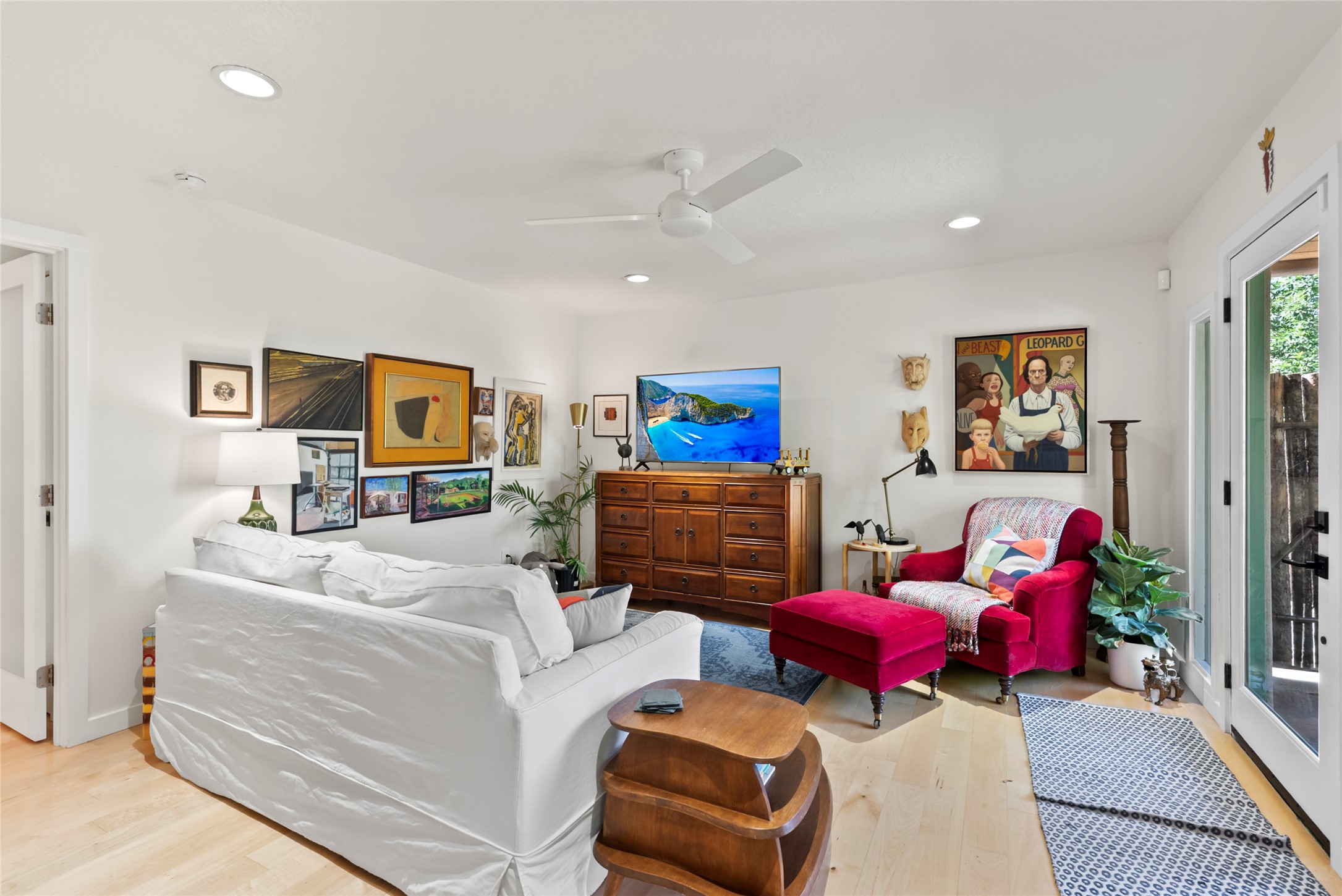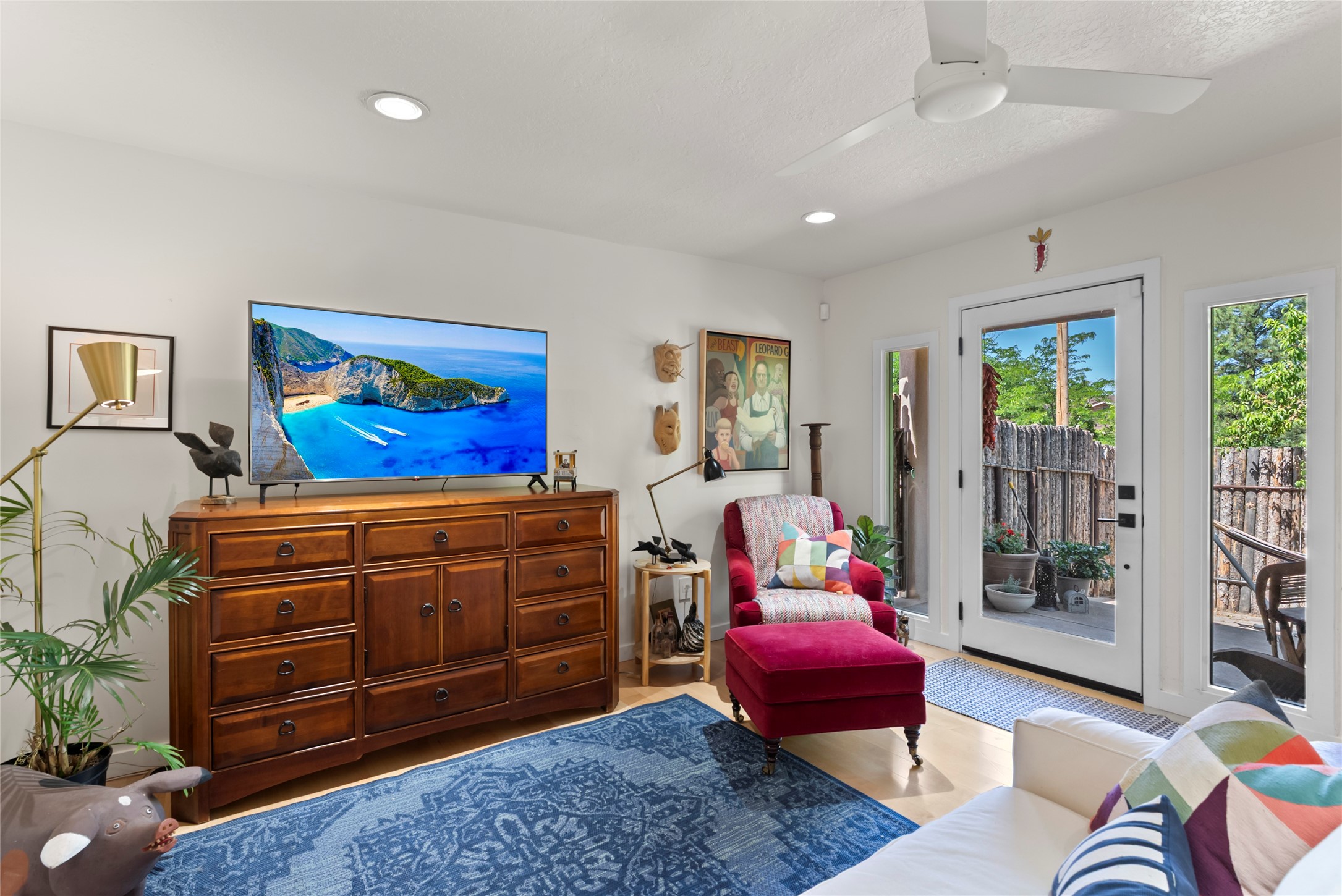 Charming 4-Bedroom Home with Studio Casita & RV Parking - A Rare Find!Welcome to your dream home in the heart of Bellamah! This beautifully updated 4-bedroom, 3-bath gem includes an attached studio casita and convenient RV parking -- just minutes from downtown, parks, courts, and more.Step inside to discover a tastefully REMODELED kitchen, remodeled primary bath, updated flooring, updated windows, and a newer roof. Energy-efficient paid-off solar panels and mini splits make this home as smart as it is stylish.You'll fall in love with the lush front landscaping and tidy backyard, complete with mature trees, vibrant rose bushes, and even a fruiting peach tree. The tranquil front porch, wrapped in classic Santa Fe coyote fencing is perfect for morning coffee or evening unwinding. A heated storage building has potential for a studio space. The attached studio casita features its own full kitchen and half bath -- ideal for guests, a home office, or potential rental income w/ proper permitting.Located less than a block from two expansive parks with tennis and basketball courts, this home blends comfort, convenience, and charm.Don't miss out on this Bellamah beauty -- come see it today!