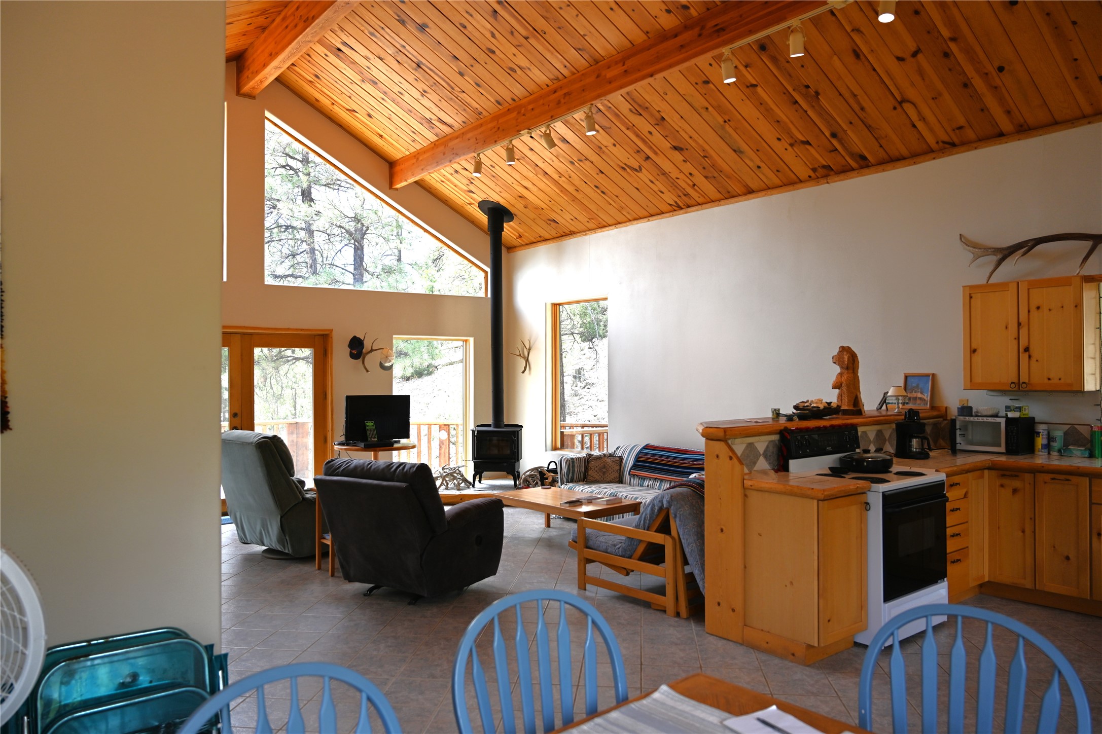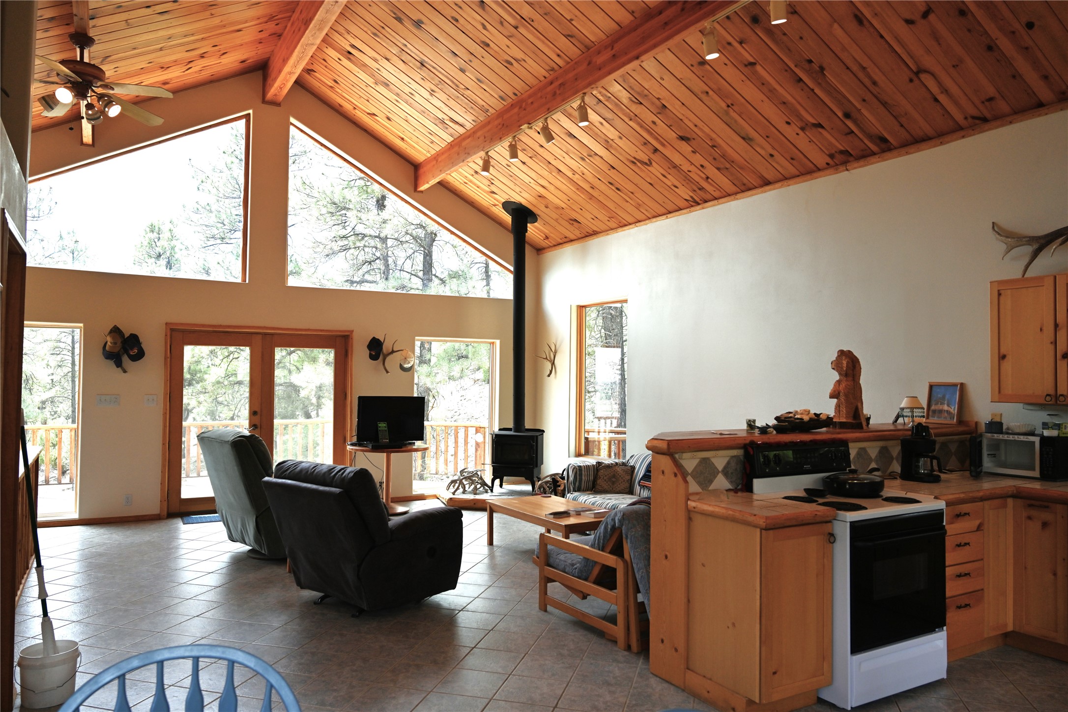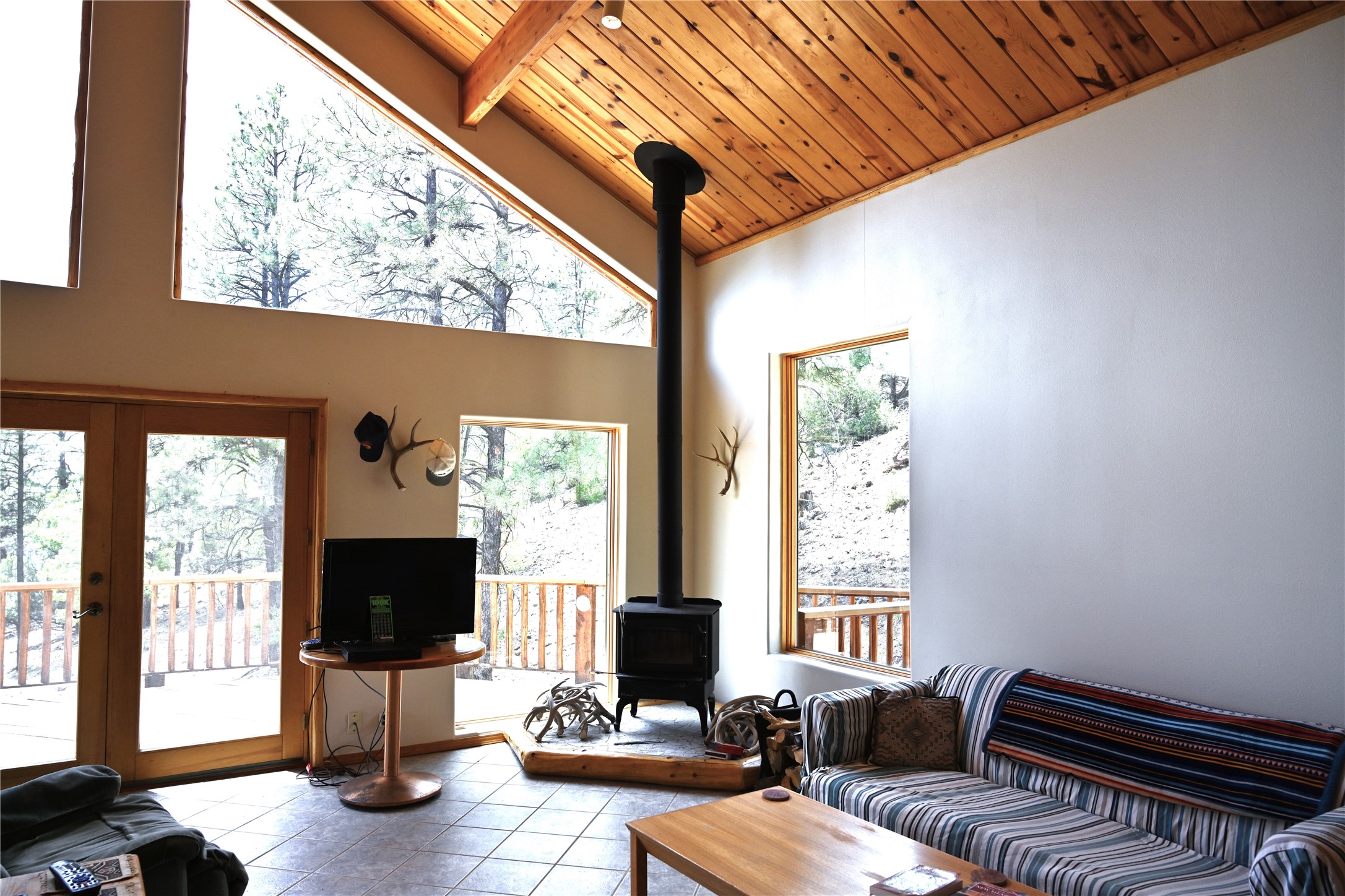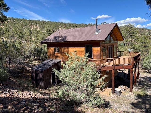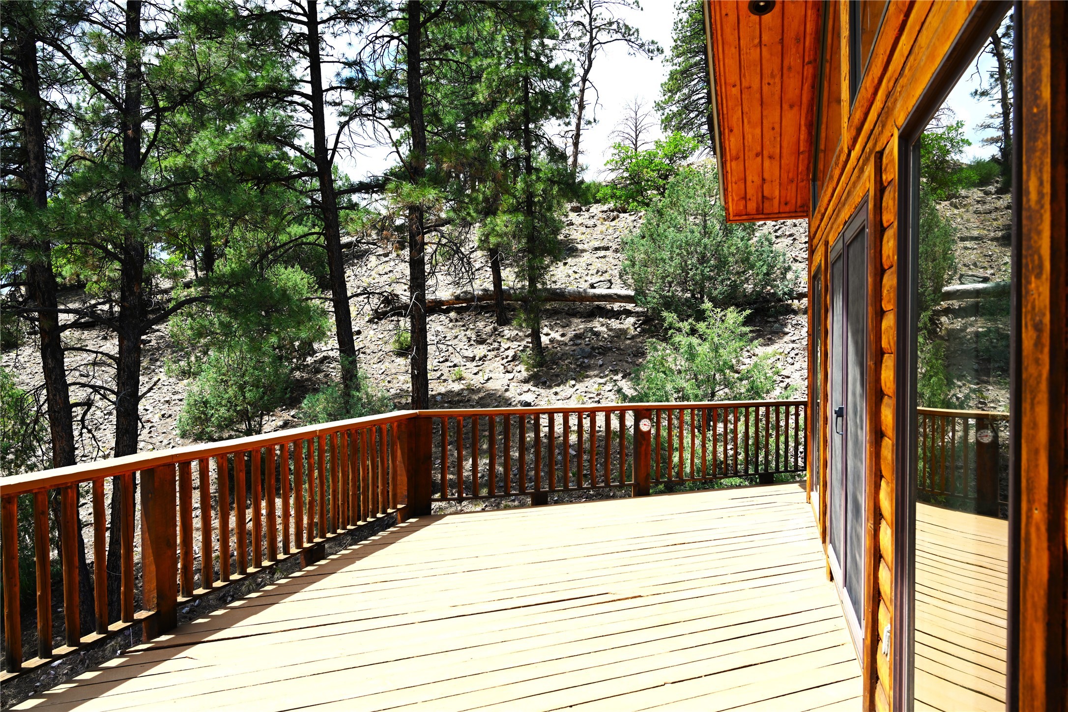 Beautiful well kept custom built log home with views of Heron lake. Property is located in the Laguna Vista sub division on 4.08 acres at the end of the road. Private access to the State Park and to Willow Creek which is the inlet to Heron Lake. Two bedrooms with their own bathrooms downs stairs. Upstairs Livingroom, Kitchen, Dining area, Breakfast bar, and a 1/2 bath. Nice Tile flooring with beautiful woodwork,solid wood door package. Wood burning stove for the cold nights. Huge southern facing windows for those stunning views of Heron Lake and the surrounding mountains. Nice deck up stairs for those summer bar b ques or just a cool place to hang out and enjoy life. This is a one owner home and has been used as a vacation summer home. Has a private well and septic. Abundant wildlife in the area to include Elk,Mule Deer and Turkey.Tall beautiful pines. Cedars and Gambrel oak on the property. Santa Fe about 2 hours away, Chama about 30 minutes and Pagosa Springs an hour and a half.