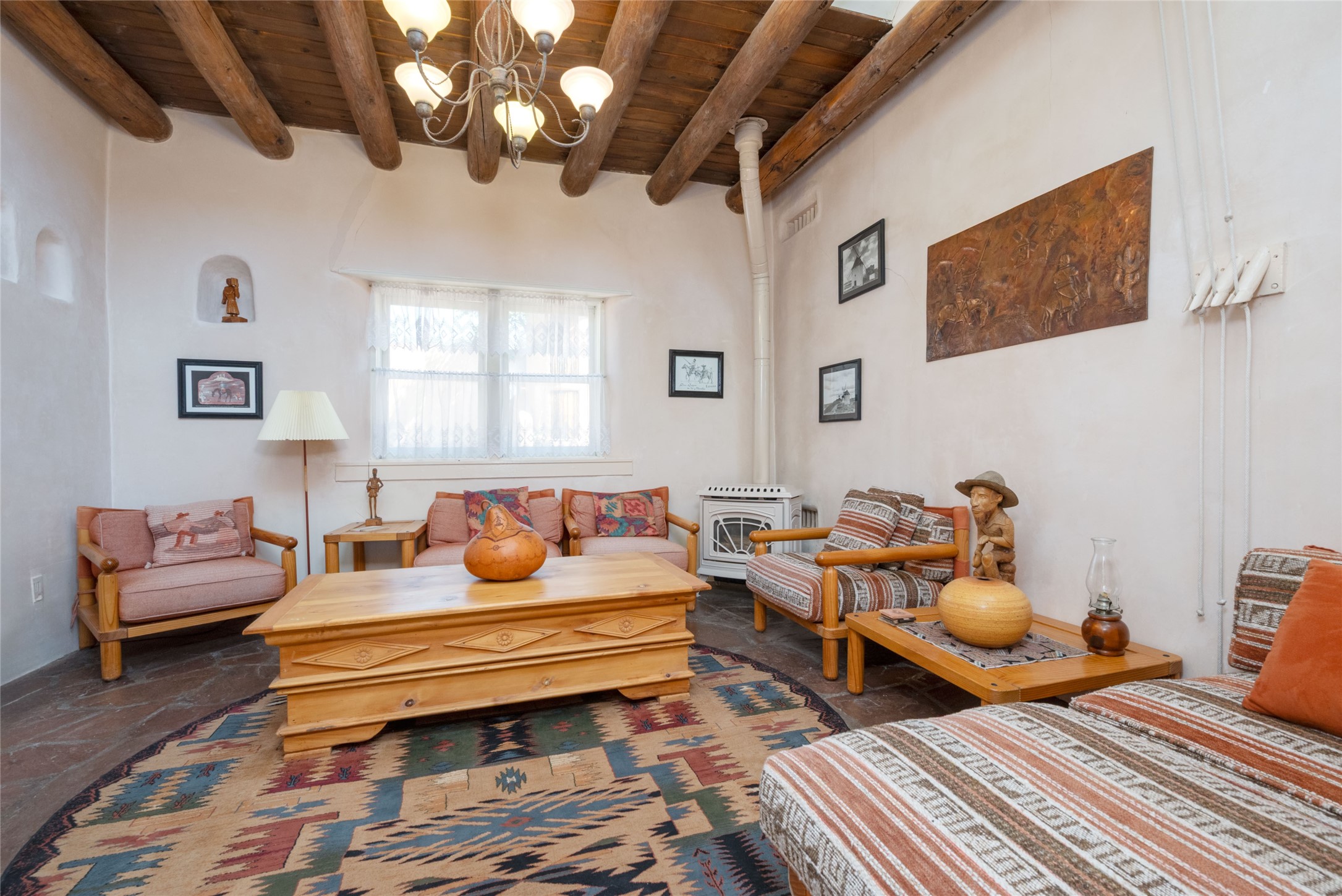 La Cienega Vineyard Estate - Four Parcels with Adobe Homes, Studios & Acequia Water Rights. Discover a unique opportunity in the heart of historic La Cienega--a vibrant 6-acre vineyard comprising four separately deeded parcels, rich with potential and authentic New Mexico charm. Anchored by two traditional adobe homes, the estate is steeped in regional character and surrounded by natural beauty. The main house features 3 bedrooms, 2 baths, and showcases classic Santa Fe style with brick floors, vigas, and elegant touches throughout. The adobe main residence is a quintessential historic home in the La Cienega Village. The second adobe home offers additional living space or rental income potential. In addition to the homes, the property includes a partially completed two-story apartment--ready for your finishing touches--and several studio structures that could be transformed into creative workspaces, studios, rentals or other uses associated with the Vineyard. The well-maintained vineyard is nourished by valuable acequia water rights, ensuring sustainable growth and offering agricultural possibilities for wine production, agritourism, or farm-to-table ventures. With flexible uses and multiple dwellings already in place, this rare offering is ideal for a variety of uses--live/work, multi-generational living, a creative retreat, or a boutique vineyard business. Properties with this combination of history, water, and opportunity are seldom available in La Cienega