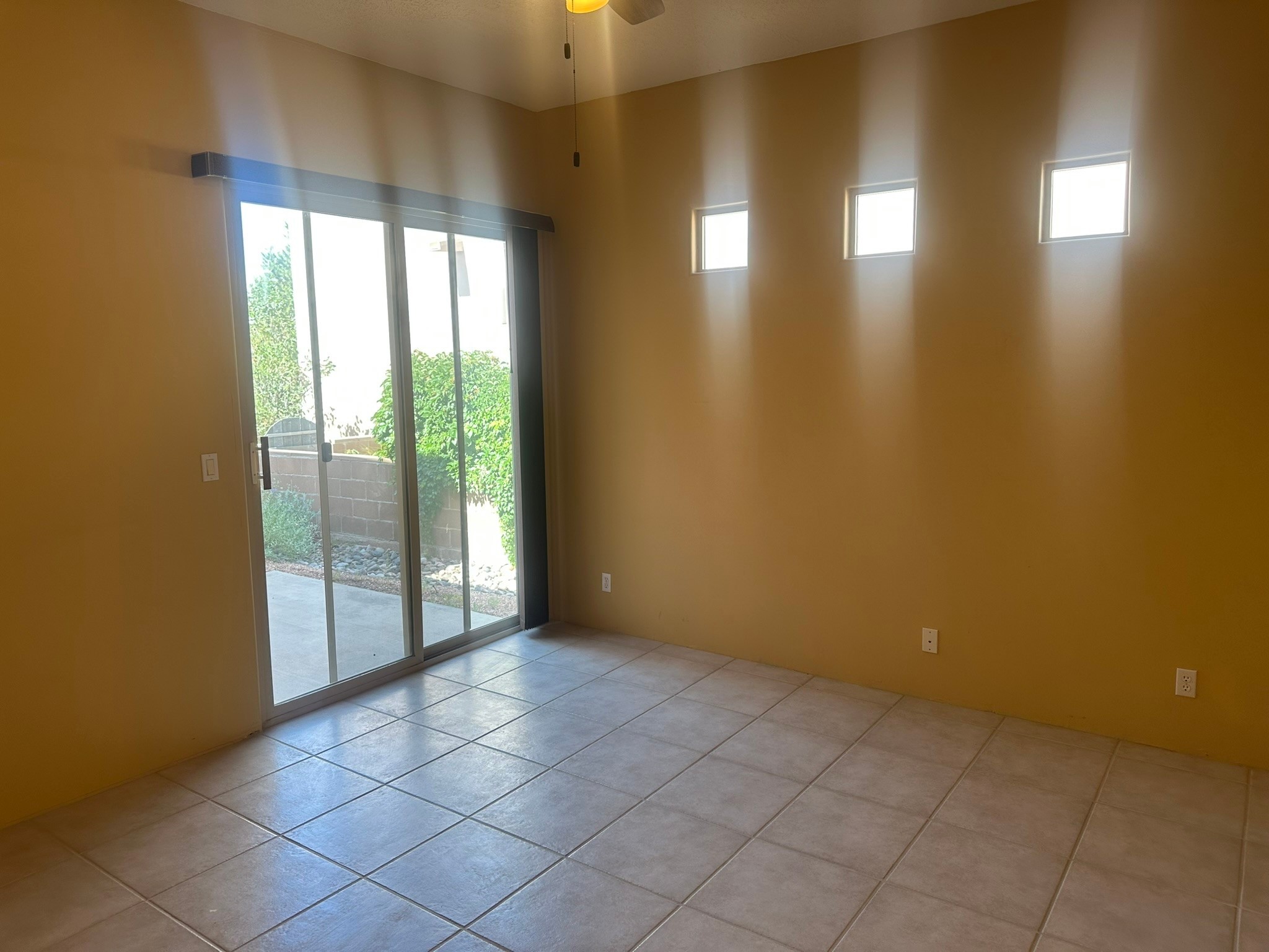 This beautifully designed Aspen floor plan offers effortless, single-level living--no steps, just seamless sophistication from room to room. Step inside to a sun-drenched, freshly painted living area adorned with a stunning new picture window and accented by warm wood ceiling beams. A gas fireplace serves as the elegant focal point, creating an inviting atmosphere for cozy evenings or stylish entertaining. The open-concept kitchen features granite countertops, ample pantry space, and a natural flow into the dining and living areas--perfect for everyday indulgence or hosting guests. With three generously sized bedrooms and two full baths, the intelligent split floor plan provides both privacy and comfort. The spacious primary suite offers direct access to a private, covered back patio, a large walk-in closet, and an en suite bath--making it a true retreat.Additional highlights include, a brand-new TPO roof (2025), some newly installed energy-efficient windows, radiant heat and a swamp cooler for year-round comfort, tall two-car garage for added storage and convenience, a well-maintained, landscaped yard with a flourishing blackberry bush--ideal for green thumbs, private back porch with a beautiful cover, perfect for outdoor relaxation, and a generous linen closet for practical storage solutions. Set against a backdrop of open space with direct access to serene trails, this home effortlessly blends everyday comfort with the natural beauty of its surroundings. Discover where thoughtful design, modern upgrades, and nature come together--your next chapter begins here.