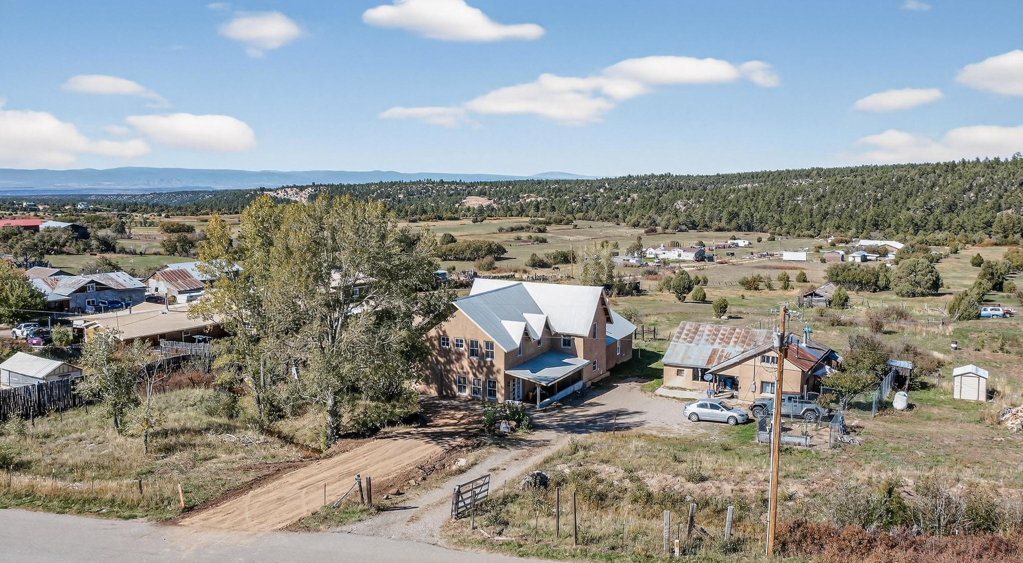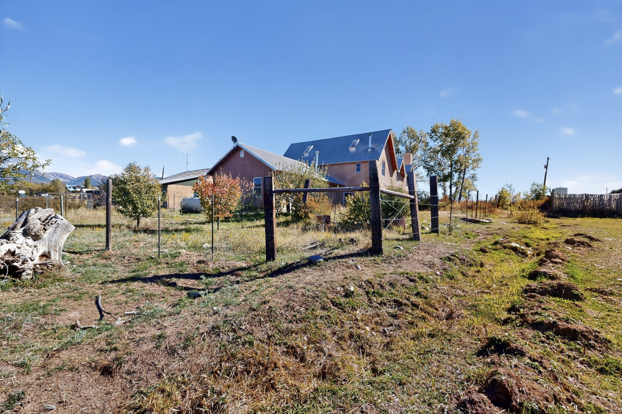 This custom-built Adobe home has spectacular views and easy access on 3.28 acresof premium irrigated land!Offering peace and privacy just minutes from the heart of Truchas, NM, this homeis rich in historyand character. The current owners thoughtfully expanded the original footprintof anadobe farmhouse while preserving the historic details authentic character and solid structure. Three large bedrooms, two upstairs and one on the main level are light, bright and airy. The two updated bathrooms feature walk-in showers, with a soaking tub upstairsand aprivate sauna downstairs for comfort andrelaxation. Features includehandcrafted plaster wallswith nichos,vigas, beams,soaring high ceilingsand gabled windows. Thebrick, saltillo,and white oak flooringwith radiant heat creates warmth and authenticity while aclassic kiva fireplace anchors the living space. . With community water supplemented by valuable ditch rights,the fully fencedpastures are well-suited for horses or small-scale farmingand an old log barn in the pasturespeaks to the history of the land and offers flexible use for storage and animals. Set against the backdrop of the Truchas Peaks, this distinctive Southwestern adobe retreat enjoys beautiful views of the mountainsand surrounding hillsides. The oversized garage offers additionalroom for a workshop with attic storage above. If you are seeking a horse property, a mountain getaway, or a full-time residence that embodies the charm of Northern New Mexicothis home is not to be missed!