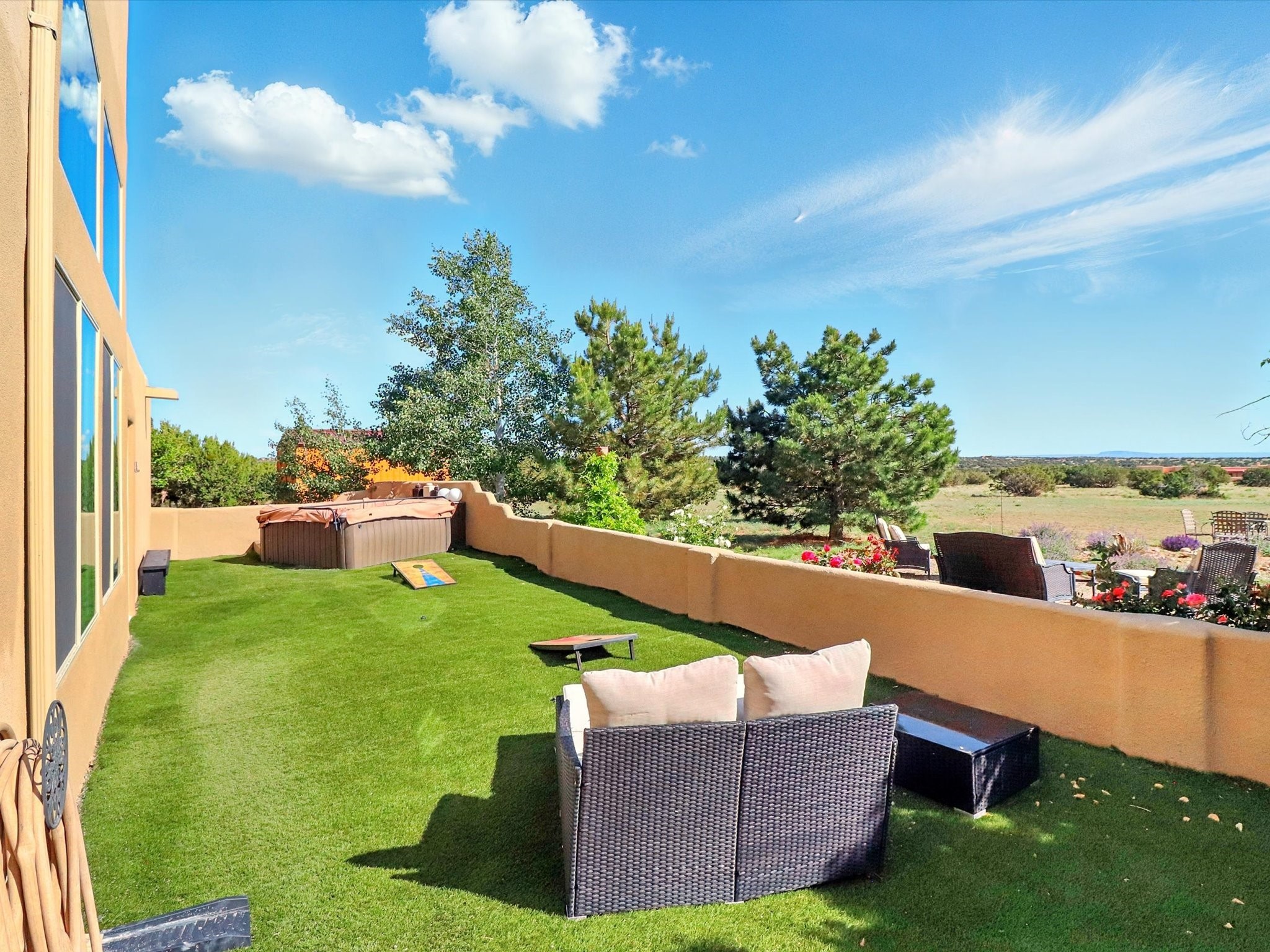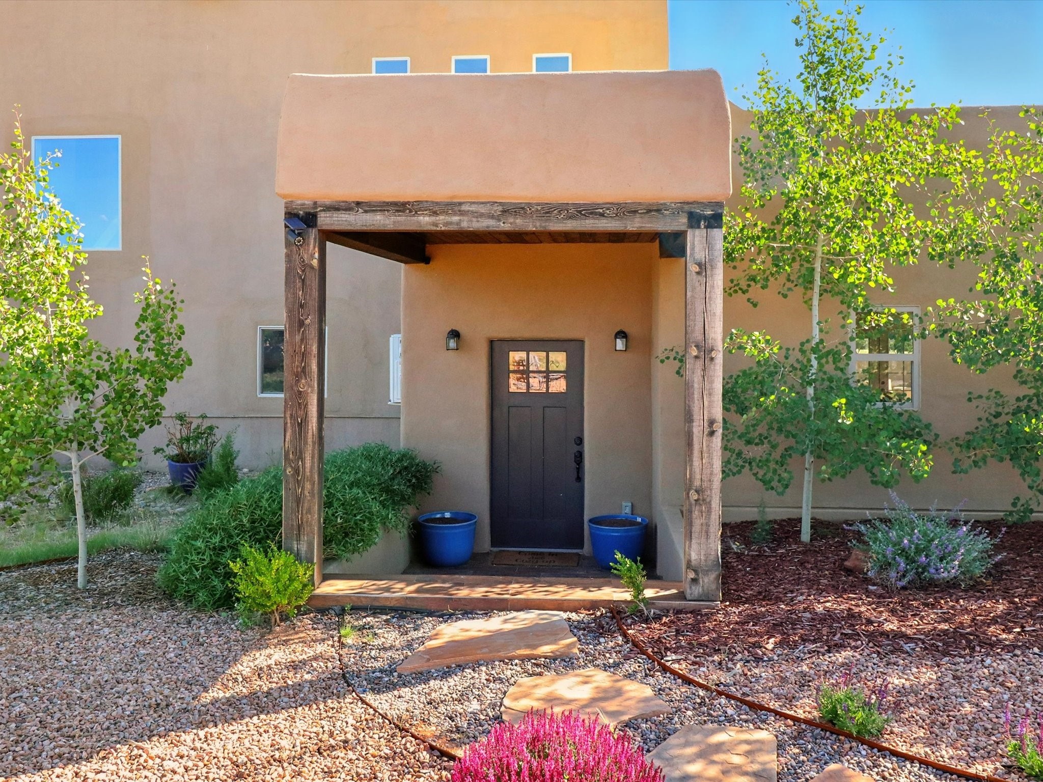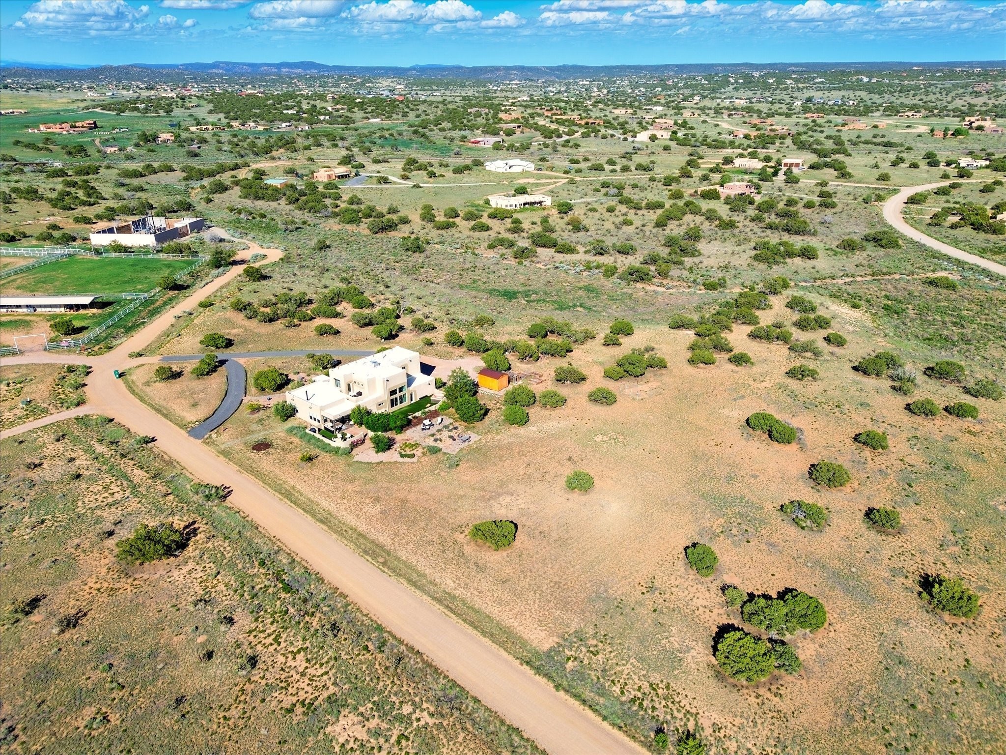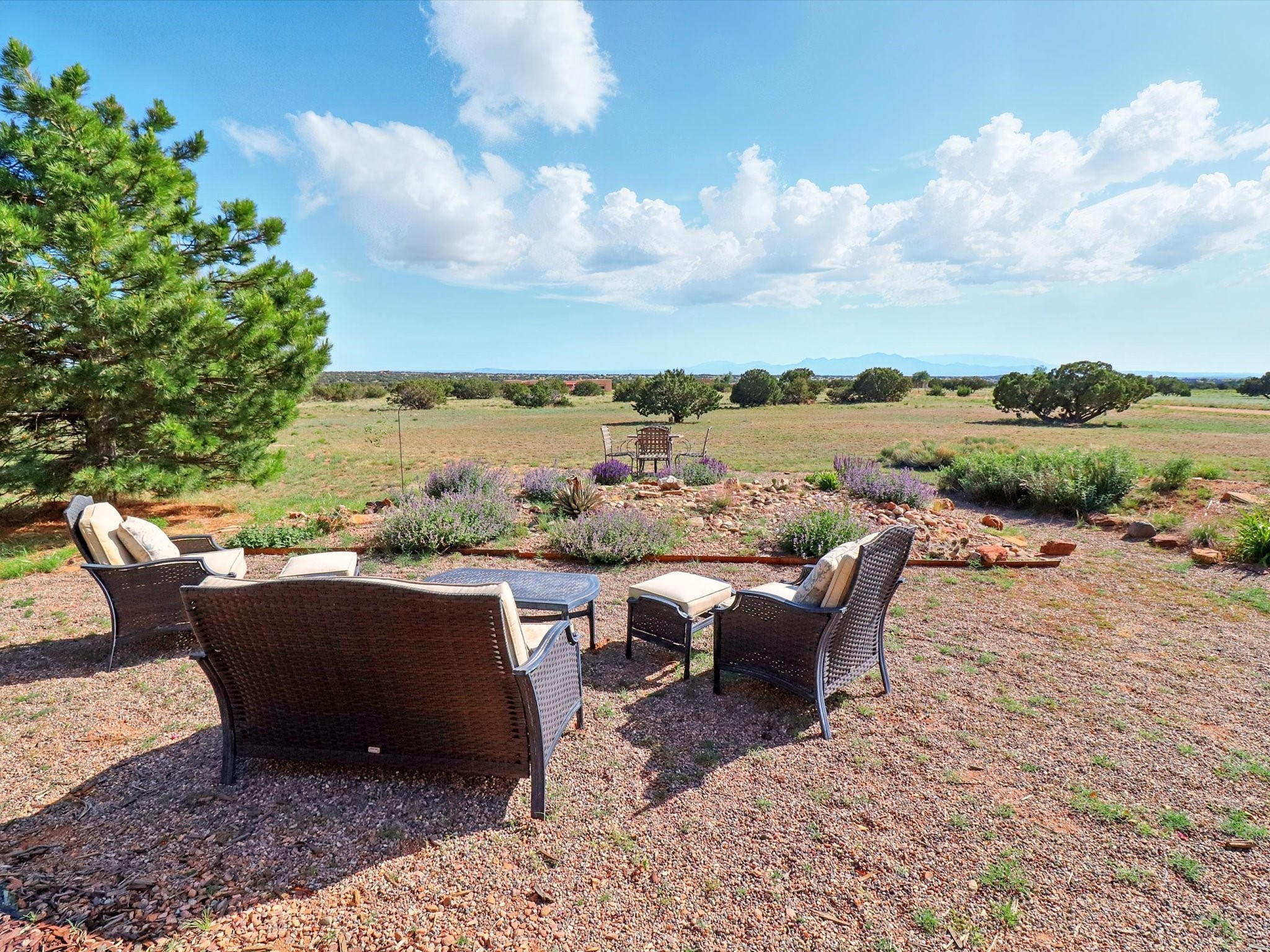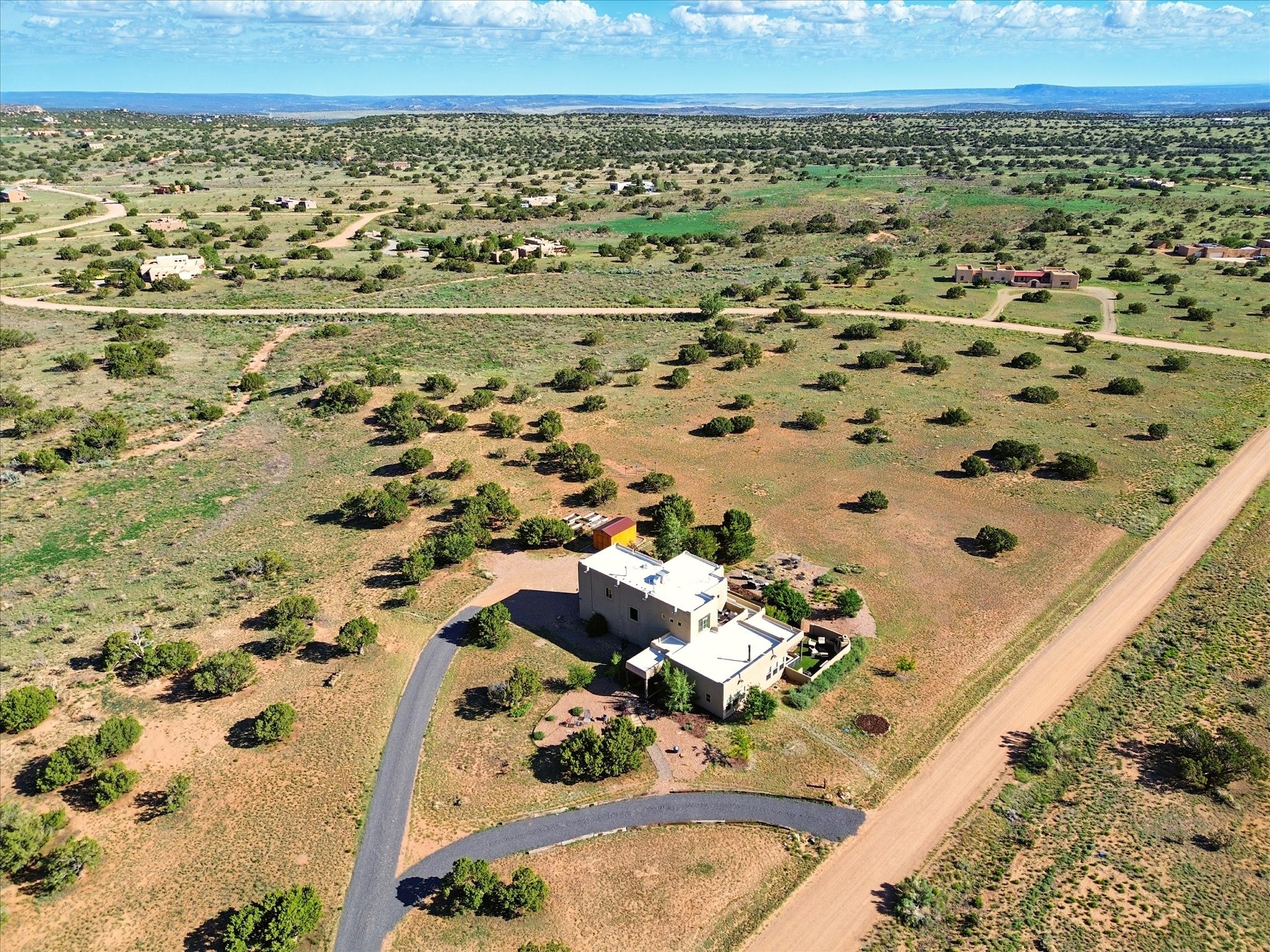 Seller concession available ($10,000 with acceptable offer)Experience breathtaking views surrounding this exceptional property located on just over 4 acres of pristine high desert landscape. This stunning home blends the timeless charm of Pueblo-style architecture with the inviting touches of modern farmhouse design including an expansive 1,000 square foot addition completed in 2020. The versatile floor plan is anchored by a beautifully updated gourmet kitchen featuring a Sub-Zero refrigerator and custom finishes with ample workspace, and a seamless flow for entertaining. On the main floor you will find that the primary bedroom showcases soaring ceilings with a picturesque view and private access to the outdoor courtyard. Complete with an oversized closet area and beautifully renovated bathroom that is perfect for soaking in the bathtub while taking in the view from the large picture window right above. The second floor consists of two bedrooms, a bonus room and two bathrooms. The balcony off the ensuite bedroom is ideal for soaking in the mountains and serene sunsets. Step outside to enjoy the covered portal and cozy up by the outdoor wood-burning fireplace. Fruit trees dot the landscape, adding character and a touch of sweetness to your retreat. Backed by peaceful green space and only minutes from the Galisteo Basin preserve, Santa Fe Rail Trail, this property offers the perfect blend of tranquility, access to nature and refined living. Do not miss this rare opportunity to own a home that truly captures the spirit and beauty of New Mexico.Pre-listing inspection report is available.