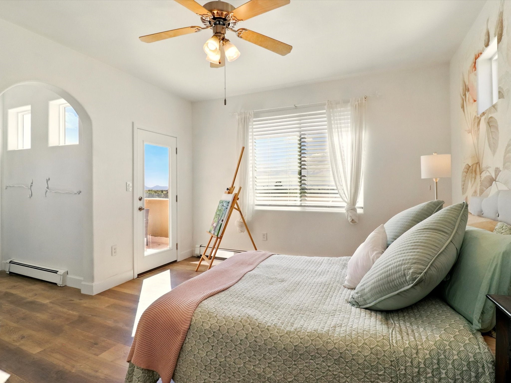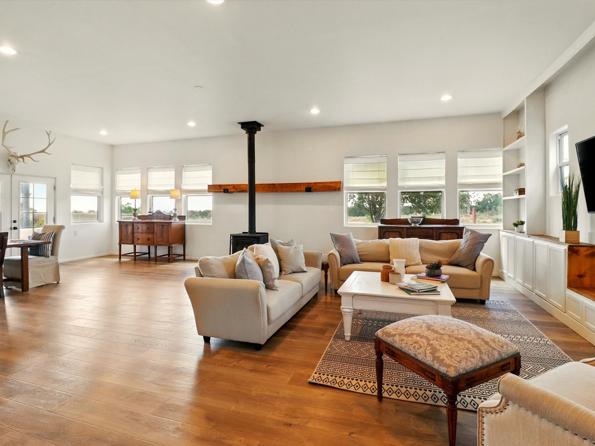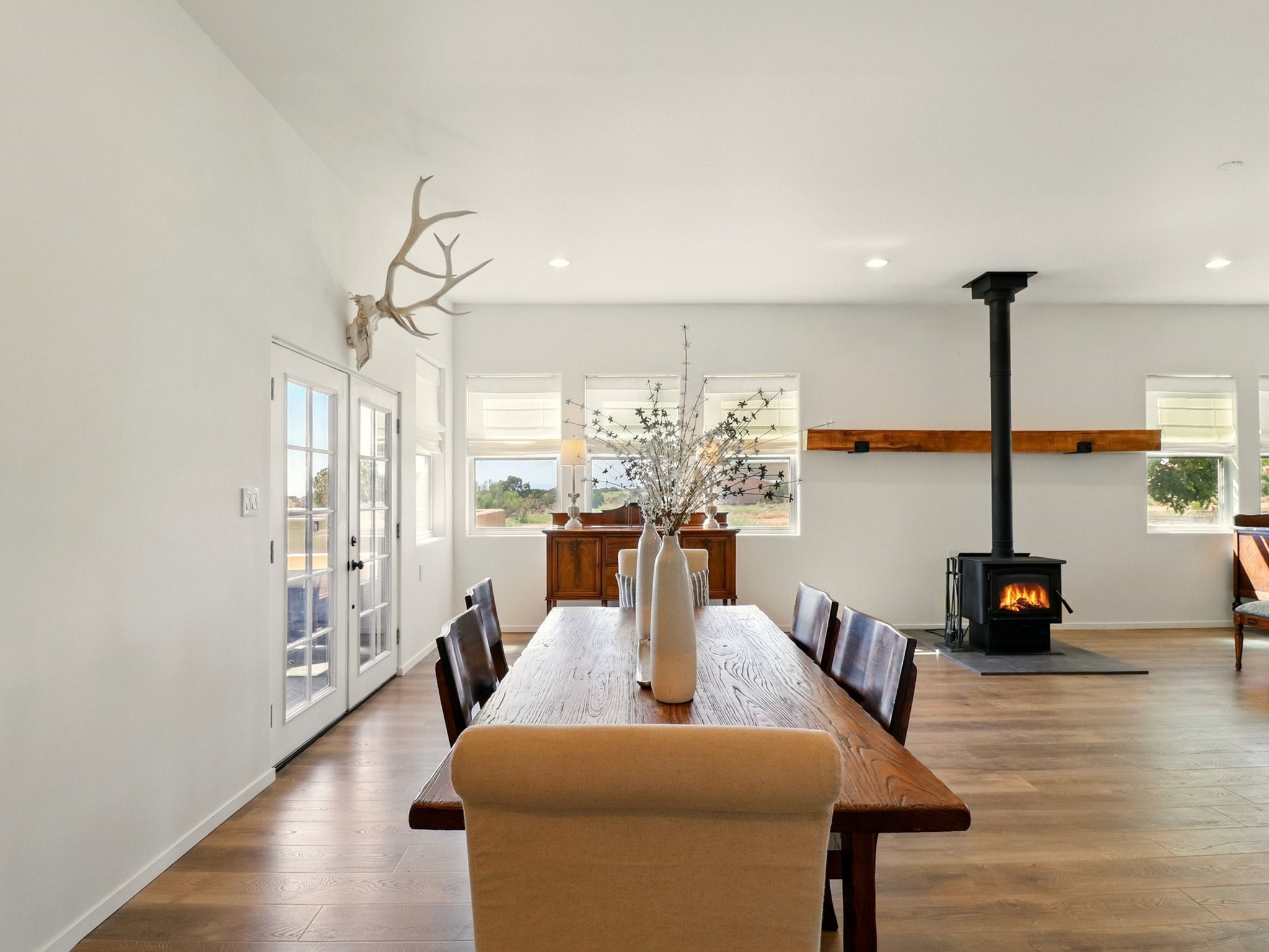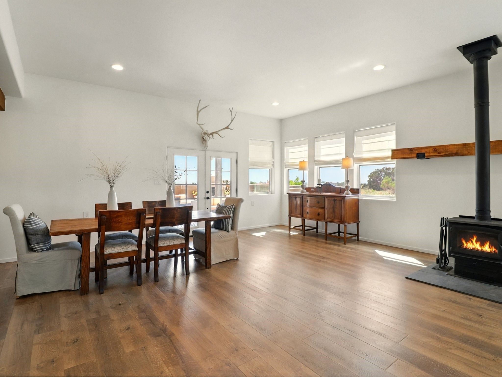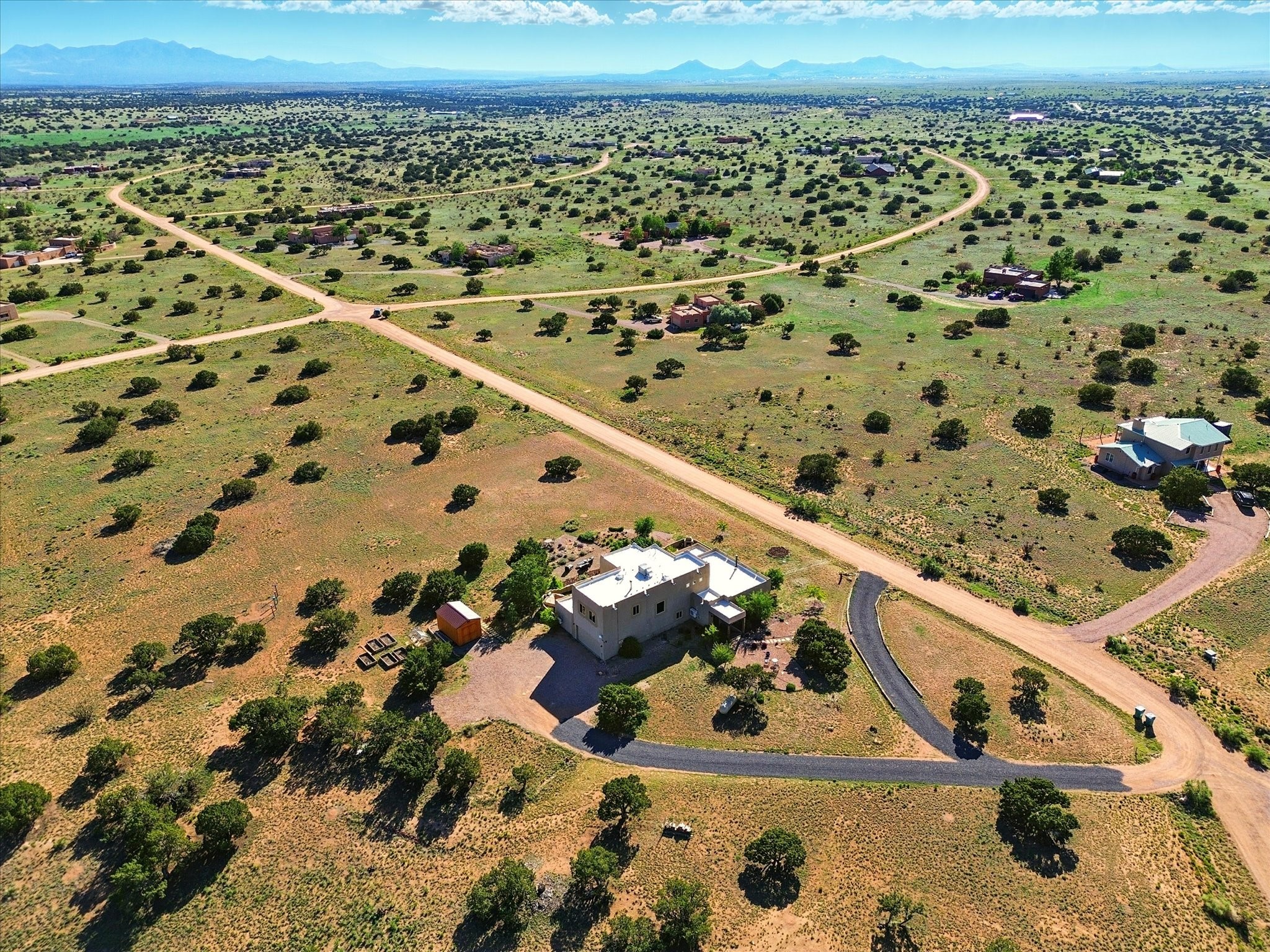 Seller concession available ($10,000 with acceptable offer)Experience breathtaking views surrounding this exceptional property located on just over 4 acres of pristine high desert landscape. This stunning home blends the timeless charm of Pueblo-style architecture with the inviting touches of modern farmhouse design including an expansive 1,000 square foot addition completed in 2020. The versatile floor plan is anchored by a beautifully updated gourmet kitchen featuring a Sub-Zero refrigerator and custom finishes with ample workspace, and a seamless flow for entertaining. On the main floor you will find that the primary bedroom showcases soaring ceilings with a picturesque view and private access to the outdoor courtyard. Complete with an oversized closet area and beautifully renovated bathroom that is perfect for soaking in the bathtub while taking in the view from the large picture window right above. The second floor consists of two bedrooms, a bonus room and two bathrooms. The balcony off the ensuite bedroom is ideal for soaking in the mountains and serene sunsets. Step outside to enjoy the covered portal and cozy up by the outdoor wood-burning fireplace. Fruit trees dot the landscape, adding character and a touch of sweetness to your retreat. Backed by peaceful green space and only minutes from the Galisteo Basin preserve, Santa Fe Rail Trail, this property offers the perfect blend of tranquility, access to nature and refined living. Do not miss this rare opportunity to own a home that truly captures the spirit and beauty of New Mexico.Pre-listing inspection report is available.
