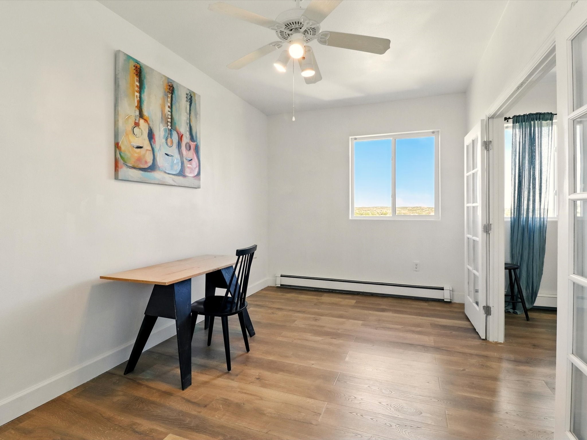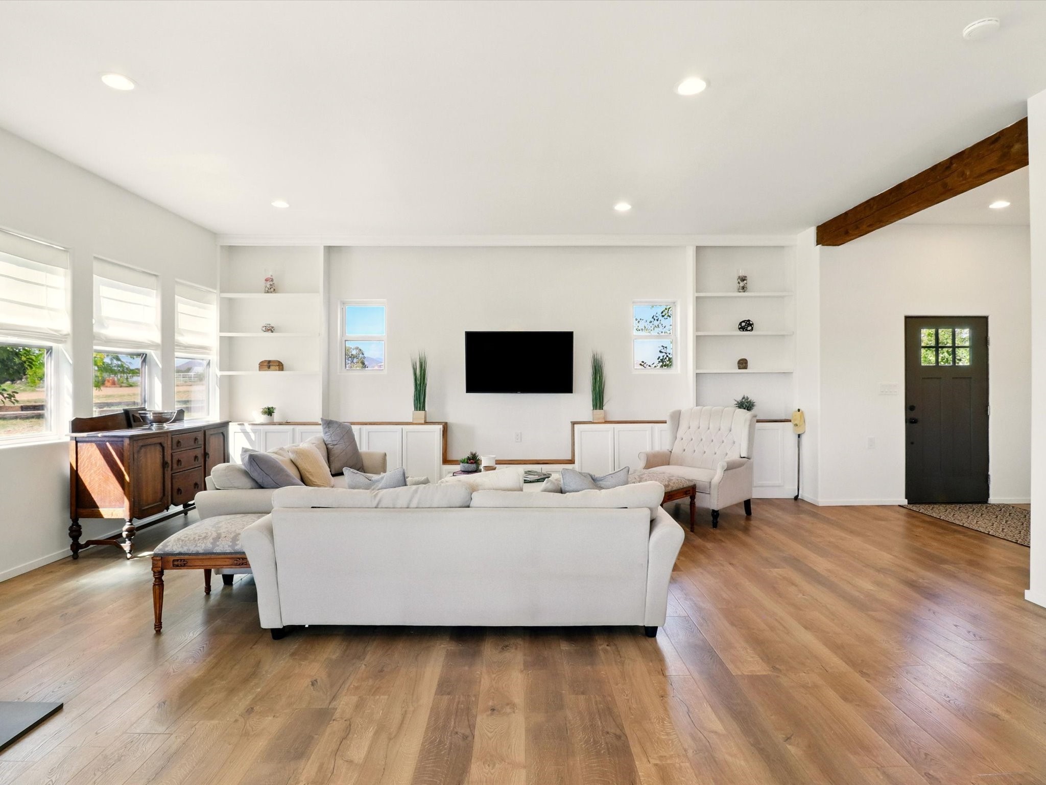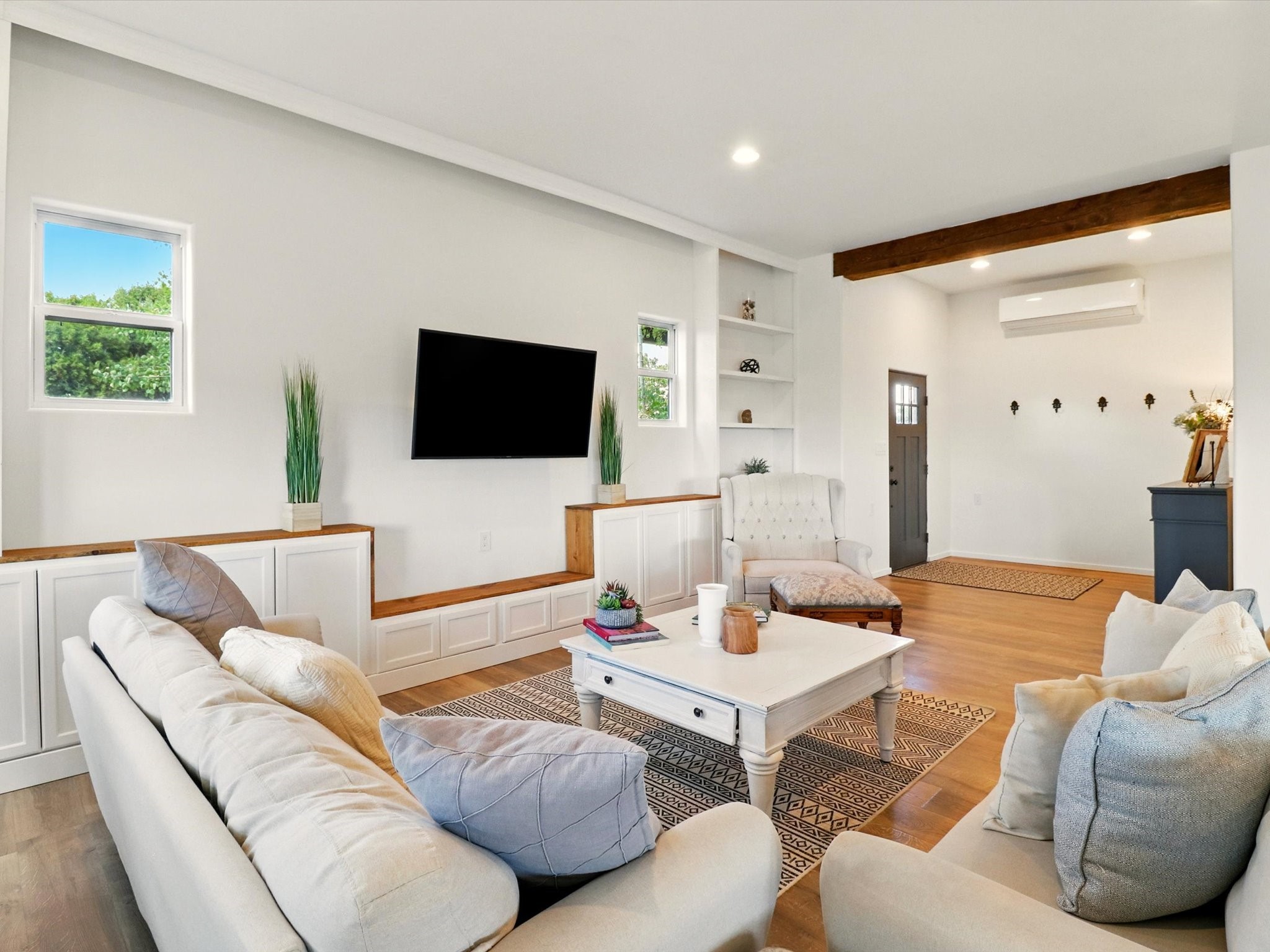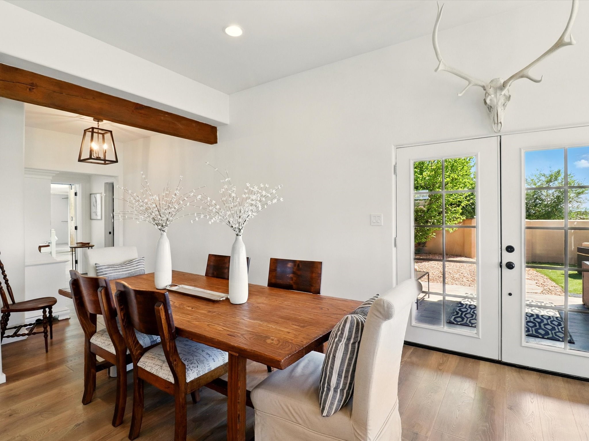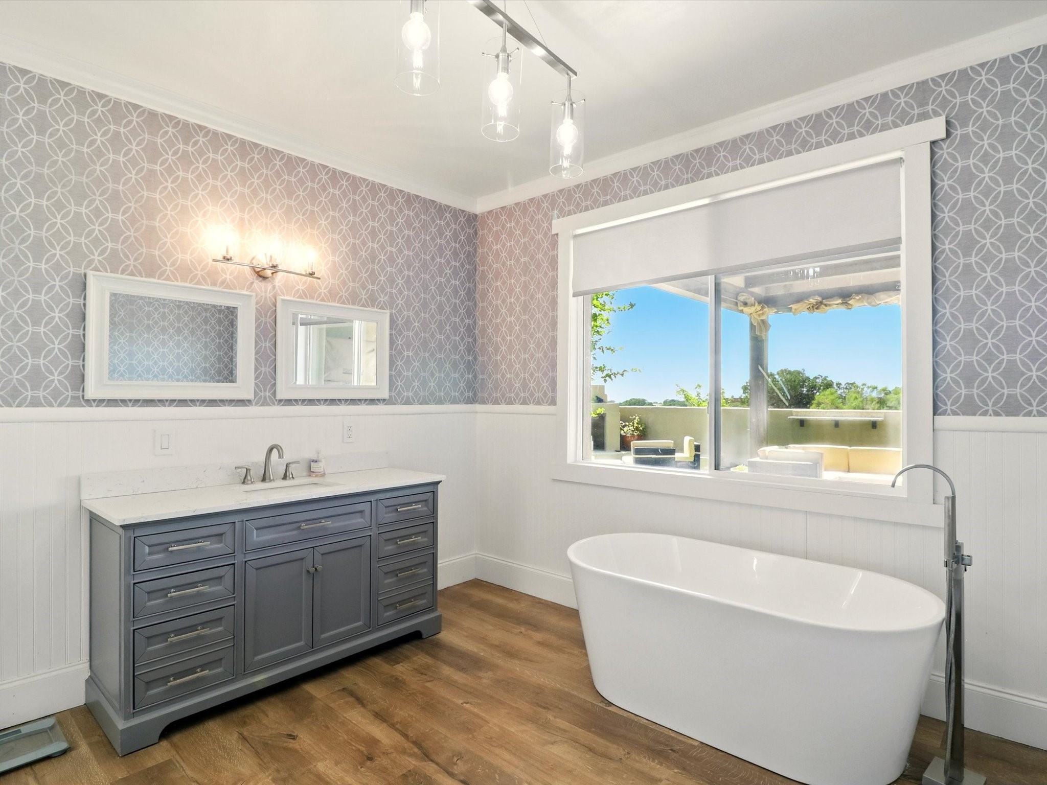 Seller concession available ($10,000 with acceptable offer)Experience breathtaking views surrounding this exceptional property located on just over 4 acres of pristine high desert landscape. This stunning home blends the timeless charm of Pueblo-style architecture with the inviting touches of modern farmhouse design including an expansive 1,000 square foot addition completed in 2020. The versatile floor plan is anchored by a beautifully updated gourmet kitchen featuring a Sub-Zero refrigerator and custom finishes with ample workspace, and a seamless flow for entertaining. On the main floor you will find that the primary bedroom showcases soaring ceilings with a picturesque view and private access to the outdoor courtyard. Complete with an oversized closet area and beautifully renovated bathroom that is perfect for soaking in the bathtub while taking in the view from the large picture window right above. The second floor consists of two bedrooms, a bonus room and two bathrooms. The balcony off the ensuite bedroom is ideal for soaking in the mountains and serene sunsets. Step outside to enjoy the covered portal and cozy up by the outdoor wood-burning fireplace. Fruit trees dot the landscape, adding character and a touch of sweetness to your retreat. Backed by peaceful green space and only minutes from the Galisteo Basin preserve, Santa Fe Rail Trail, this property offers the perfect blend of tranquility, access to nature and refined living. Do not miss this rare opportunity to own a home that truly captures the spirit and beauty of New Mexico.Pre-listing inspection report is available.