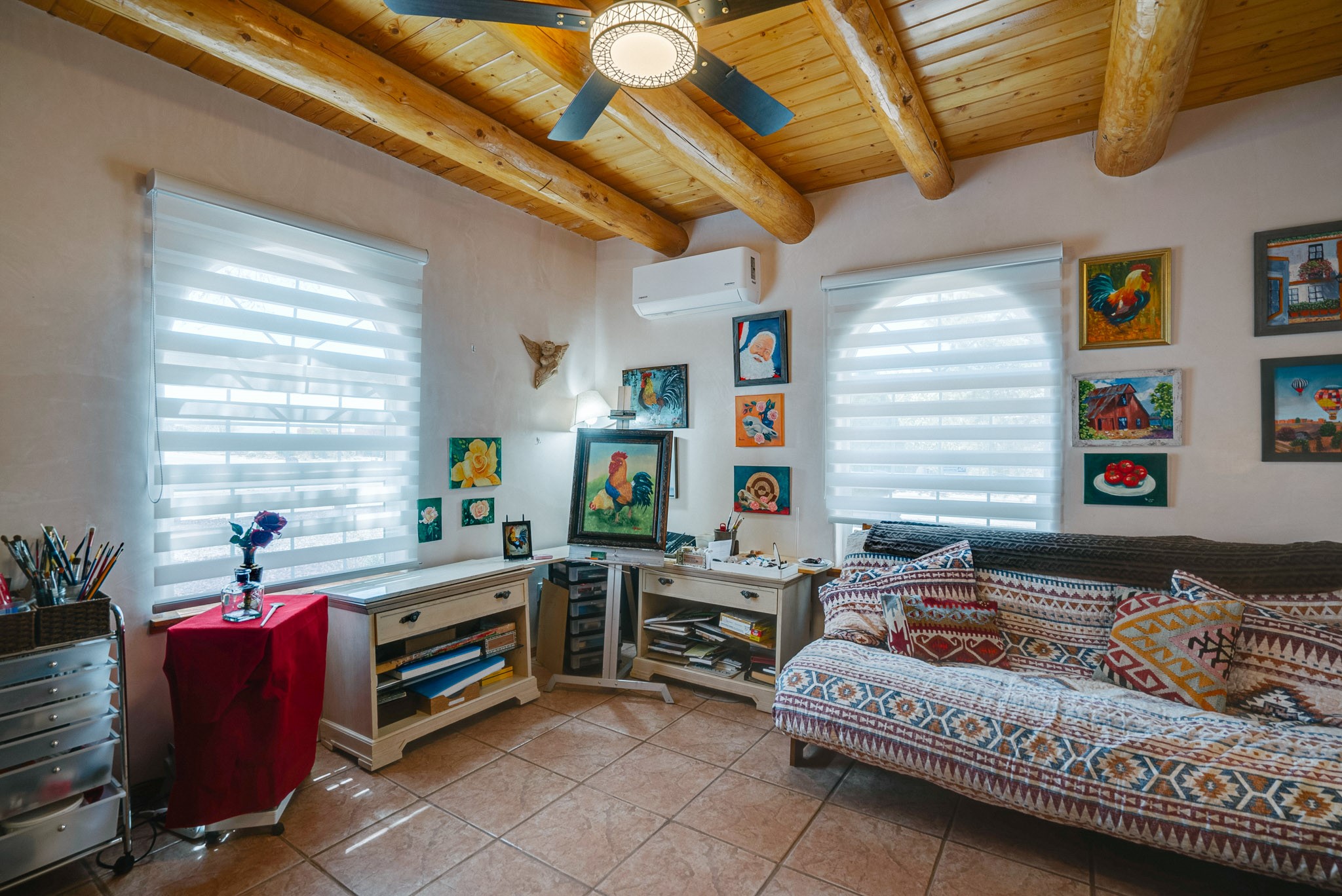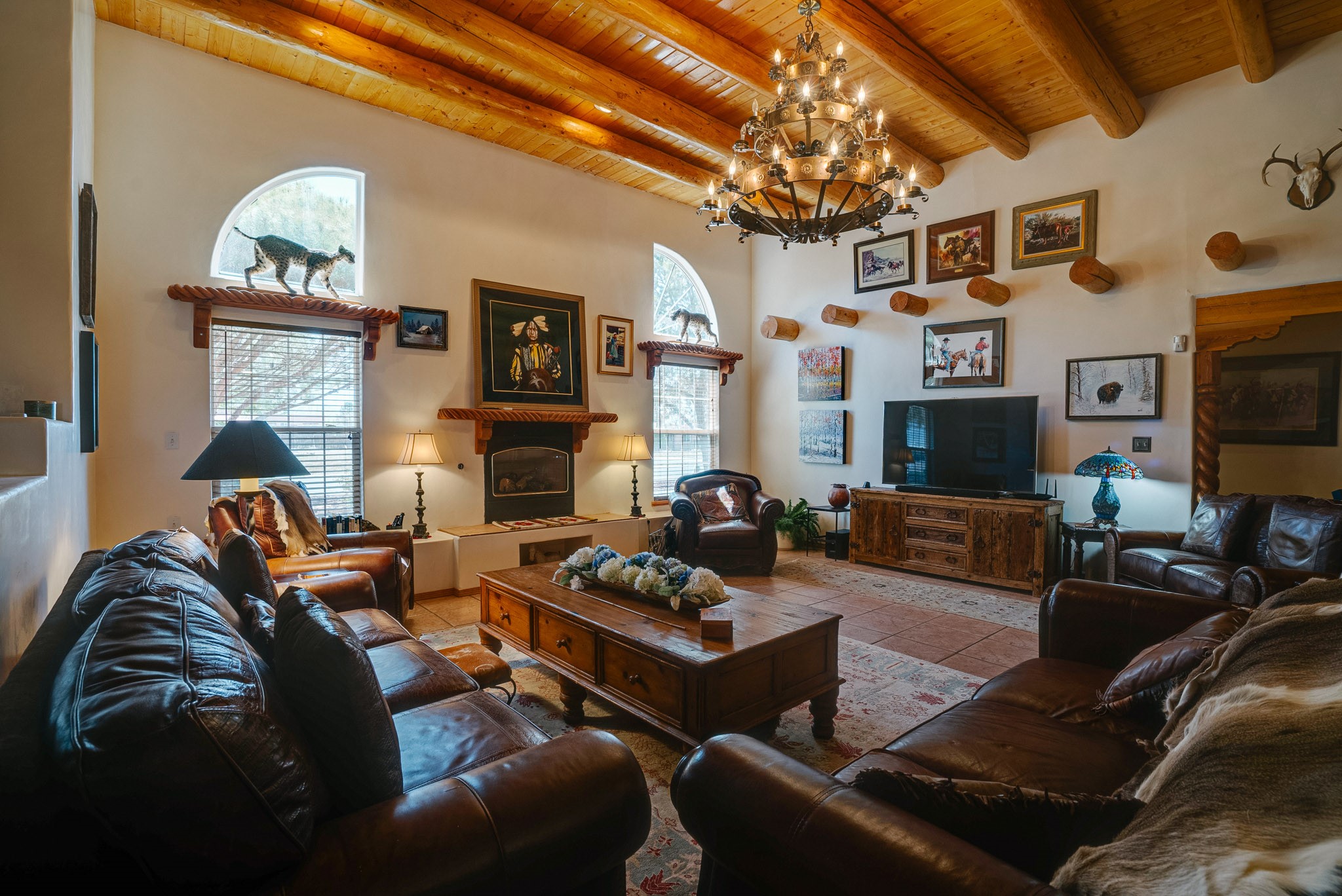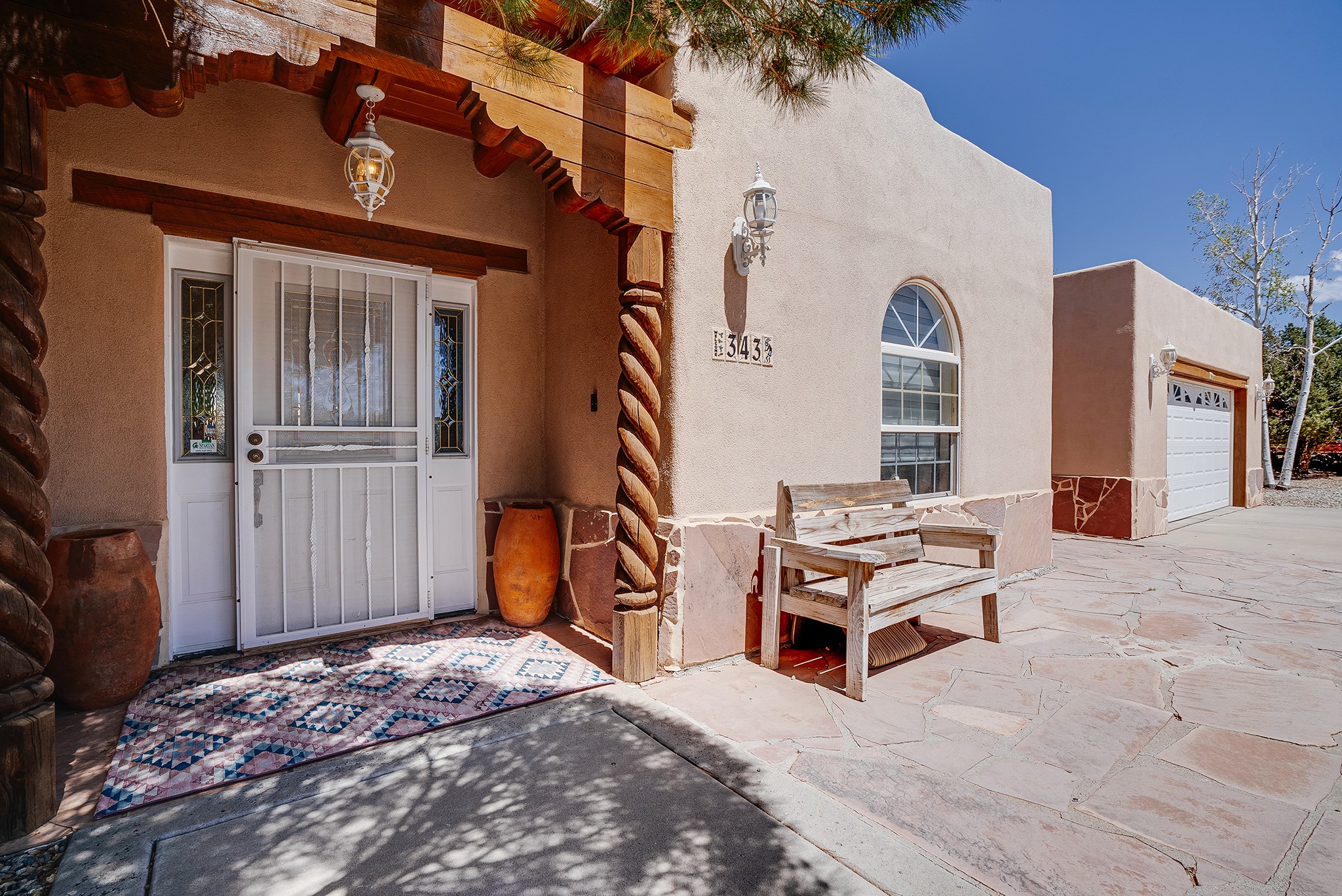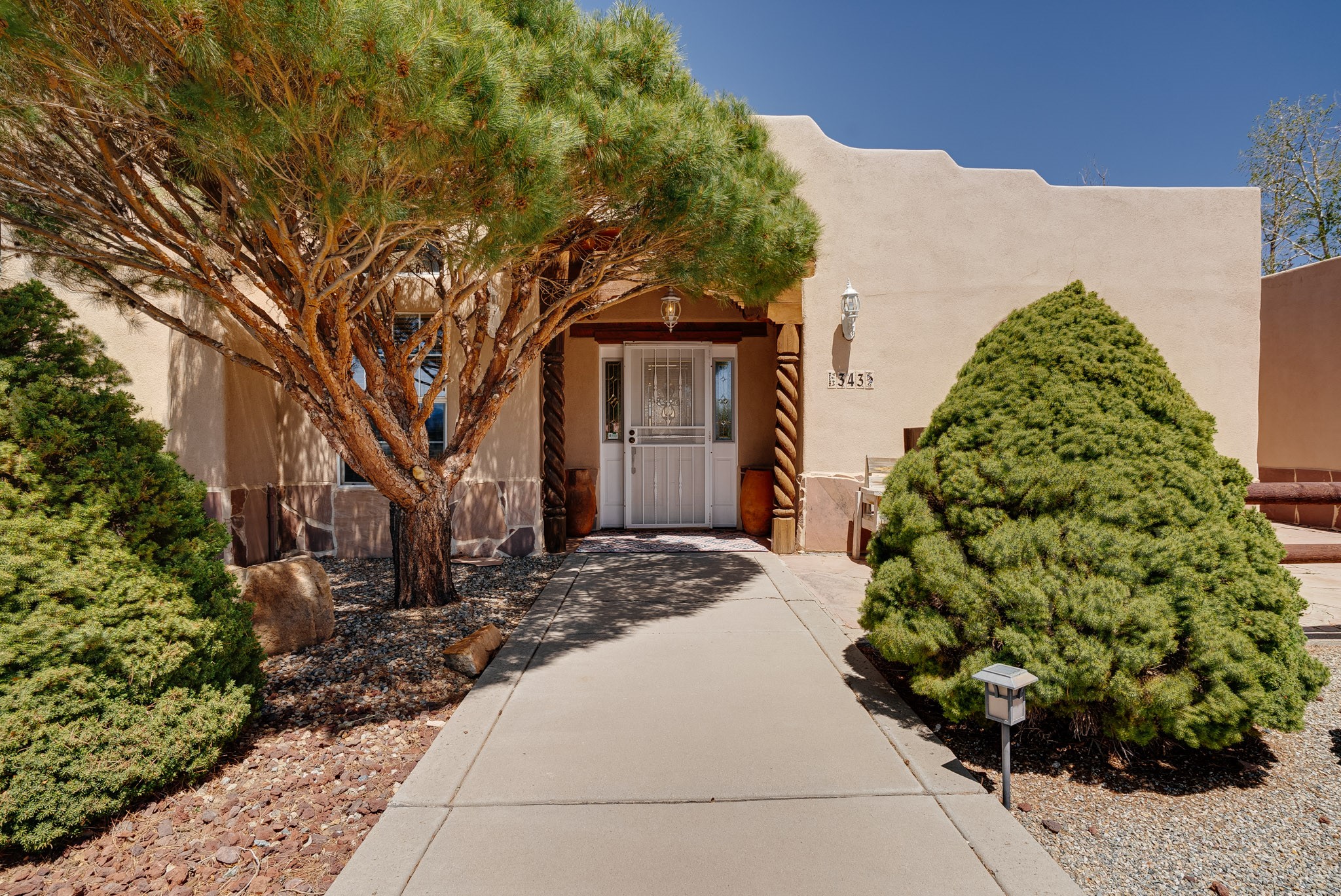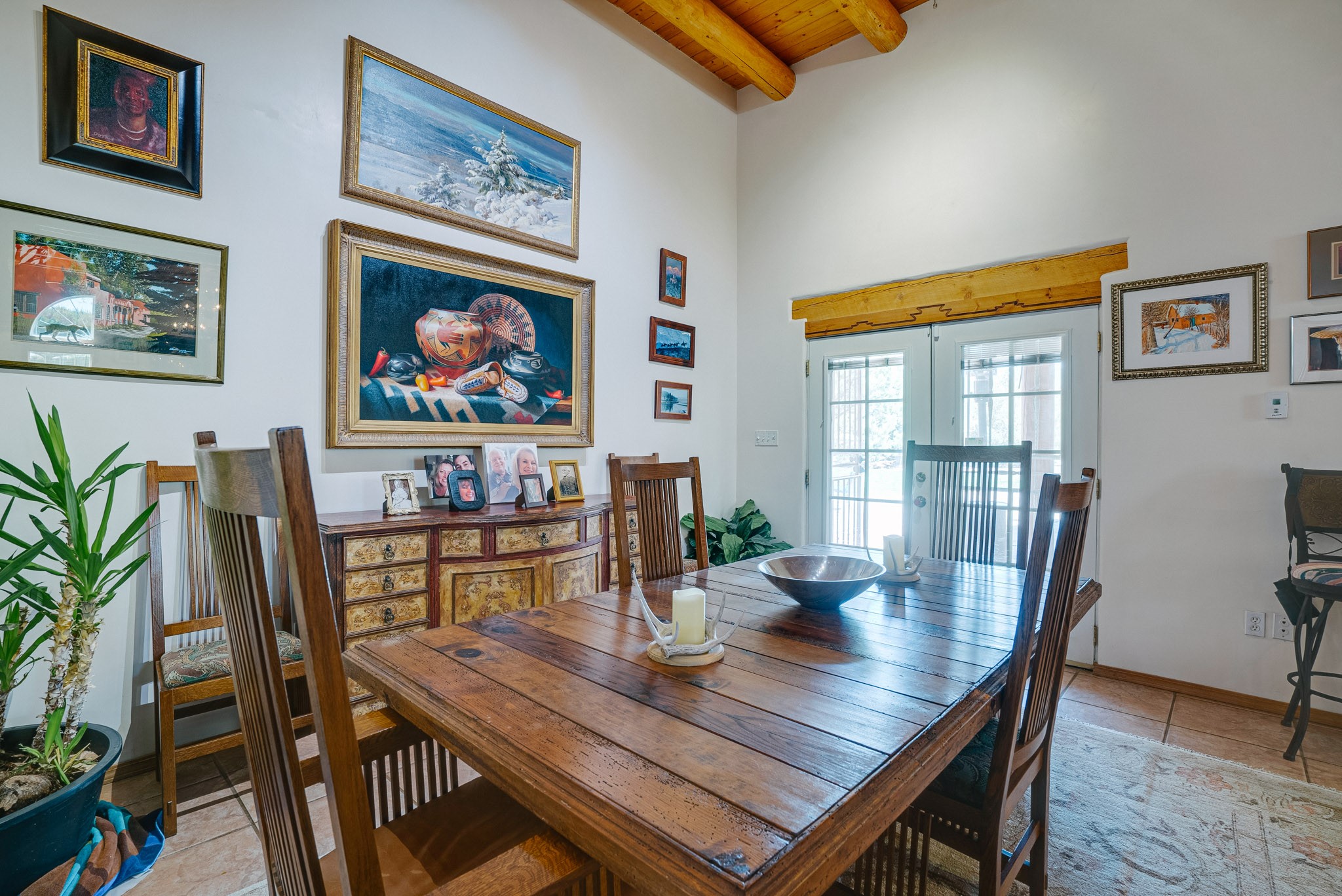 Discover this spacious 4-bedroom, 3-bathroom home offering 3,400 square feet of comfort, style, and Southwestern charm -- all nestled in the desirable Vegas De Taos subdivision. Enjoy the convenience of an in-town location with the tranquility of a secluded .68-acre lot, complete with paved roads, sidewalks, and mature landscaping. This special neighborhood offers so much, including a strong sense of community. The beautifully landscaped property features multiple water features, lush grass, raised garden beds, and a stunning assortment of trees -- including mature conifers, deciduous, and fruit trees. Relax under big blue skies with breathtaking mountain views, and enjoy the easy-care xeriscaping in the front and lush backyard oasis in the rear. Thoughtfully designed rock walls and wooden fences create a variety of distinct, inviting outdoor spaces.The home's grand great room welcomes you with 14' vaulted ceilings, custom woodwork, and radiant floor heating, complemented by efficient split units for year-round comfort. French doors off the dining area open to a spacious covered veranda -- perfect for entertaining or quiet evenings. The kitchen is a dream with stainless steel appliances, a double oven, a smooth-surface cooktop on the island, a 3-basin sink, and an expansive island that seats up to eight. Host family gatherings in the formal dining room or enjoy casual meals around the island.The west wing offers two bright guest bedrooms, a large full bathroom, and a luxurious master suite featuring hickory Pergo flooring, a sitting area or office nook, a whirlpool tub, separate shower, and extra-large walk-in closet. The east wing includes another spacious bedroom, guest bathroom, large pantry, hall closet, and a laundry room leading to the covered breezeway and detached two-car garage.Minutes from downtown Taos, the hospital, and grocery stores, this home offers the perfect blend of convenience, space, and a true homestead feel -- a rare find in Taos!