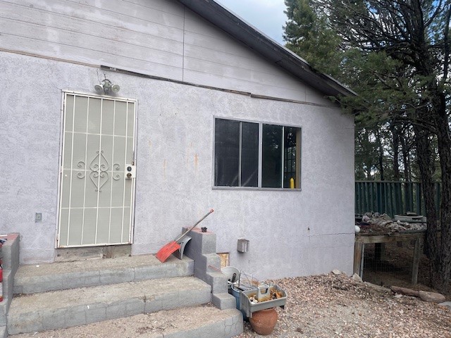NEED A PROJECT, HERE IT IS! 88 Los Altos de Cicuye awaits your efforts. Formerly a bank owned now privately owned, the structure in poor condition and will need extensive renovation. Current owner has no knowledge regarding the land, structure or well. It might be a Stuccoed manufactured home or stick built or made up of both. There are two separate living spaces, each with kitchen and bath. The front unit is larger with 2 bathrooms. The property includes a private well and culvert style well house, electricity (without a meter) partially fenced 1-acre wooded lot almost to the top of Los Altos de Cicuye off NM hwy 50 1/2 way to Pecos, 27 minutes to Santa Fe's I-25 Old Pecos trail exit. The owners have had the house emptied out and it is ready for showings. All appointments need to be prearranged and accompanied with a Realtor. Please do not go on side deck.