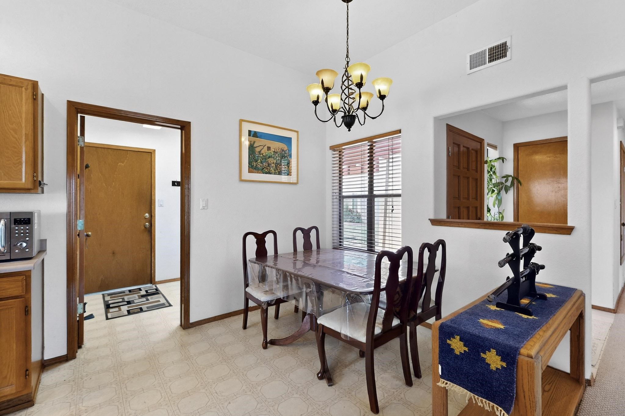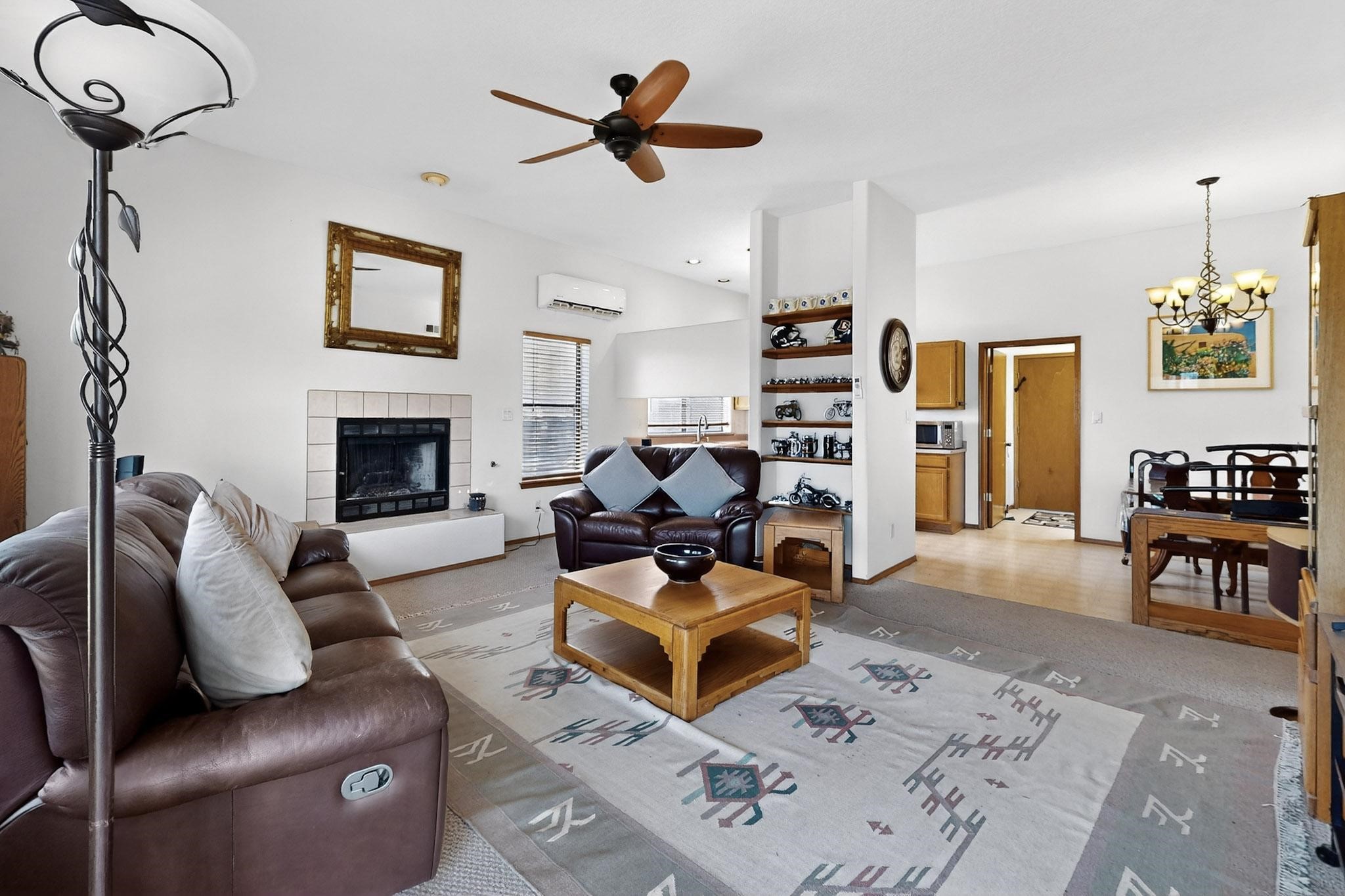 Beautiful home in gated community! This charming home is in the highly desirable Vista Primera subdivision. It features 3 spacious bedrooms, 2 baths, and sits on an expansive enclosed lot (approximately 1/3-acre) that provides privacy and convenience.The large backyard provides ample space for outdoor enjoyment, with the option to raise the enclosing wall for added privacy. Inside, you'll find a two-car insulated garage with a generous workspace and built-in cabinets. The home has a central forced-air furnace, a heat/cooling Pioneer mini-split system, and a natural gas fireplace--ensuring year-round comfort. Lovingly maintained with only two owners, this home has been gently used-- with most of its years being used only as a second home. The property also benefits from the community's private park and protective covenants, safeguarding your investment.Conveniently located with quick access to I-25 and downtown Santa Fe via Veterans Memorial Highway (State Road 599), the property is less than a mile from the newly expanded Santa Fe Airport and close to the Santa Fe Country Club, featuring a swimming pool, and a golf course. Competitively priced and ready for your personal touches. Schedule a viewing today!