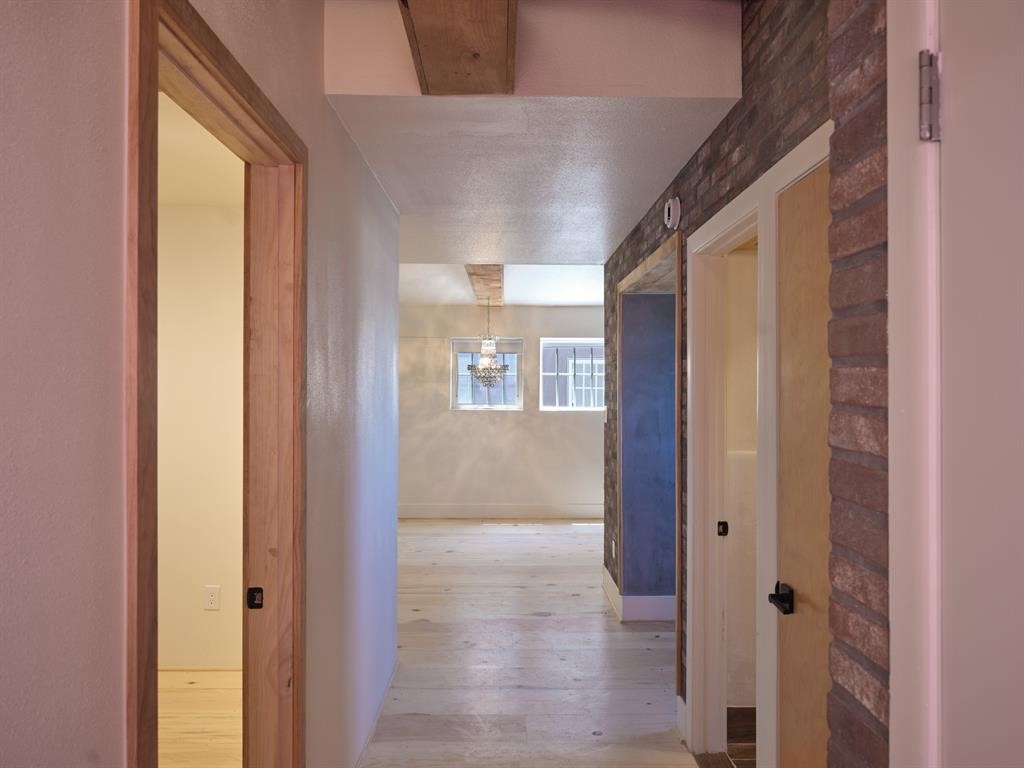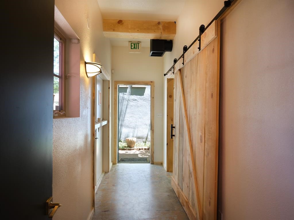 Welcome to 1918 Hopewell Unit C, a remarkable two-unit condo property nestled in the vibrant heart of Santa Fe. These newly renovated condos offer a sophisticated blend of modern luxury, flexibility, and charm--making them an ideal choice for discerning homeowners, creatives, or live/work entrepreneurs. The upstairs unit is designed for elegant residential living, featuring an exquisitely updated interior bathed in natural light. Custom wide-plank wood floors create a seamless flow throughout, exuding warmth and refinement while visually expanding the space. Exposed wooden beams overhead add architectural interest and a rustic-chic touch. A custom kitchen with artisan cabinets, a cement countertop, and plastered accent walls elevate the aesthetic. Every detail has been considered--from bespoke doors to thoughtful built-ins. The main living area is bright and open, featuring shelving with a matching wooden bench and a dazzling crystal chandelier that serves as a stunning focal point. Downstairs, the second unit was designed with an artist or small business in mind, offering polished concrete floors, exposed beams, and visible ductwork that bring a contemporary, industrial-chic vibe. This flexible space includes a full bathroom, a sleek kitchenette with dark cabinetry and a gold-toned faucet, and multiple open areas ideal for a gallery, studio, office, or client-facing business. A striking wooden barn door and custom wood finishes add rich character, while track lighting and ambient sconces provide an ideal backdrop for creative or professional work. With two separate units, two bathrooms (one on each level), and dual zoning for commercial and residential use, this unique property is perfectly suited for a live/work lifestyle--live comfortably upstairs while running a business, studio, or gallery downstairs. The possibilities are truly endless.