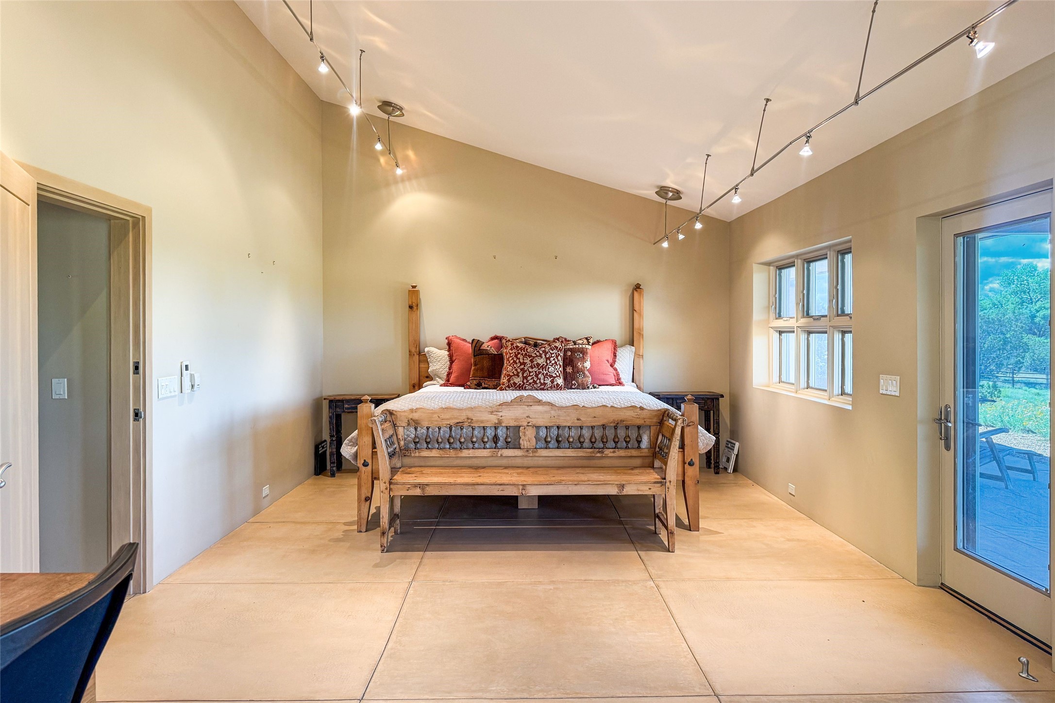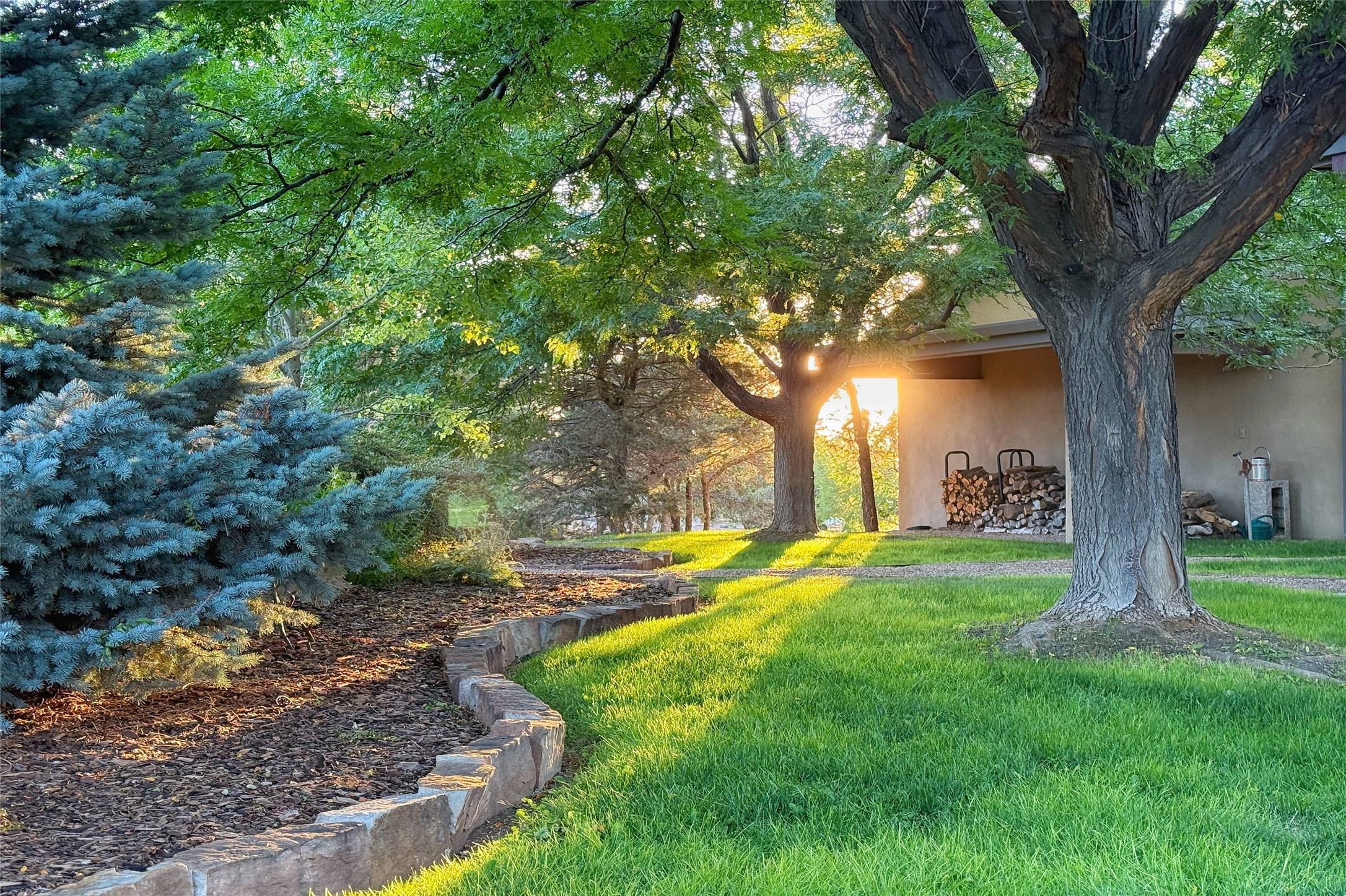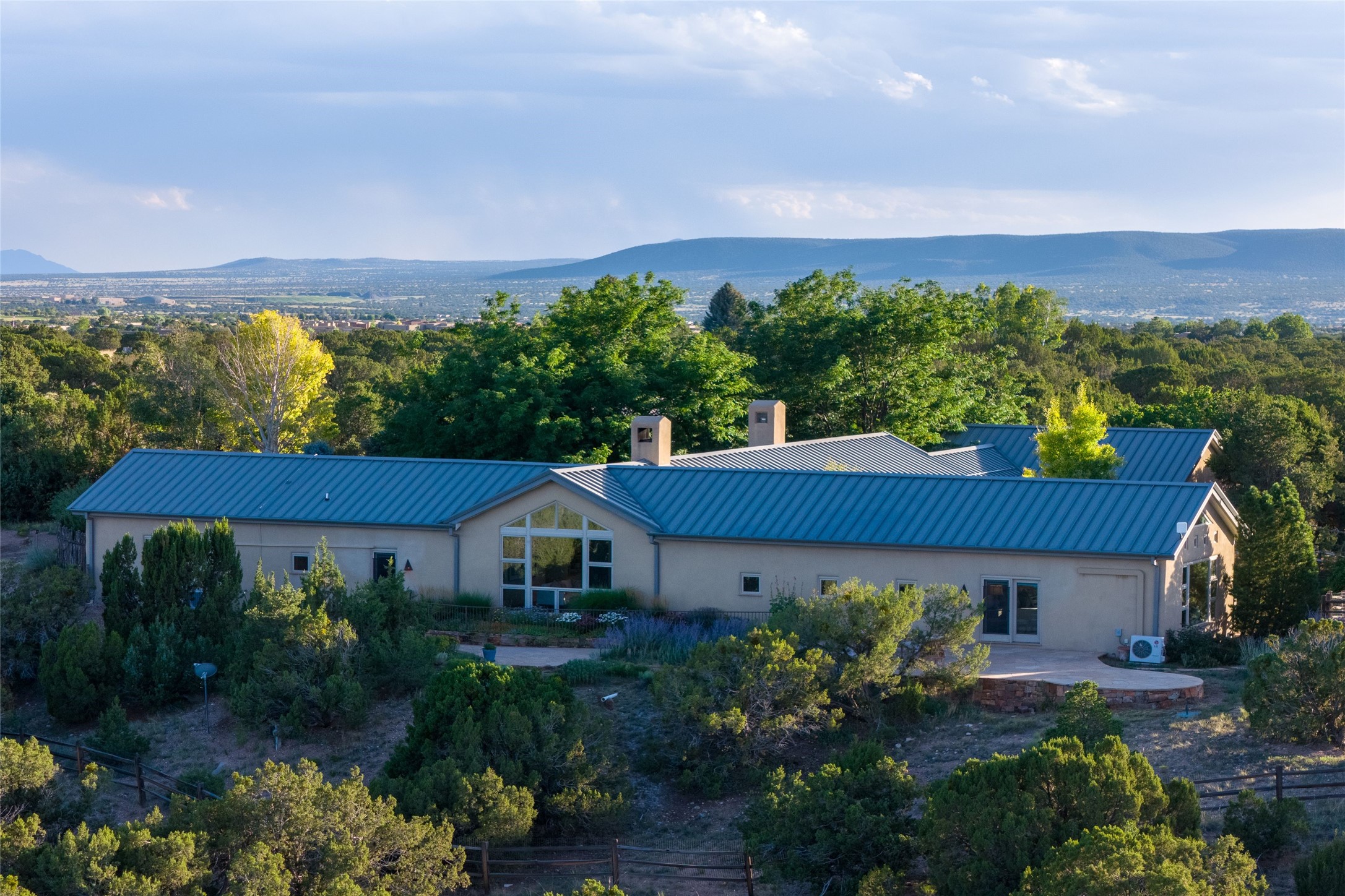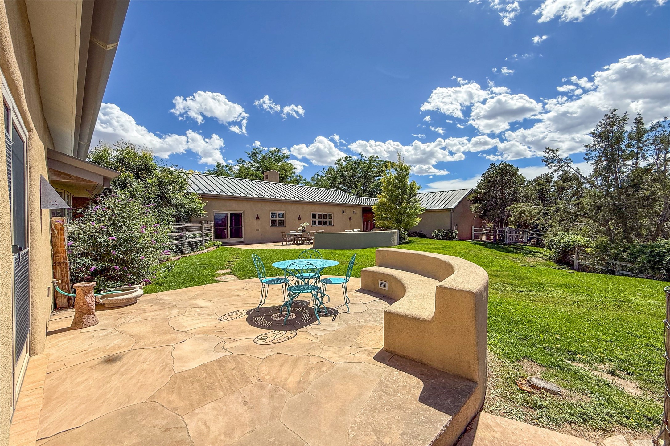 This serene La Tierra Nueva compound, with three distinct residences totaling 7,341 sq. feet of living space. Designed by renowned architect, Lila DeWindt, this lush oasis boasts mature landscaping in a serene, country-like setting with Sangre and Jemez mountain views, 11.85 acres, and vegetable and perennial gardens. The 3,982 sq. foot single level main residence features a blend of timeless Northern NM and modern design, a dramatic high-pitched roof, double-sided stone fireplace, copious natural light, andlarge windows that capture breathtaking Sangre views. With two sitting rooms, a media room and bedrooms that boast mountain views, this residence is truly stunning. Sitting in a bay window, the primary suite's tub overlooks a flower garden. An open-concept kitchen is centered around a large island, perfect for hosting.The home enjoys a portal and multiple patio spaces. The charming 1,334 sq. foot, two bedroom guest house includes a full kitchen, Saltillo tile flooring, a wood-burning stove, large windows, and wrap-around porch. The impressive 2,025 sq footmodern 1-bedroom studio has an open living/dining/kitchen area, and portal. The adult rec-room, with built-in bar, is ideal as live/work space, artist studio/music room, car enthusiast or convert to a barn. Perfect for large gatherings and relaxing with sunset Jemez views. Beneath the studio, lays a remarkable walk-in wine cellar for approx. 5000 bottles with wine tasting area. The property also includes a generous fenced dog area and room for horses.A truly peaceful, secluded atmosphere just 18 minutes from the heart of Santa Fe or the airport, and 8 minutes to The Club at Las Campanas. La Tierra Nueva is a coveted, gated, equestrian-friendly community with access to over 60,000 acres BLM land, and tennis/pickleball court. Ideal for multigenerational living, a large family, or patron of the arts, 7 Goodnight Trail West is a true hidden gem.
