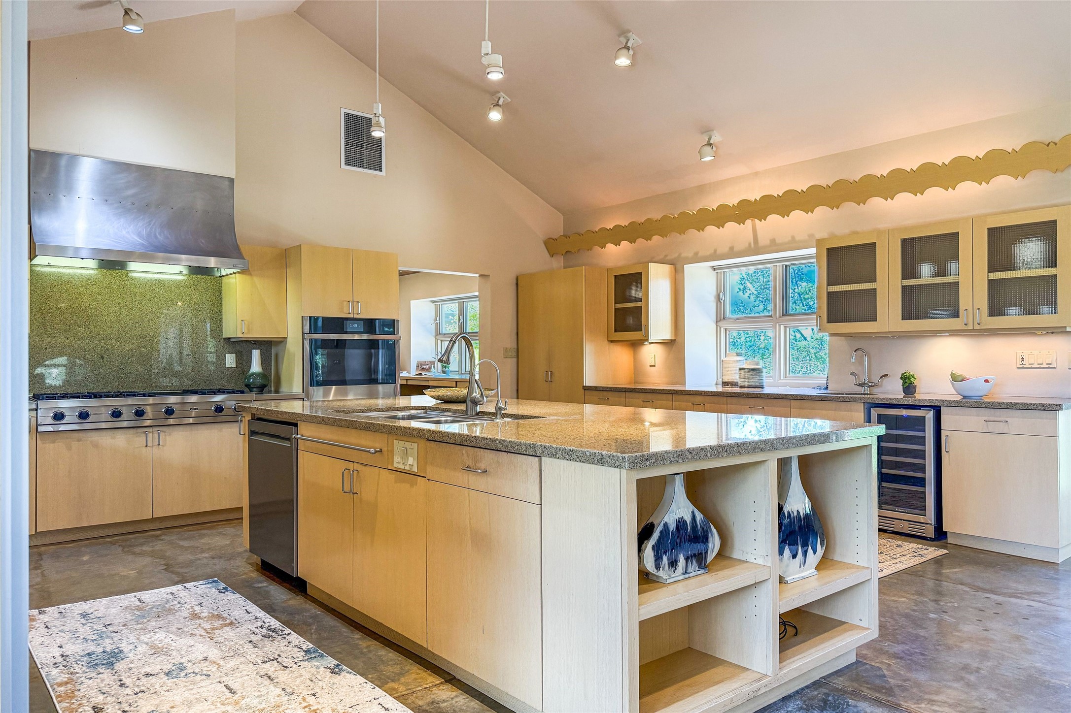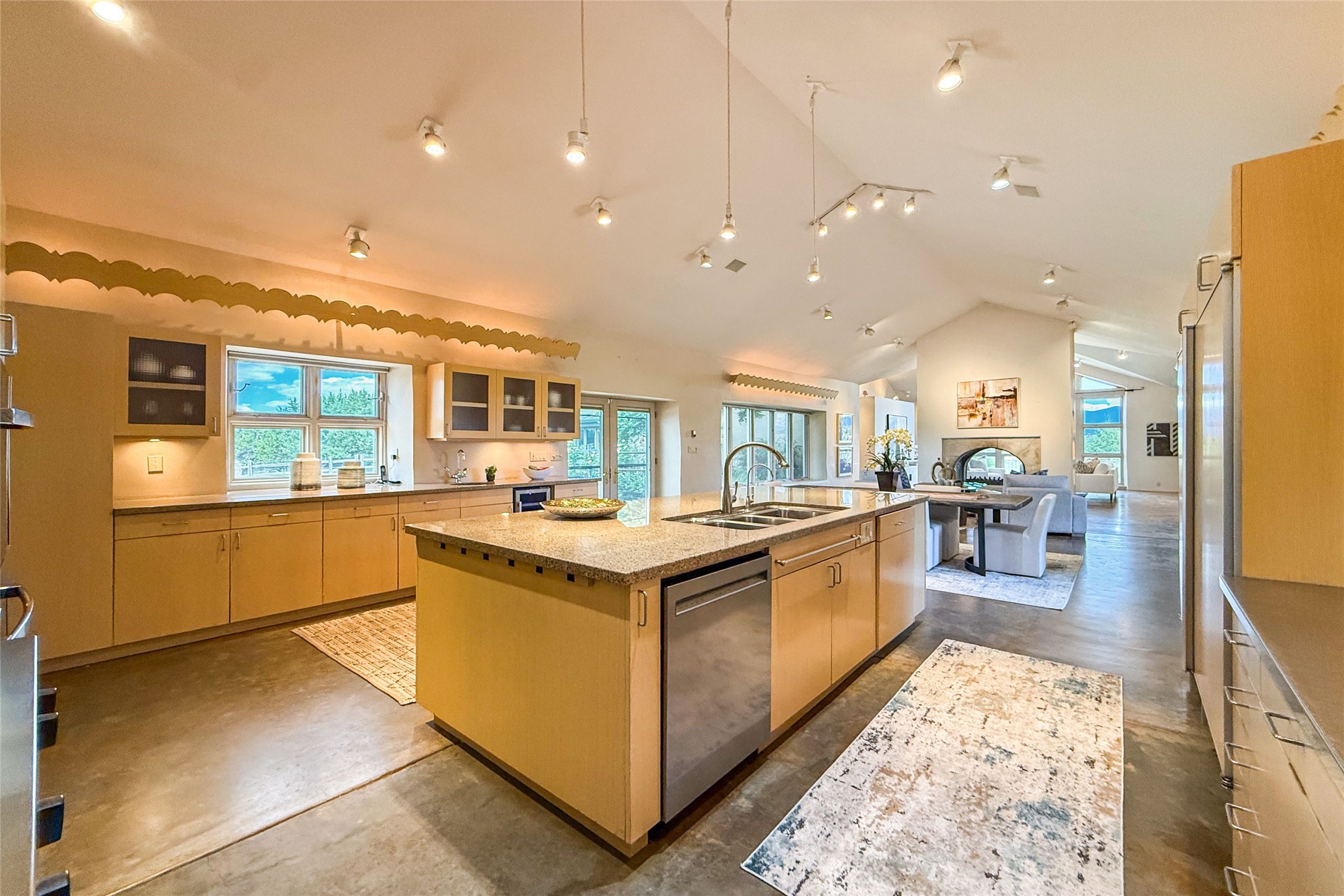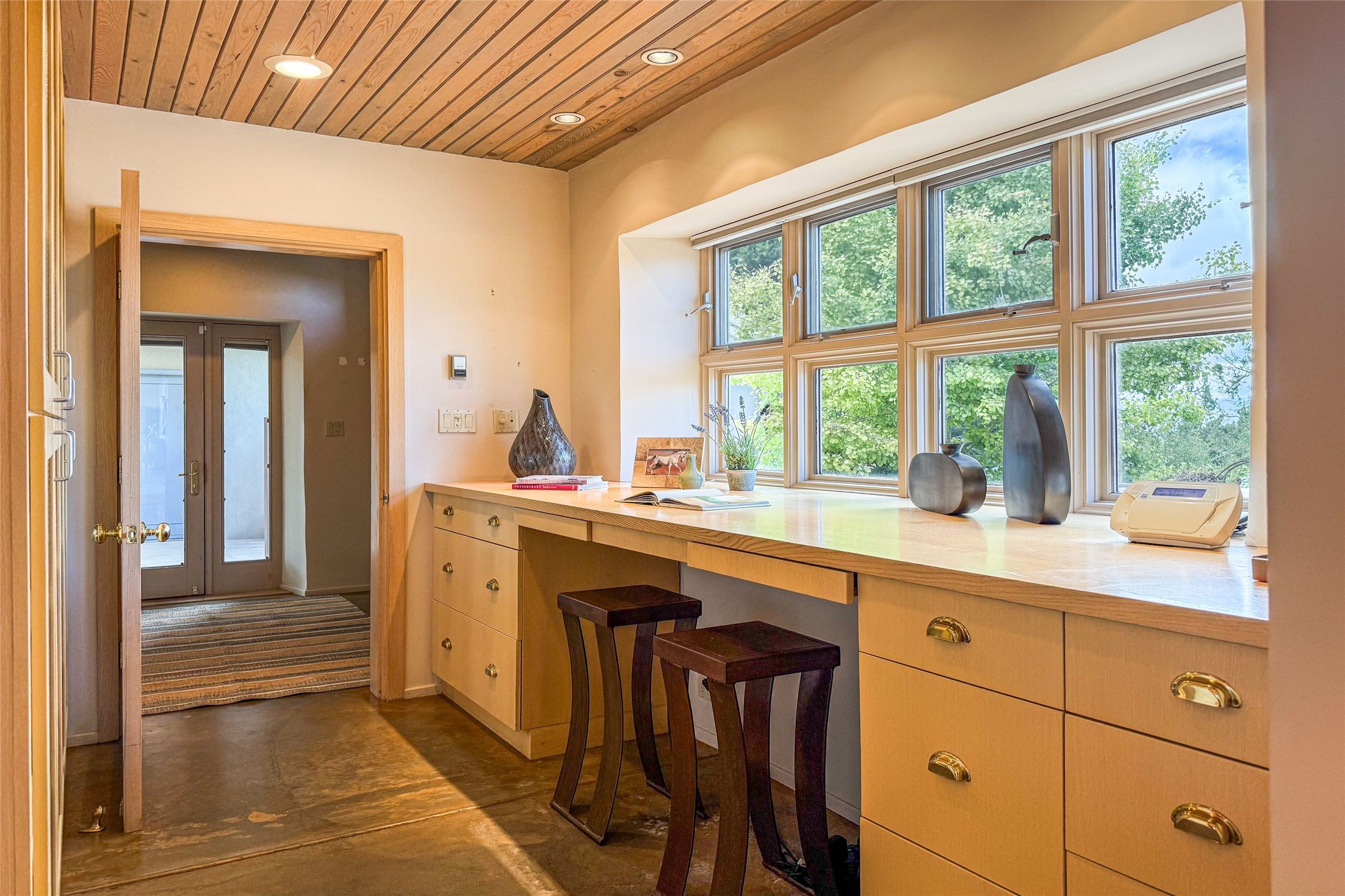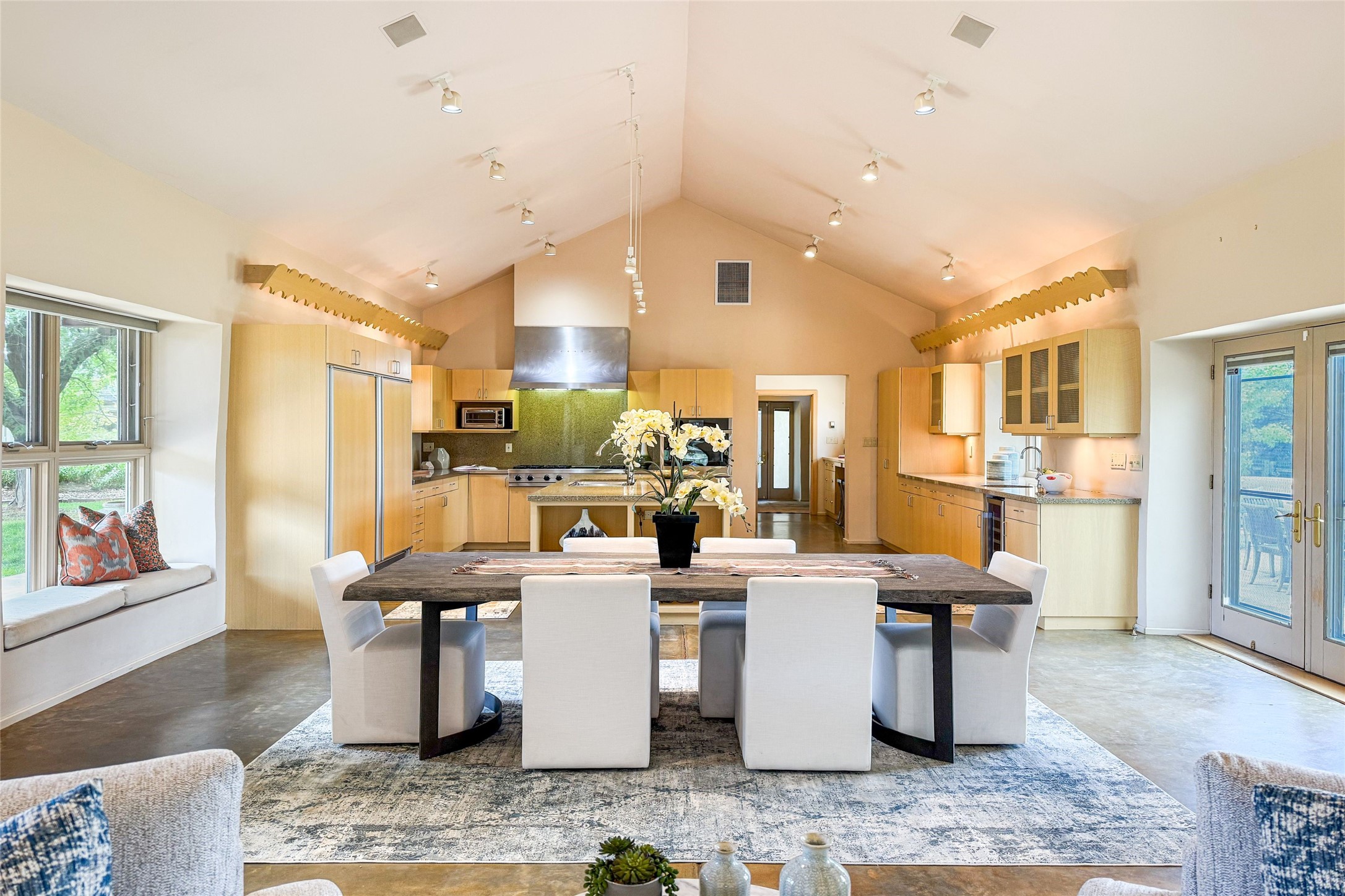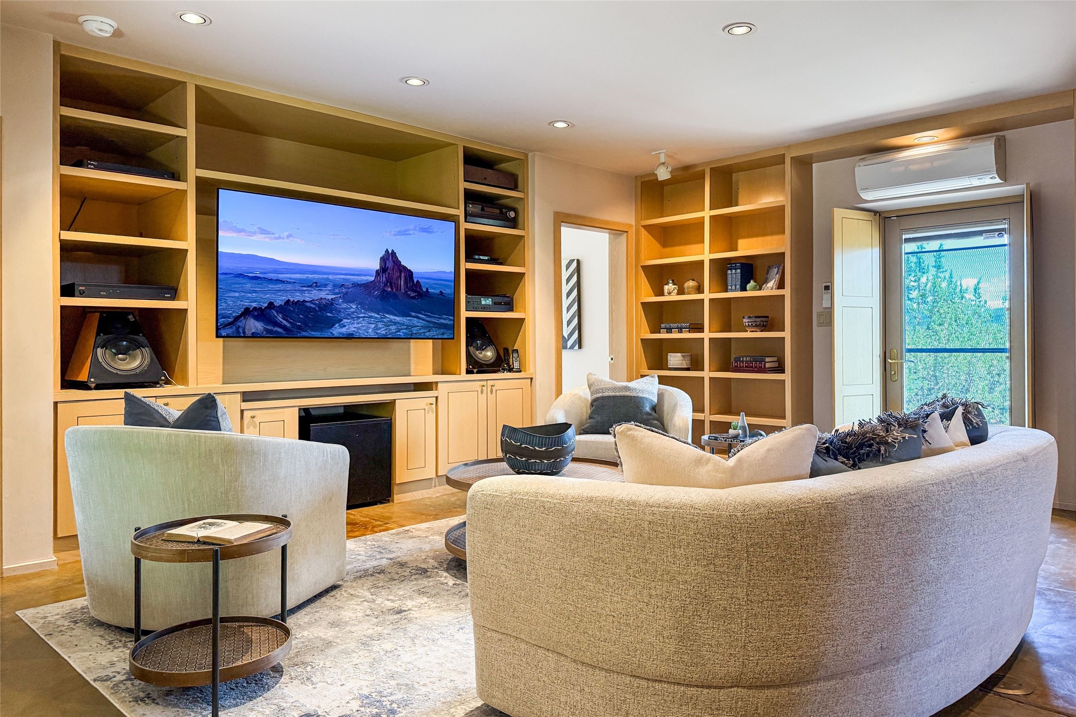 This serene La Tierra Nueva compound, with three distinct residences totaling 7,341 sq. feet of living space. Designed by renowned architect, Lila DeWindt, this lush oasis boasts mature landscaping in a serene, country-like setting with Sangre and Jemez mountain views, 11.85 acres, and vegetable and perennial gardens. The 3,982 sq. foot single level main residence features a blend of timeless Northern NM and modern design, a dramatic high-pitched roof, double-sided stone fireplace, copious natural light, andlarge windows that capture breathtaking Sangre views. With two sitting rooms, a media room and bedrooms that boast mountain views, this residence is truly stunning. Sitting in a bay window, the primary suite's tub overlooks a flower garden. An open-concept kitchen is centered around a large island, perfect for hosting.The home enjoys a portal and multiple patio spaces. The charming 1,334 sq. foot, two bedroom guest house includes a full kitchen, Saltillo tile flooring, a wood-burning stove, large windows, and wrap-around porch. The impressive 2,025 sq footmodern 1-bedroom studio has an open living/dining/kitchen area, and portal. The adult rec-room, with built-in bar, is ideal as live/work space, artist studio/music room, car enthusiast or convert to a barn. Perfect for large gatherings and relaxing with sunset Jemez views. Beneath the studio, lays a remarkable walk-in wine cellar for approx. 5000 bottles with wine tasting area. The property also includes a generous fenced dog area and room for horses.A truly peaceful, secluded atmosphere just 18 minutes from the heart of Santa Fe or the airport, and 8 minutes to The Club at Las Campanas. La Tierra Nueva is a coveted, gated, equestrian-friendly community with access to over 60,000 acres BLM land, and tennis/pickleball court. Ideal for multigenerational living, a large family, or patron of the arts, 7 Goodnight Trail West is a true hidden gem.