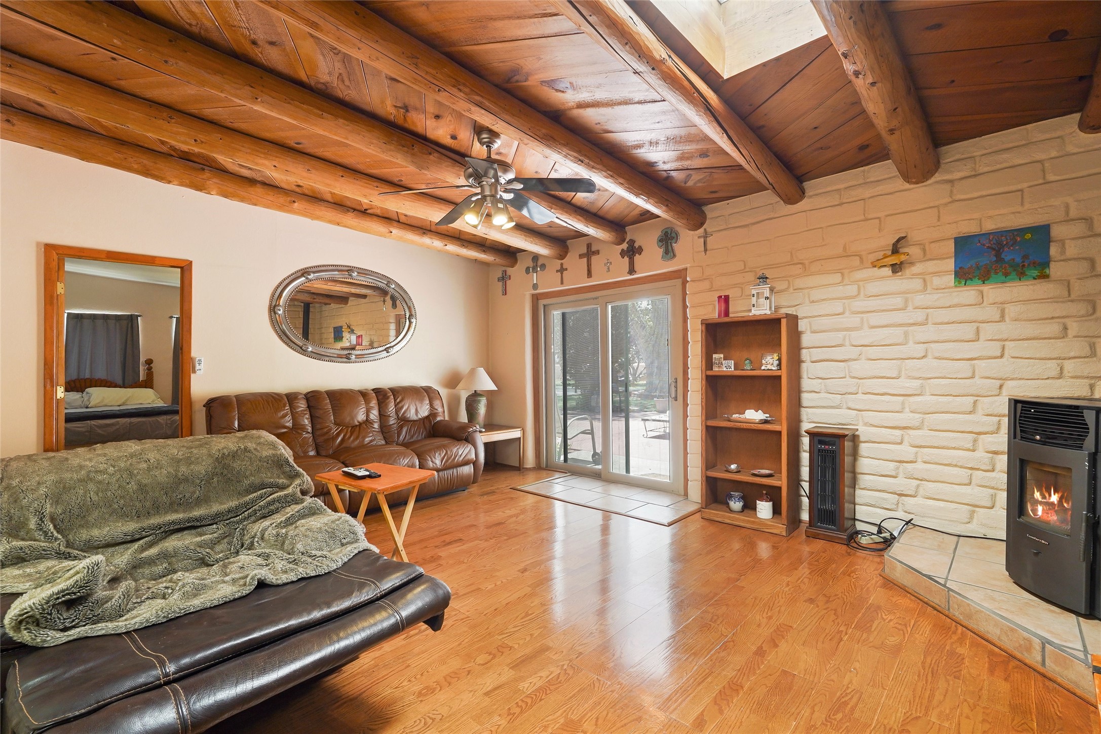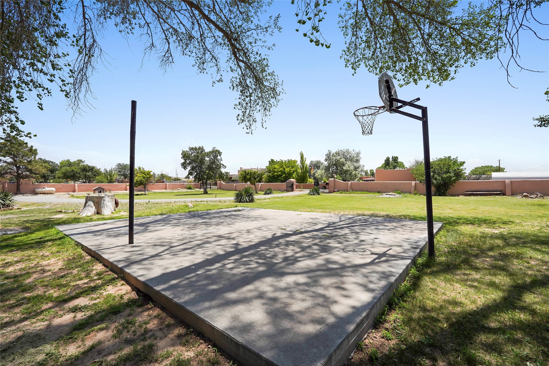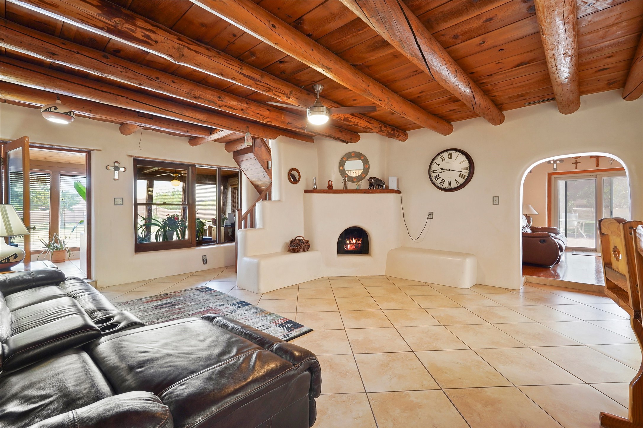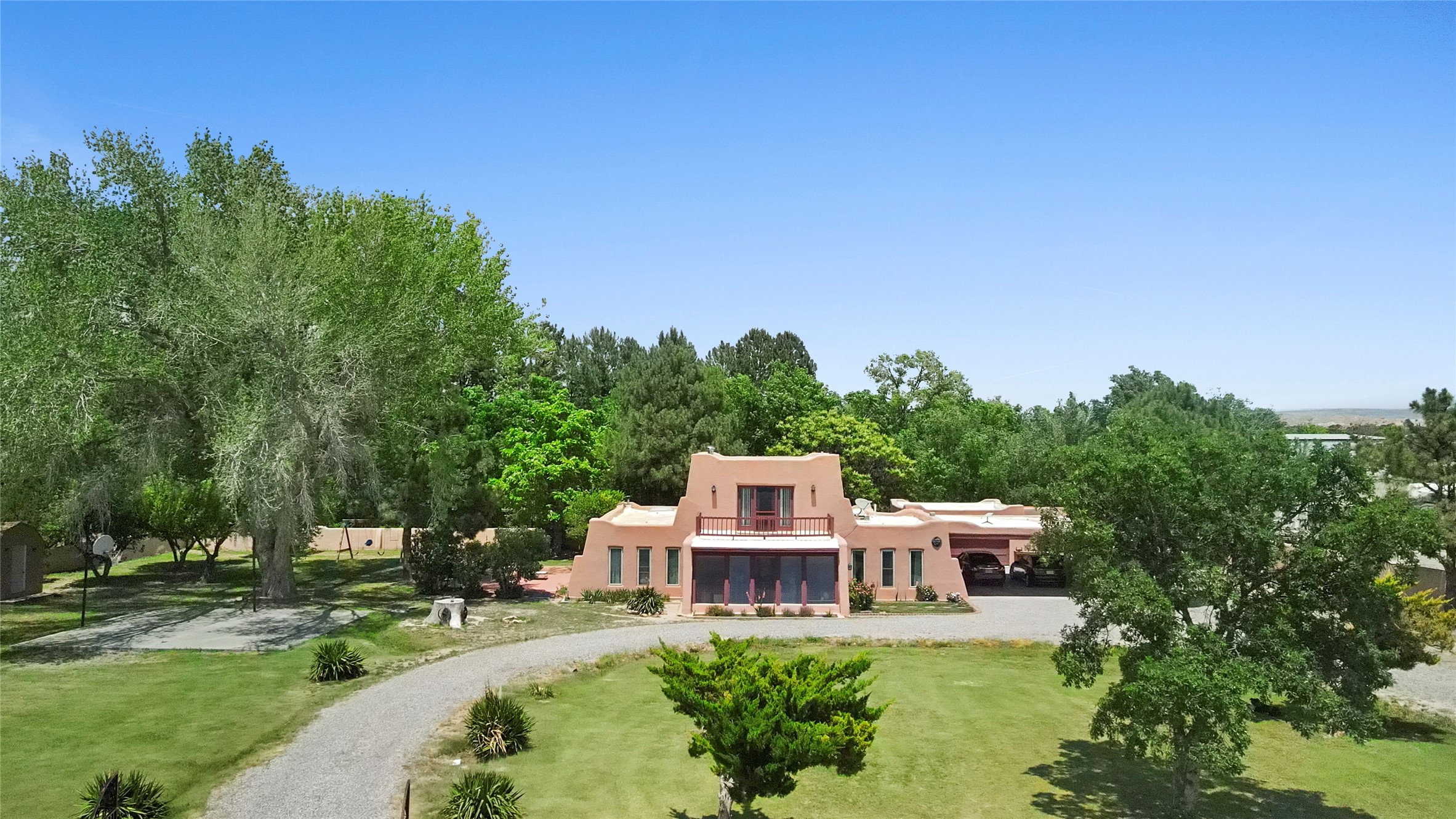 Welcome to 36 County Road 126 in La Mesilla! This charming 3-bedroom, 2-bath detached home offers the perfect blend of comfort, privacy, and outdoor living on a gated 0.8-acre lot. Surrounded by lush greenery, this property is a serene escape with plenty of space to enjoy and entertain. Inside, you'll find two spacious living rooms--one featuring a classic kiva fireplace and the other warmed by a cozy pellet stove--ideal for relaxing evenings year-round. The well-designed layout flows easily to the kitchen and dining areas, creating a welcoming atmosphere throughout. Upstairs, the primary bedroom includes a private balcony, perfect for taking in the peaceful views and fresh air. Step outside to enjoy the expansive patio, your very own basketball court, and beautifully landscaped grounds. Additional features include a two-car garage, carport, and gated access for added privacy and security. Whether you're gathering with friends or enjoying a quiet night at home, this unique La Mesilla residence has it all!