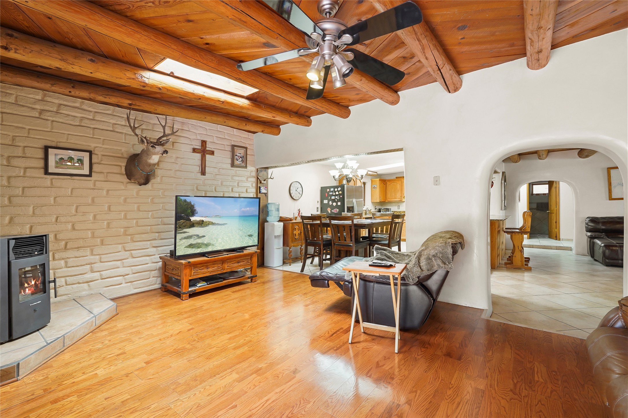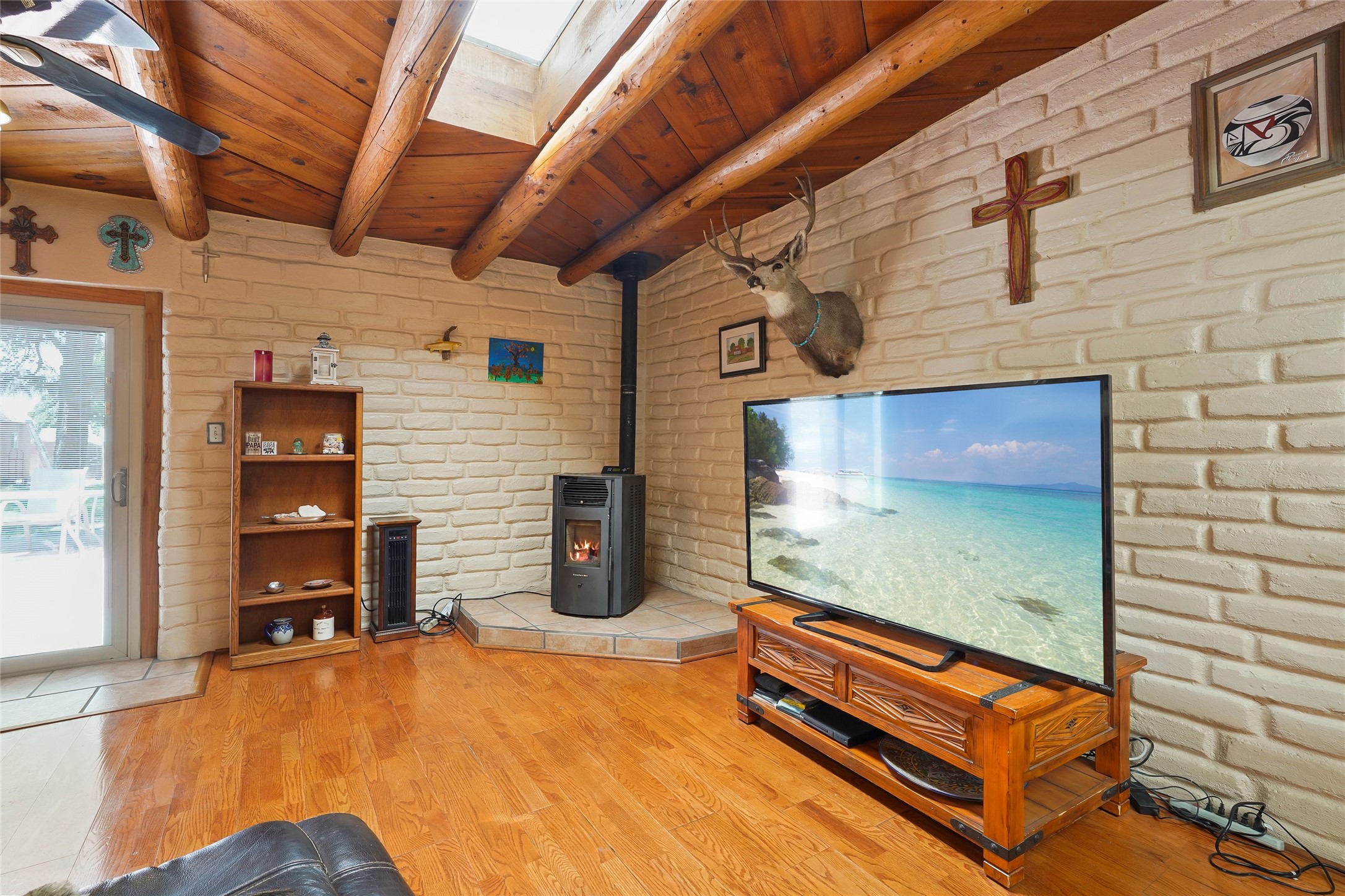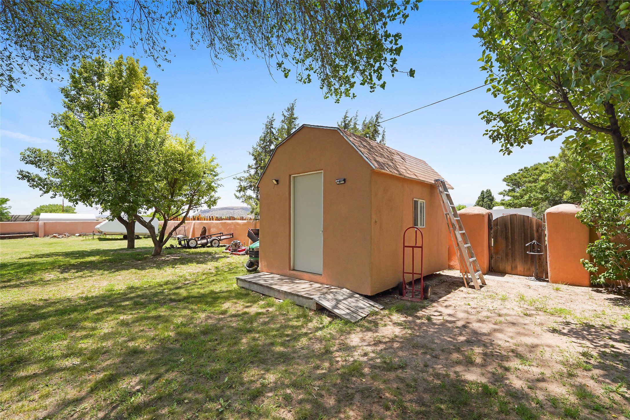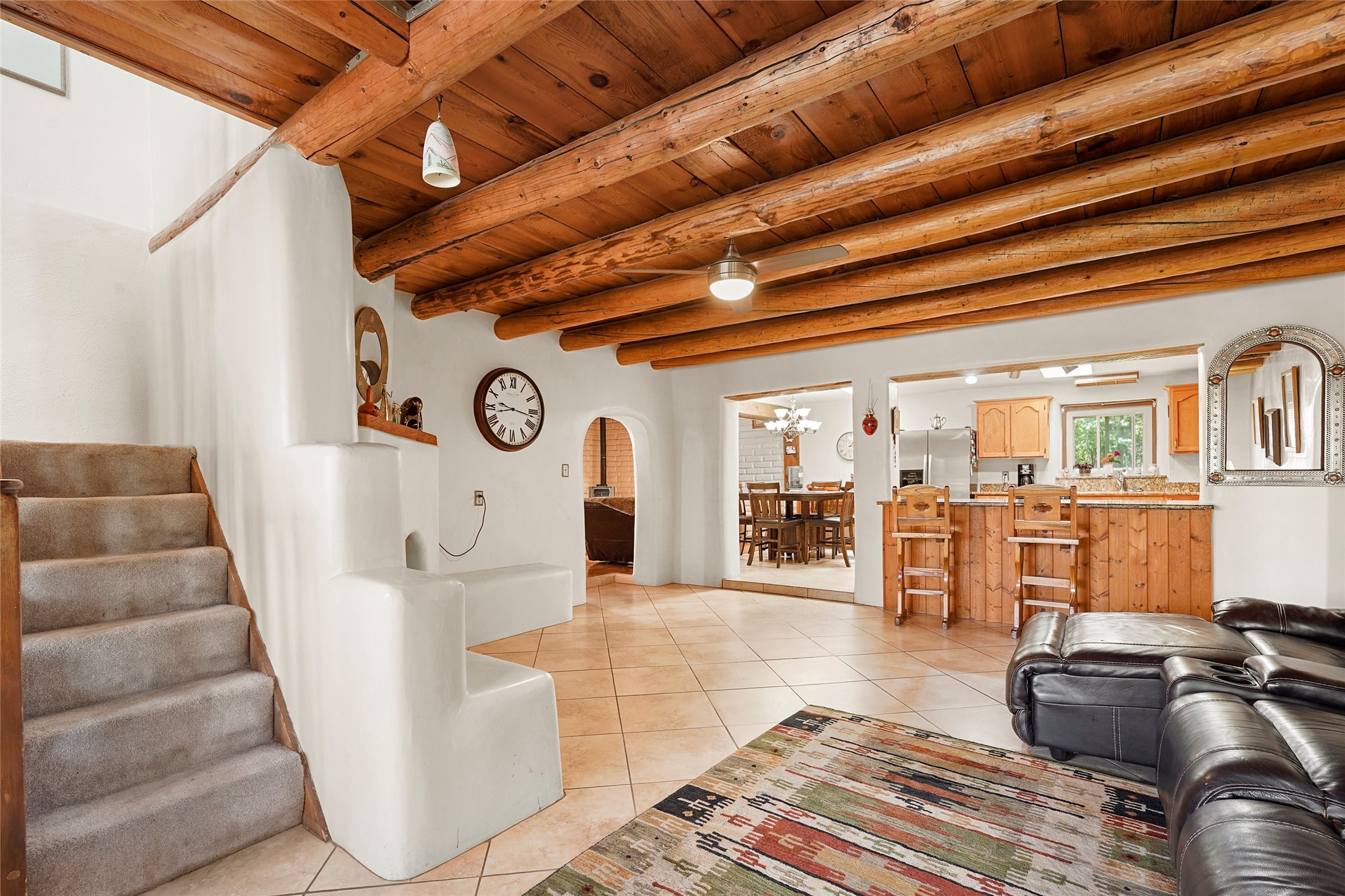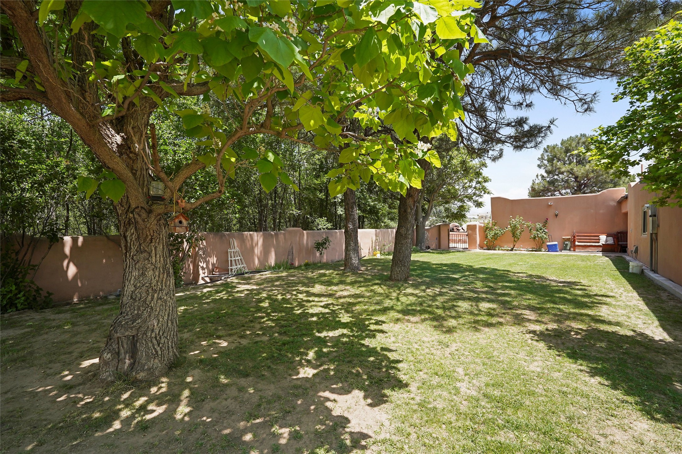 Welcome to 36 County Road 126 in La Mesilla! This charming 3-bedroom, 2-bath detached home offers the perfect blend of comfort, privacy, and outdoor living on a gated 0.8-acre lot. Surrounded by lush greenery, this property is a serene escape with plenty of space to enjoy and entertain. Inside, you'll find two spacious living rooms--one featuring a classic kiva fireplace and the other warmed by a cozy pellet stove--ideal for relaxing evenings year-round. The well-designed layout flows easily to the kitchen and dining areas, creating a welcoming atmosphere throughout. Upstairs, the primary bedroom includes a private balcony, perfect for taking in the peaceful views and fresh air. Step outside to enjoy the expansive patio, your very own basketball court, and beautifully landscaped grounds. Additional features include a two-car garage, carport, and gated access for added privacy and security. Whether you're gathering with friends or enjoying a quiet night at home, this unique La Mesilla residence has it all!