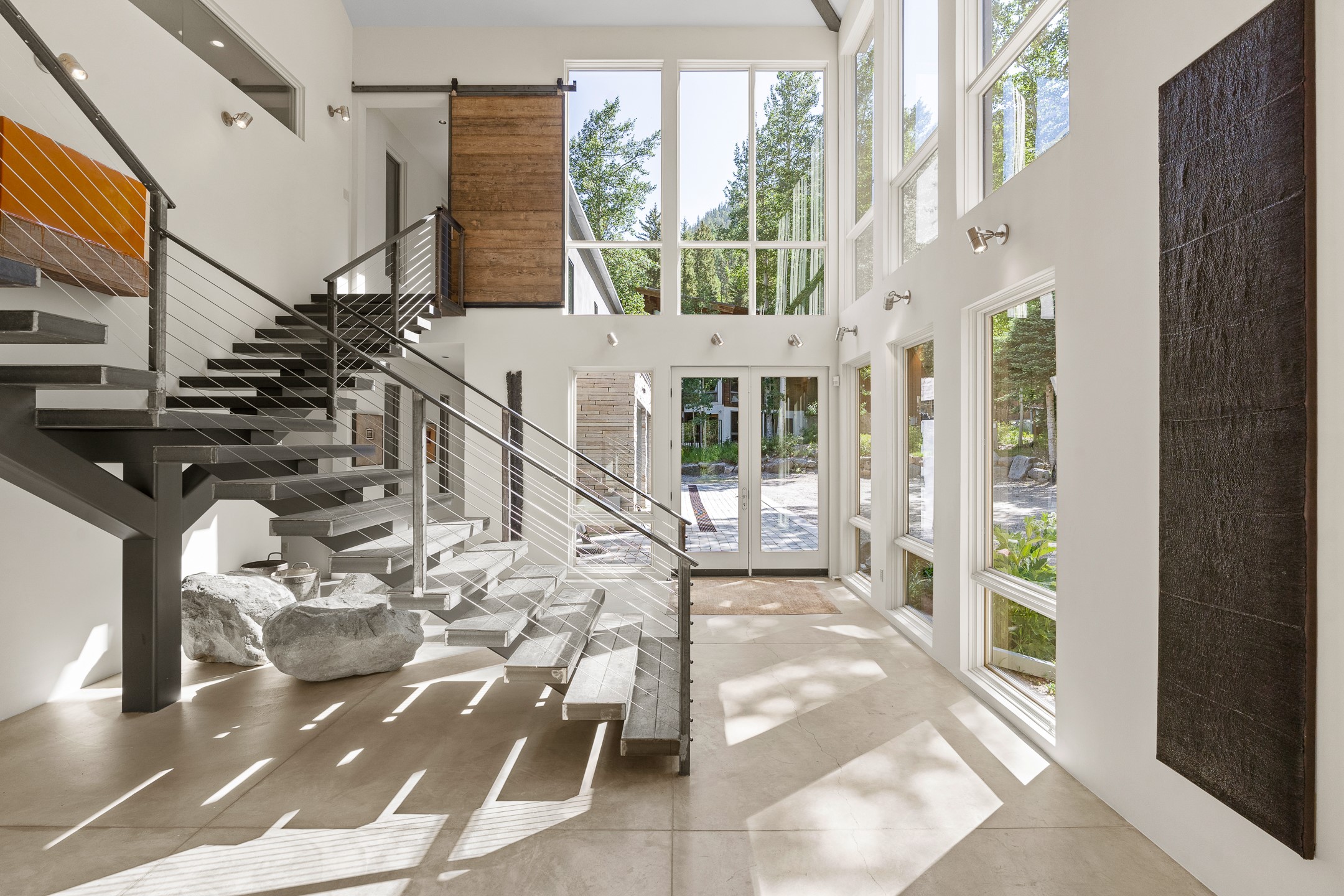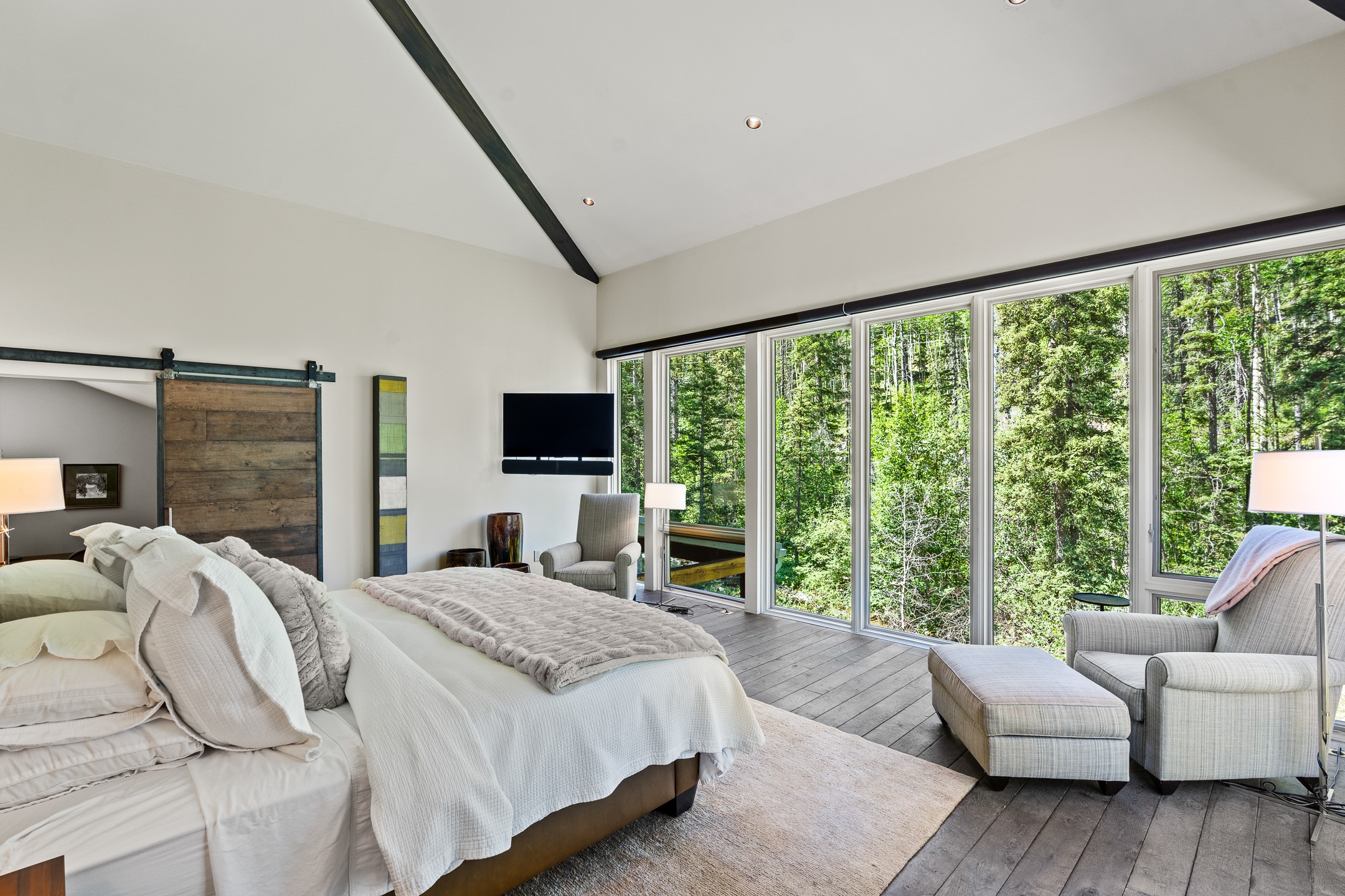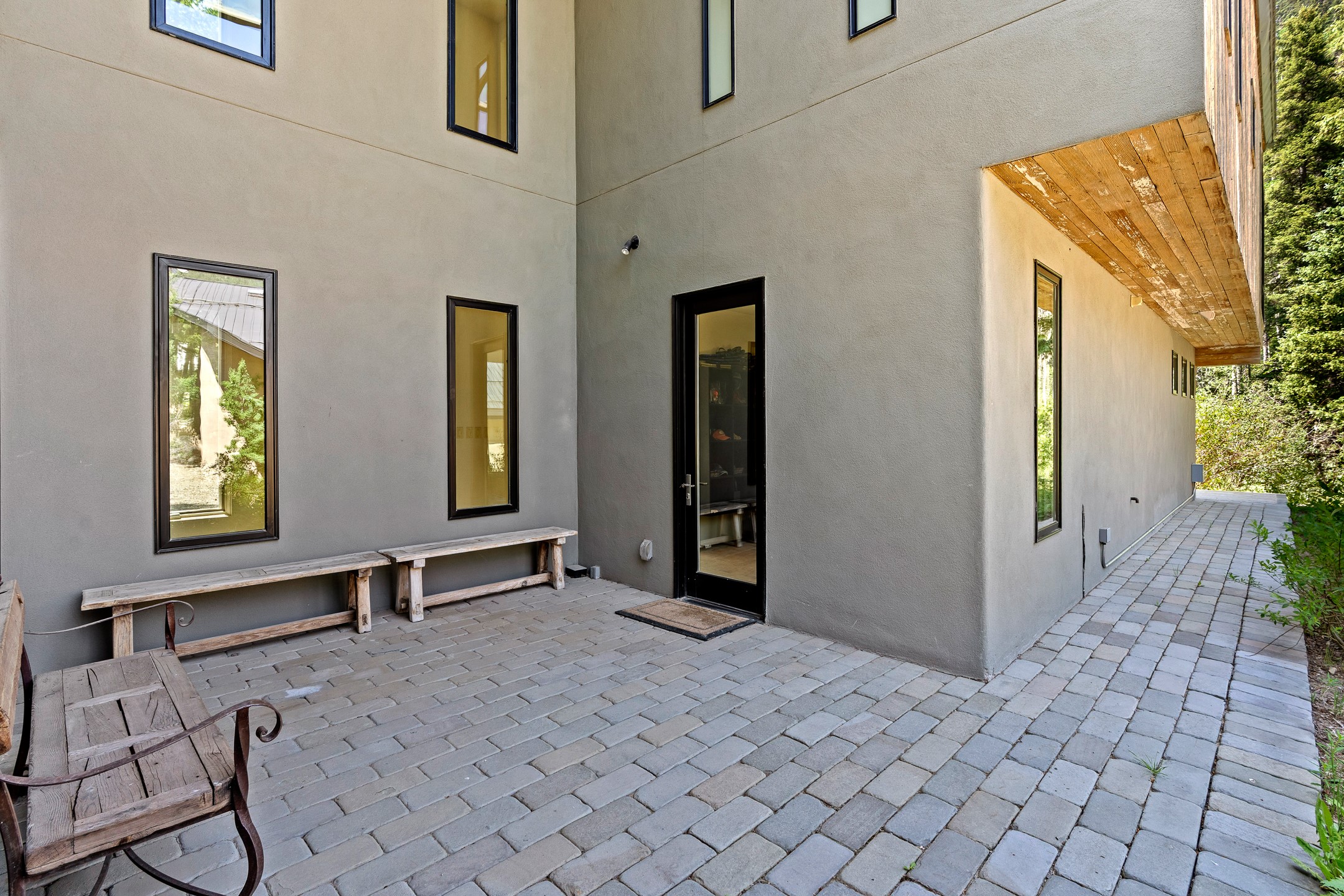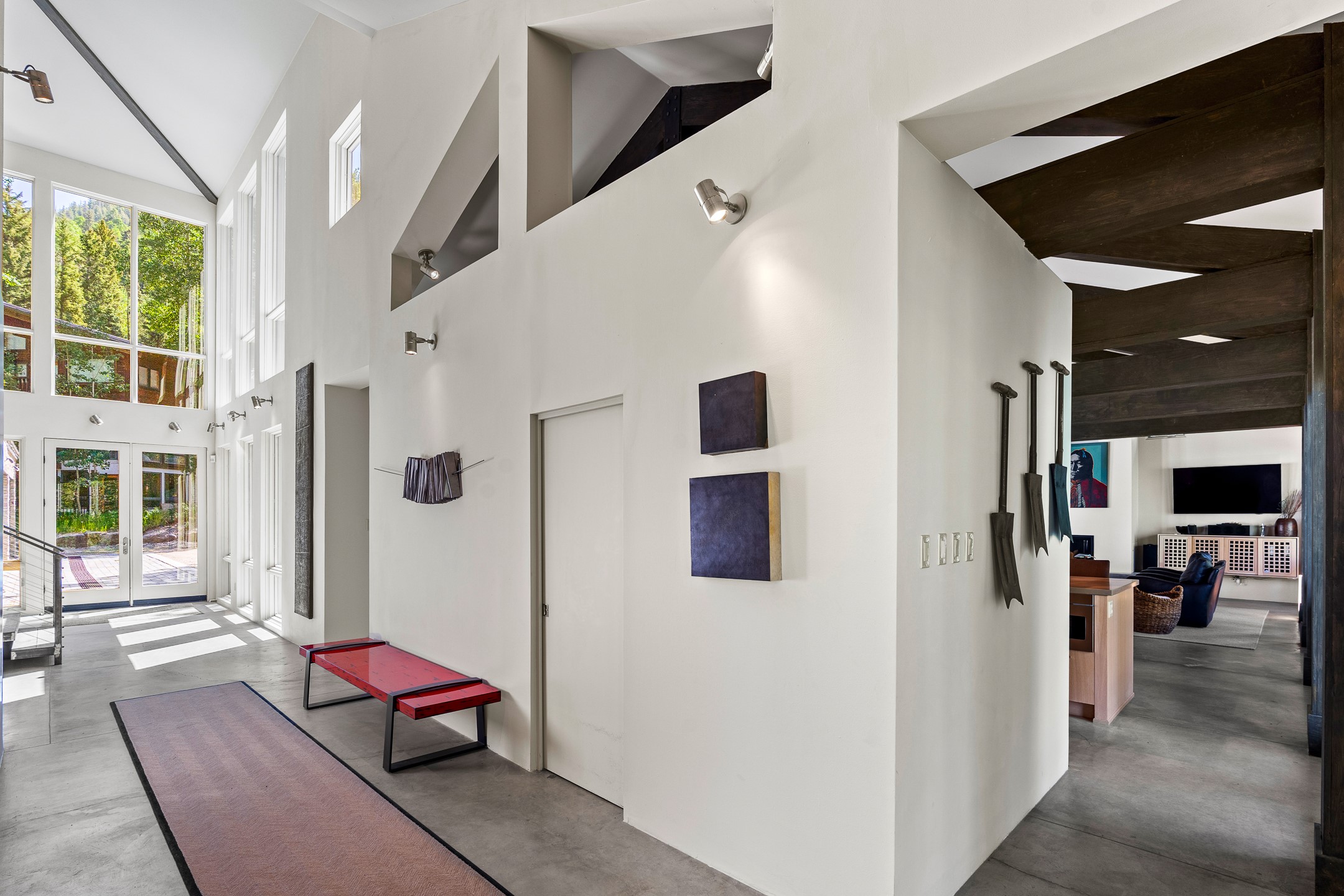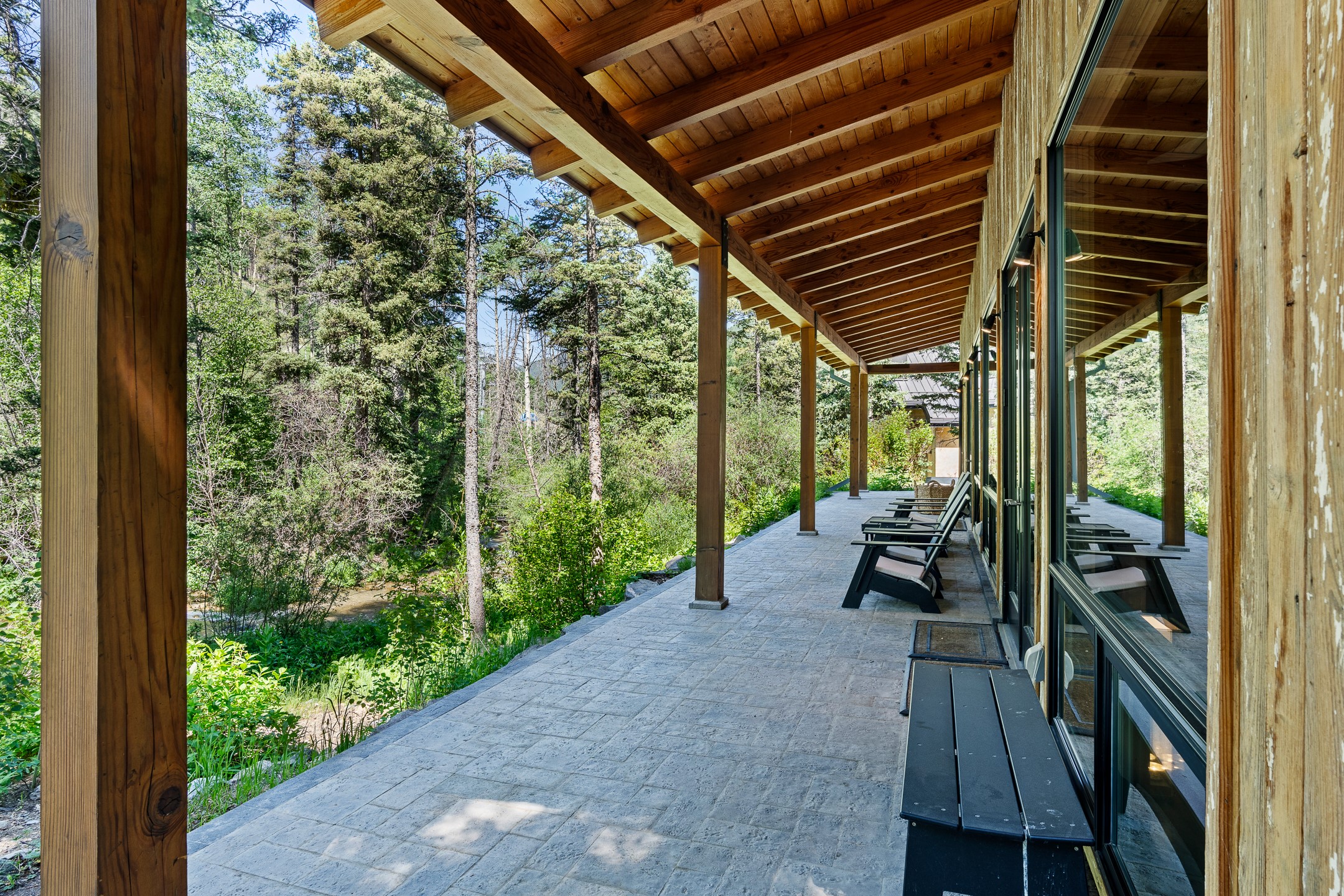 Situated in the heart of Taos Ski Valley, this one-of-a-kind Contemporary Modern Mountain Home redefines alpine luxury. Set on a rare corner lot spanning over one-third of an acre, the property is graced with more than 150 feet of the Rio Hondo River, flowing beneath two custom-built bridges that provide direct ski-in/ski-out access. Just a short walk to the base area's two main lifts, the location is simply unmatched. Every detail of this stunning home exudes sophistication and modern elegance. Designed for both comfort and performance, it features high-end finishes throughout, including automated sun shades, radiant in-floor heating, a chef's kitchen with premium appliances, and a luxurious steam shower in the primary suite. A dramatic zinc standing seam roof--engineered to last 80 to 100years--crowns the home, while a natural gas standby generator ensures seamless year-round living. Step outside to the elevated hot tub perched above the river and enjoy serene mountain ambiance like no other. The heated driveway and stone paver walkways offer effortless winter access, while the oversized 3-car garage--with one bay currently transformed into a game room--adds versatility and comfort. A dedicated ski storage room with private locker space and a separate entrance completes the alpine lifestyle experience. The home's thoughtful floor plan offers exceptional privacy and flow. The primary suite features a private office, steam shower, and complete separation from the guest quarters, which are adjacent to a spacious family lounge. A guest suite on the lower level provides additional convenience and flexibility. From its unparalleled riverfront setting to its extraordinary finishes and amenities, there is simply no other home of this caliber in Taos Ski Valley. This is more than a residence--it's an elevated mountain sanctuary. Home is being sold fully furnished, including most artwork.