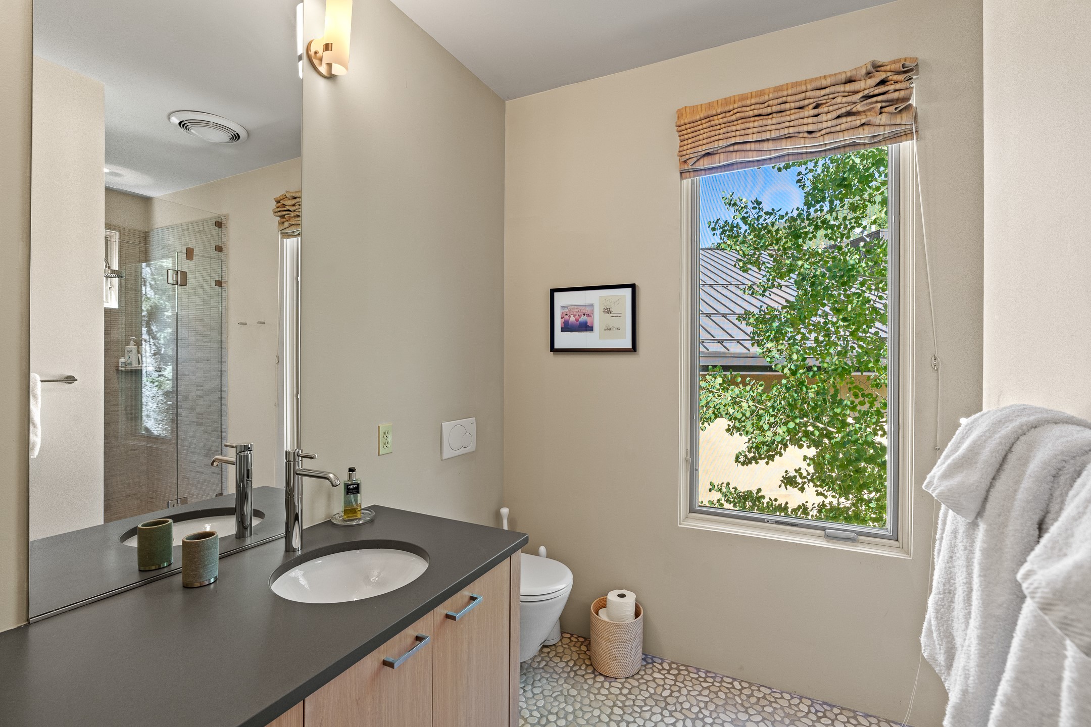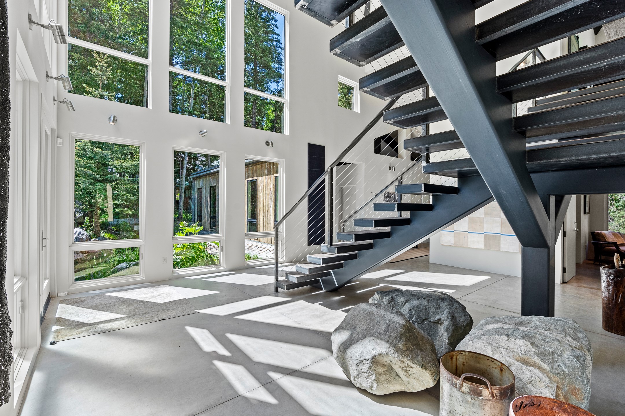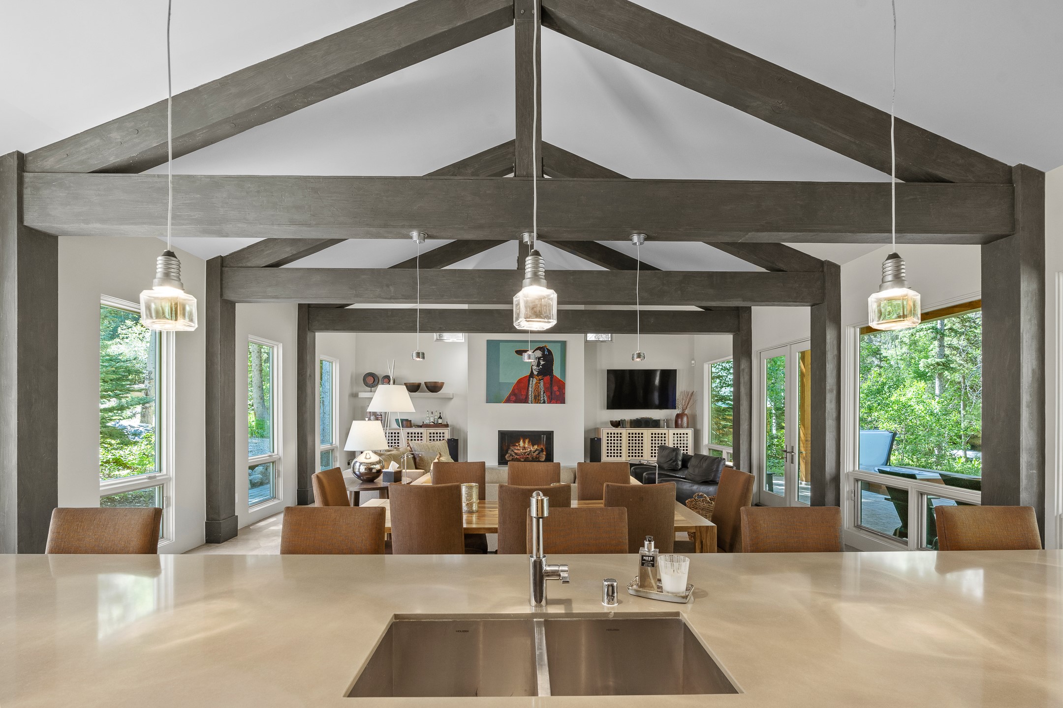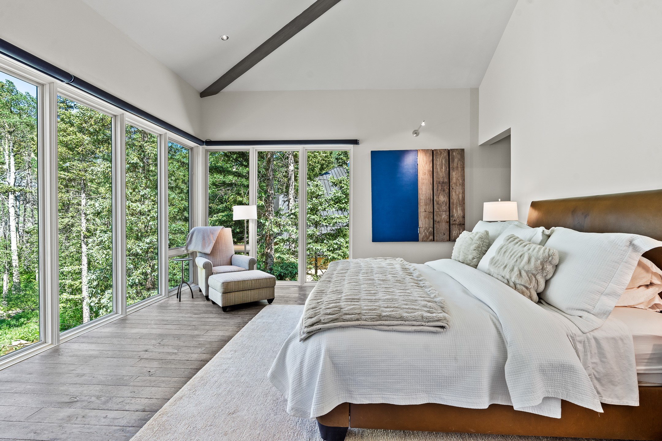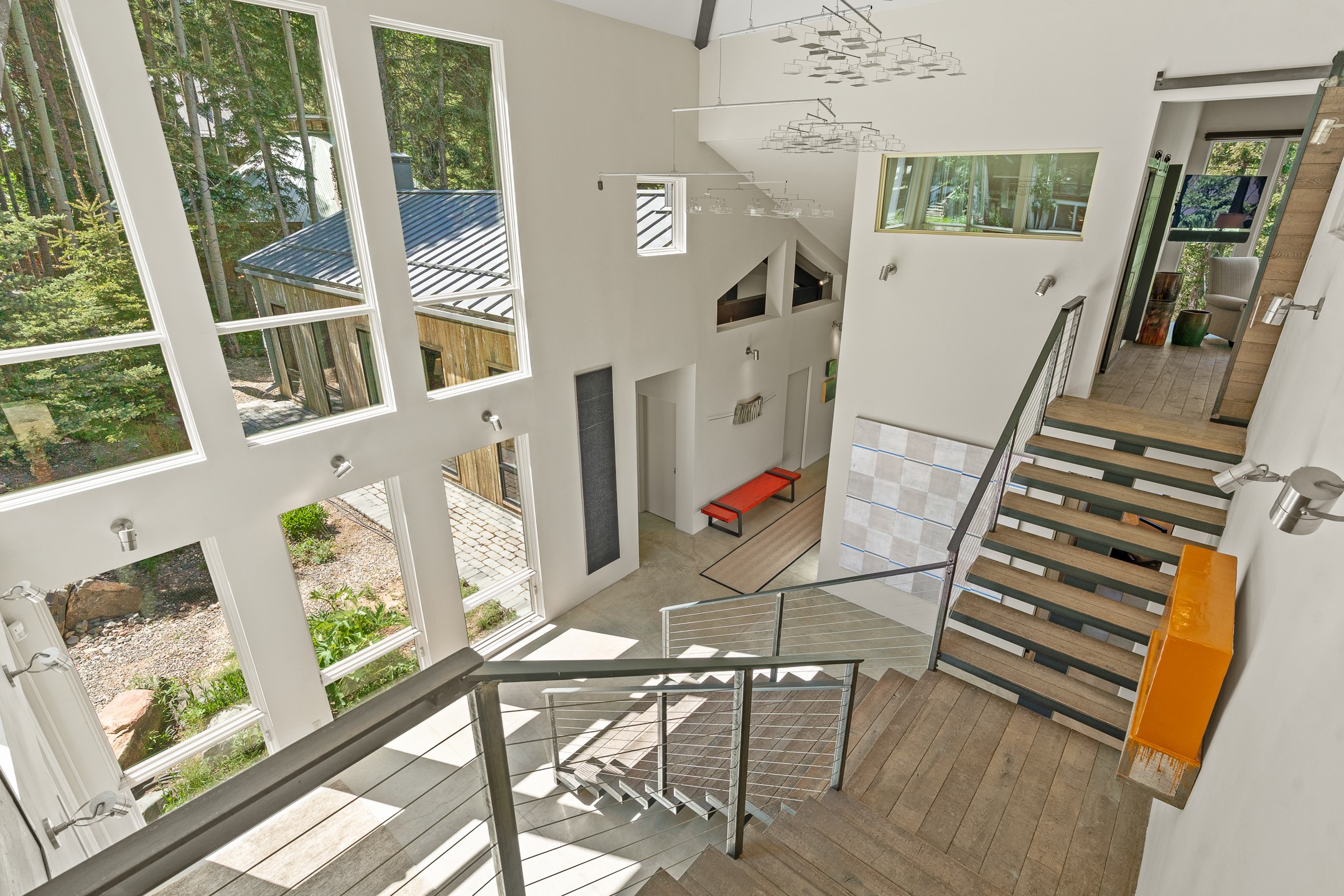 Situated in the heart of Taos Ski Valley, this one-of-a-kind Contemporary Modern Mountain Home redefines alpine luxury. Set on a rare corner lot spanning over one-third of an acre, the property is graced with more than 150 feet of the Rio Hondo River, flowing beneath two custom-built bridges that provide direct ski-in/ski-out access. Just a short walk to the base area's two main lifts, the location is simply unmatched. Every detail of this stunning home exudes sophistication and modern elegance. Designed for both comfort and performance, it features high-end finishes throughout, including automated sun shades, radiant in-floor heating, a chef's kitchen with premium appliances, and a luxurious steam shower in the primary suite. A dramatic zinc standing seam roof--engineered to last 80 to 100years--crowns the home, while a natural gas standby generator ensures seamless year-round living. Step outside to the elevated hot tub perched above the river and enjoy serene mountain ambiance like no other. The heated driveway and stone paver walkways offer effortless winter access, while the oversized 3-car garage--with one bay currently transformed into a game room--adds versatility and comfort. A dedicated ski storage room with private locker space and a separate entrance completes the alpine lifestyle experience. The home's thoughtful floor plan offers exceptional privacy and flow. The primary suite features a private office, steam shower, and complete separation from the guest quarters, which are adjacent to a spacious family lounge. A guest suite on the lower level provides additional convenience and flexibility. From its unparalleled riverfront setting to its extraordinary finishes and amenities, there is simply no other home of this caliber in Taos Ski Valley. This is more than a residence--it's an elevated mountain sanctuary. Home is being sold fully furnished, including most artwork.