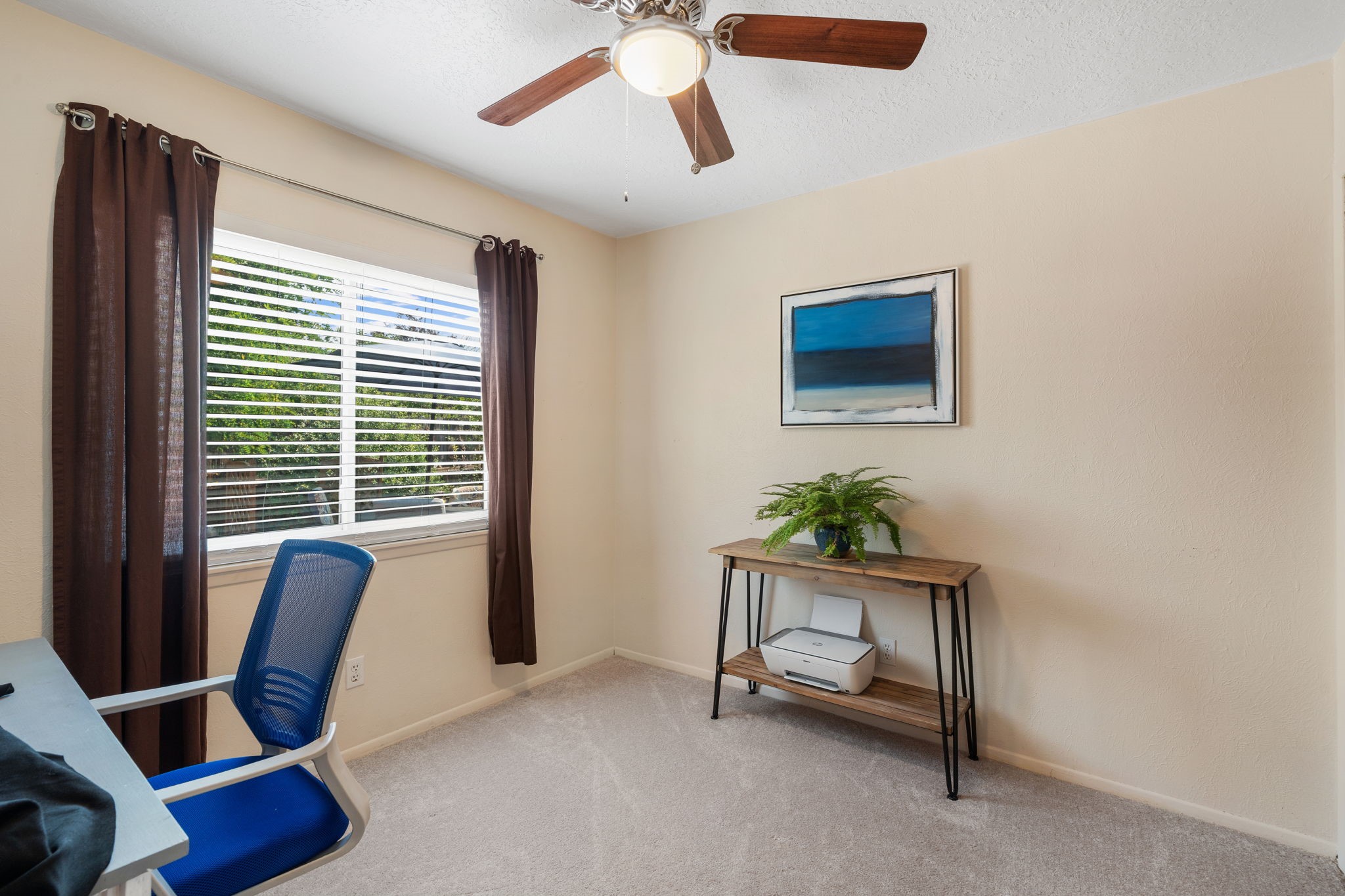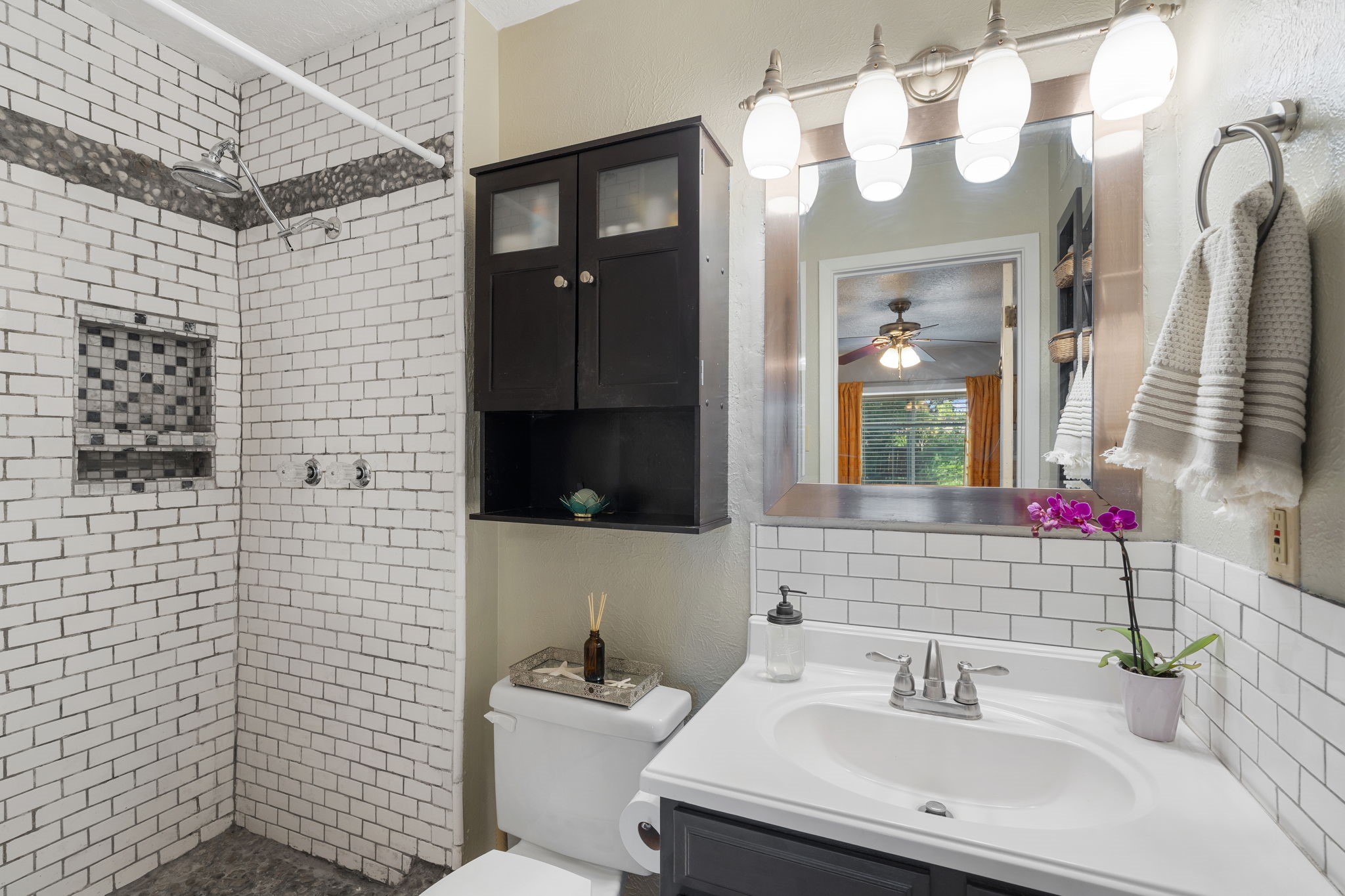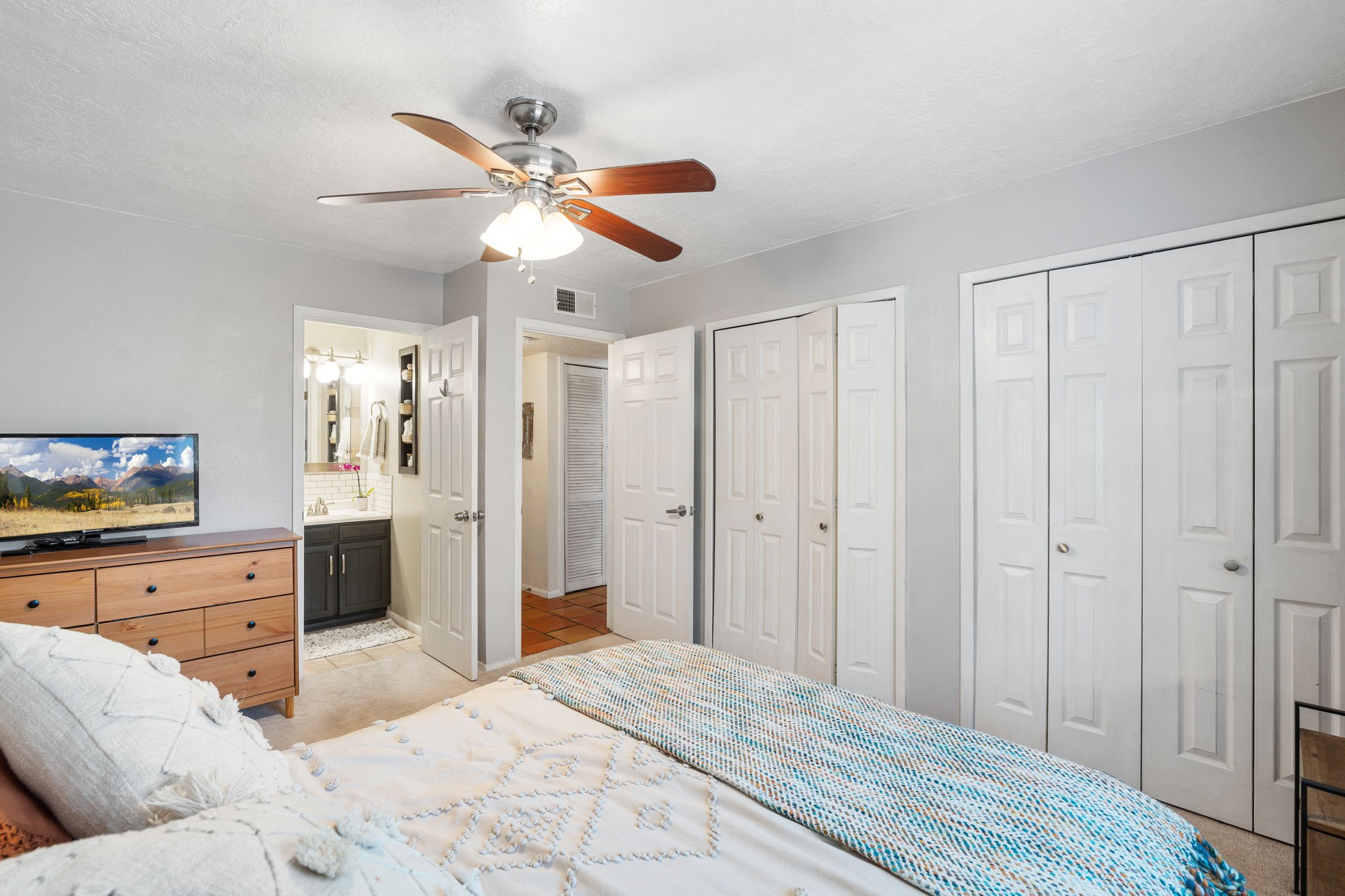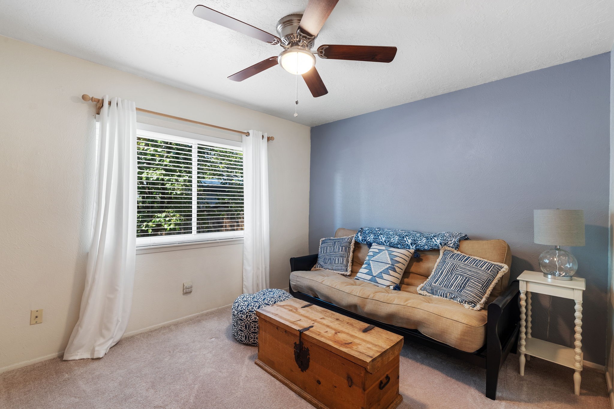 Come see this Southside four bedroom home, conveniently located close to schools, shopping and parks. The cozy entry courtyard sparkles with colorful flowers, and is shaded by large trees. The living room has tall ceilings and is filled with light from 2 large skylights. The updated kitchen has stainless appliances, tile backsplash and quartz counters. There is direct access to the inviting outdoor space, where bright and perennials are mixed in the dappled light of shade trees. The backyard is fenced, and there are two raised vegetable beds for the green of thumb. Saltillo tile is the floor treatment in most of the house, with carpeted bedrooms. There is ample closet space and a ceiling fan in every bedroom. This affordable home is in excellent condition, with updated vinyl windows and gorgeous new stucco.