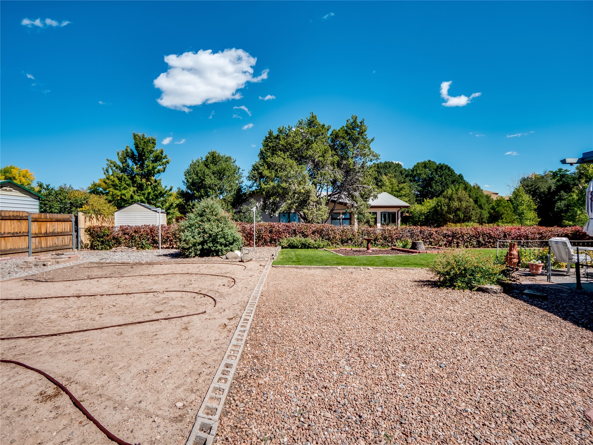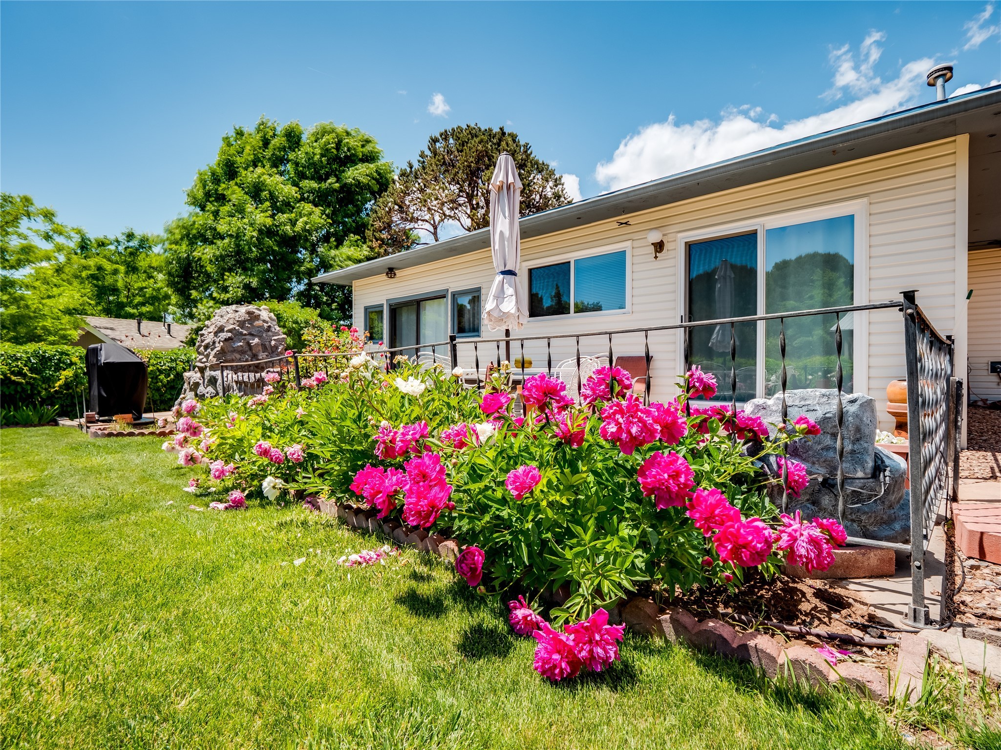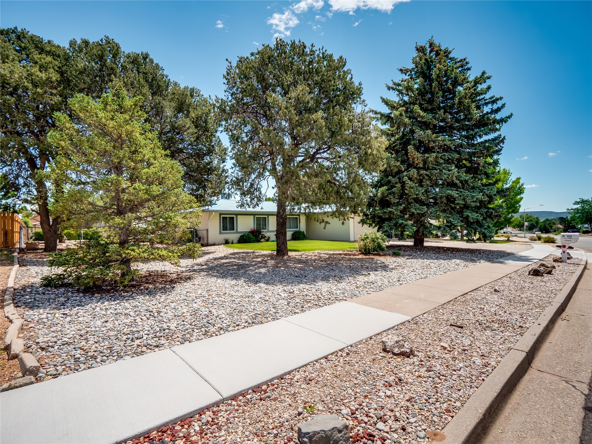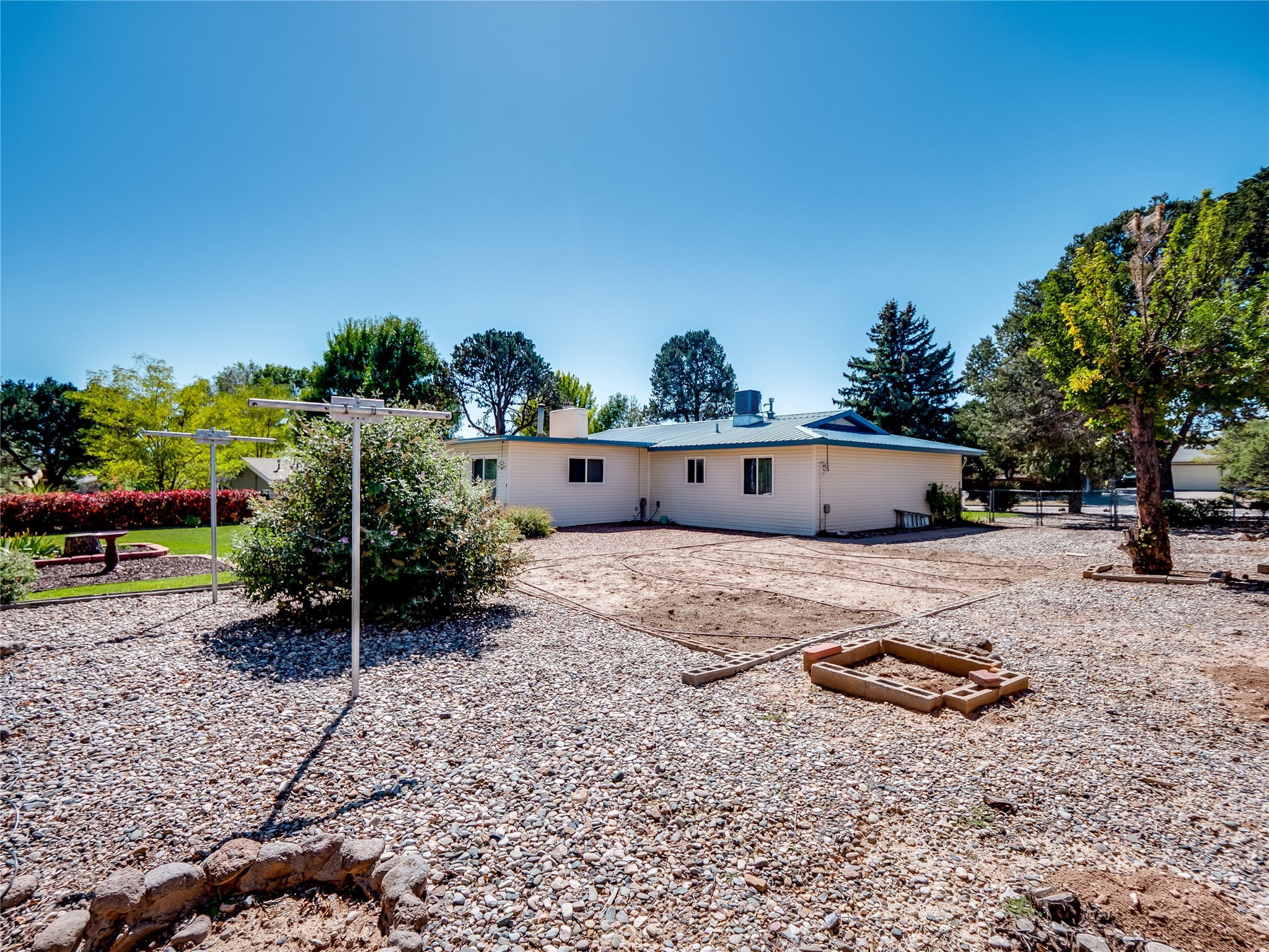 Welcome to this sensational ranch-style home in White Rock with beautiful curb appeal. A lush, green lawn and mature shade trees frame the front of the property, complemented by colorful flower beds that create a warm and inviting entrance. Step inside to find plush carpet flooring that runs throughout, adding comfort and continuity. Just off the entryway to the left is a versatile bonus room or den--ideal for a home office, study, or creative space--framed by elegant pillars that give the area a sense of separation and style. Continue forward into the cozy living room featuring a wood-burning fireplace, perfect for chilly evenings and relaxing with loved ones. The adjacent galley-style kitchen includes wood cabinets with chrome hardware and offers ample prep space, as well as a designated dining area for casual meals A 260 sq. ft. bonus room with access to backyard can be a kids play room, exercise room, a room for arts and crafts, a fifth bedroom or a great man cave! Nearby is access to the two-car garage and a convenient laundry space, providing everyday functionality. Step down into the formal dining room, filled with natural light from the surrounding windows and glass sliders that lead directly to the back patio and yard. Connected to this space is a large family room, offering another access point to the backyard, a perfect setting for gatherings, movie nights, or game days. A beautifully renovated modern guest bathroom with a white single sink vanity and a fully tiled shower/tub combo. At the end of the hall, the spacious primary en-suite overlooks the peaceful backyard and includes a walk-in closet and a private bathroom with a tiled walk-in shower and single sink vanity. The expansive backyard is a true oasis, with a lush green lawn, vibrant flower gardens, and irrigated vegetable planters--perfect for any green thumb. There's also side-yard access to park a vehicle or RV. A large patio area is ideal for outdoor dining and entertaining under the open sky.