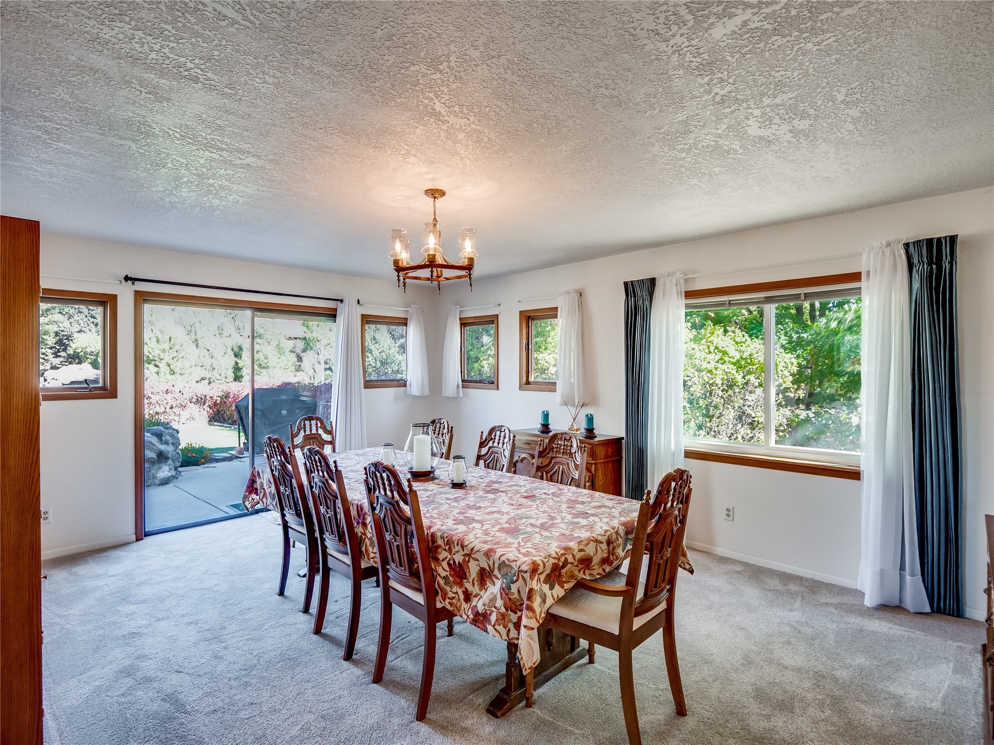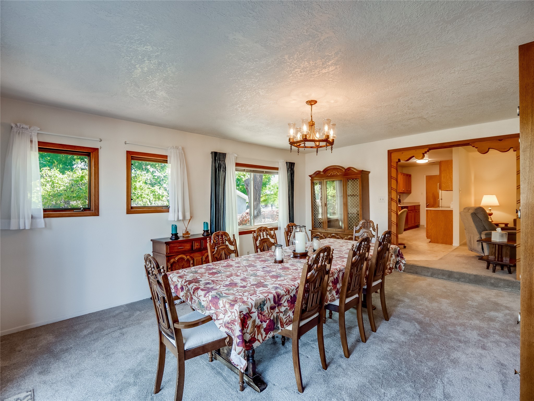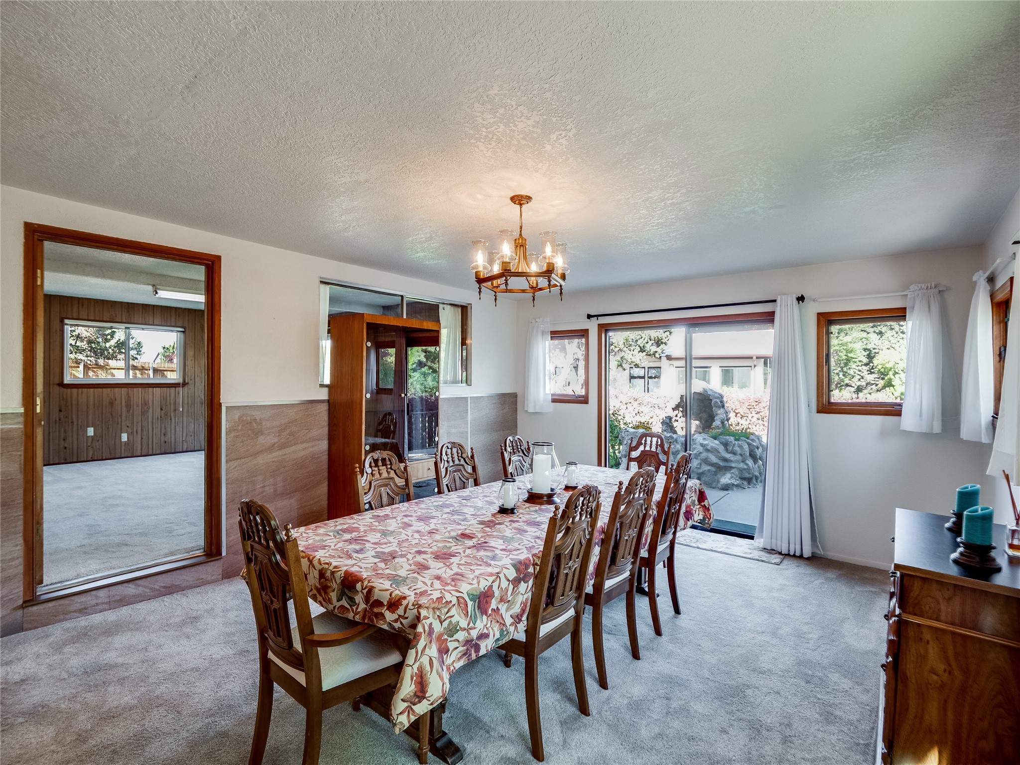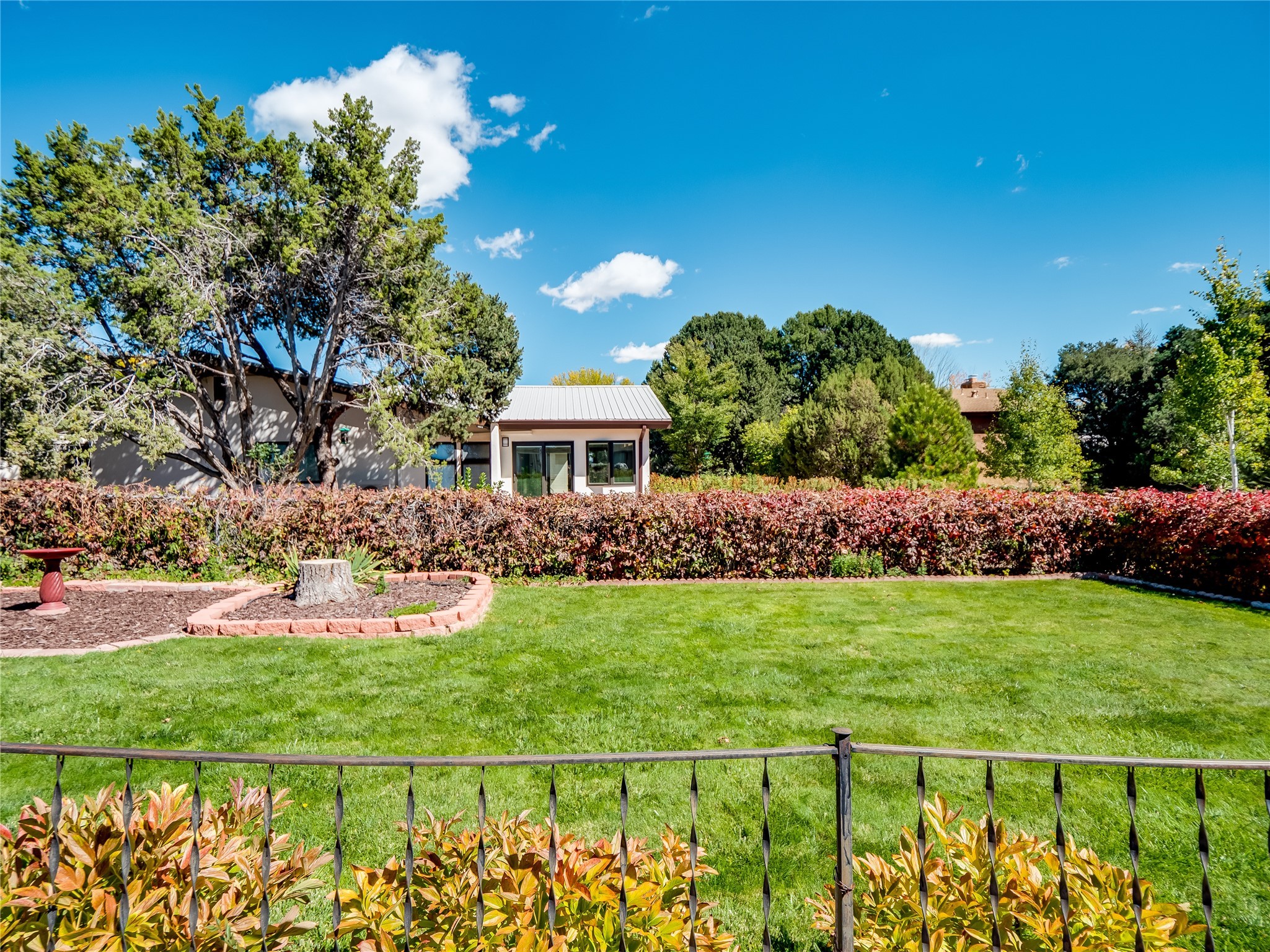 Welcome to this sensational ranch-style home in White Rock with beautiful curb appeal. A lush, green lawn and mature shade trees frame the front of the property, complemented by colorful flower beds that create a warm and inviting entrance. Step inside to find plush carpet flooring that runs throughout, adding comfort and continuity. Just off the entryway to the left is a versatile bonus room or den--ideal for a home office, study, or creative space--framed by elegant pillars that give the area a sense of separation and style. Continue forward into the cozy living room featuring a wood-burning fireplace, perfect for chilly evenings and relaxing with loved ones. The adjacent galley-style kitchen includes wood cabinets with chrome hardware and offers ample prep space, as well as a designated dining area for casual meals A 260 sq. ft. bonus room with access to backyard can be a kids play room, exercise room, a room for arts and crafts, a fifth bedroom or a great man cave! Nearby is access to the two-car garage and a convenient laundry space, providing everyday functionality. Step down into the formal dining room, filled with natural light from the surrounding windows and glass sliders that lead directly to the back patio and yard. Connected to this space is a large family room, offering another access point to the backyard, a perfect setting for gatherings, movie nights, or game days. A beautifully renovated modern guest bathroom with a white single sink vanity and a fully tiled shower/tub combo. At the end of the hall, the spacious primary en-suite overlooks the peaceful backyard and includes a walk-in closet and a private bathroom with a tiled walk-in shower and single sink vanity. The expansive backyard is a true oasis, with a lush green lawn, vibrant flower gardens, and irrigated vegetable planters--perfect for any green thumb. There's also side-yard access to park a vehicle or RV. A large patio area is ideal for outdoor dining and entertaining under the open sky.