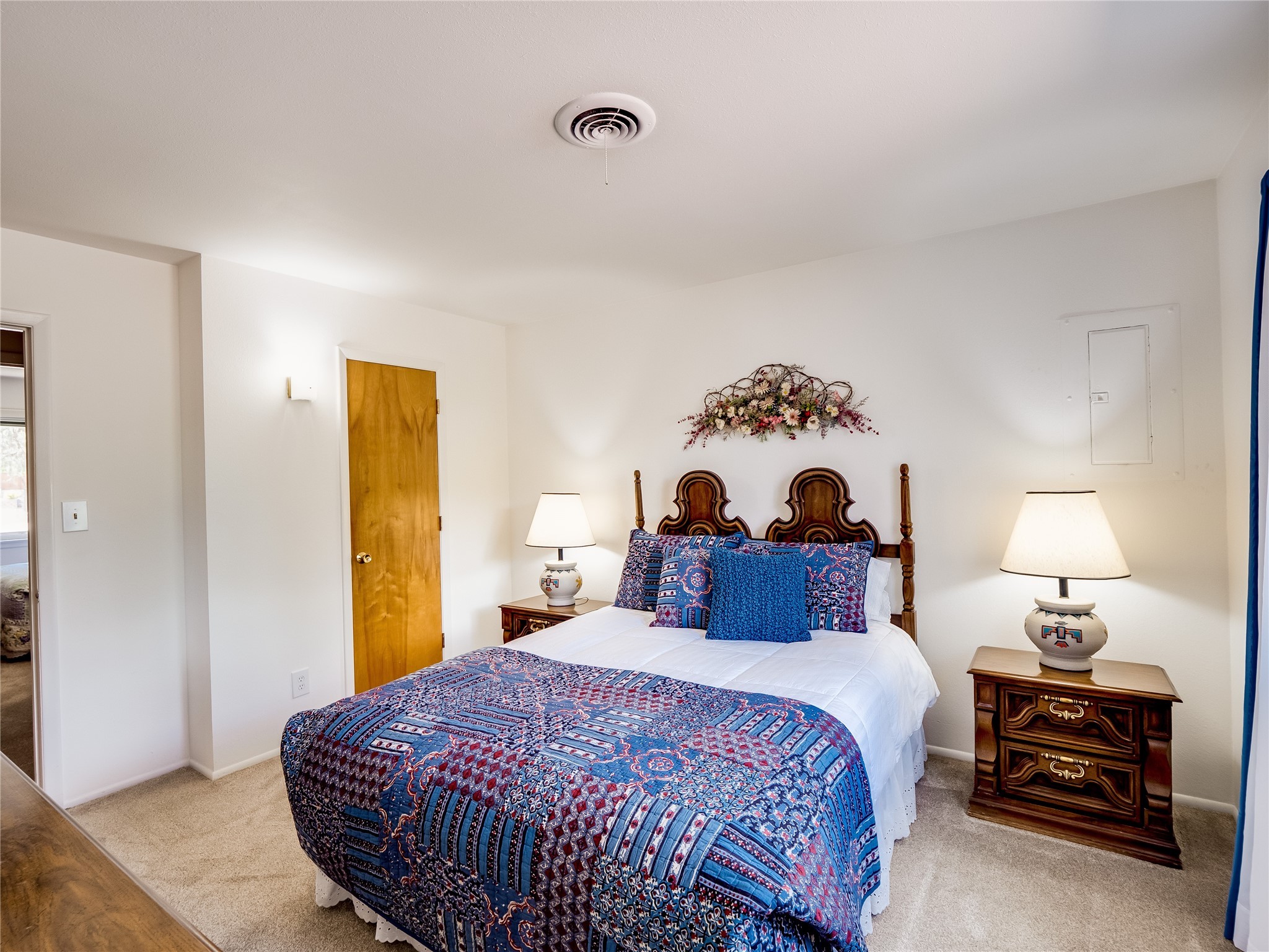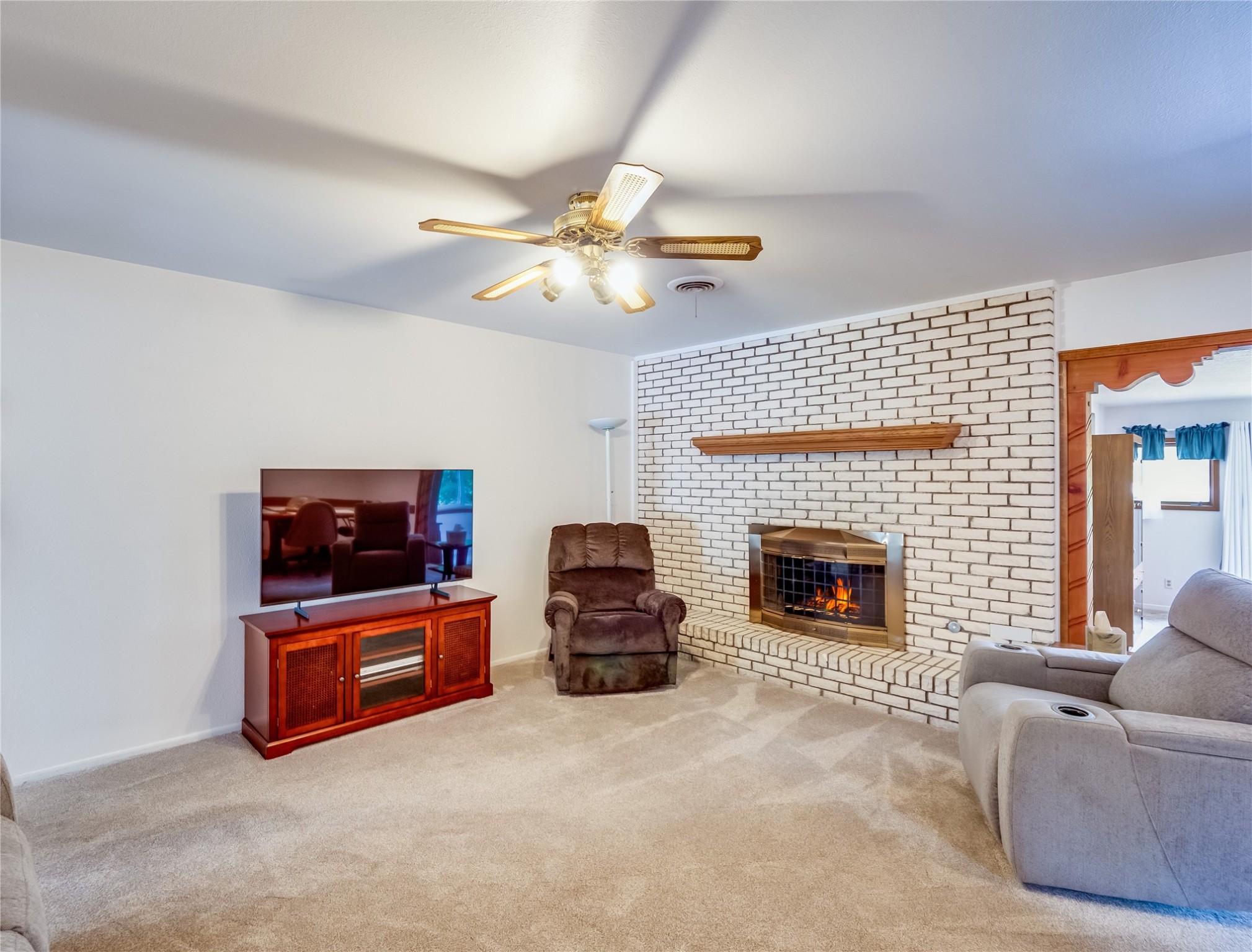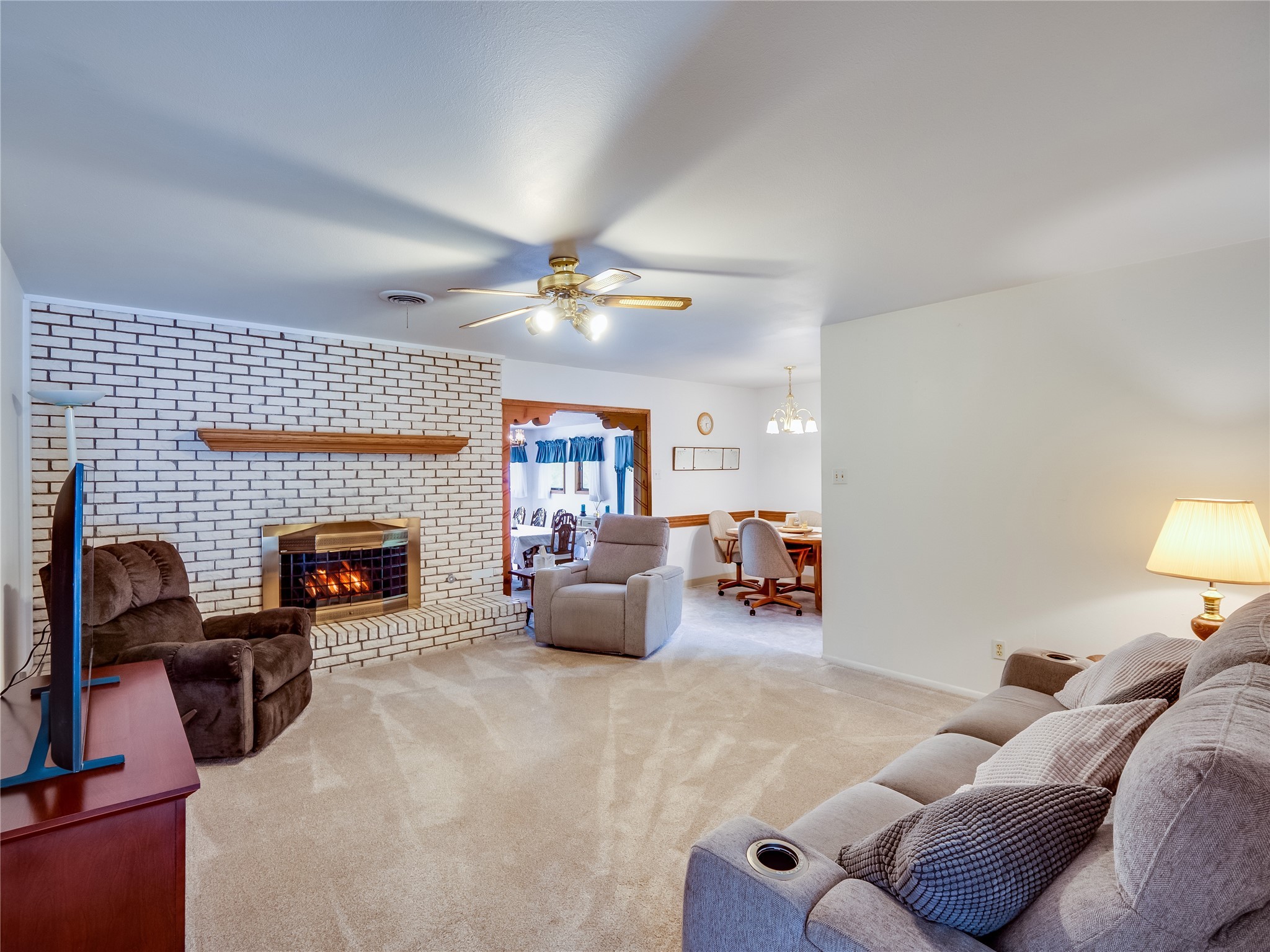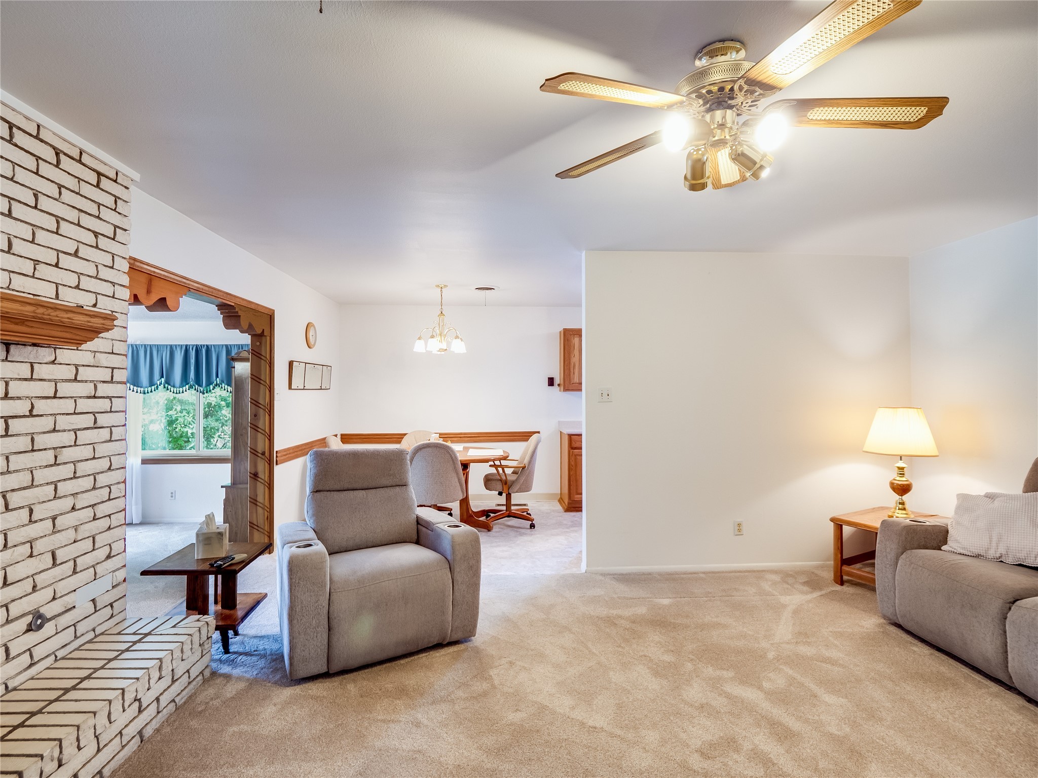 Welcome to this sensational ranch-style home in White Rock with beautiful curb appeal. A lush, green lawn and mature shade trees frame the front of the property, complemented by colorful flower beds that create a warm and inviting entrance. Step inside to find plush carpet flooring that runs throughout, adding comfort and continuity. Just off the entryway to the left is a versatile bonus room or den--ideal for a home office, study, or creative space--framed by elegant pillars that give the area a sense of separation and style. Continue forward into the cozy living room featuring a wood-burning fireplace, perfect for chilly evenings and relaxing with loved ones. The adjacent galley-style kitchen includes wood cabinets with chrome hardware and offers ample prep space, as well as a designated dining area for casual meals A 260 sq. ft. bonus room with access to backyard can be a kids play room, exercise room, a room for arts and crafts, a fifth bedroom or a great man cave! Nearby is access to the two-car garage and a convenient laundry space, providing everyday functionality. Step down into the formal dining room, filled with natural light from the surrounding windows and glass sliders that lead directly to the back patio and yard. Connected to this space is a large family room, offering another access point to the backyard, a perfect setting for gatherings, movie nights, or game days. A beautifully renovated modern guest bathroom with a white single sink vanity and a fully tiled shower/tub combo. At the end of the hall, the spacious primary en-suite overlooks the peaceful backyard and includes a walk-in closet and a private bathroom with a tiled walk-in shower and single sink vanity. The expansive backyard is a true oasis, with a lush green lawn, vibrant flower gardens, and irrigated vegetable planters--perfect for any green thumb. There's also side-yard access to park a vehicle or RV. A large patio area is ideal for outdoor dining and entertaining under the open sky.