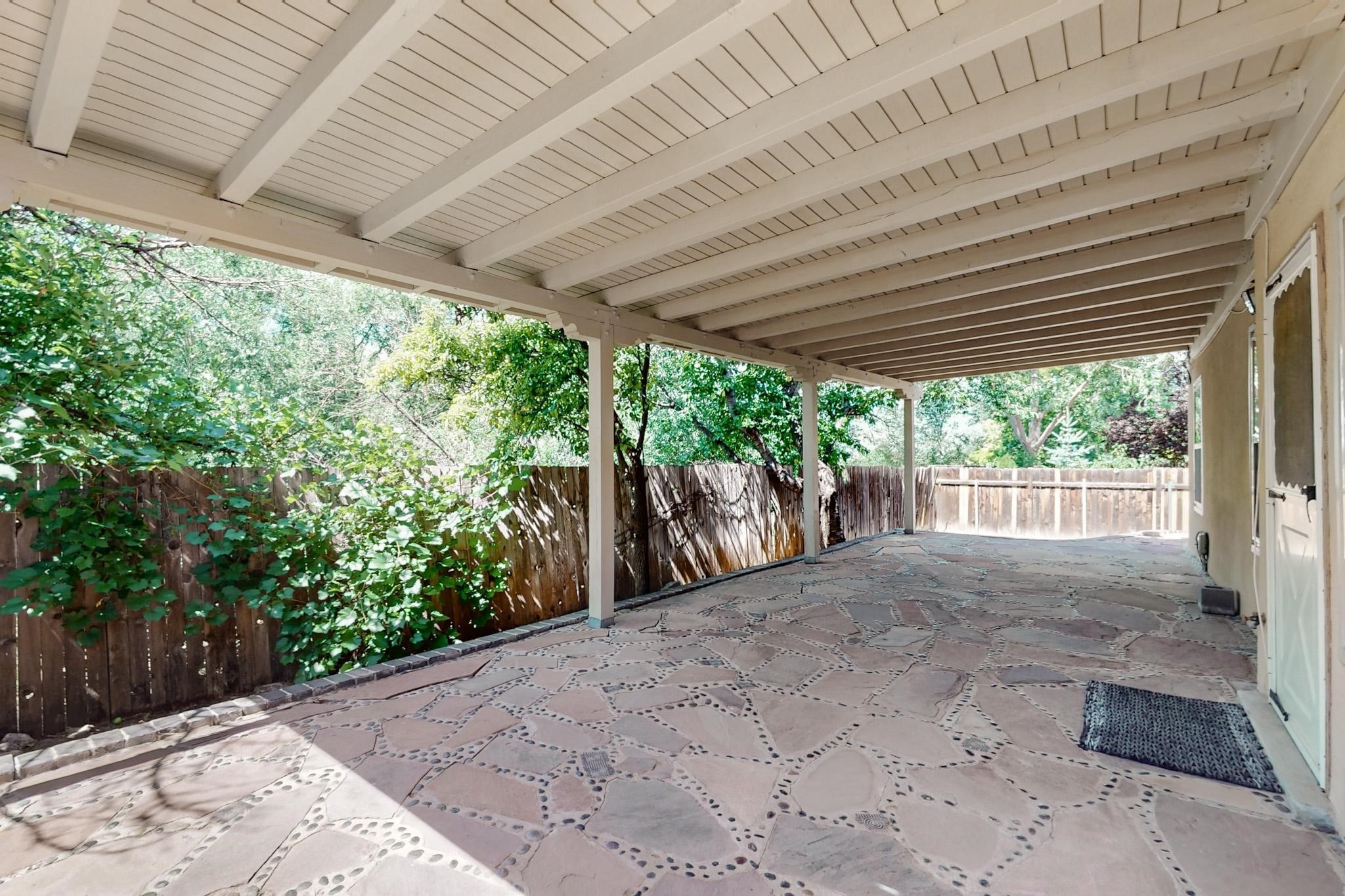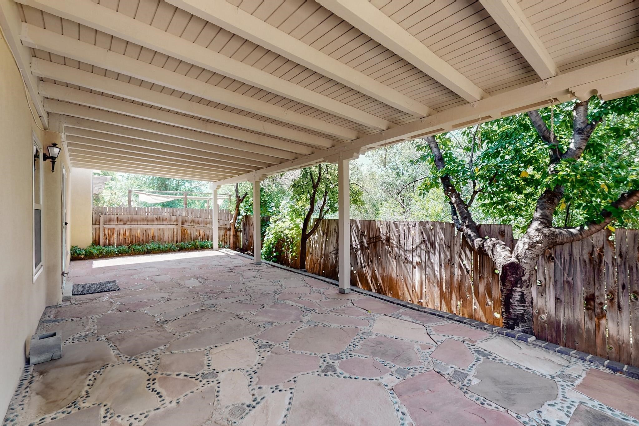 This beautifully, well-maintained single-level two-bedroom home is located near schools, shopping, a park, and a train stop. High ceilings with clearstory windows bring in much natural light, and the woodburning fireplace welcomes you with a great first impression. Two custom patios create a large entertainment area with great sunset views and a peaceful arroyo. There are cherry & pear trees as well as grape vines in the low maintenance backyard.