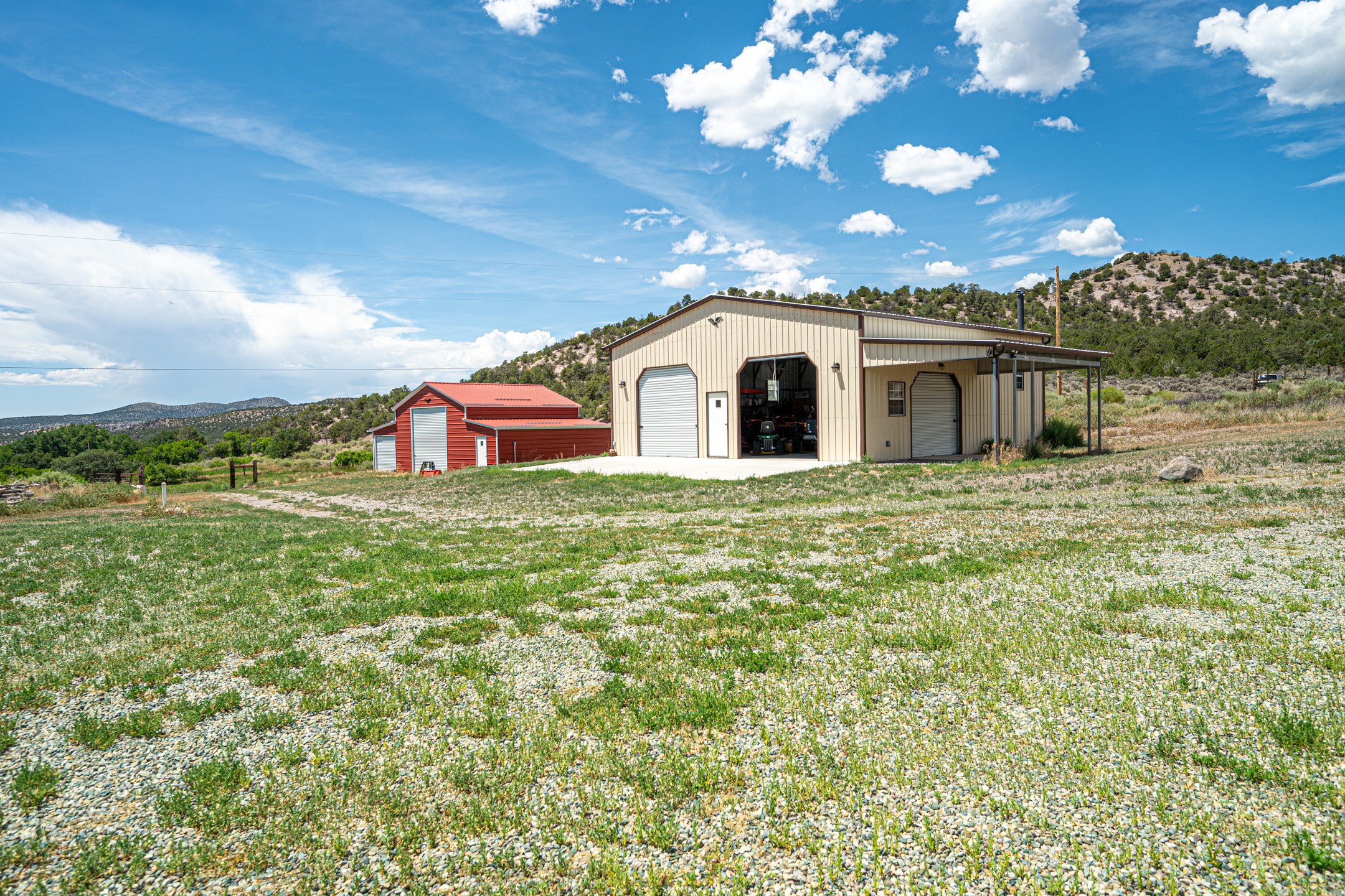 This sprawling ranch sits on 24 acres with an underground irrigation system throughout and the Tusas River winding through the estate. It consist of an 2600 Sq/Ft adobe (mud block) two-story main house built in the early 1940s. The thick, earthen walls, offers a unique and comforting warmth during the colder months and are cool during the hot summer days are also a glimpse into the rich historic past of New Mexico. Within a short walking distance from the main home, is the 320 Sq/Ft casita dating early circa 1830's. The allure of adobe-style home building, often referred to as Pueblo style, lies in its romantic visual appeal that resonates with many seeking a traditional Southwestern aesthetic. The influence of Moorish architecture on adobe homes is notable, reflecting centuries of cultural exchange between North Africa and Spain, which subsequently impacted the architectural landscape of New Mexico. This historical connection adds a layer of depth to the architectural heritage of the area. The property additionally features a 24'x28' two-car garage; a 36'x 40' workshop and a 36' x36' metal barn. Traditional farming in the area included harvesting alfalfa, vegetables and other farming, largely organic. The community of La Madera population is about 150 people, which offers a great deal of privacy. The mountains surrounding the property are a "high-elevation desert landscape" are characterized by dramatic mountains, broad valleys, high elevation, alkaline soil, and an abundance of diverse plant and animal life. Also offered is the potential of purchasing the farm equipment at a reduced rate. Property is ideal for horses, sheep, cattle, goats, pets and other livestock.