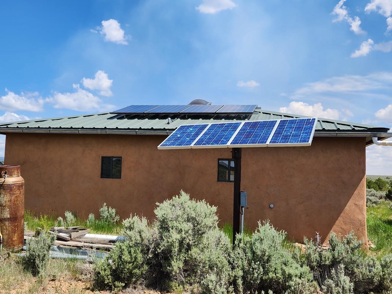 This efficient custom designed solar home will offer room to roam along with inspiring sunrises, sunsets and starry night skies. Enjoy spacious, secluded, off-grid living near Taos, NM. Straw bale/frame/stucco constructed home is on 38.9 acres that borders Carson National Forest in a private gated community. Stunning pinon framed views of the Sangre de Cristo Range extend from Santa Fe to Colorado. The home is cozy and inviting, featuring an open floor plan for ease of movement and views. Stylish earth and artisanal natural plaster walls along with attention to wooden design create an earthy and grounded environment in this passive and active solar-powered home. Green utilities include a self-supplied water catchment/cistern system and an efficient solar energy system. Make this a permanent home, artist's or writer's retreat just enough off the beaten path, yet an easy scenic ride will take you to colorful Taos for entertainment, skiing and great food. Abundant hiking, biking, scenery and wildlife are at your front door awaiting your adventures. Rio Grande del Norte National Monument, Wheeler Peak Wilderness and Carson Nation Forest are only a partial list of nearby public lands to enjoy.