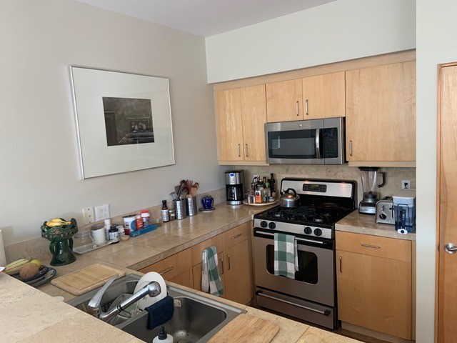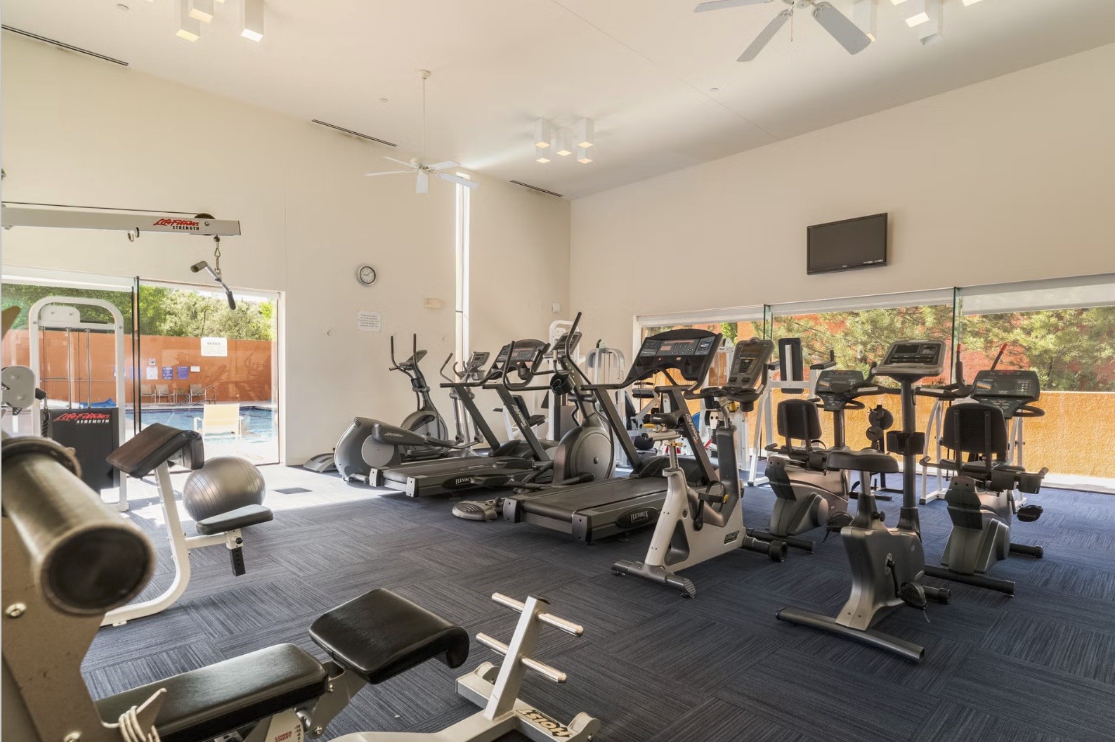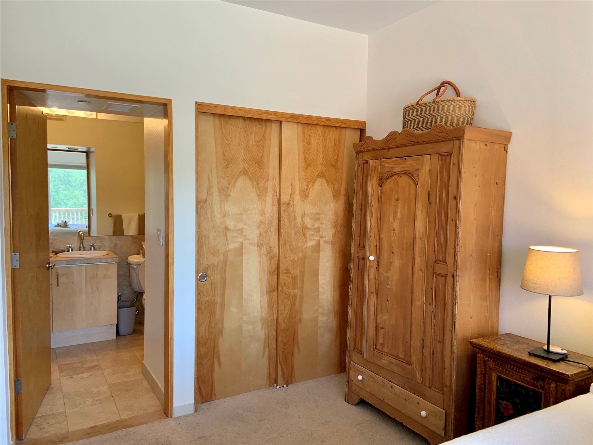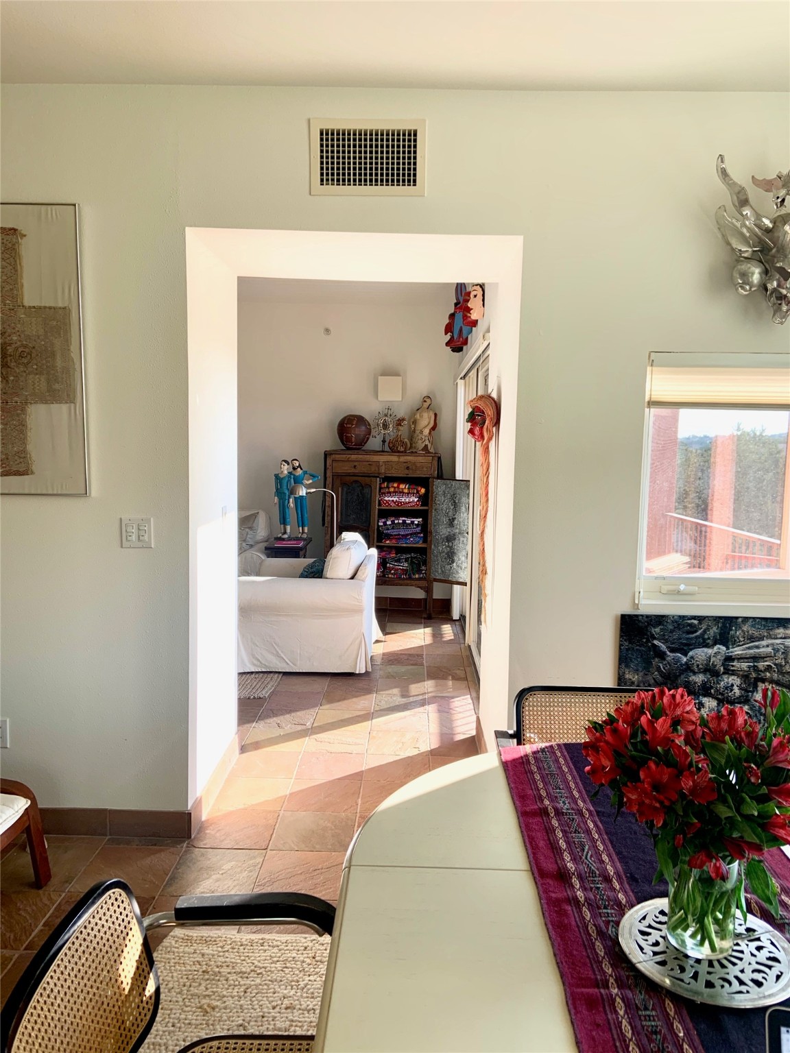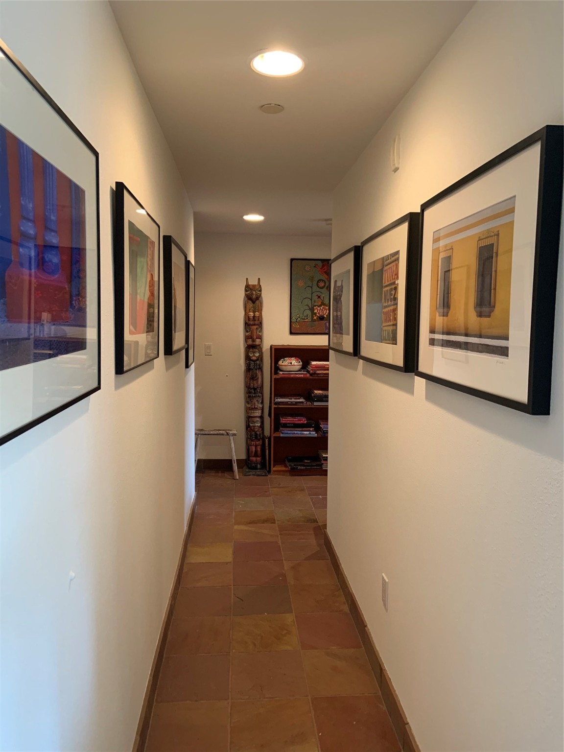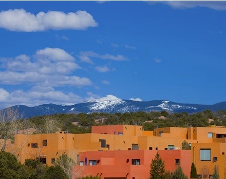 Discover this rare, single-level 2 bed/2 bath condominium in the award-winning Zocalo community, designed by renowned architect Ricardo Legorreta. This 1,206+/- sq ft residence offers sleek, soft-contemporary styling with 9' ceilings, 12-inch sandstone floors, in-floor radiant heat, and a private deck with expansive arroyo views. Recently remodeled, the open-concept layout features a light-filled living area with direct access--no stairs--from either the front door or the finished one-car garage. The kitchen includes natural stone countertops and GE Profile appliances, while both bathrooms feature elegant stone finishes. Bedrooms are carpeted in a tight-weave grey and thoughtfully placed for privacy. Zocalo residents enjoy resort-style amenities: a private clubhouse with pool, hot tub, gym, fireplace lounge, and meeting spaces--all just ~4 miles from the Santa Fe Plaza. Located in the Northern Hills with easy access to downtown, the Opera, hiking trails, and skiing, this unit offers refined living in a vibrant architectural setting. Enjoy the convenience of a private garage, separate laundry area, and refrigerated A/C, plus the vibrant color, clean geometry, and masterful use of light that define Legorreta's celebrated design.