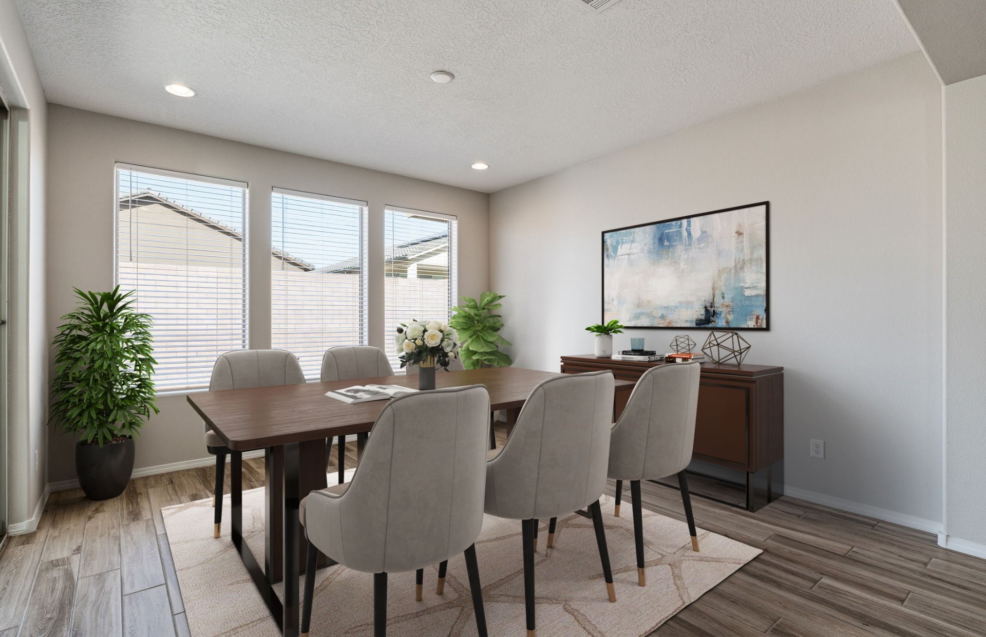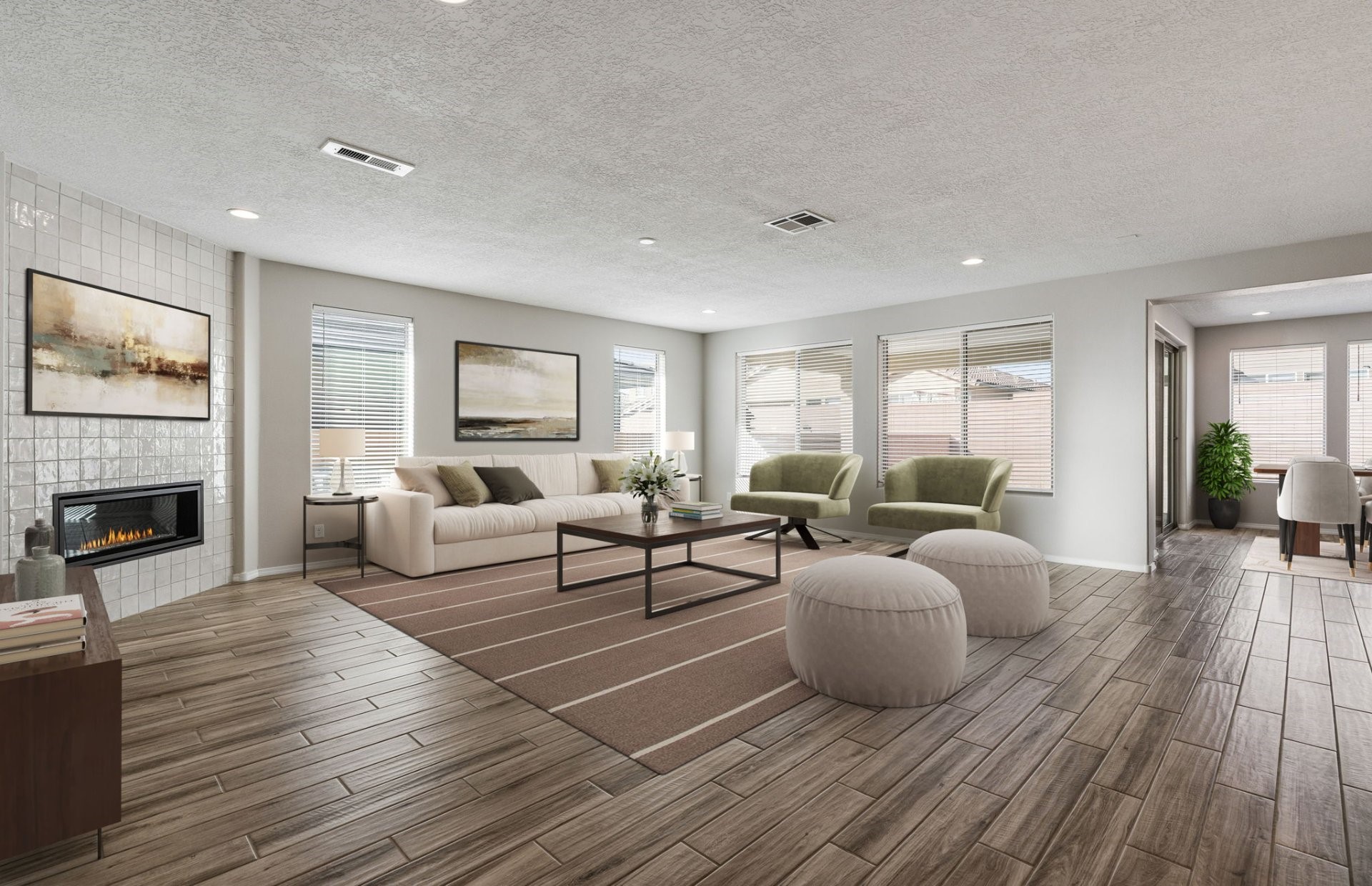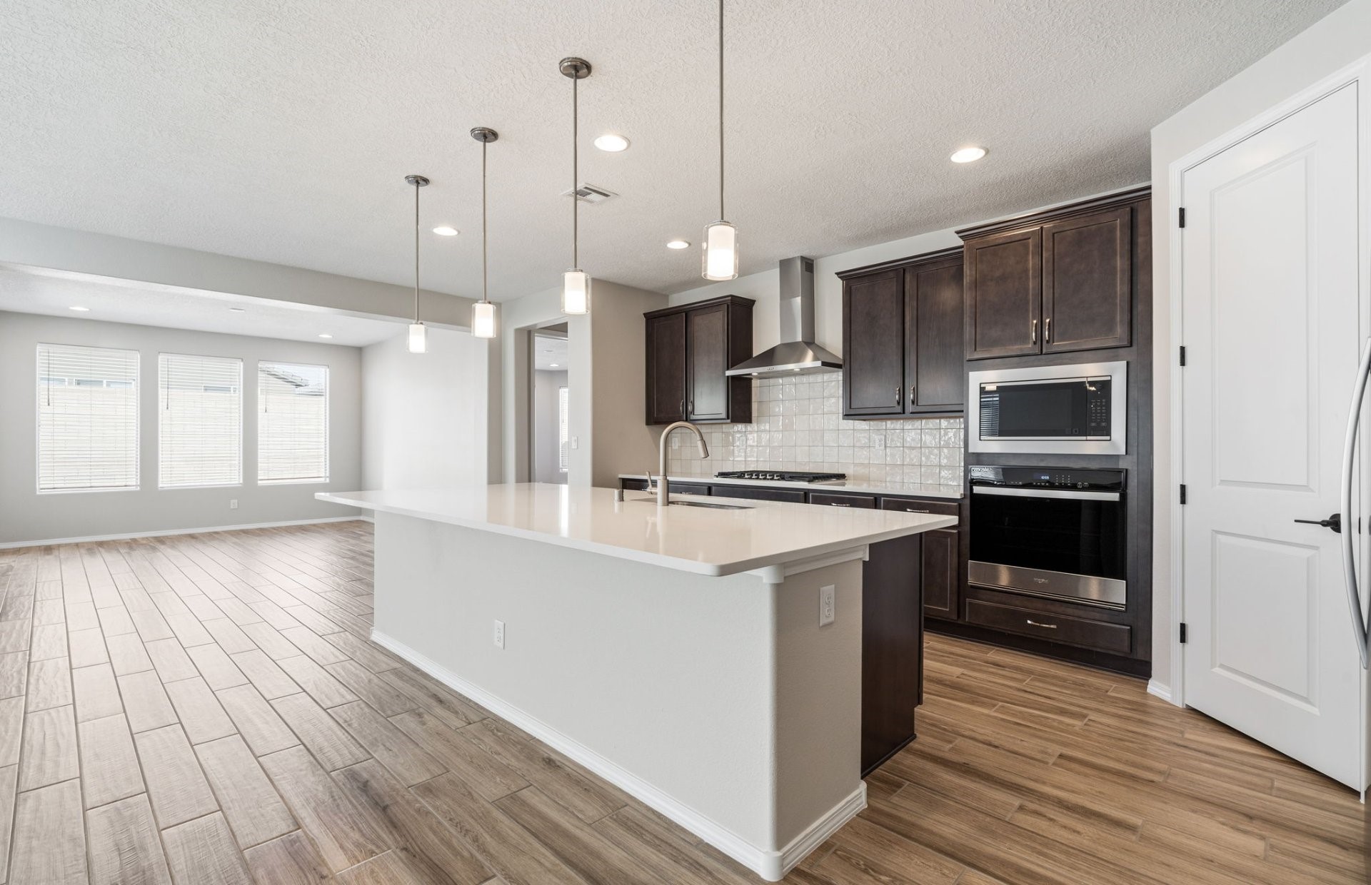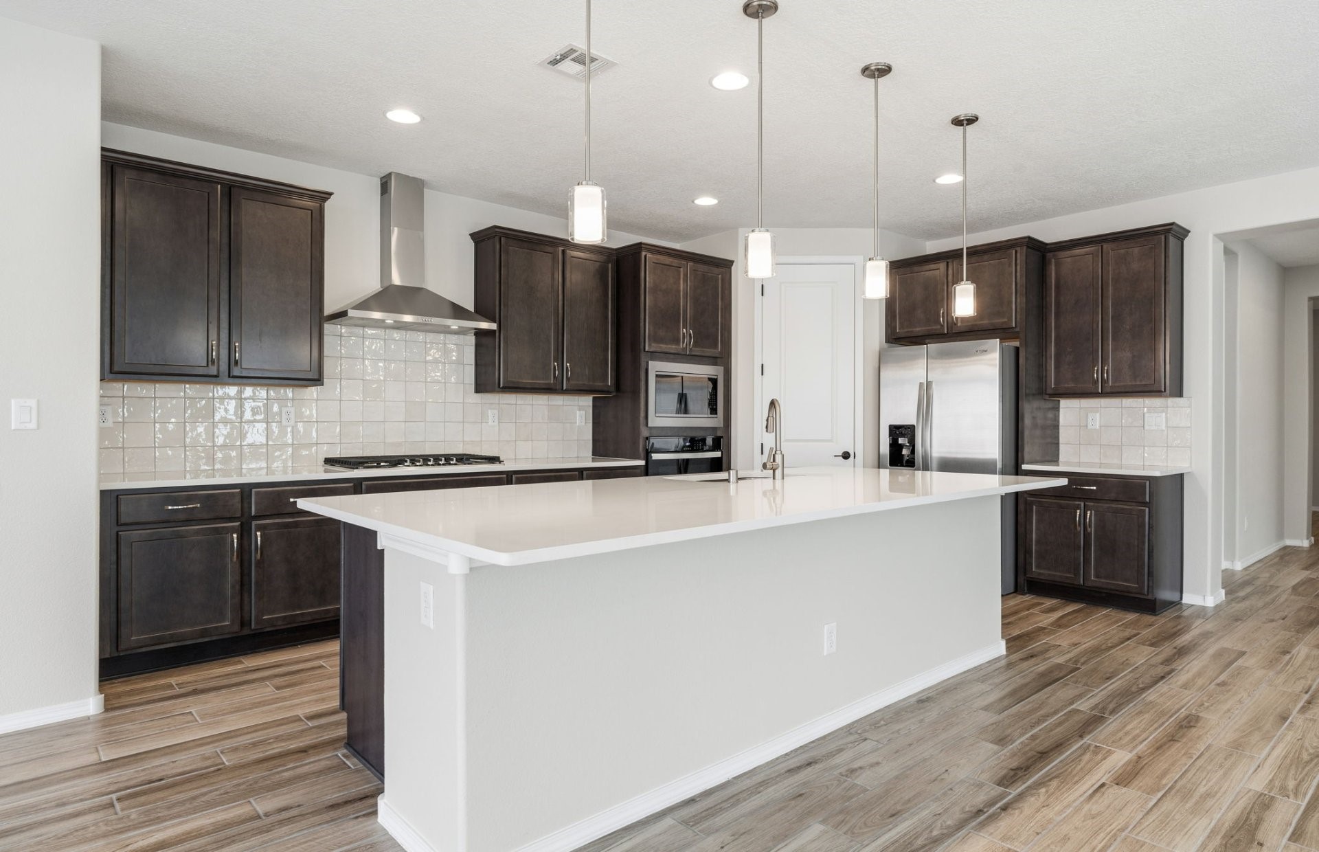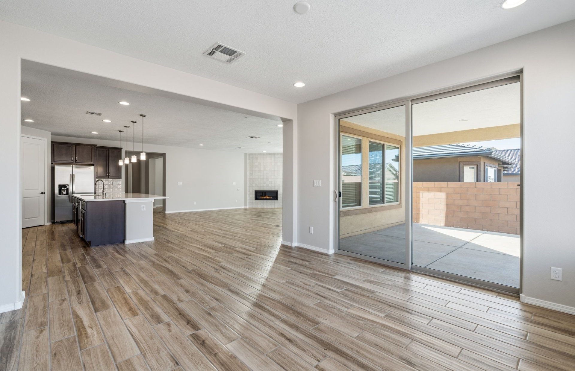 Step into this exceptional single-story home, where elegance meets functionality. The expansive covered patio provides the perfect outdoor retreat for relaxation or entertaining. Inside, the heart of the home features a huge kitchen island, paired with upgraded dark cabinets that offer timeless style and ample storage. Cozy up by the fireplace in the inviting living area, and retreat to the owner's suite, complete with a large 5-foot walk in shower with a seat for a spa-like experience. A spacious office is ideal for productivity or quiet reflection and can easily be used as extra living space. The home's thoughtful design continues with a chef's kitchen with built-in appliances and 8-foot interior doors, enhancing the sense of space throughout. This home is truly a blend of luxury and comfort, perfect for making lasting memories.