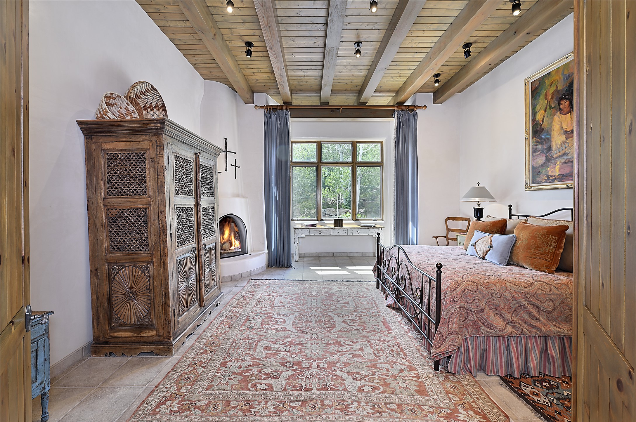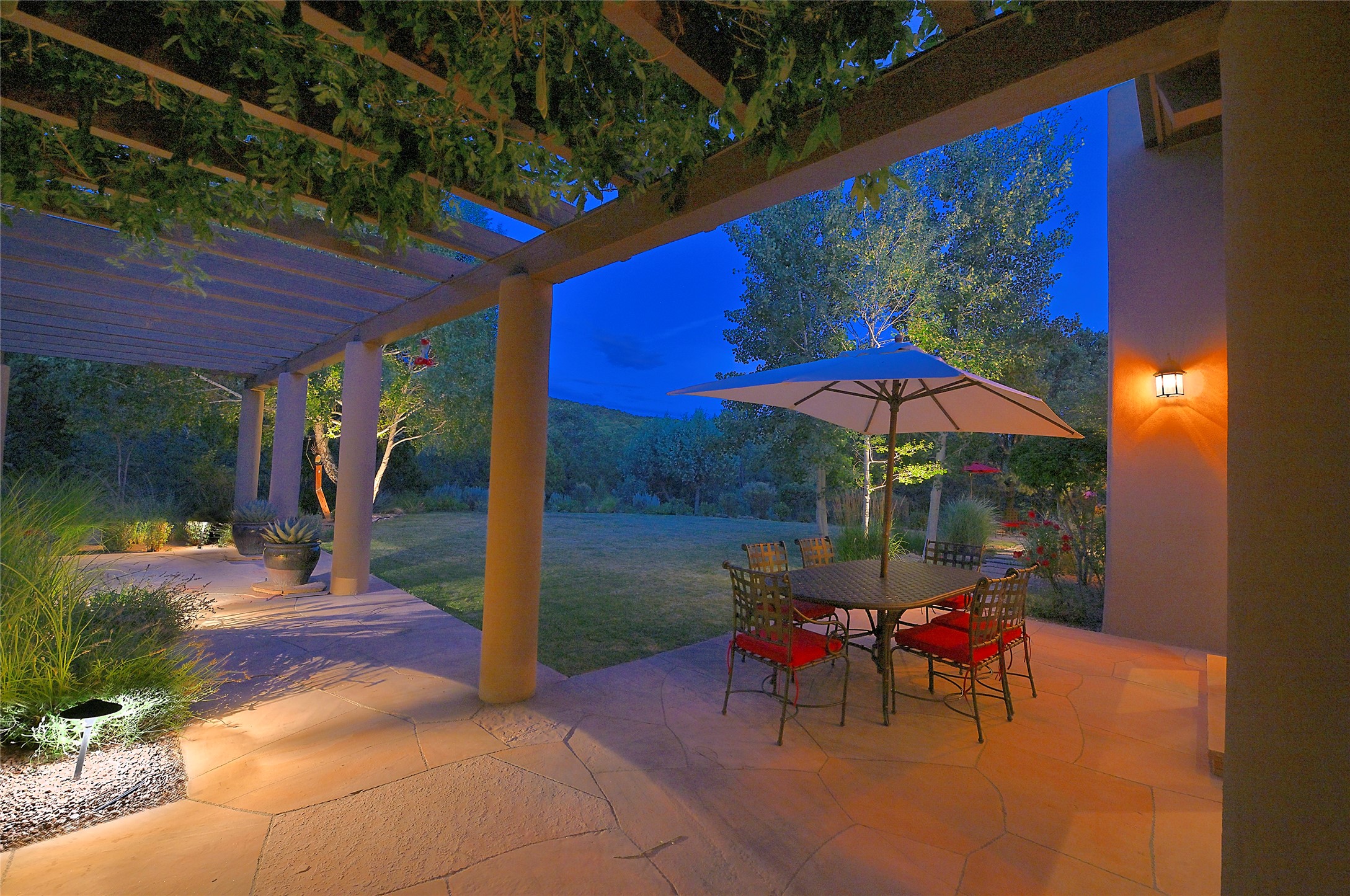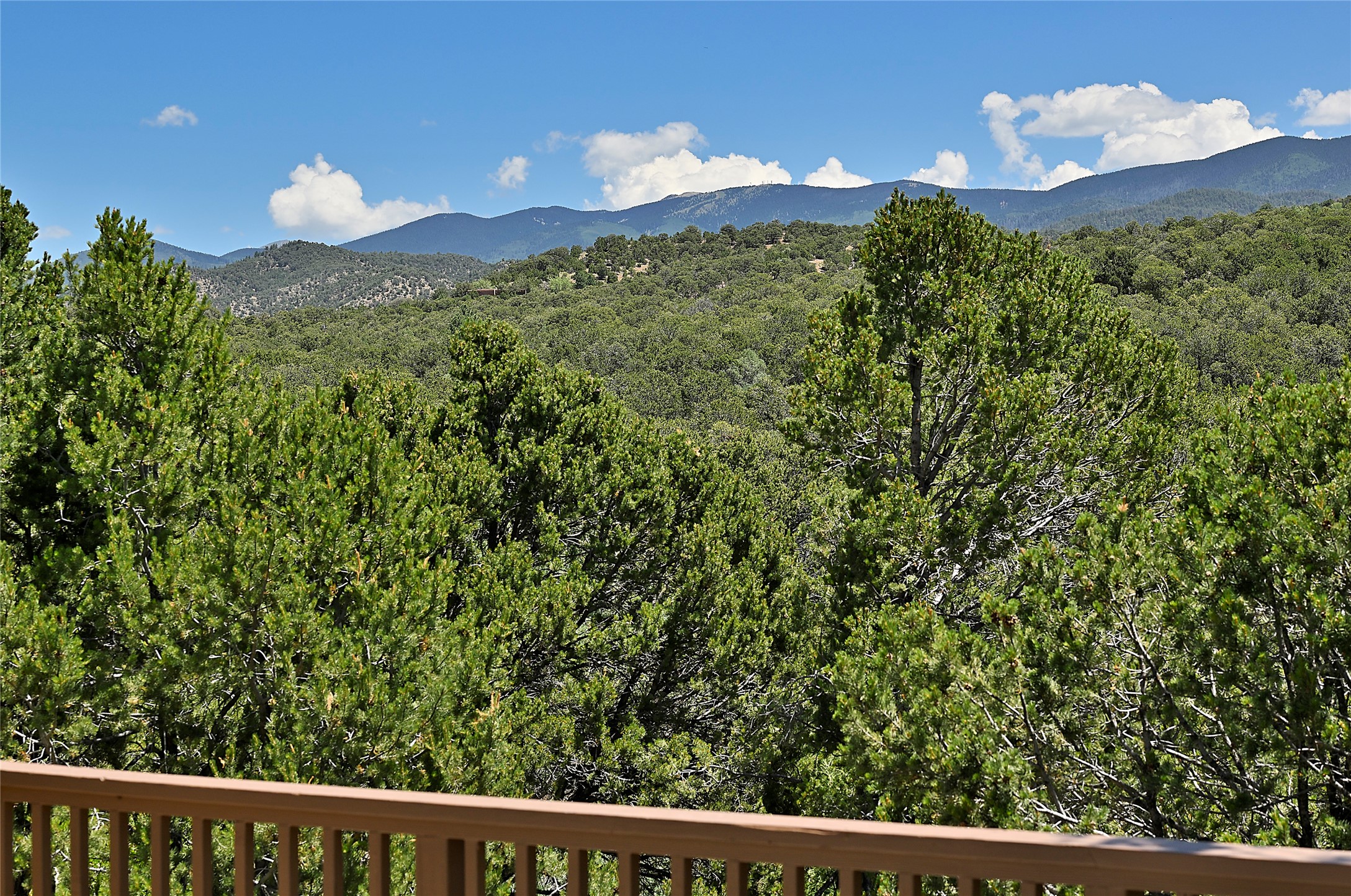 Perched on over 3 lush acres in one of Santa Fe's most coveted enclaves, this exceptional estate offers a rare synthesis of space, serenity, and natural beauty. It is less than 10 minutes from the plaza and the city's extensive mountain hiking trails are only a short walk away. Designed with both privacy and flexibility in mind, the residence unfolds across two thoughtfully connected wings, encompassing five bedrooms and a range of inviting communal and intimate spaces. It is ideally suited for multigenerational living, entertaining, or even a creative retreat.The main level is tailored for effortless single-level living, featuring expansive formal and informal gathering areas, two nicely equipped kitchens, three bedrooms (one of which is a grand suite with a private entrance), a game room and 2 car garage. A sauna and steamroom are situated in the guest bath on the main level. Seamless indoor-outdoor living is made possible through multiple portals, decks, and lawn spaces, framed by towering Aspens, Ponderosa Pines and Pinons, with manicured lawn and gardens, tranquil water features, and sweeping mountain views.Upstairs, two spacious en-suite bedrooms each open to their own private view decks, offering peaceful havens for rest, reading, or quiet contemplation. The home is connected to city utilities, has central air conditioning and heat and has been meticulously maintained, ensuring comfort, durability, and modern ease.Properties of this caliber, combining architectural versatility, natural grace, and premier location, are seldom available. Additional contiguous parcels totaling over 11 acres with commanding hilltop views may be acquired separately, offering a rare opportunity to expand and create an even more secluded private compound.