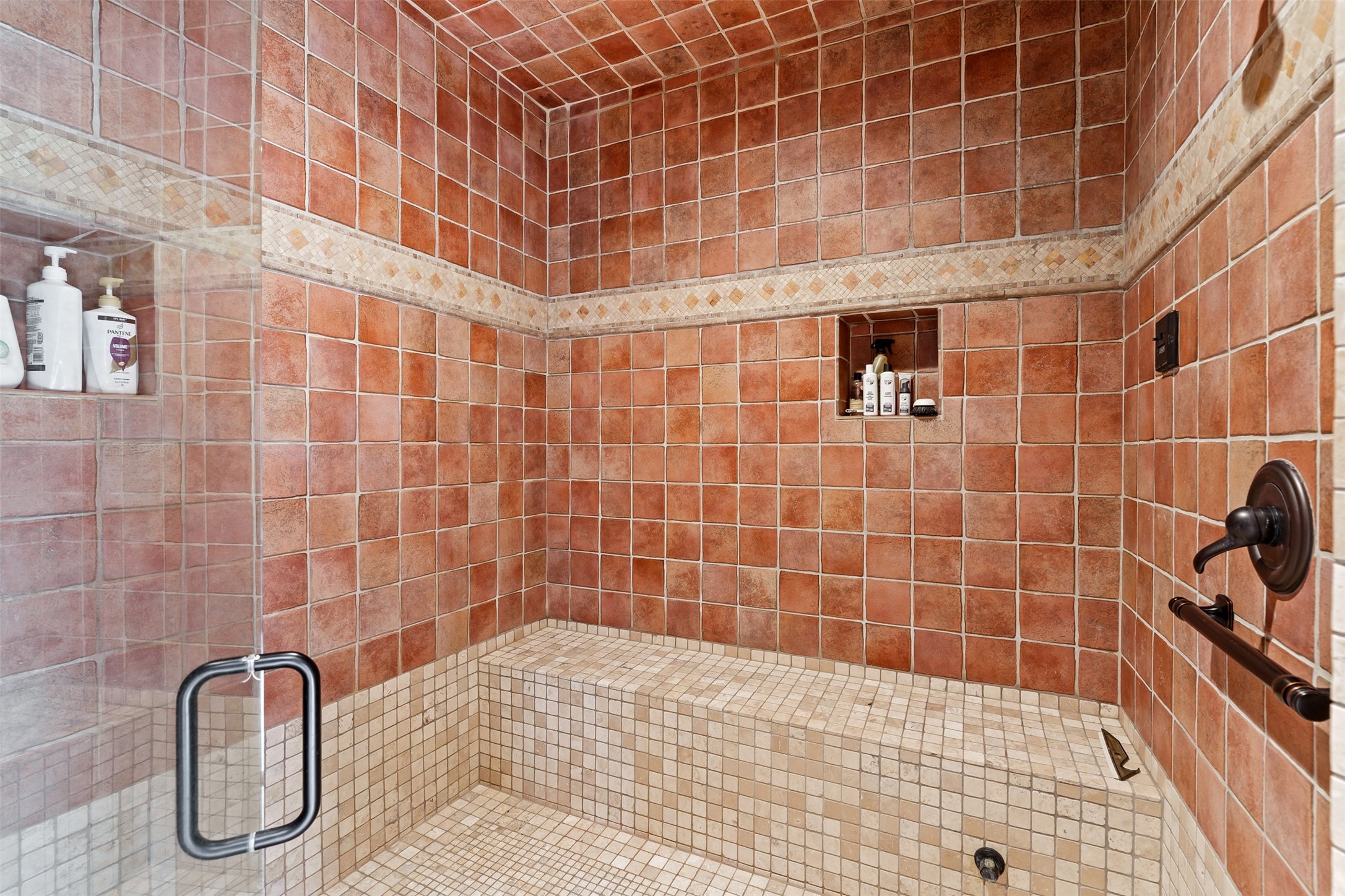 Experience Timeless Santa Fe Elegance in Las Campanas. Approach this exceptional Las Campanas residence through a walled courtyard shaded by mature aspens and graced with fruit trees. Step through the grand rustic wood double doors into a spacious, light-filled central living area that seamlessly unites the living room, dining space, gourmet kitchen, and breakfast nook. The home's layout offers perfect privacy: the primary suite and office are thoughtfully situated in one wing, while two guest suites occupy the opposite side. Throughout, traditional Santa Fe craftsmanship shines--diamond plaster walls, vigas, carved corbels, and built-in shelving and nichos that invite you to showcase art and treasured objects. The living room centers around a large kiva fireplace and frames views of the Jemez Mountains. Glass doors open to an expansive portale, ideal for entertaining or simply savoring the views. The gourmet kitchen features a six-burner Wolf range, wine cooler, granite countertops, center island, and connects to a charming breakfast nook with its own kiva fireplace. The primary suite is a serene retreat with a kiva fireplace, two large walk-in California Closets with built-in storage, and a luxurious bathroom featuring a bidet toilet, steam shower, and jetted tub. Step directly from the suite onto a private portale for morning coffee or evening stargazing. A spacious office with a built-in double desk completes this private wing. Each guest suite offers an en-suite bathroom, and access to a shaded portale; one bathroom includes a double vanity and jetted tub. Outdoor living is enhanced by large, shaded portales with high viga ceilings. The main portale features a built-in gas grill and automated shades. Mature aspens, fruit trees, and lush landscaping create a peaceful, private sanctuary. This home blends the soul of traditional Santa Fe design with the comfort and functionality of modern luxury--all in the heart of Las Campanas.