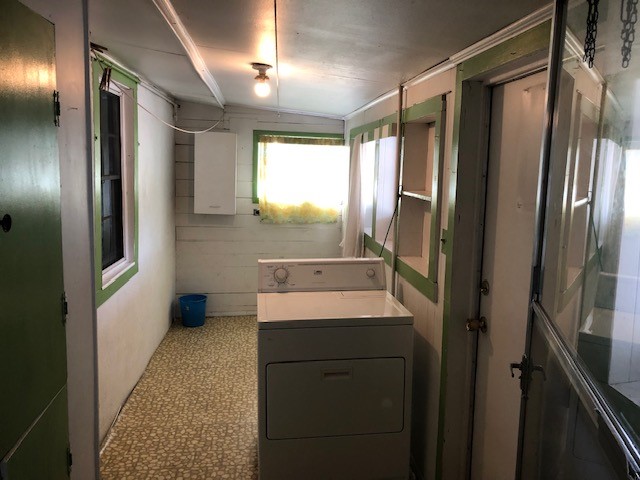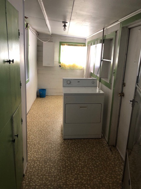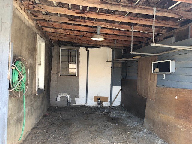 Cute adobe in west Las Vegas. Walk in from the covered front porch into a comfortably sized living room, and beyond that two bedrooms, one bath with a shower and laundry facilities, a large kitchen with newer appliances and either a dining room or third bedroom. An attached one-car garage is on the right side of the house. The whole property is fenced, with a small front yard and a larger back yard. There is an enclosed porch off the kitchen also. New plumbing for kitchen and bathroom; new toilet and sink.