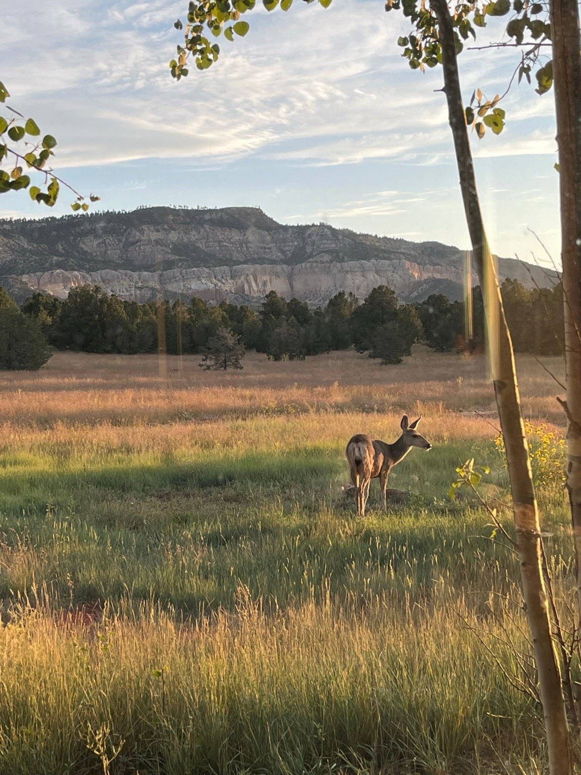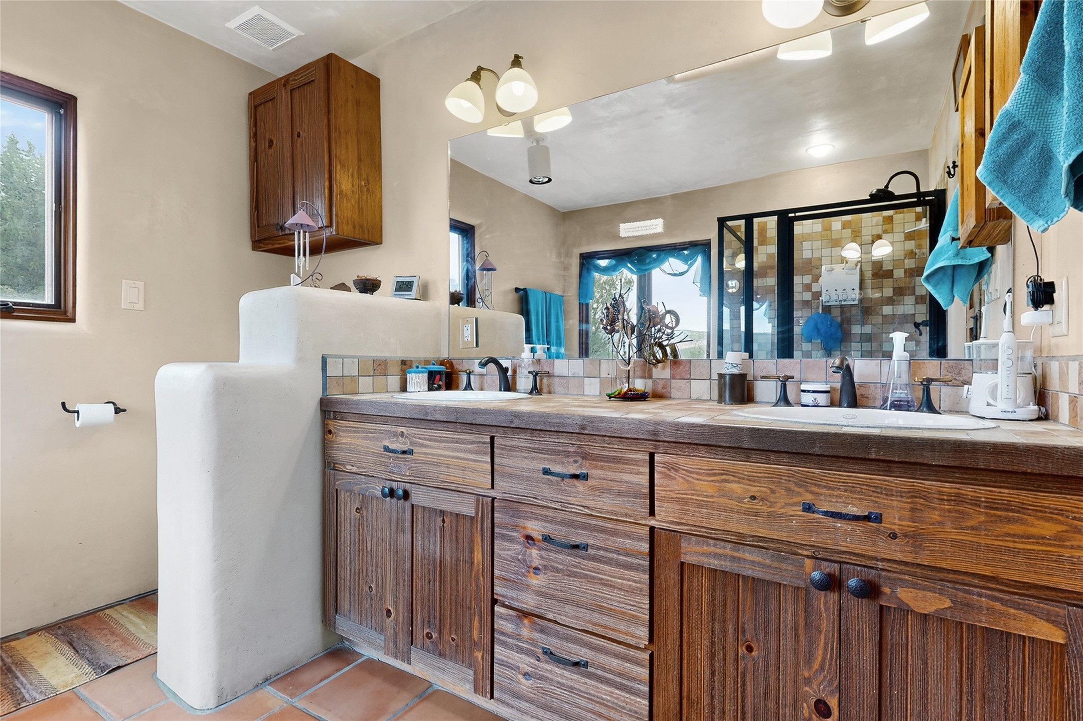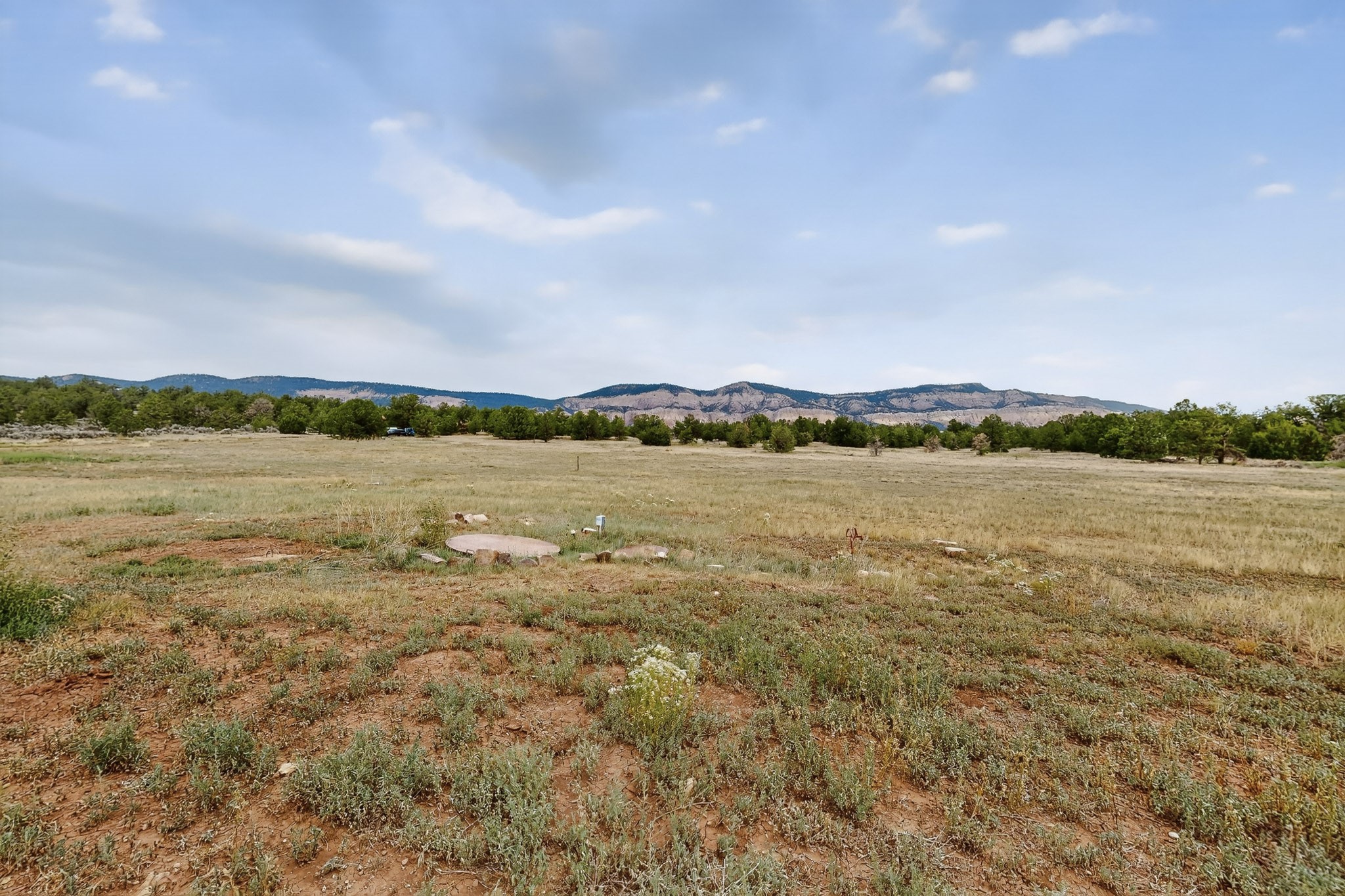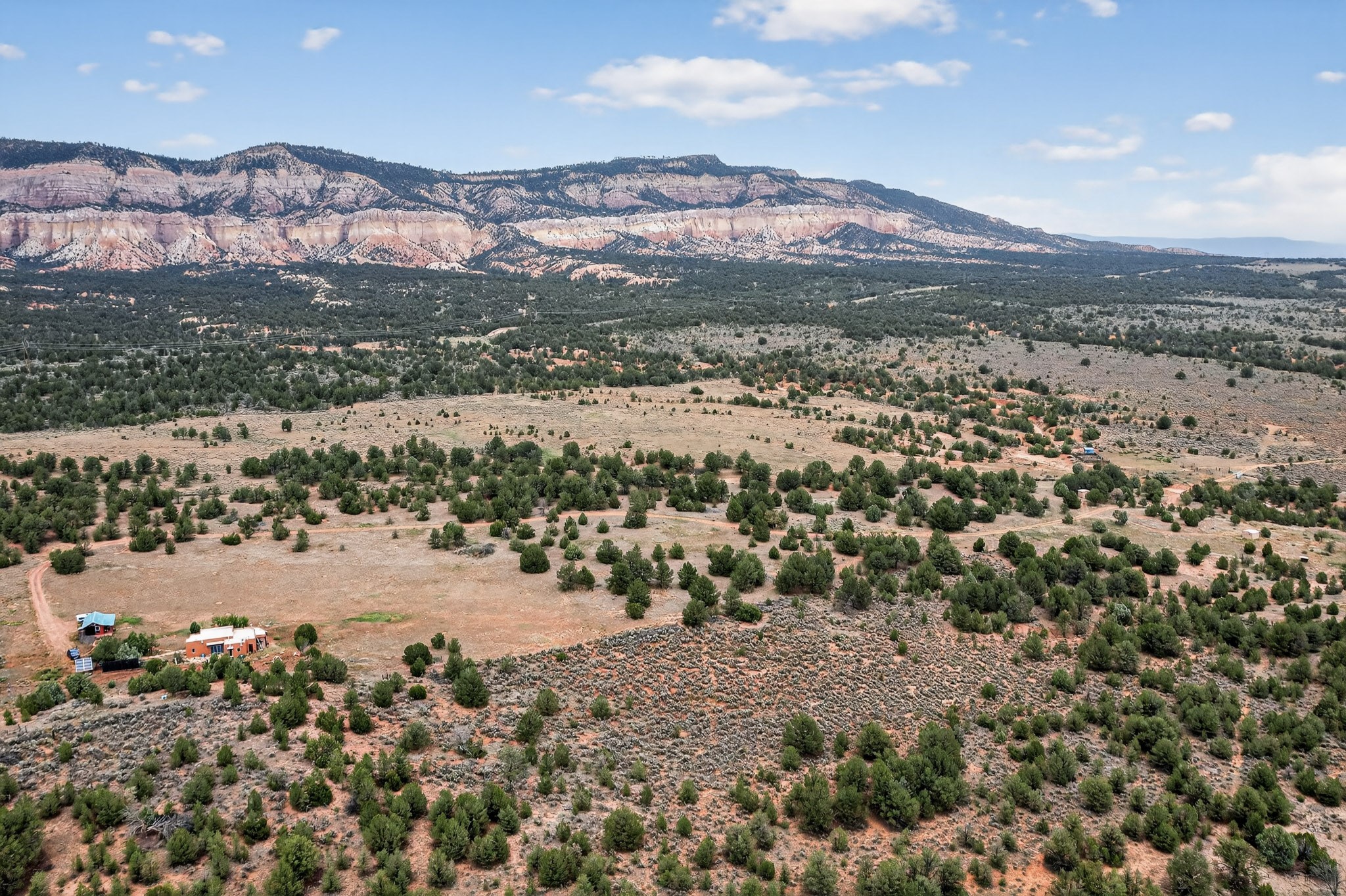 If you yearn for privacy surrounded by natural beauty, this is the place you have been searching for. This home, known as "Casa Alegre," the Happy House, and the nearby guest house offer quality custom construction with expansive views from every room including the guest house deck, the entrance portal (porch) of the main house as well as the two large picture windows in the great room of the main house. The traditional Pueblo Revival Style of this home, features bancos that beckon you to sit and appreciate the enchanting everchanging views to be experienced and appreciated at any moment in the day throughout the year. Look beyond the open meadow to the timeless, dramatic Mesa, with its varied hues of strata that provide clues to the geologic history of this land. This home is located in an area that is rich in history and the remnants of past cultures tell a story of the ancestral inhabitants of the land. The landscape beyond the open space of the meadow is an incredible example of high desert Juniper, Pinon and Ponderosa forest mix - all occupying the same ecosystem harmoniously. The wildlife that is drawn to this area by the two small streams located on the property dwell on this land and the surrounding forest, are a marvel to watch from the safety of this home. It is like watching a Jacques Cousteau land video, if it ever existed, in real time. The home has many very special features among them the beautiful burnished vigas and the saltillo tile flooring accenting the adobe-like, interior walls. Examine each the element whether it be the cabinets, doors, or walls, for it is a work of art, a reflection and an homage of a deep love and appreciation for the land and skies. The guest house is fully equipped with a small kitchen and a full bath/shower combination. Further away from the main home, there are two small outbuildings one of which has occasionally been utilized as extra guest house with a rustic outhouse nearby. With the abundance of New Mexico sunshine, solar panels generate electricity storing it in batteries, should there be a power outage on the distribution line. The panels have been paid in full. There are so many things to discover and learn from this land and the public lands that surround the area. So much has been learned, yet there is so much more to discover. Please watch the 3d VIDEO, The SHOWCASE VIDEO, and the extra photos provided by the seller.