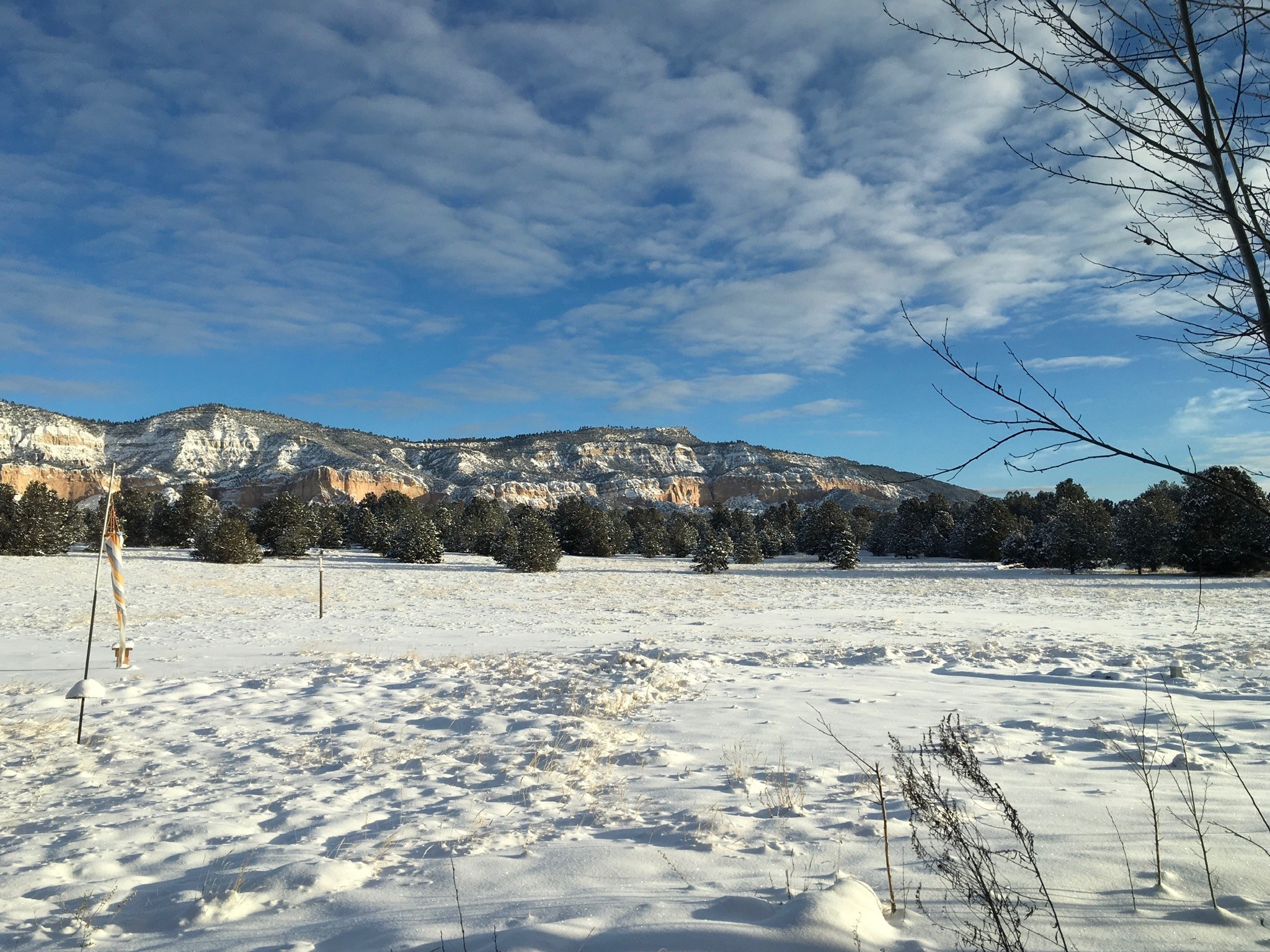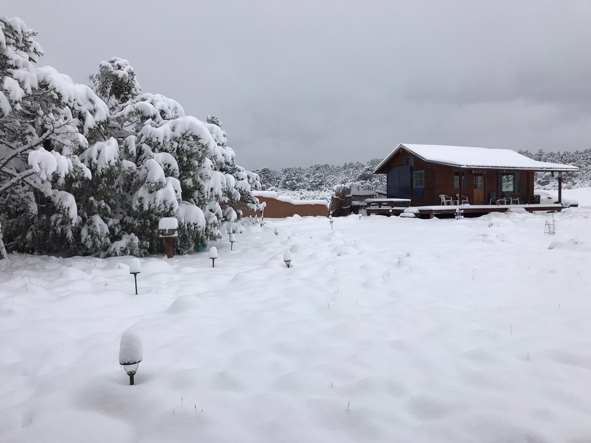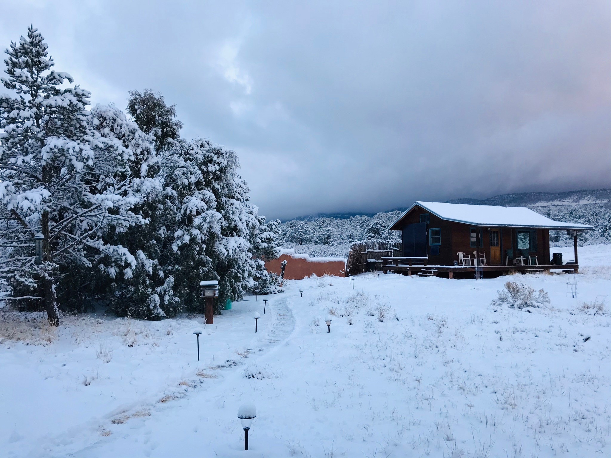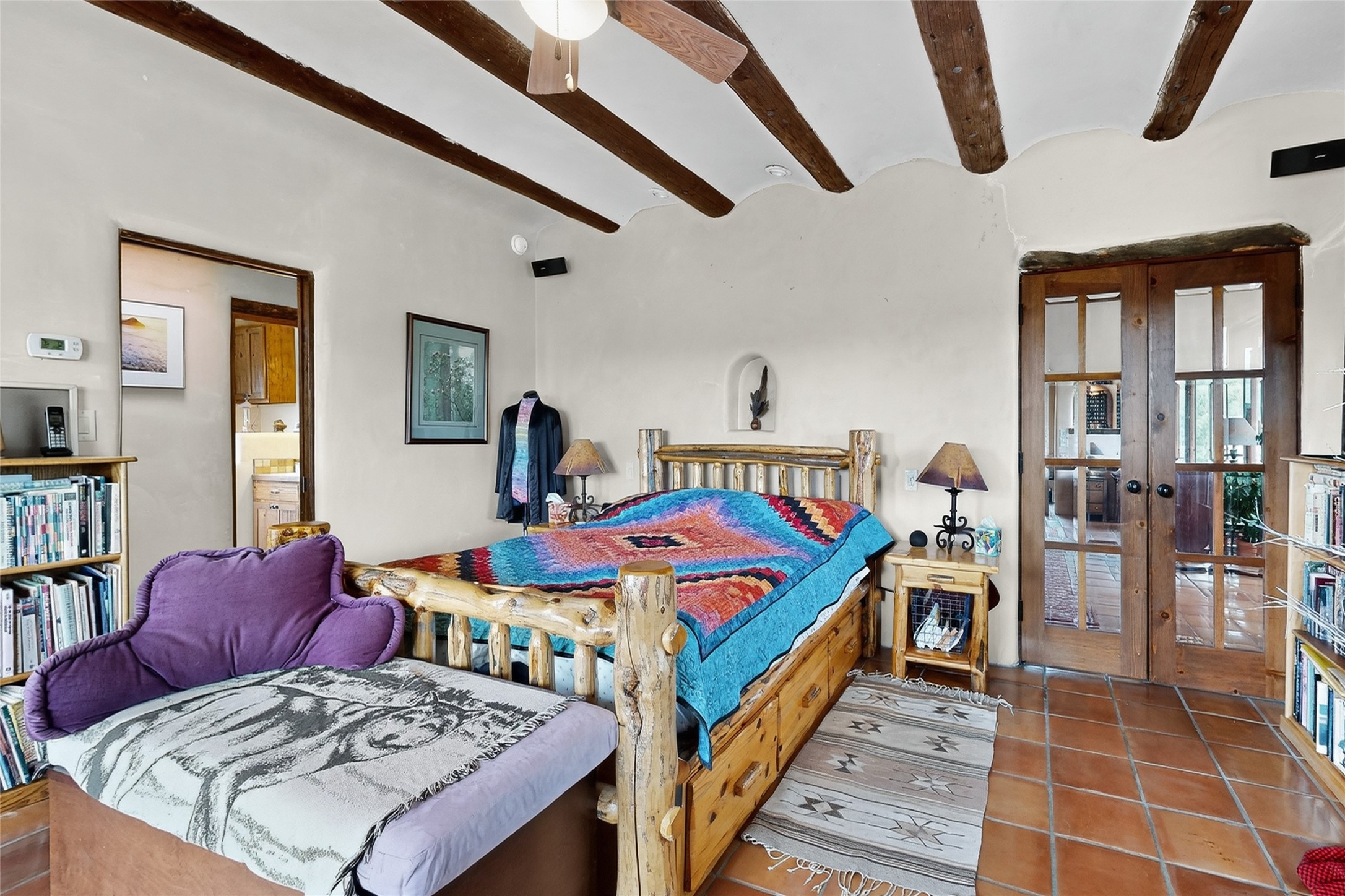 If you yearn for privacy surrounded by natural beauty, this is the place you have been searching for. This home, known as "Casa Alegre," the Happy House, and the nearby guest house offer quality custom construction with expansive views from every room including the guest house deck, the entrance portal (porch) of the main house as well as the two large picture windows in the great room of the main house. The traditional Pueblo Revival Style of this home, features bancos that beckon you to sit and appreciate the enchanting everchanging views to be experienced and appreciated at any moment in the day throughout the year. Look beyond the open meadow to the timeless, dramatic Mesa, with its varied hues of strata that provide clues to the geologic history of this land. This home is located in an area that is rich in history and the remnants of past cultures tell a story of the ancestral inhabitants of the land. The landscape beyond the open space of the meadow is an incredible example of high desert Juniper, Pinon and Ponderosa forest mix - all occupying the same ecosystem harmoniously. The wildlife that is drawn to this area by the two small streams located on the property dwell on this land and the surrounding forest, are a marvel to watch from the safety of this home. It is like watching a Jacques Cousteau land video, if it ever existed, in real time. The home has many very special features among them the beautiful burnished vigas and the saltillo tile flooring accenting the adobe-like, interior walls. Examine each the element whether it be the cabinets, doors, or walls, for it is a work of art, a reflection and an homage of a deep love and appreciation for the land and skies. The guest house is fully equipped with a small kitchen and a full bath/shower combination. Further away from the main home, there are two small outbuildings one of which has occasionally been utilized as extra guest house with a rustic outhouse nearby. With the abundance of New Mexico sunshine, solar panels generate electricity storing it in batteries, should there be a power outage on the distribution line. The panels have been paid in full. There are so many things to discover and learn from this land and the public lands that surround the area. So much has been learned, yet there is so much more to discover. Please watch the 3d VIDEO, The SHOWCASE VIDEO, and the extra photos provided by the seller.