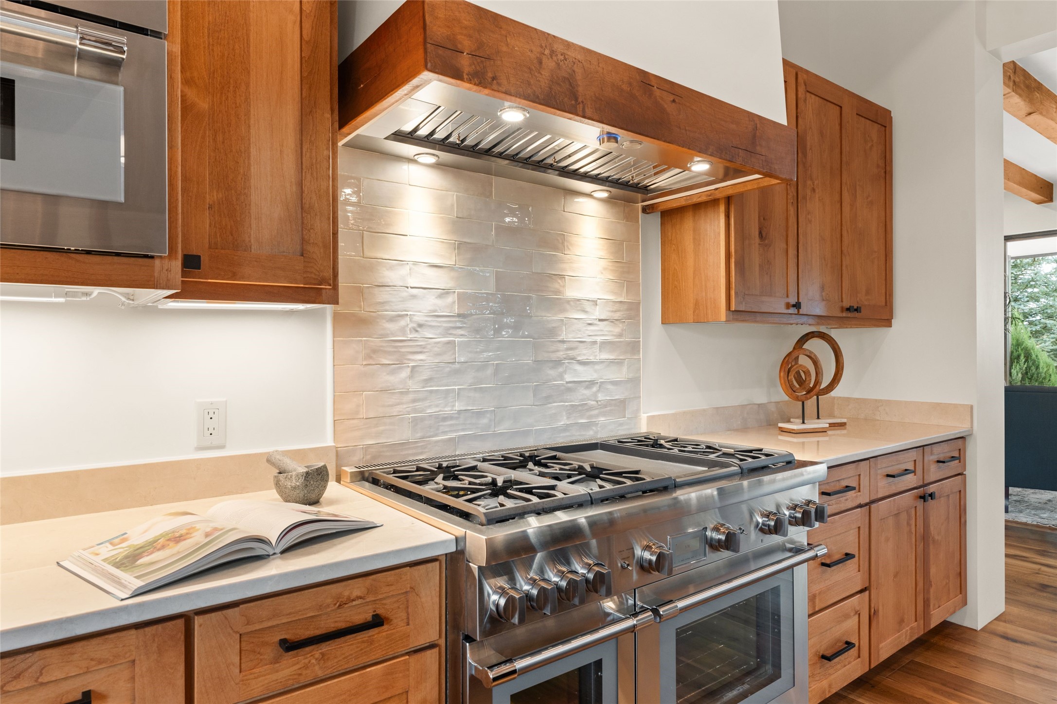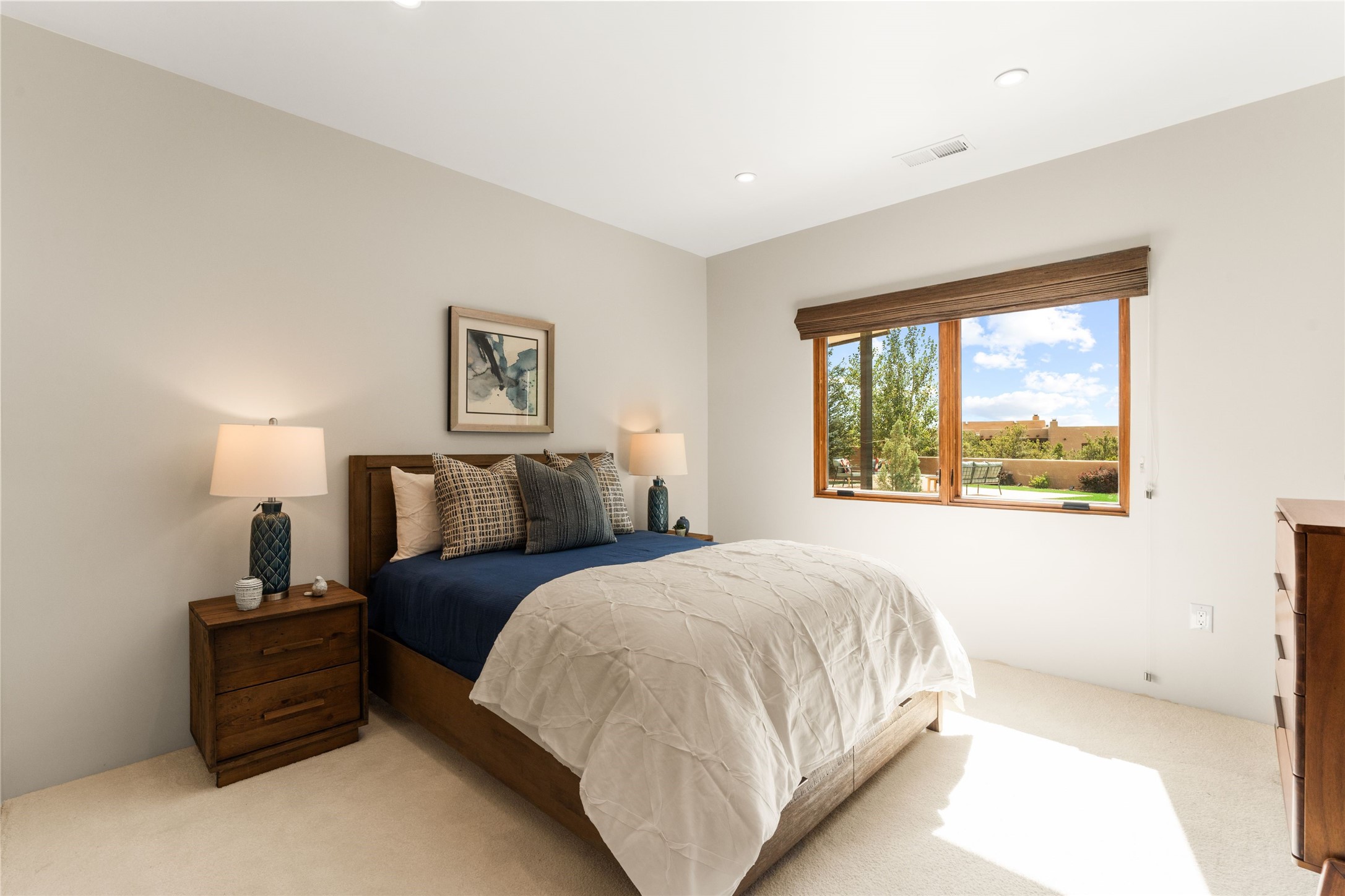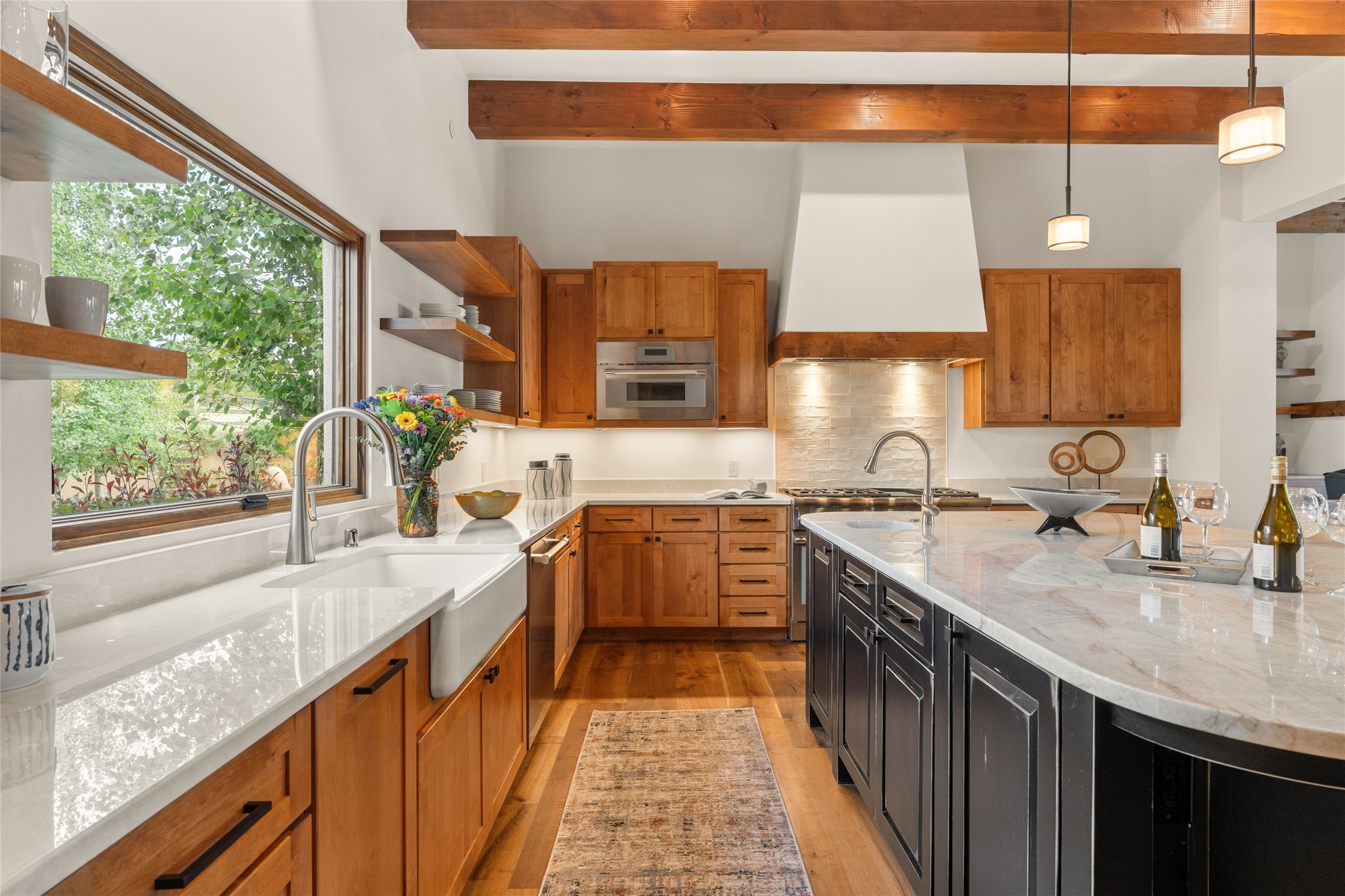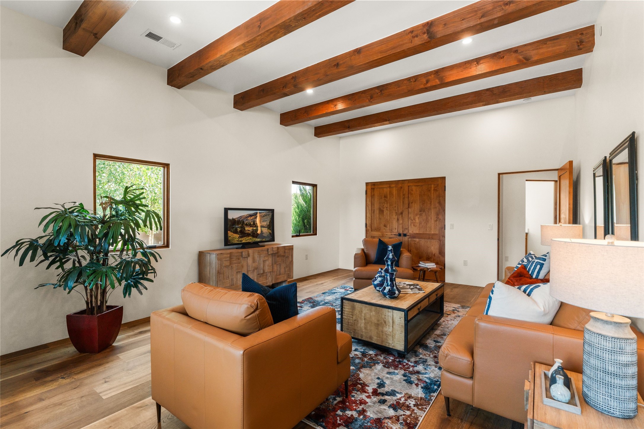 Santa Fe is a vibrant city and this is the home to enjoy it in. Nestled in one of the most sought after neighborhoods, this exceptional custom built home offers the perfect blend of luxury, tranquility, and design. Not far from the downtown, yet situated on 2.5 acres with breathtaking views in all directions. Not too grandiose but just the right amount of wonderful with tall beamed ceilings, tasteful wood floors and an impressive open concept that accommodates flawlessly while continually framing the captivating West views Santa Fe is famous for. Spend your mornings on the south of the home with a delightful seating area amongst fabulously landscaped outdoor spaces with mature spruce and aspen trees and fire pit but be sure to take in the evenings on the rear portal with the custom 65" Cubo Fire Table situated to capture the unparalleled views of the Jemez Mountains. With over a thousand sq ft of covered outdoor spaces, this is the ideal place to enjoy; as beautiful on the inside as on the outside and perfect for entertaining. Heated oversized three car garage, den/bedroom with extra soundproofing great for music enthusiasts or a media room, nicely appointed kitchen, bedrooms en suite, gated entry, Tpo roof, nearby trail systems, no dirt roads, Level 3 ev charger, whole home humidification system and more. If you're looking for a property that combines privacy, elegance, and a connection to the natural beauty of this incredible city, look no further. Come and experience this serene and tranquil beauty, and oh those outdoor spaces!