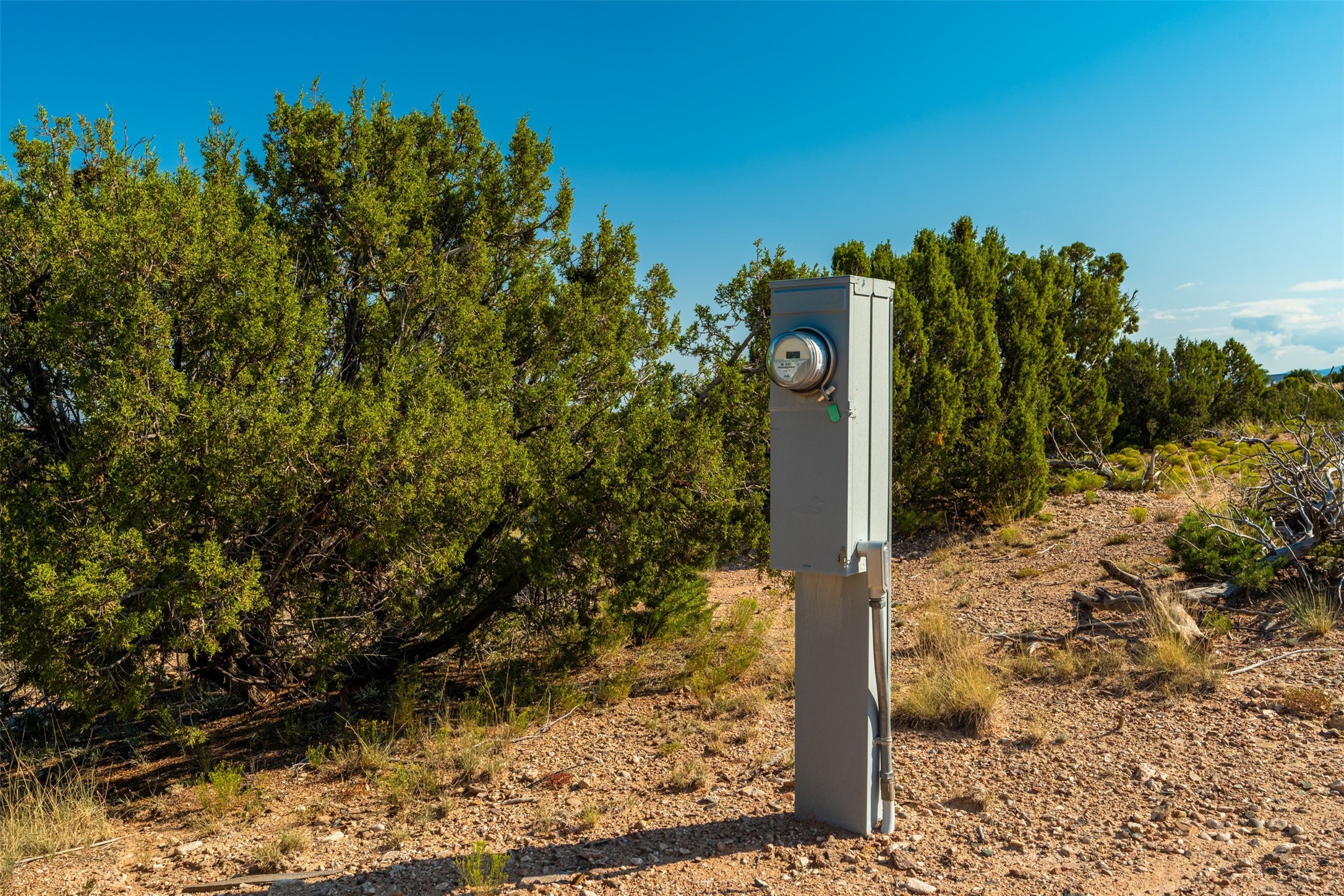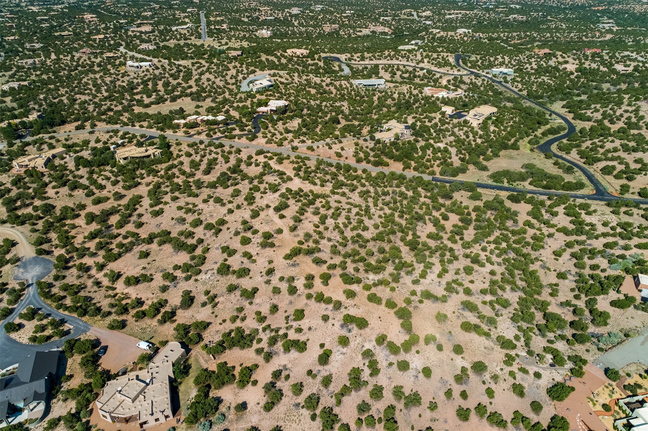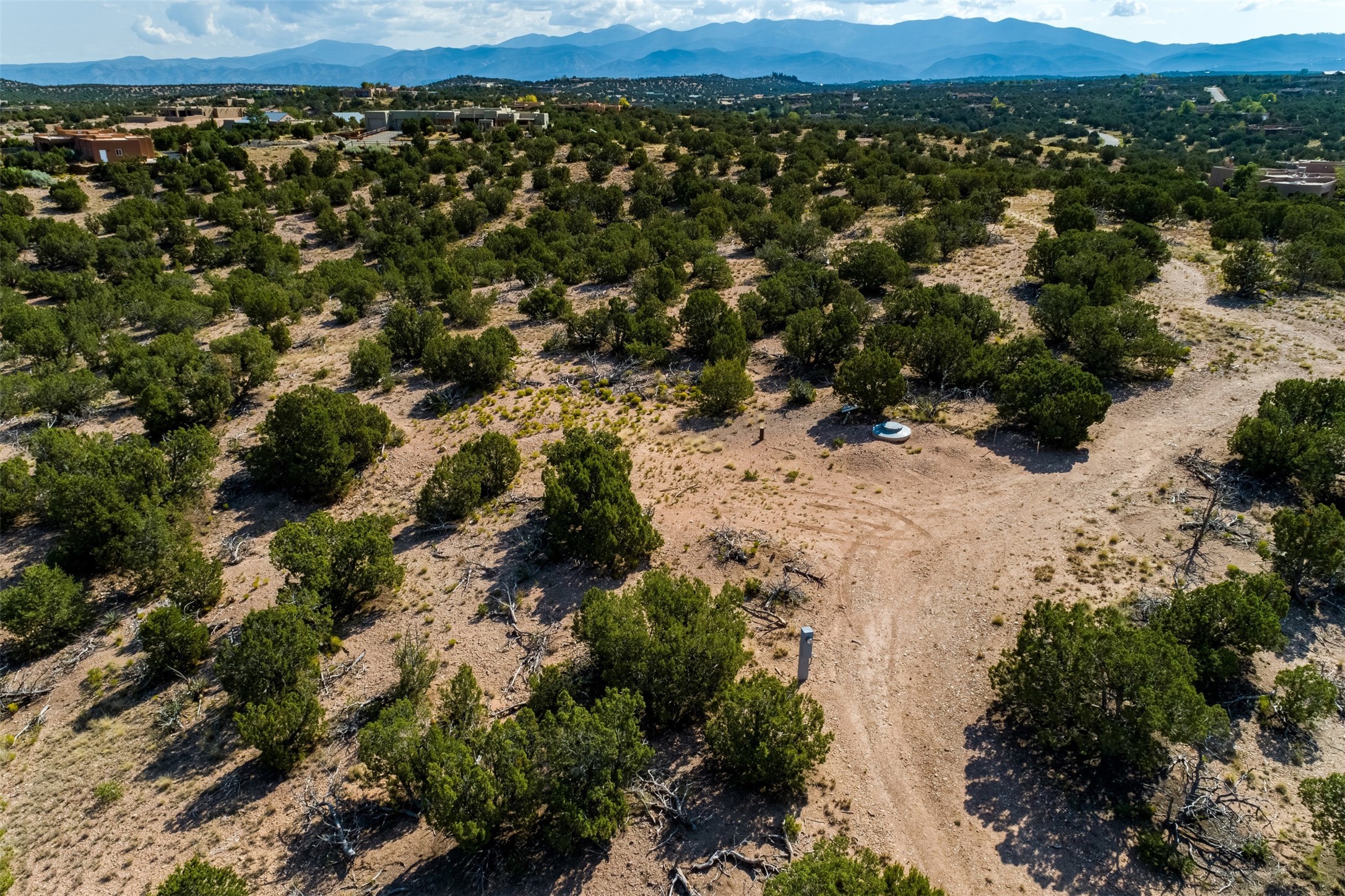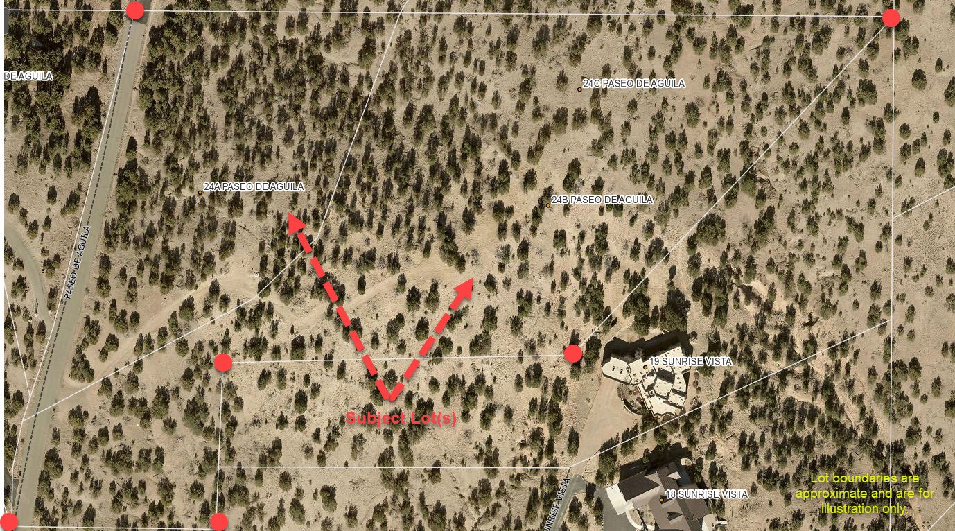 This outstanding 7.5-acre "top-of-the world" estate lot offers proximity to town, ease of access, privacy and sweeping panoramic views. The offering consists of two lots that can be used to craft an exceptional estate or multi-generational compound. This is the only lot of this size in the area with generous building site options and a shared well. Natural gas and electricity are in the street. The unobstructed views of the Sangre de Cristo, Jemez and Sandia Mountains make this an exceptional offering. Building plans and consultation available from Modern Design+Construction.