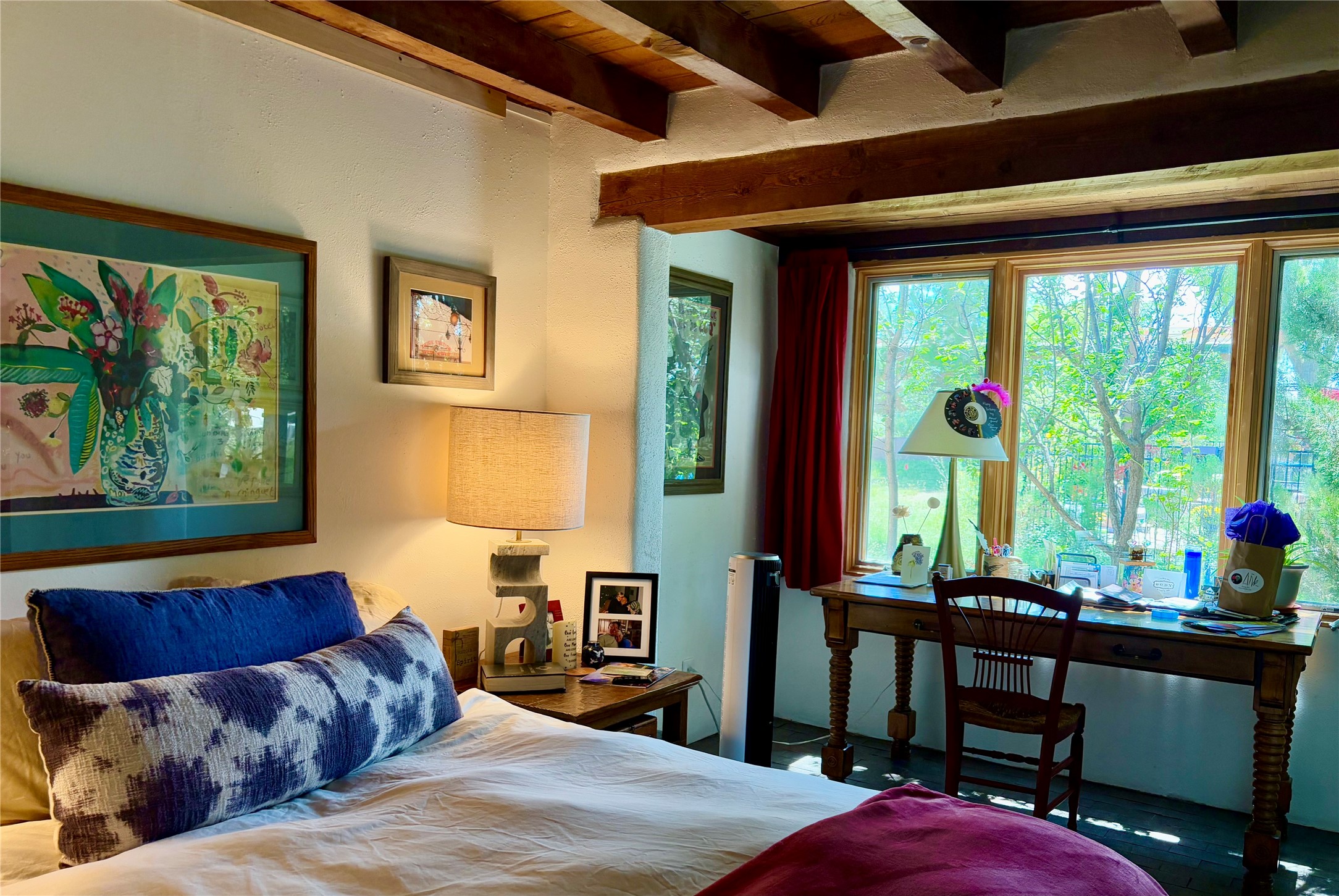 *** WEBSITE: oldcompoundsantafe.com *** What's your dream? A historic Santa Fe compound, nestled on about two semi-rural acres, with an adjoining 0.41 acre lot. Less than 3 miles from the Santa Fe Plaza, the 100+ year old adobe residence and five casitas surround a green central oasis and a small swimming pool. + Imagine the possibilities: retreat, extended family, intentional community, workshops, therapy & health, retirement, or something not yet imagined. +Reserved development rights on 2/3 acre and the vacant lot expand the possibilities. +The current owners discovered the compound in 1969, bought it in 2006, and have been restoring, planting, and loving it ever since. They are ready to offer the compound to new owners, whatever their new dreams may be. + 6 units in 4 buildings, with 8 bedrooms, 8 baths, 9 fireplaces. (Note: Fires in fireplaces are photoshopped in. Buyer should verify fireplaces' functionality.) + Total heated space = 6215 sq. ft. + Each unit has private outdoor garden space. + Extensive remodeling: kitchens and baths, oak and brick floors, new Pella windows, TPO roof, and more. + Landscaping with hundreds of native trees, bushes, vines, and flowers; rock walls and fences. + 12' x 28' Barn with roll up garage door.