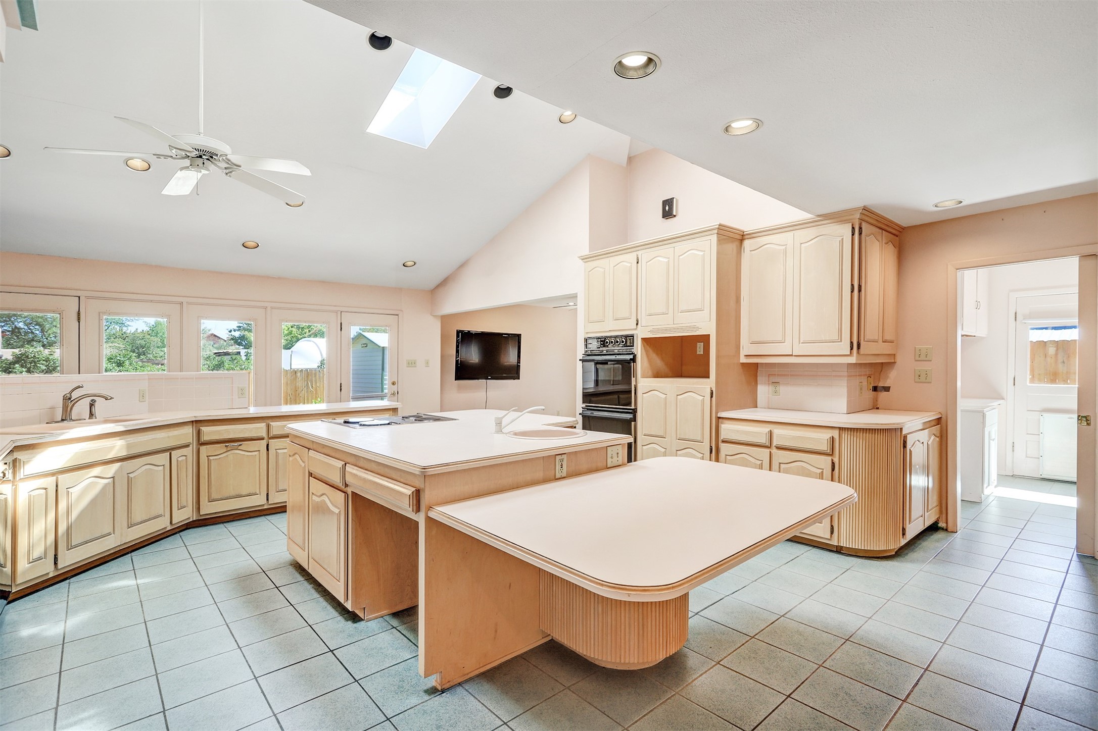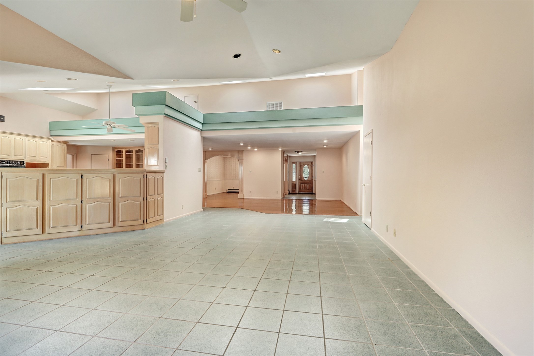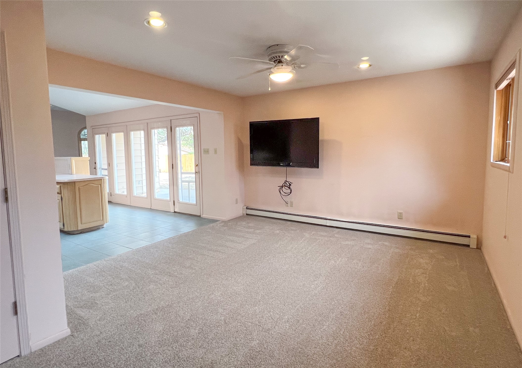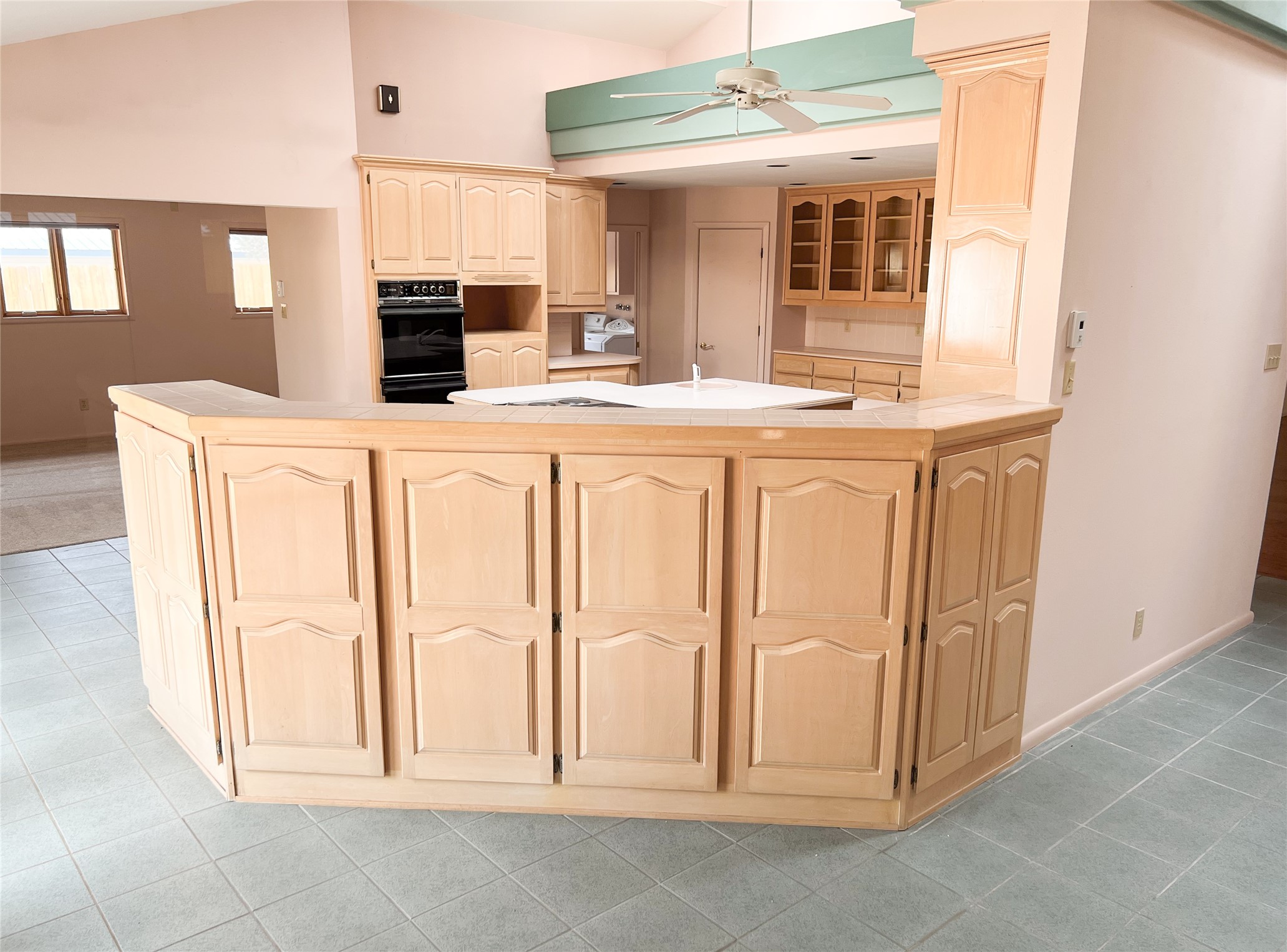 This inviting single-family offers open living space designed for comfort and functionality. The living room showcases soaring cathedral ceilings and radiant heated tile floors, creating a warm and welcoming atmosphere. At the heart of the home, the expansive kitchen features abundant storage and a central location, seamlessly connecting to the main living areas. A beautiful separate dining room provides the perfect setting for gatherings, while the cozy den/bonus room with brand-new carpet offers a more relaxed retreat. The primary suite includes an ensuite bathroom and a generous walk-in closet with built-in organizers. Two additional bedrooms and a second bathroom provide plenty of space for family or guests. Primary bedroom and secondary bedroom recently had wallpaper removed and painted. The two-car garage is currently configured as a one-car garage plus a versatile rec room, with the option to convert back to a full two-car setup. Outdoors, enjoy RV parking with electrical hookup, a private backyard, and a quality Morgan shed for extra storage. This home blends thoughtful design with flexibility, offering space to live, entertain, and grow.