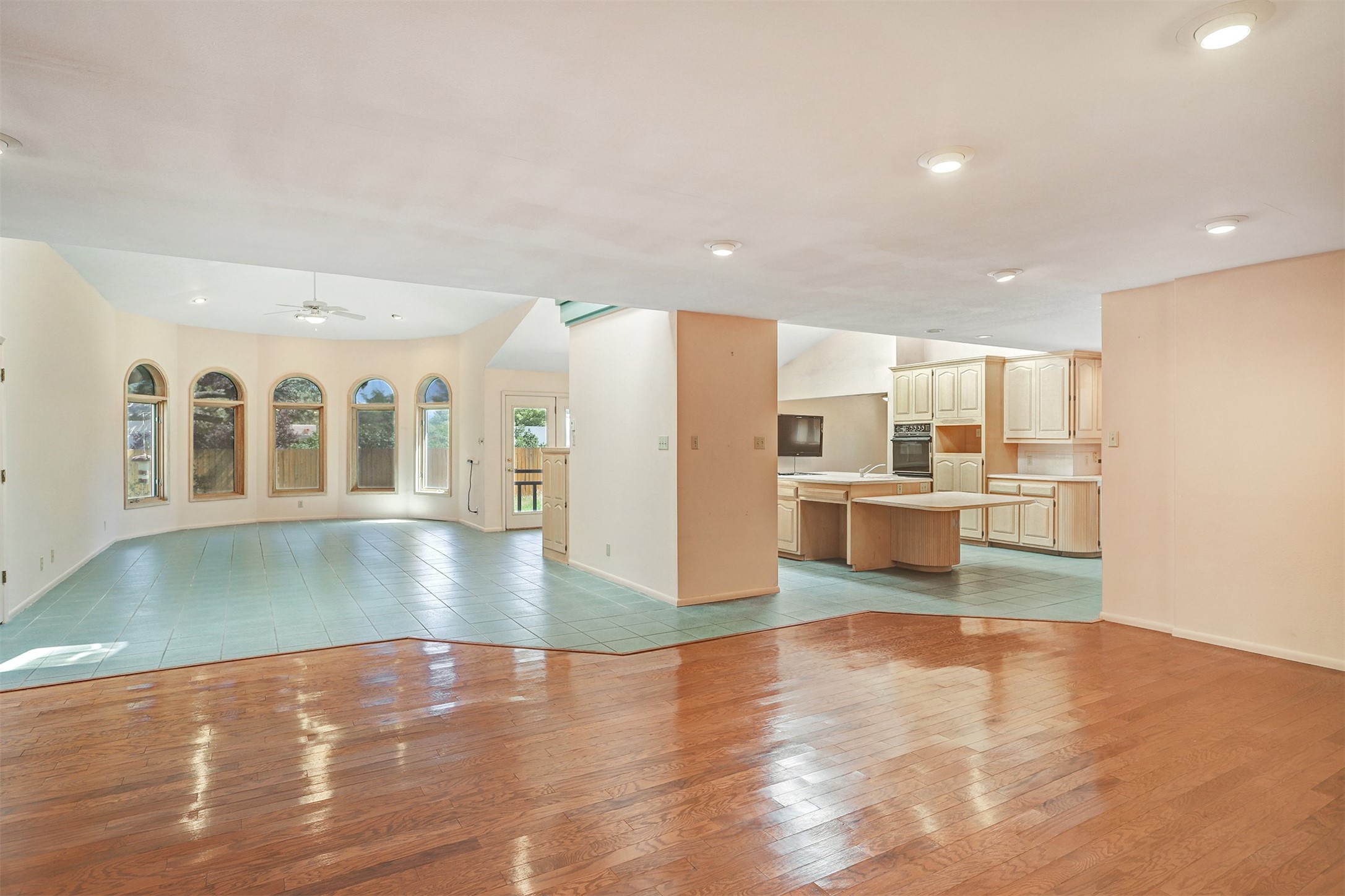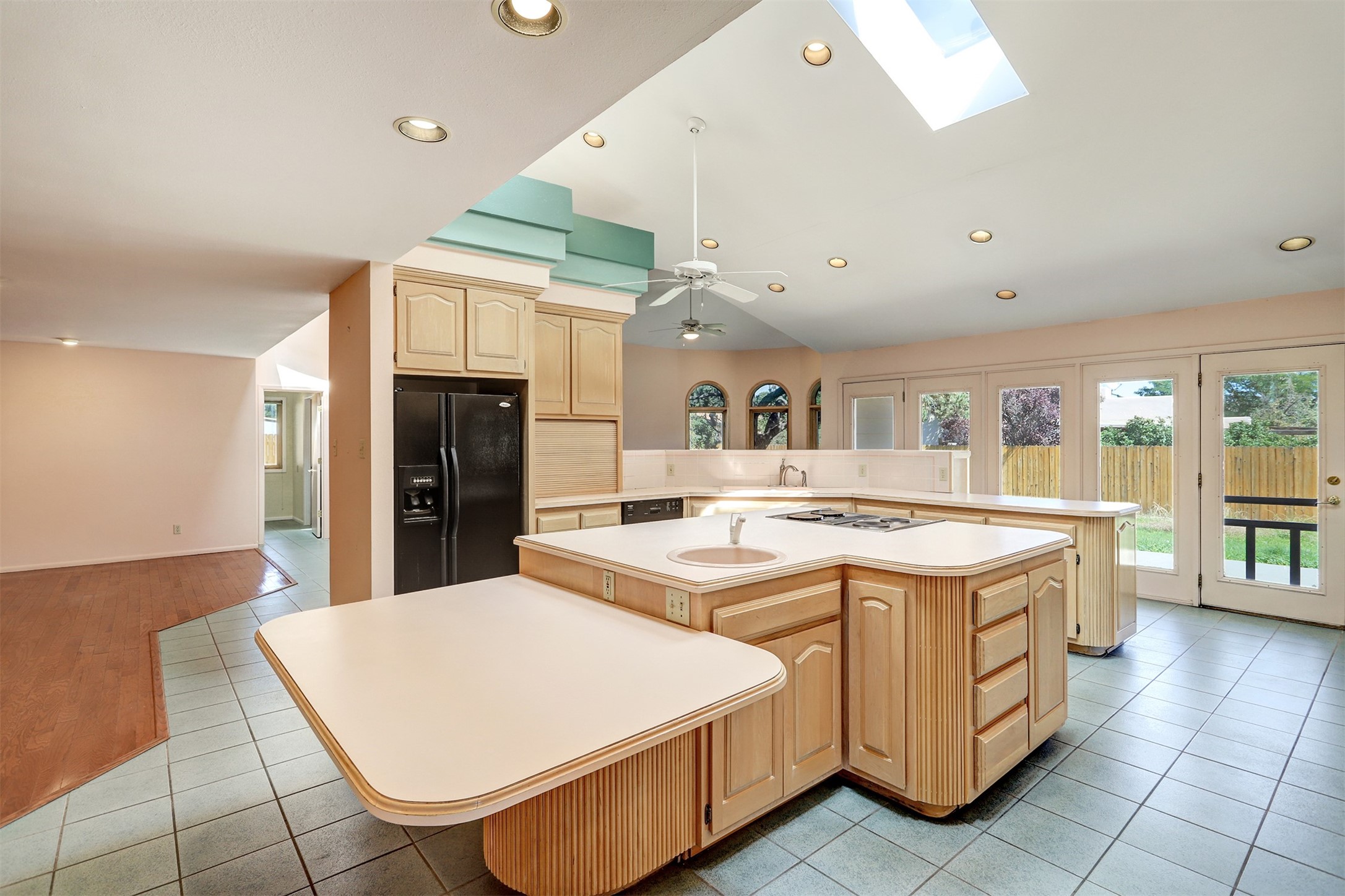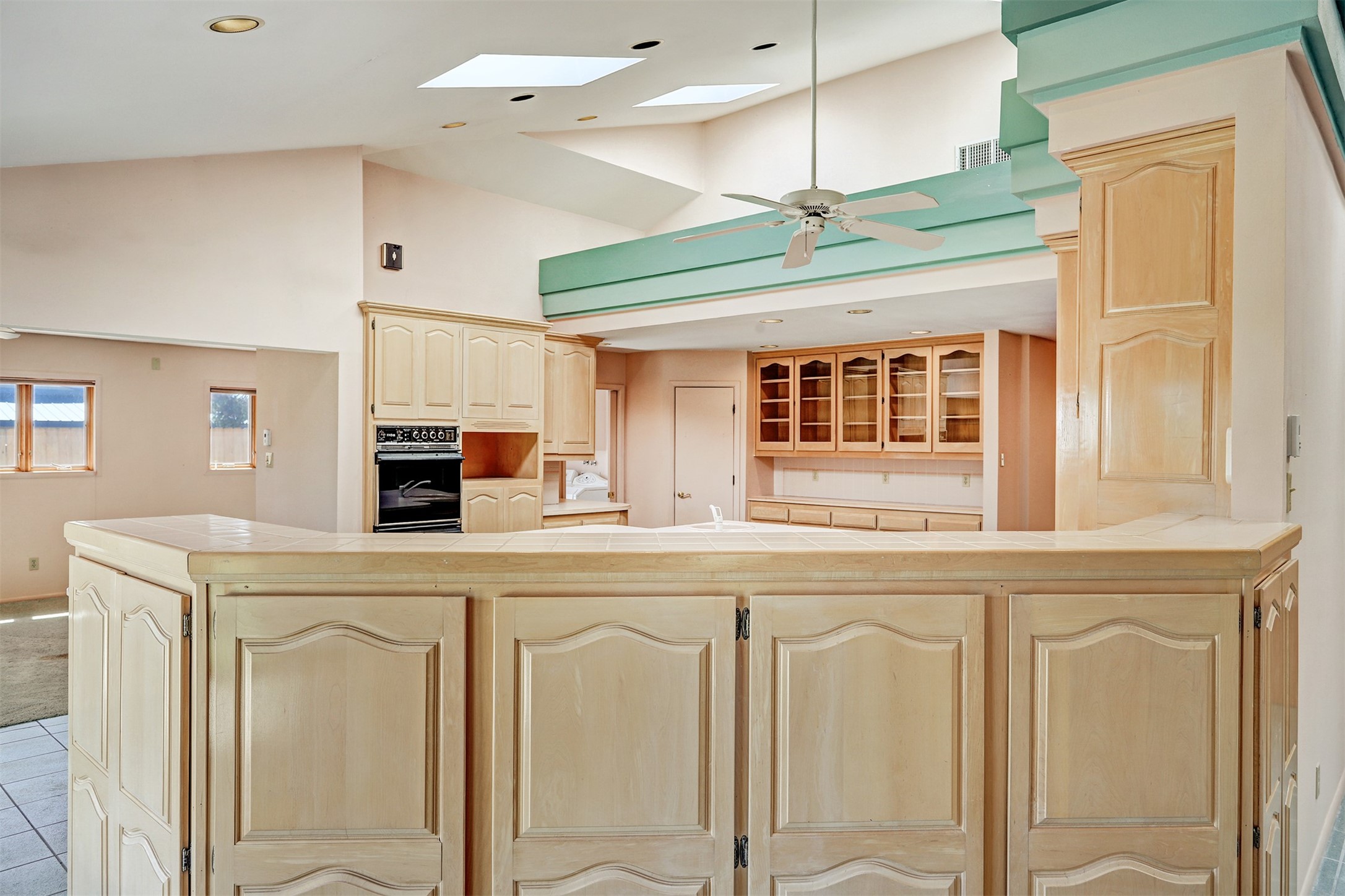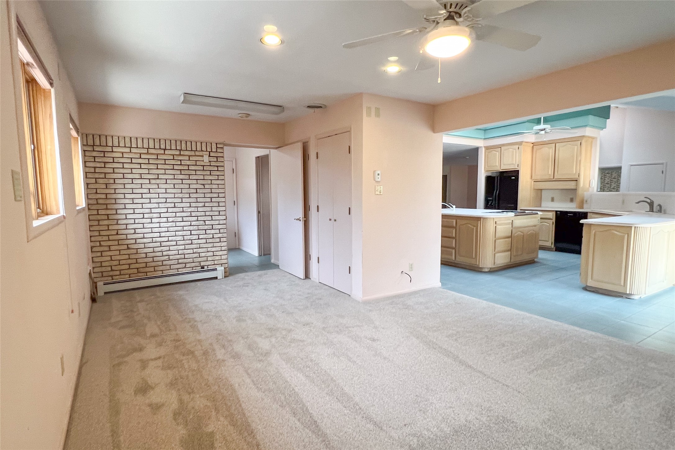 This inviting single-family offers open living space designed for comfort and functionality. The living room showcases soaring cathedral ceilings and radiant heated tile floors, creating a warm and welcoming atmosphere. At the heart of the home, the expansive kitchen features abundant storage and a central location, seamlessly connecting to the main living areas. A beautiful separate dining room provides the perfect setting for gatherings, while the cozy den/bonus room with brand-new carpet offers a more relaxed retreat. The primary suite includes an ensuite bathroom and a generous walk-in closet with built-in organizers. Two additional bedrooms and a second bathroom provide plenty of space for family or guests. Primary bedroom and secondary bedroom recently had wallpaper removed and painted. The two-car garage is currently configured as a one-car garage plus a versatile rec room, with the option to convert back to a full two-car setup. Outdoors, enjoy RV parking with electrical hookup, a private backyard, and a quality Morgan shed for extra storage. This home blends thoughtful design with flexibility, offering space to live, entertain, and grow.