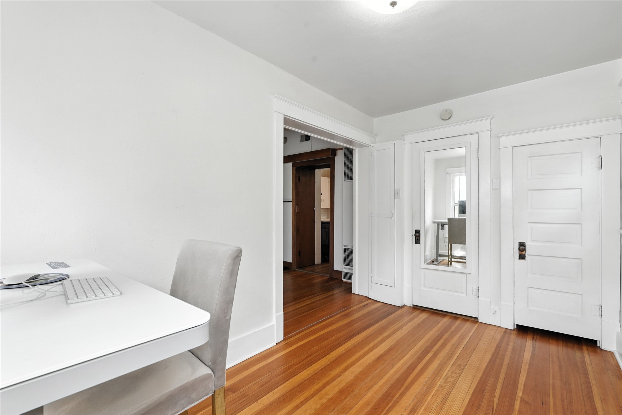 Seller to offer up to $10,000 towards buyers closing costs or interest rate buy down, REC with 20% down Discover the soul of historic Albuquerque in this captivating Huning Highlands 2 story bungalow! This 4 bedroom gem radiates timeless style and character, from its gorgeous original hardwood floors and crown molding to the stunning natural stone facade. Gather around the cozy fireplace or retreat to the beautifully updated kitchen, featuring sleek quartz countertops, a subway tile backsplash, and a charming breakfast nook. Step into a private paradise in the lush backyard, a verdant haven brimming with vibrant flower gardens, fragrant rose bushes, and towering trees--an entertainer's dream! The home also boasts an updated bathroom, a newer roof, and a huge laundry room with endless storage. An automatic gate leads to a two-car garage and carport. ...Plus, a fantastic basement offers.......even more possibilities. All this, perfectly situated across from Highland Park, with the city's best dining, shopping, and museums just moments away. This isn't just a house; it's a piece of history, reimagined.