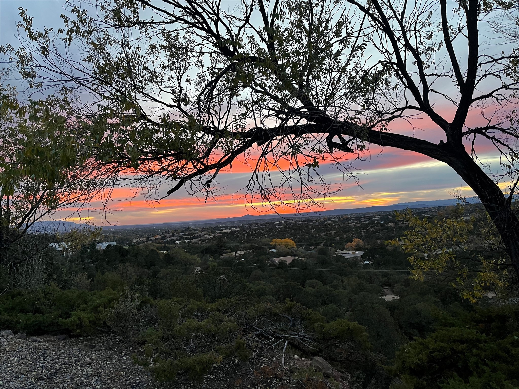 Perched at the very top of coveted Stagecoach Road, this single-family home offers unmatched privacy, tranquility, and almost 360-degree views. Located less than 1.5 miles from The Plaza, it combines convenience with the feeling of being a world away. From sunrise to sunset, every room in this 3,000 sq ft residence is bathed in natural light and breathtaking scenery. Thoughtfully designed for both comfort and inspiration, the home features two spacious bedrooms and two well-appointed bathrooms, along with a large family room and a studio--perfect for creative pursuits, a home office, or additional guest space. The open-concept layout seamlessly connects the kitchen, dining area, and living room, creating an airy and inviting space ideal for entertaining or quiet evenings at home. Antique Saltillo tile adds warmth and character throughout, while a cozy reading room invites you to unwind and take in the views. While the home is fully livable, it offers an excellent opportunity for updates to match your personal style. Whether you're enjoying coffee at sunrise or a glass of wine at sunset, this hilltop retreat offers a rare chance to live above it all--surrounded by nature, beauty, and serenity.