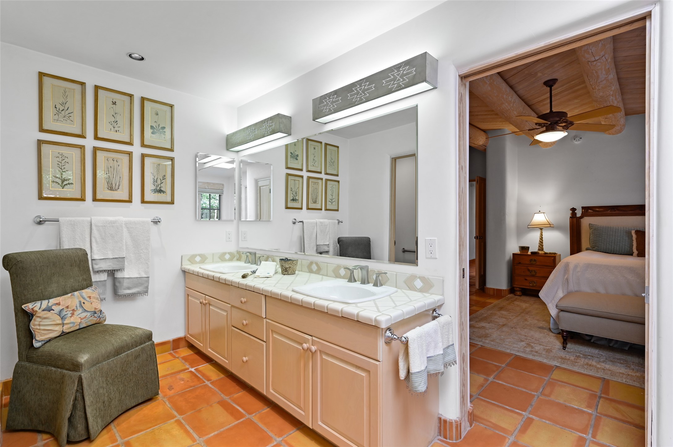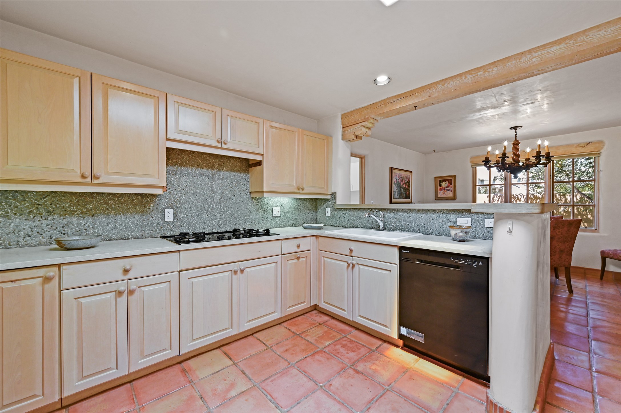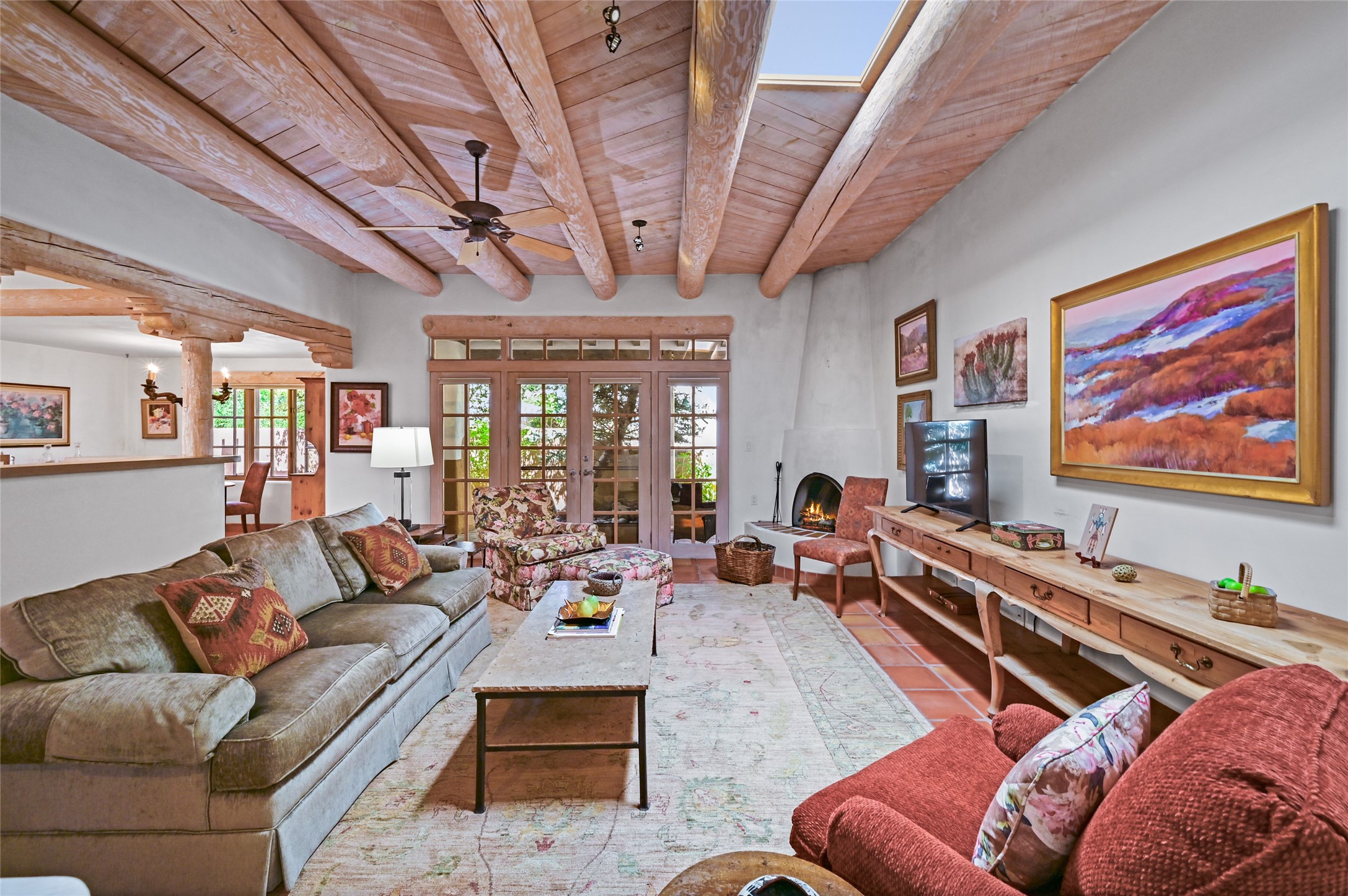 Worried about the HOA dues? Seller will pay 1 years' worth of dues for Quail Run's perfect condo -- a classic Pion C floorplan with two bedrooms plus an office/den! Step inside to discover plaster walls, Saltillo tile floors, and a traditional Kiva fireplace that create a warm and inviting atmosphere. Skylights throughout bathe the home in natural light, while the single-level layout with no steps offers comfort and ease of living.The kitchen features updated stone counters, a stylish backsplash, and generous cabinetry for storage and organization. The primary suite is its own retreat with a Kiva fireplace and access to the back courtyard while the adjoining bath includes a newer modern bathtub for relaxing at day's end and a double vanity and larger closest.The living spaces open to a covered back patio, complete with a gentle fountain, brick detailing, vigas, lush landscaping and charming corbels -- a private sanctuary for relaxing or entertaining. A spacious two-car garage adds convenience and storage.Ownership at Quail Run includes access to exceptional amenities: 24-hour hosted security, state-of-the-art fitness facilities, a swimming pool, golf, pickleball, fitness classes, social gatherings, and its own restaurant!Come see why this special home in Quail Run offers the perfect blend of Santa Fe style and resort living.