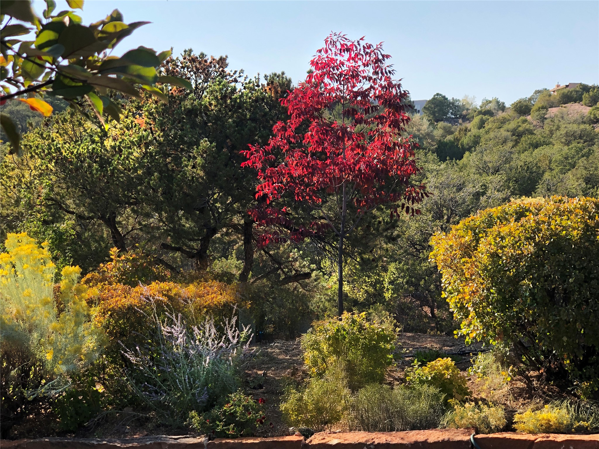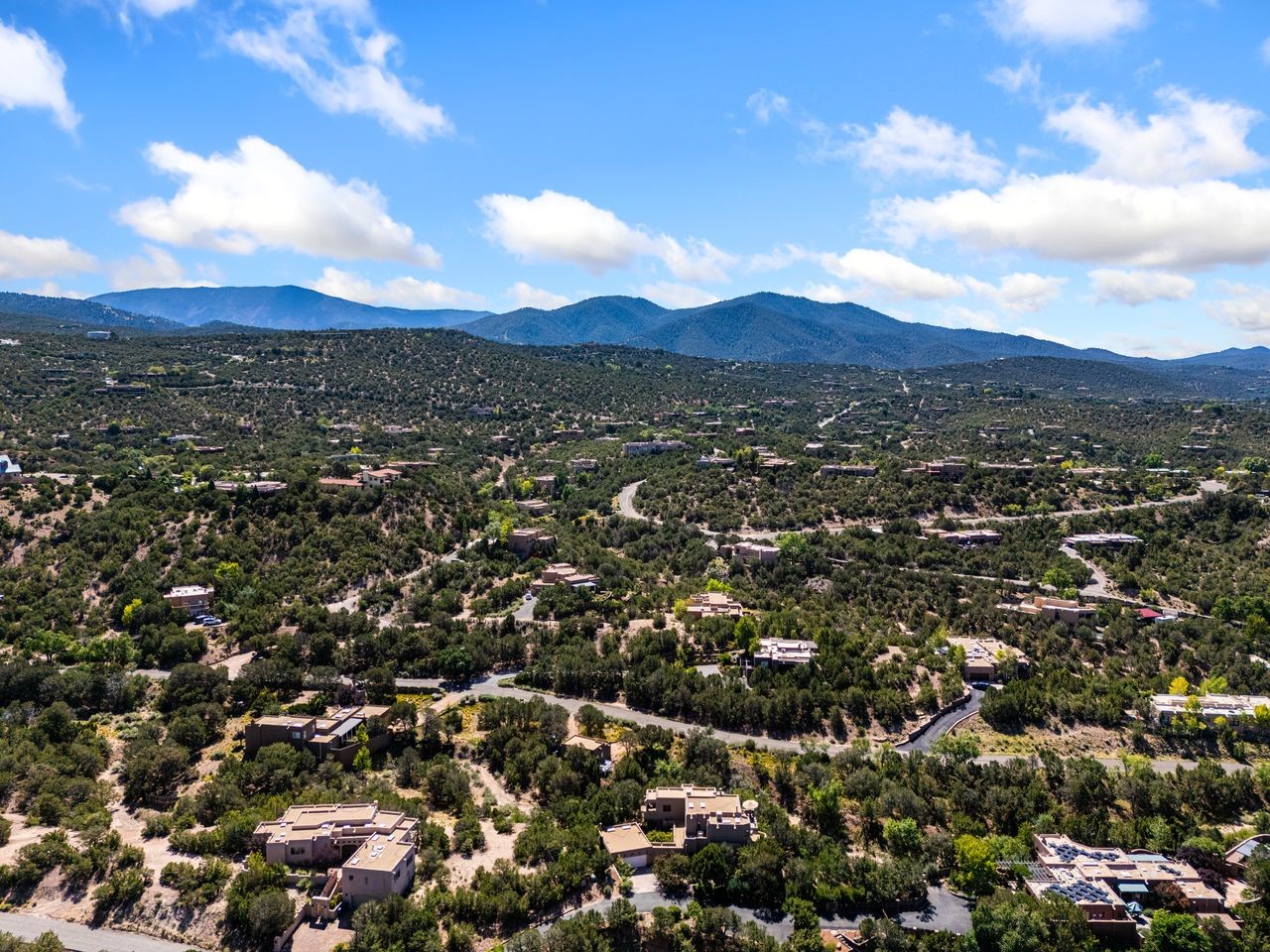 Beautiful home overlooking the arroyo and with stellar views over downtown Santa Fe to the south! The home has a lovely private courtyard with water feature greeting you as you step in. All the living areas on the first floor: Living room, dining room, kitchen, full bathroom, laundry room, and the back of the home has a full suite that is currently being used as a working artist studio. This space is easily converted and designed to be a one-bedroom suite on the first floor. Upstairs is the primary suite with two walk-in closets and primary bath. There are two more bedrooms with a full bath. The two-car garage is off the courtyard. There are two 2nd story balconies, and lovely portal off the living room, and wonderful landscaping around the home. The owner installed high-efficiency Runtal baseboard heaters throughout the house, and it also has a full unfinished basement! Four off-street parking spots available for your guests. Please make sure you make plans to see this lovely home in the heart of the Sierra Del Norte neighborhood!