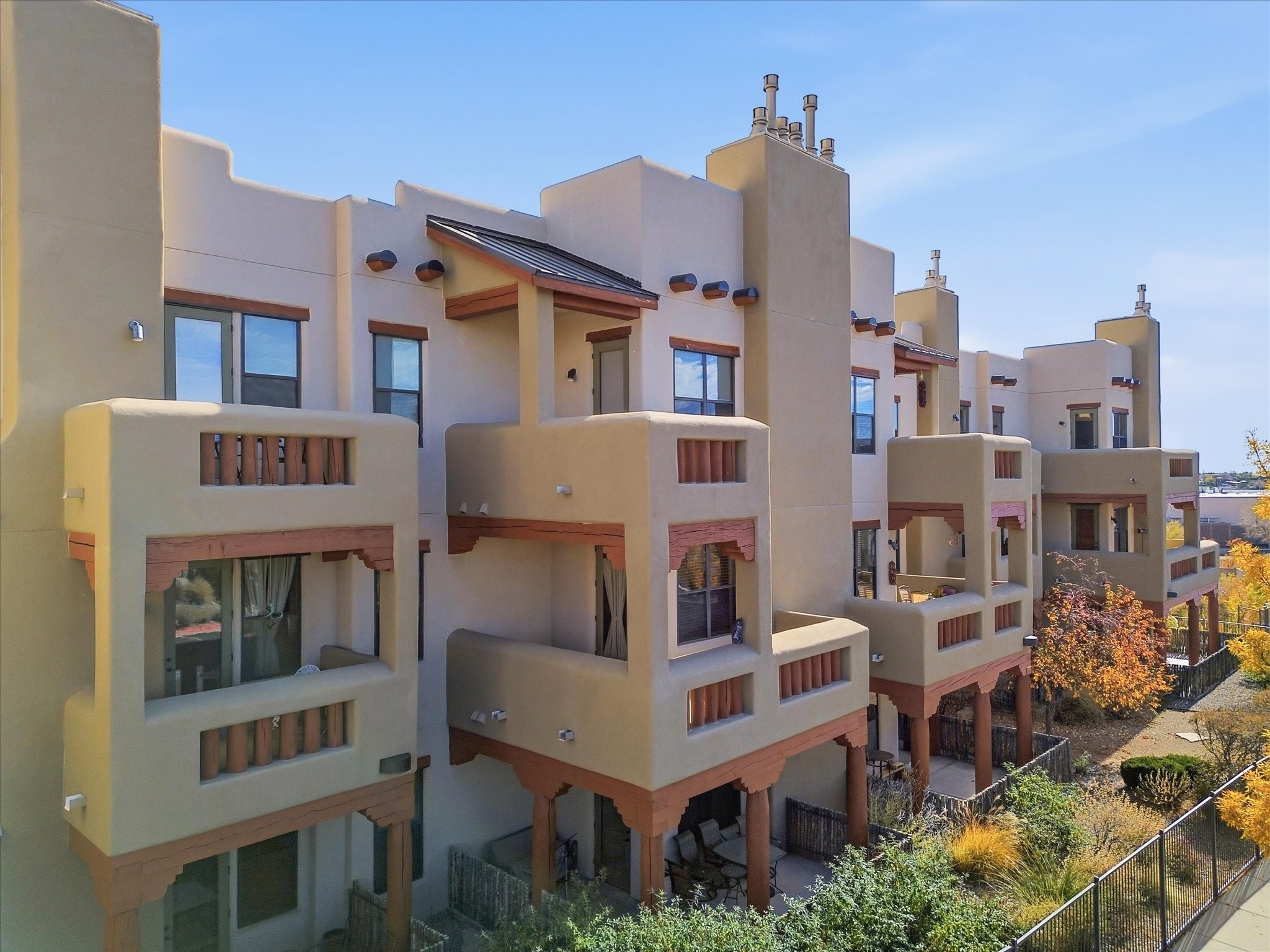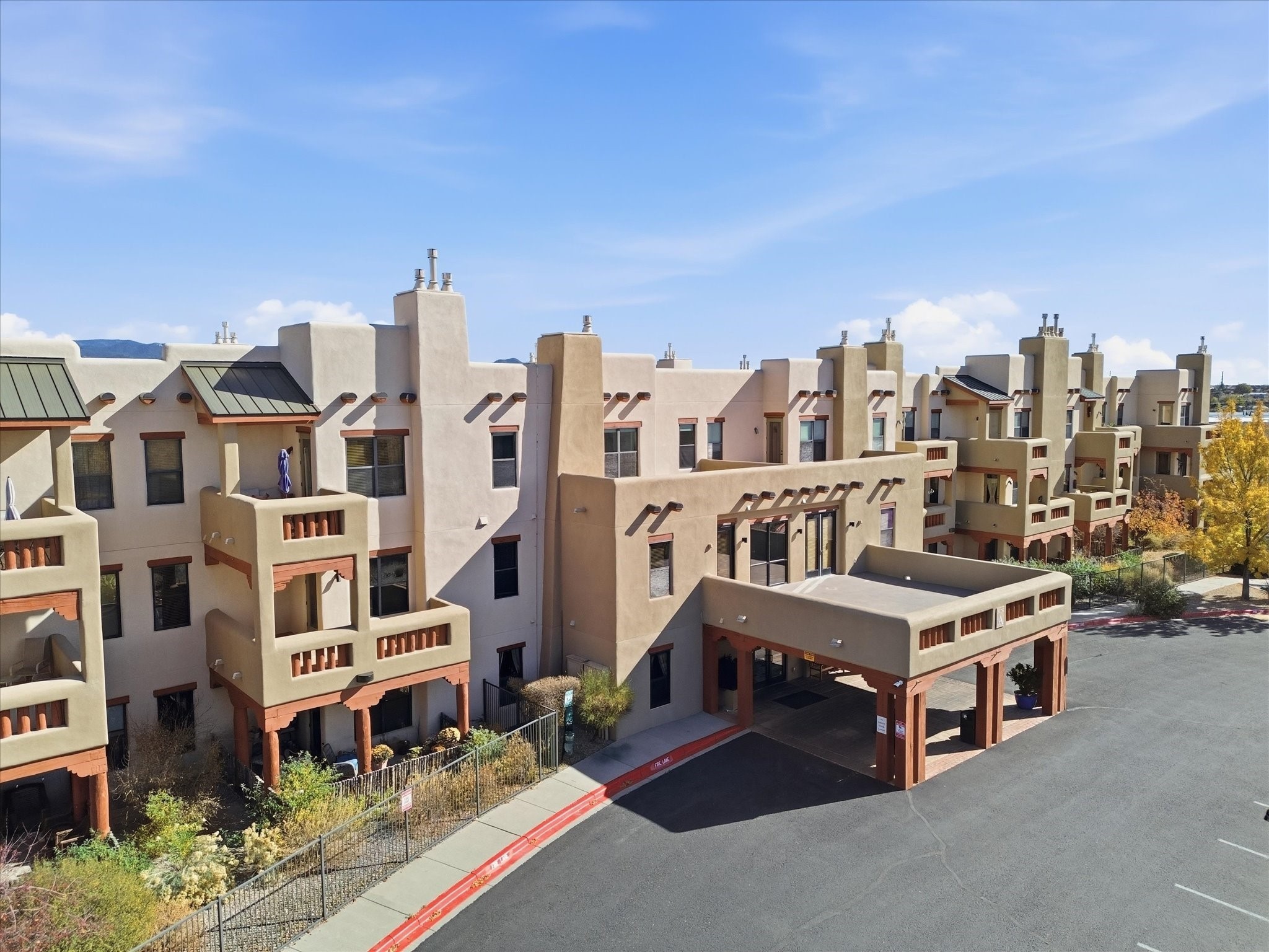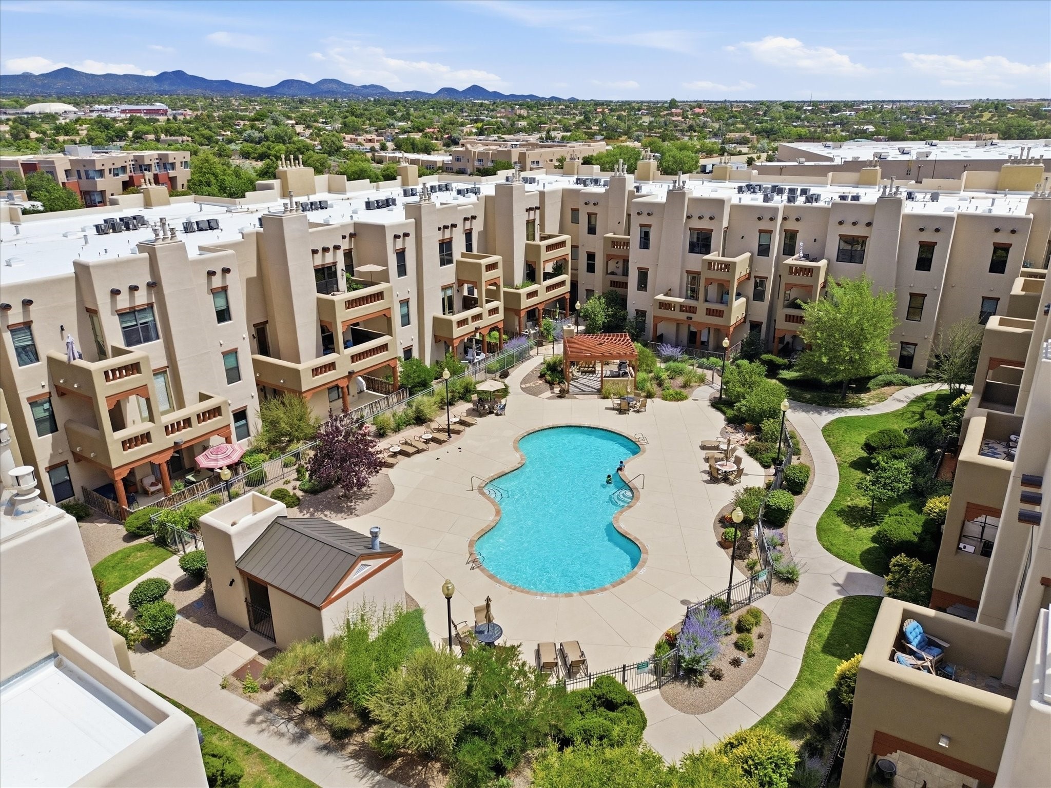 Welcome to this beautiful corner unit in the desirable Alameda Condos! Having abundant natural light, this ground-floor gem has two bedrooms, each with its own full bathroom and walk-in closet. The primary bedroom offers a private patio entrance and an enclosed shower area, perfect for relaxing mornings.Enjoy an open-concept living and dining space centered around a cozy gas corner Kiva fireplace, while the kitchen is equipped with appliances for new homeowners daily use. Step outside to your fenced patio and take in serene pool views.With central refrigerated air conditioning, a host of community amenities--including a pool, gym, reading rooms, gated parking, on-site office, and building-wide WiFi--this condo is perfect for full-time living or a convenient lock-and-leave lifestyle. Comfort, style, and security all in one!