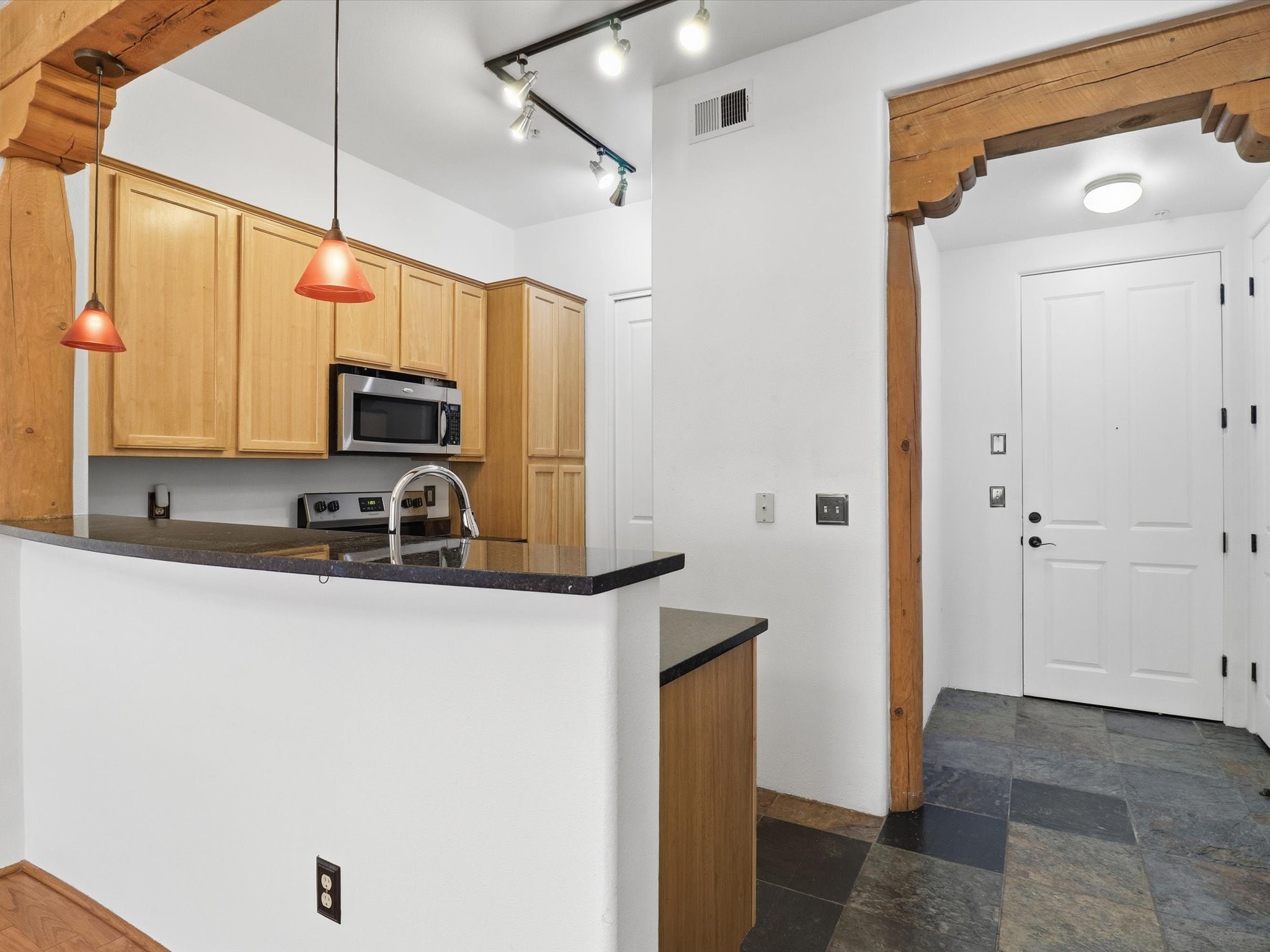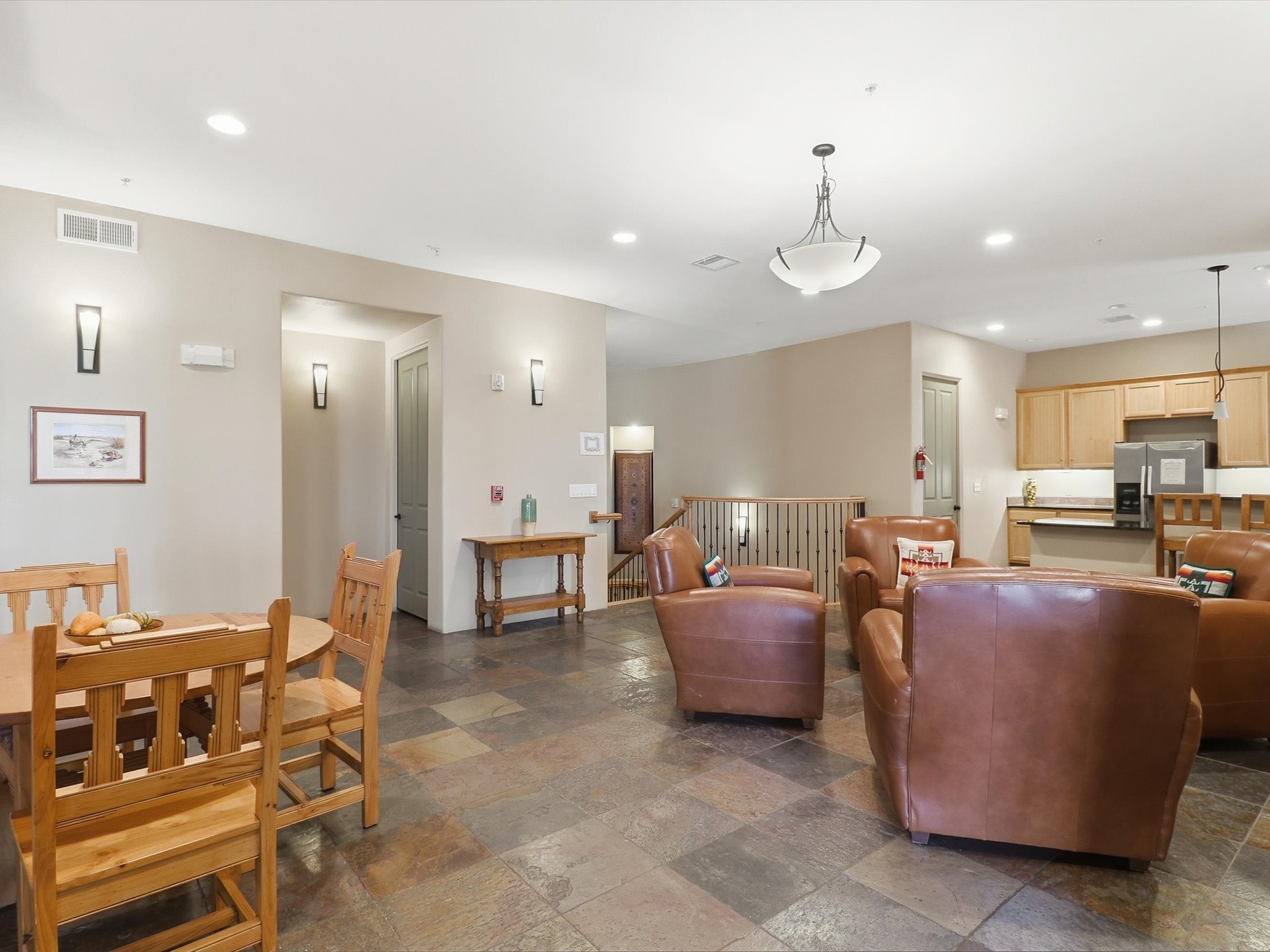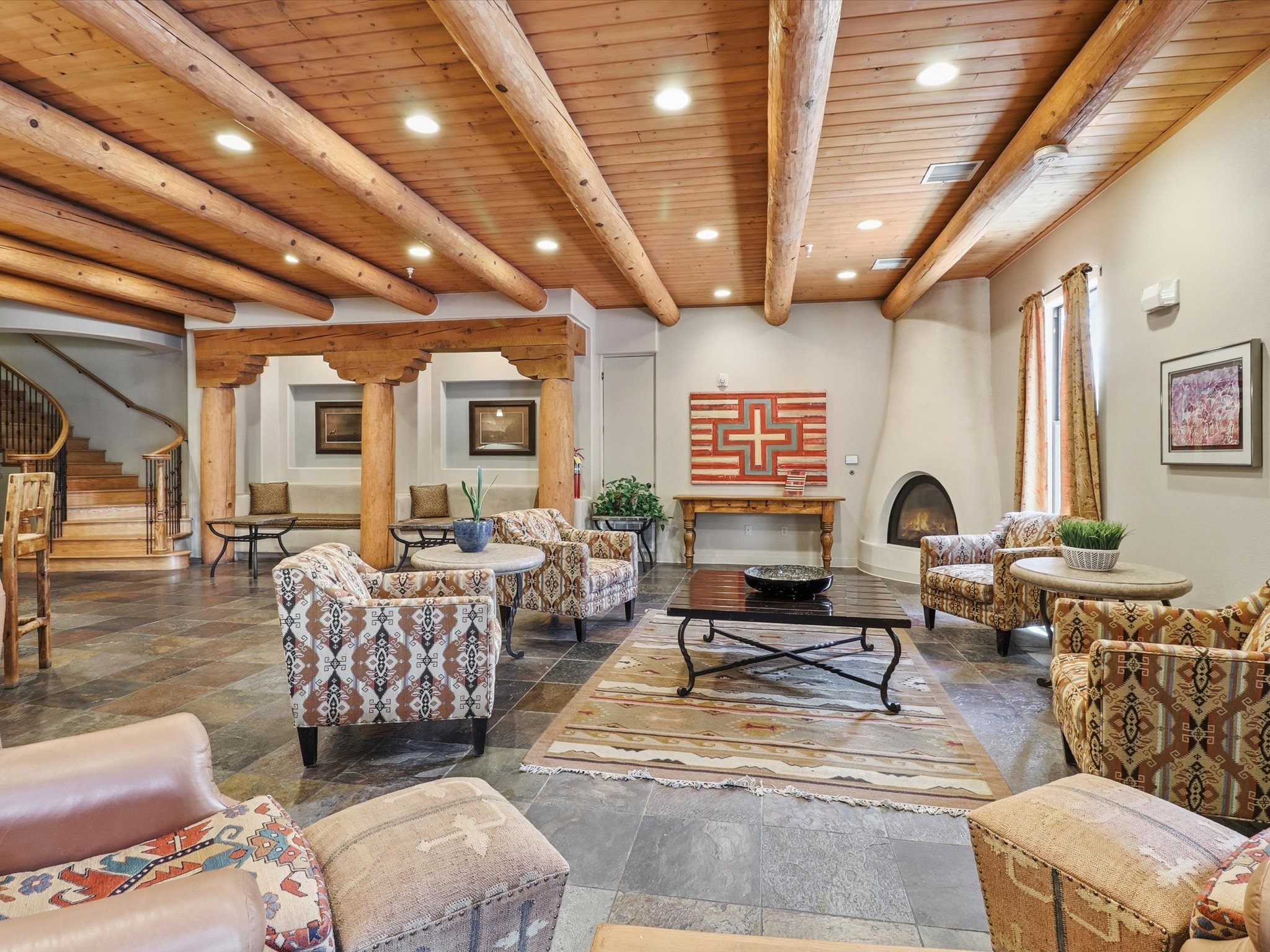 Welcome to this beautiful corner unit in the desirable Alameda Condos! Having abundant natural light, this ground-floor gem has two bedrooms, each with its own full bathroom and walk-in closet. The primary bedroom offers a private patio entrance and an enclosed shower area, perfect for relaxing mornings.Enjoy an open-concept living and dining space centered around a cozy gas corner Kiva fireplace, while the kitchen is equipped with appliances for new homeowners daily use. Step outside to your fenced patio and take in serene pool views.With central refrigerated air conditioning, a host of community amenities--including a pool, gym, reading rooms, gated parking, on-site office, and building-wide WiFi--this condo is perfect for full-time living or a convenient lock-and-leave lifestyle. Comfort, style, and security all in one!