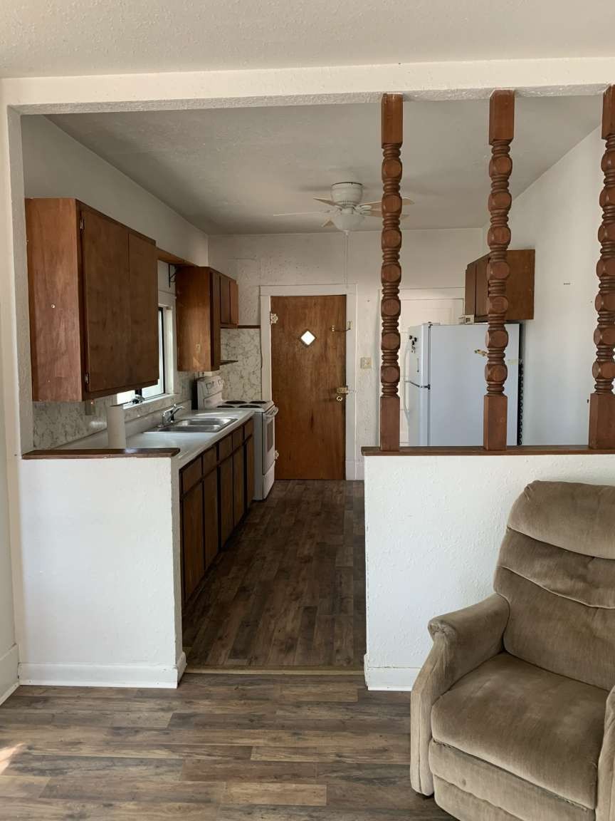 Exceptionally Charming Historic Home in Excellent Location! Centrally situated in a highly desirable area, this 2BR/2BA residence affords quick access to a range of nearby conveniences, such as multiple restaurants (0.1+miles), fitness centers (0.2+miles), several schools (0.3+miles), shopping (0.4+miles), parks (0.4+miles), and medical facilities (1.1+miles). Lovingly referred to by locals as "The Blue House," the property welcomes with beautiful shade trees, a covered front porch, bright white exterior trim, mature shrubbery. A second story was added which doubled the space to 1640SF. Step inside to discover a potential-packed interior. Boasting attractive wood flooring, the home features an openly flowing traditional floorplan, neutral paint hues, ample natural light, and a spacious living room with a ceiling fan and elegant bay windows. Explore further to discover a sequestered eat-in kitchen, which has white appliances, double stainless-steel sinks, electric stove, wood cabinetry.