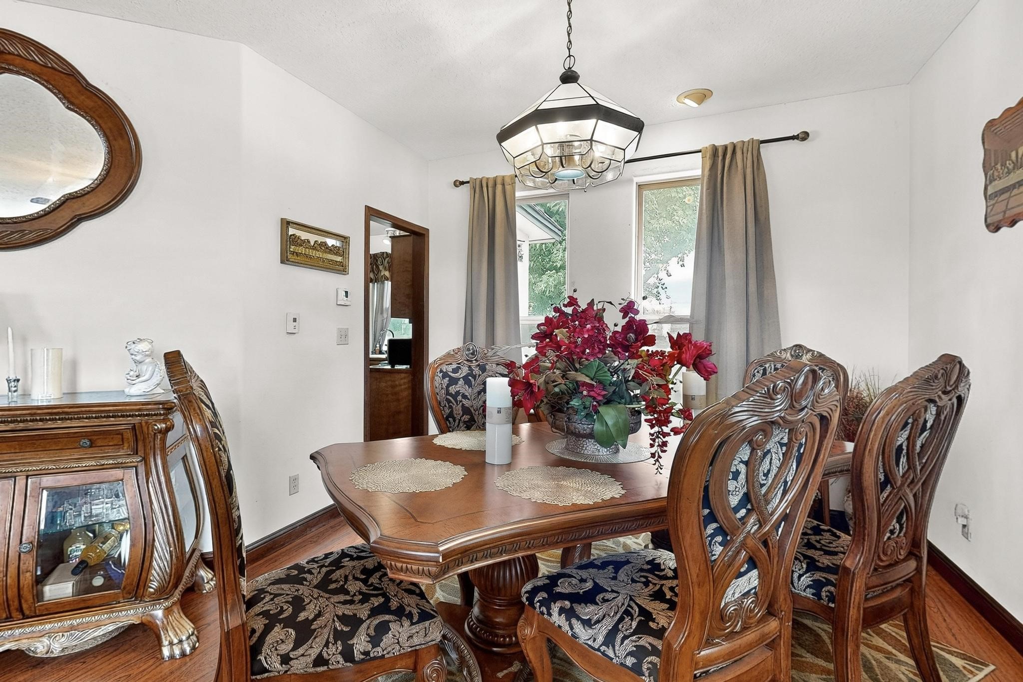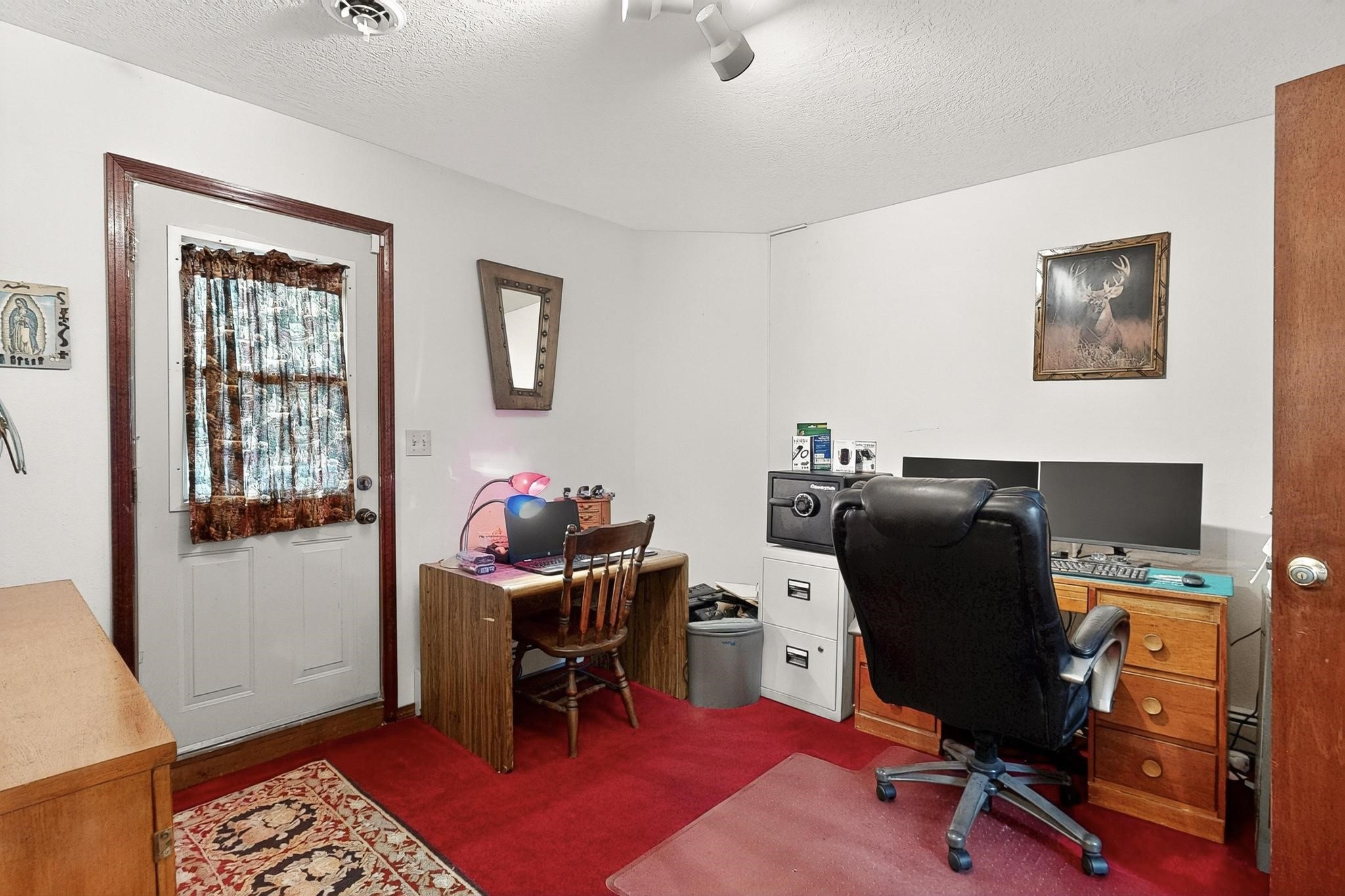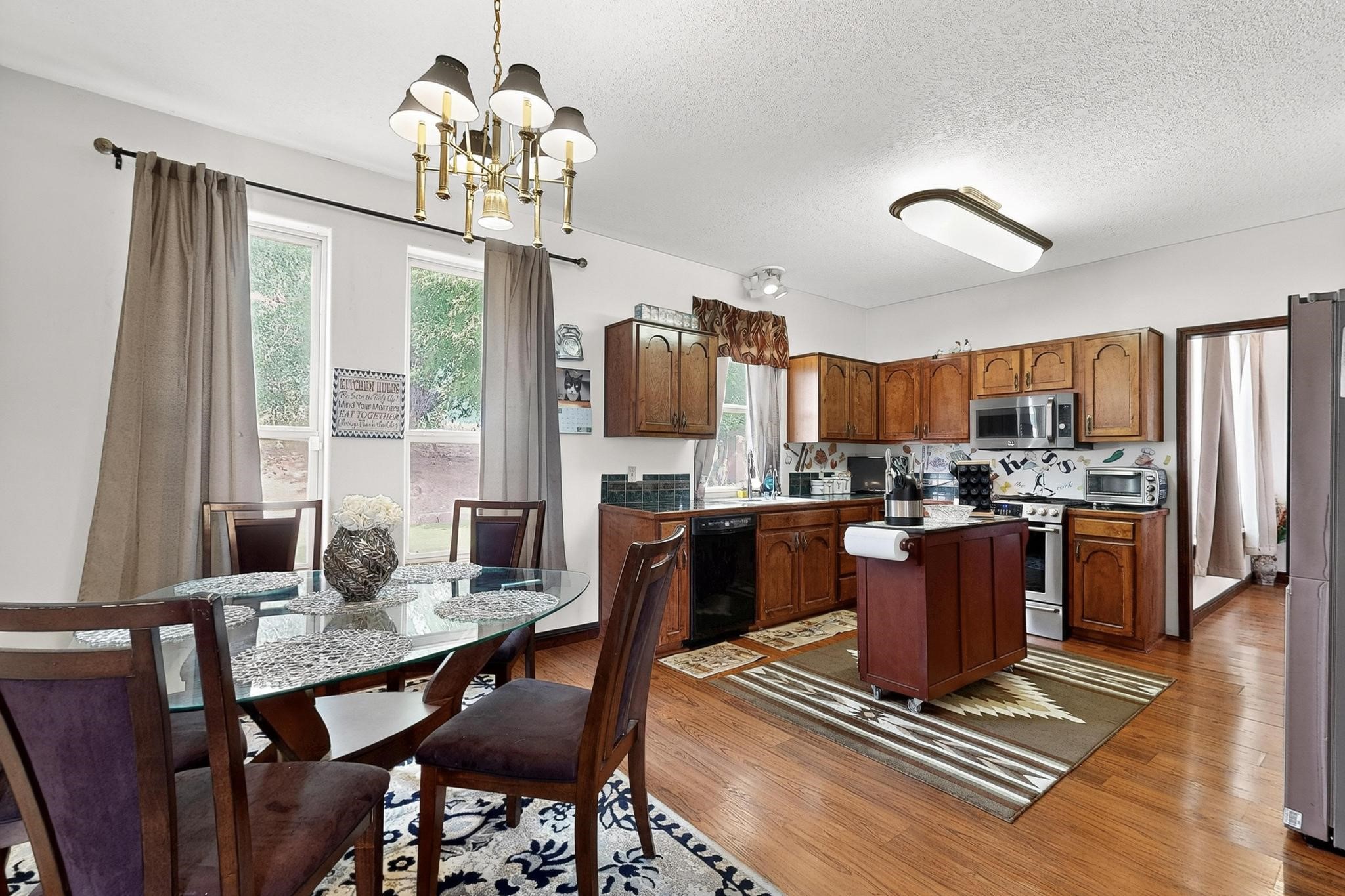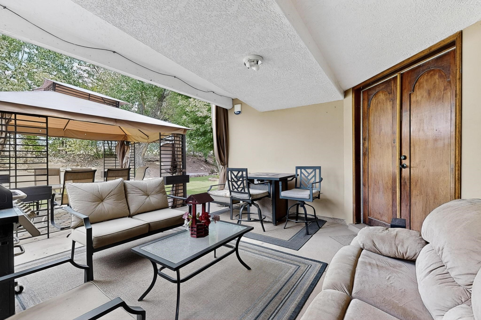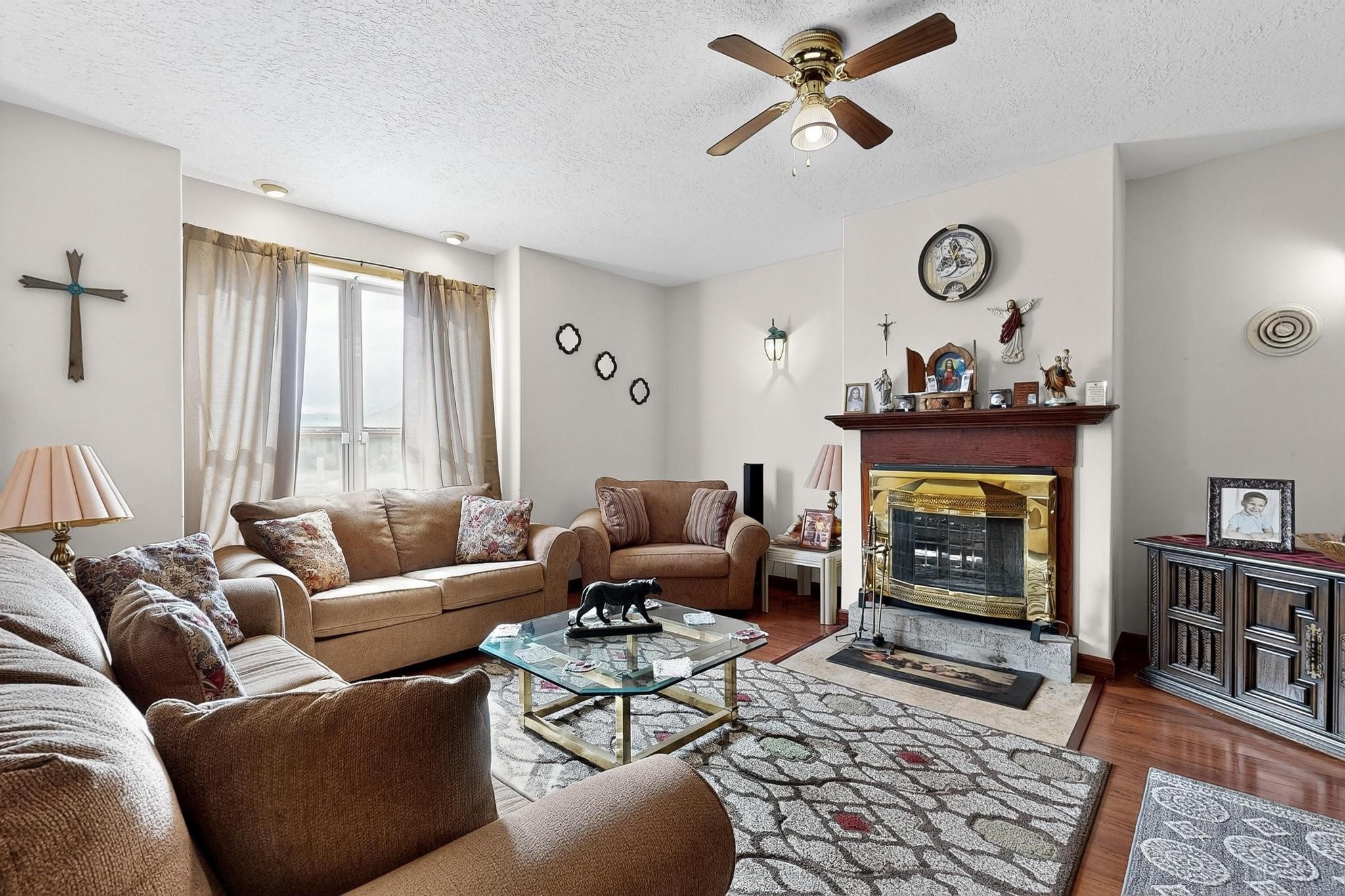 Welcome to your dream home! This stunning two-story residence combines comfort and style with extremely high ceilings and plenty of natural light from tall, narrow windows. This home offers a delightful breakfast nook and a spacious kitchen. Along with two cozy living areas, one even features a sweet fireplace.Upstairs, you'll find unique red carpeting that adds character, along with a versatile bonus room ideal as a fifth bedroom, home office, or creative space. The master suite offers a luxurious jacuzzi bathtub for ultimate relaxation, and a private balcony perfect for enjoying fresh air and views. Outside, enjoy a low-maintenance backyard with artificial grass, mature trees (including plum and apricot), and a peaceful water stream with water rights. Two storage sheds provide extra space for your needs. The front yard features attractive gravel and paved landscaping for great curb appeal. Schedule a showing today!