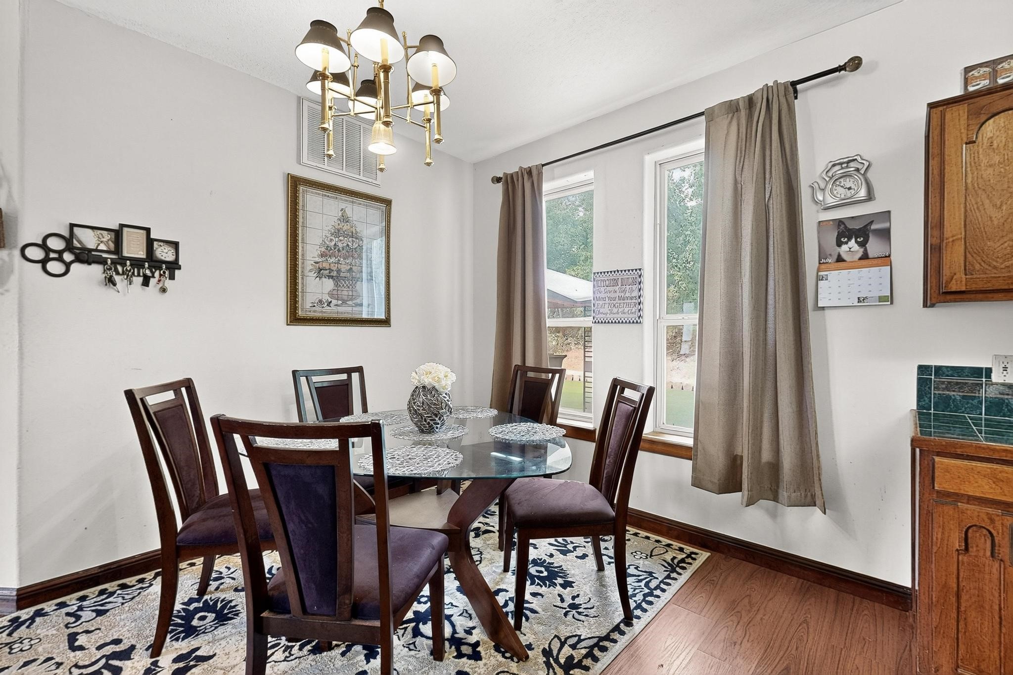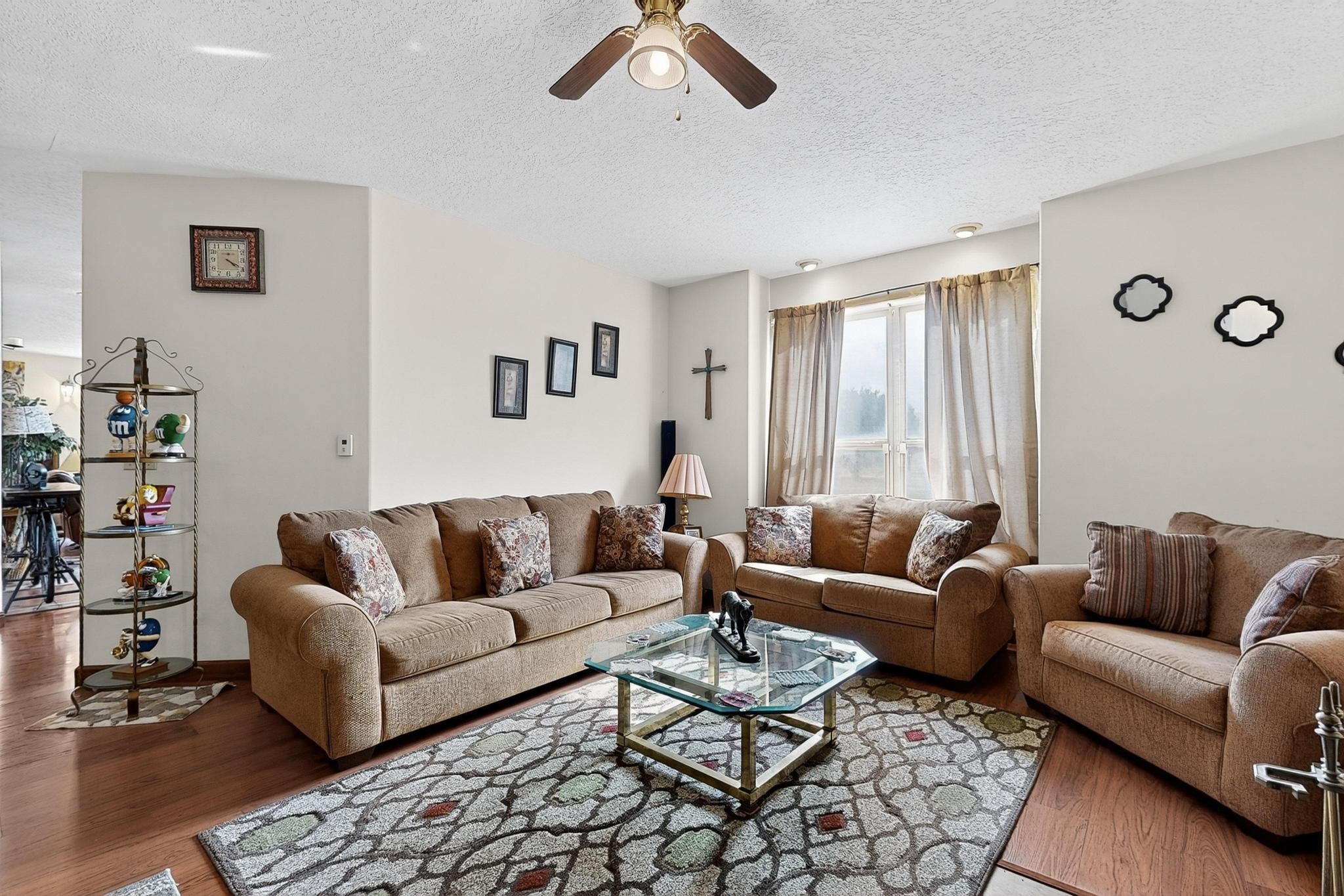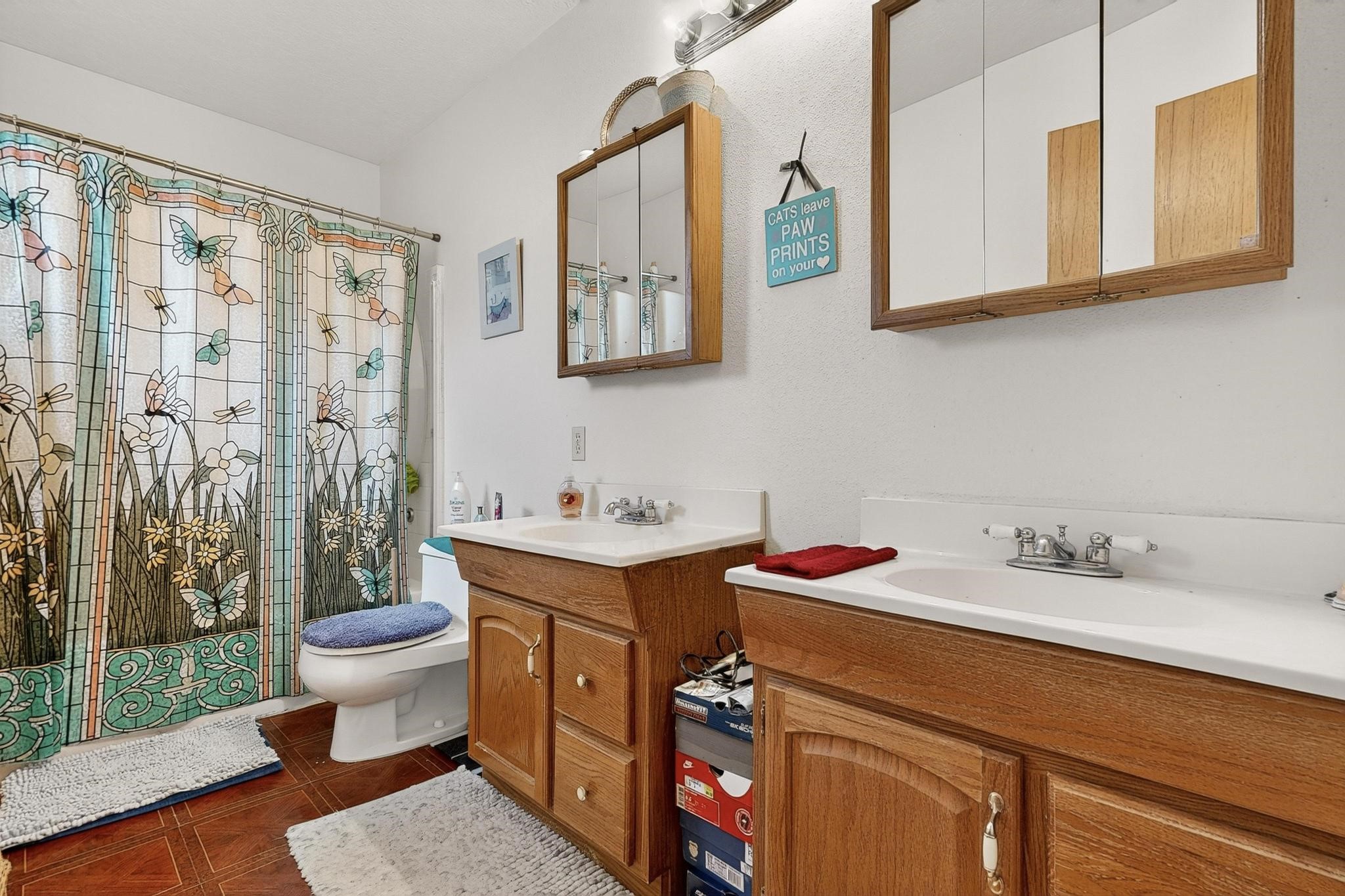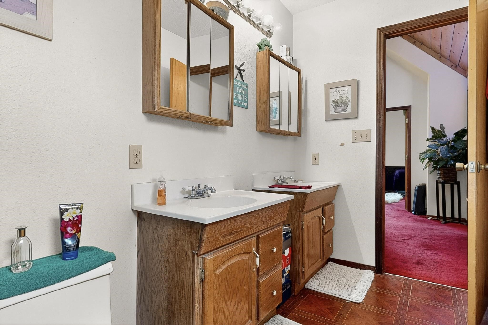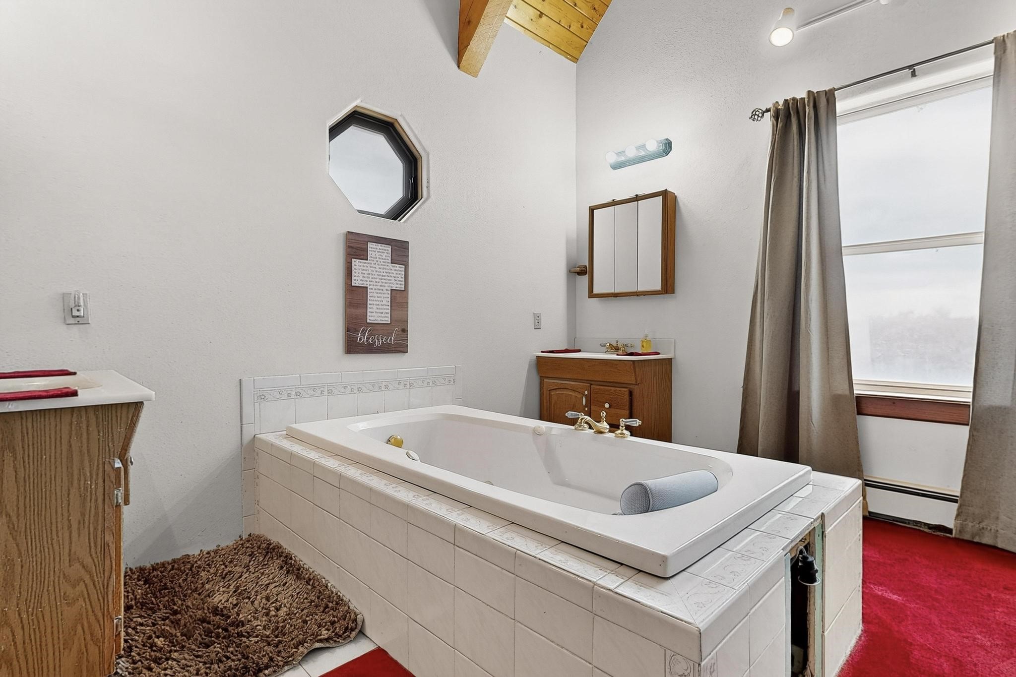 Welcome to your dream home! This stunning two-story residence combines comfort and style with extremely high ceilings and plenty of natural light from tall, narrow windows. This home offers a delightful breakfast nook and a spacious kitchen. Along with two cozy living areas, one even features a sweet fireplace.Upstairs, you'll find unique red carpeting that adds character, along with a versatile bonus room ideal as a fifth bedroom, home office, or creative space. The master suite offers a luxurious jacuzzi bathtub for ultimate relaxation, and a private balcony perfect for enjoying fresh air and views. Outside, enjoy a low-maintenance backyard with artificial grass, mature trees (including plum and apricot), and a peaceful water stream with water rights. Two storage sheds provide extra space for your needs. The front yard features attractive gravel and paved landscaping for great curb appeal. Schedule a showing today!