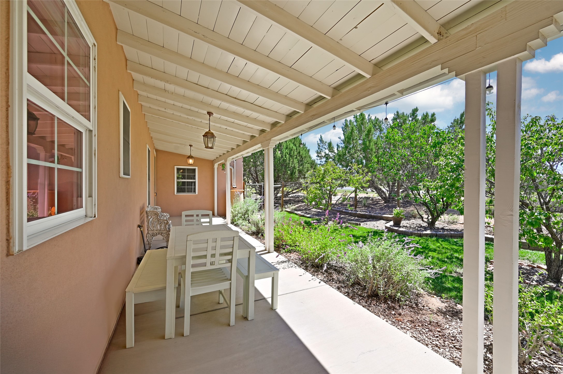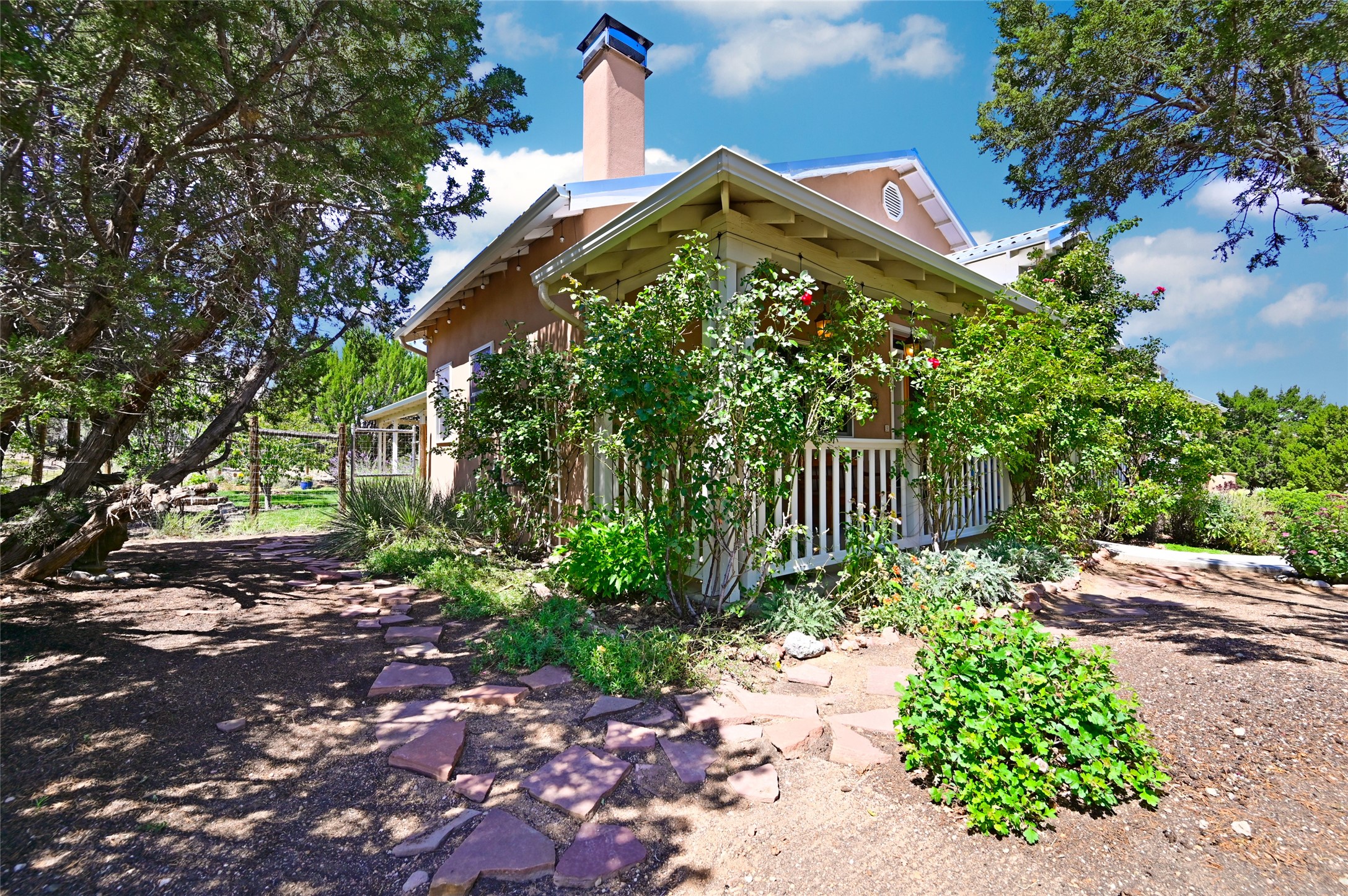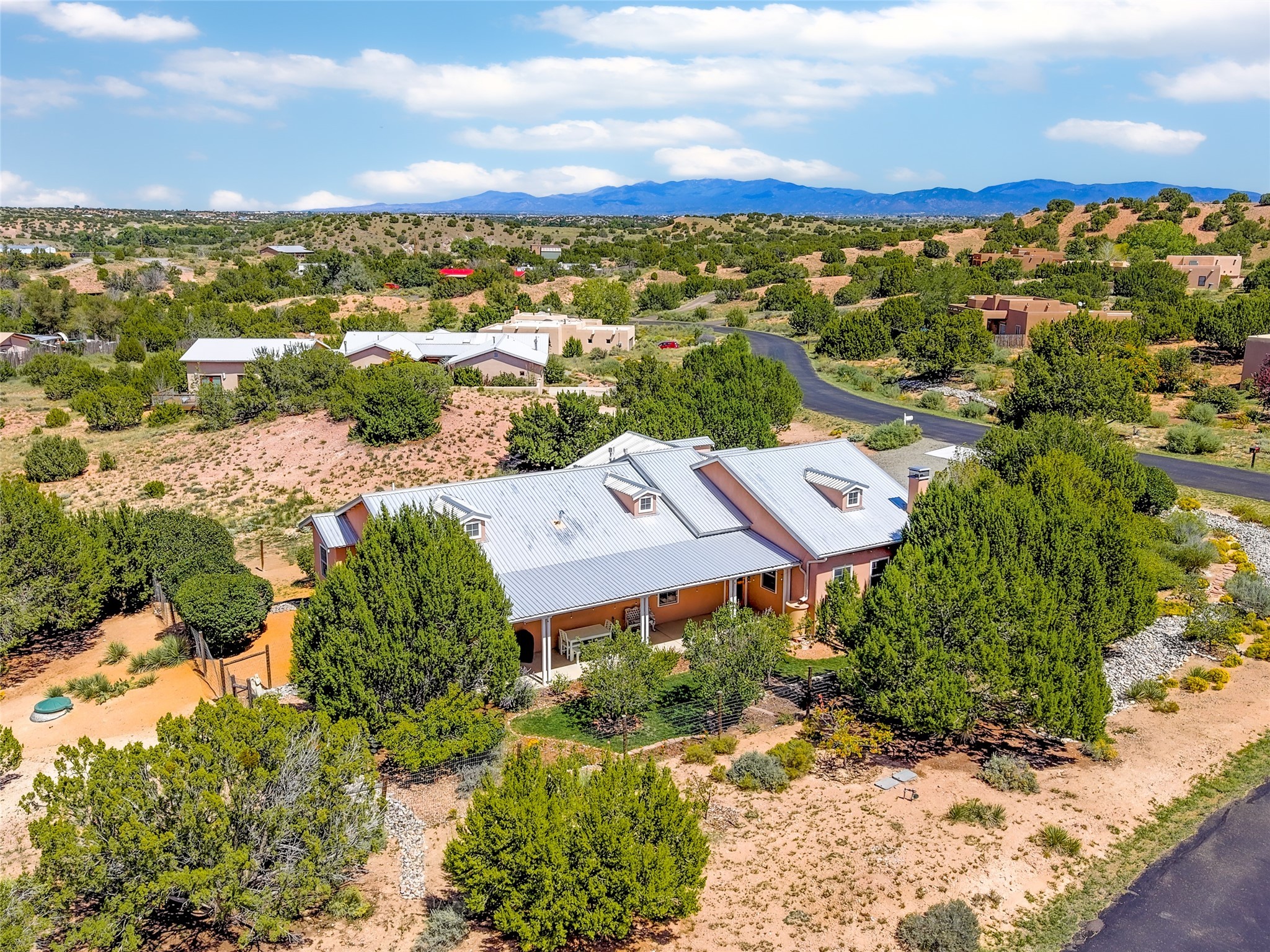 Welcome to 3 Vista Lagunitas: A classic old world style home that truly is set apart from the rest. The builder of this 3 bedroom 2.5 bath custom-crafted home originally built it for himself and it shows. From the vaulted wooden ceilings and custom-fit trim molding, to the choice solid wood doors throughout the home, you will find unparalleled quality at every corner. The northern New Mexico style exterior blends in well amongst the mature Juniper and Pinon Trees that populate the spacious and private 1.155 acre lot. You'll enjoy the best of outdoor living underneath the shady portal spaces and the established gardening locations are a joy to be had. What a fantastic opportunity to own a beautiful home in such an ideal setting. This is the dream home you've been waiting for!